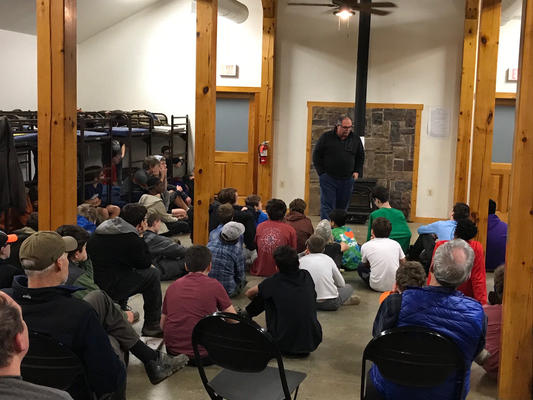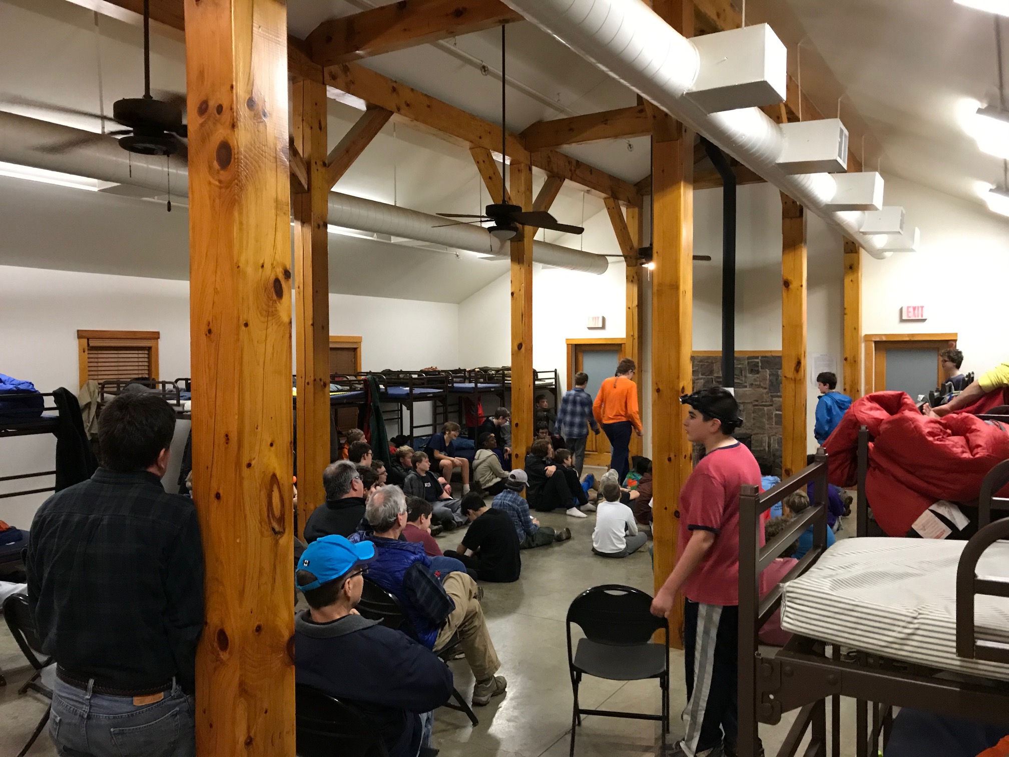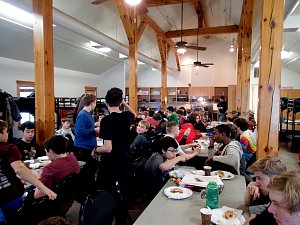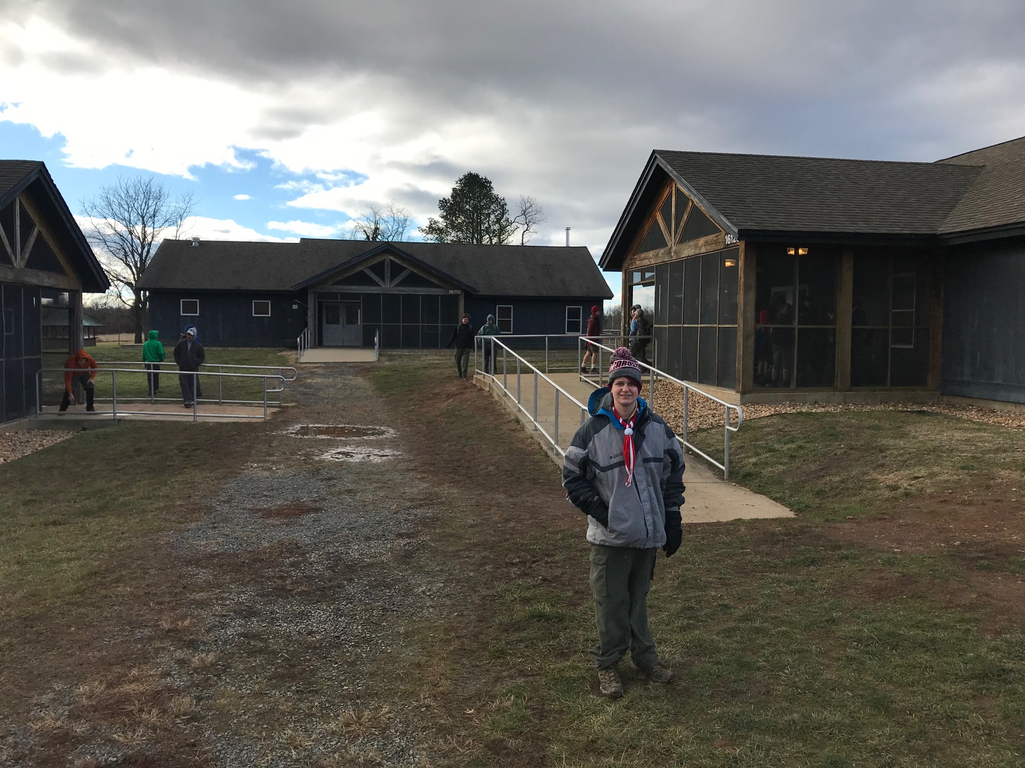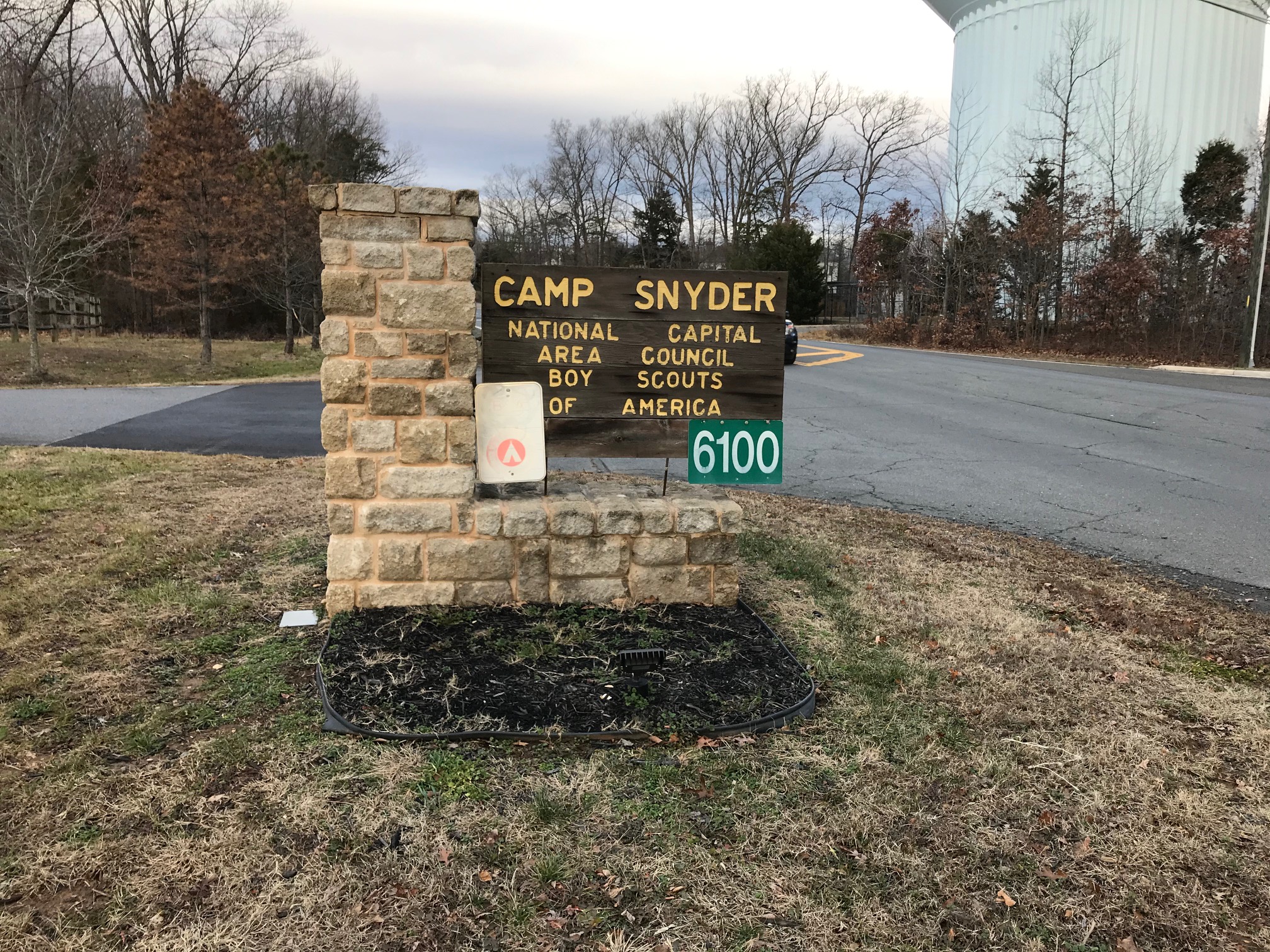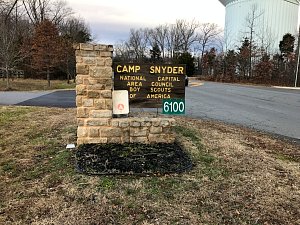 Our first camping trip of the new decade was to Camp Snyder in Haymarket, VA. It was our first time at this Capital Council camp. The camp is on about 400 acres within minutes of I-66 west of DC. There are tent campsites in the woods but we stayed in two bunk houses that are used to house the youth staff during the summer. They have 14 bunk beds in the main room and two small rooms in the back with two bunk beds each for a total of 36 beds in each building. There is a nice kitchen area at one end of the main room and space down the middle of the room for tables and chairs. There was also a grass area adjacent to one building with room for the 11 tents adults set up.The theme for the weekend was team building. The boys played a number of team games and team building activities. We also had a demonstration of flying drones by a very experienced FAA licensed remote pilot who is creating a drone program for the council.
