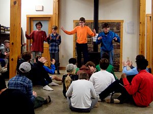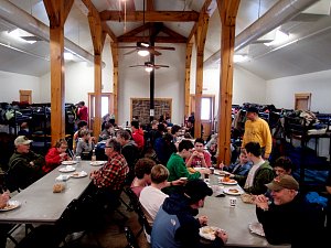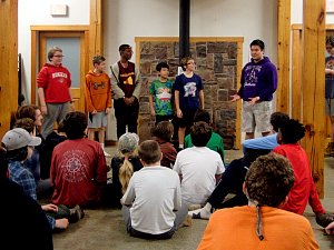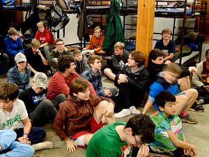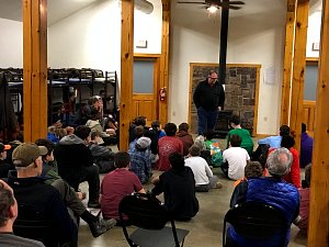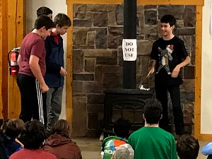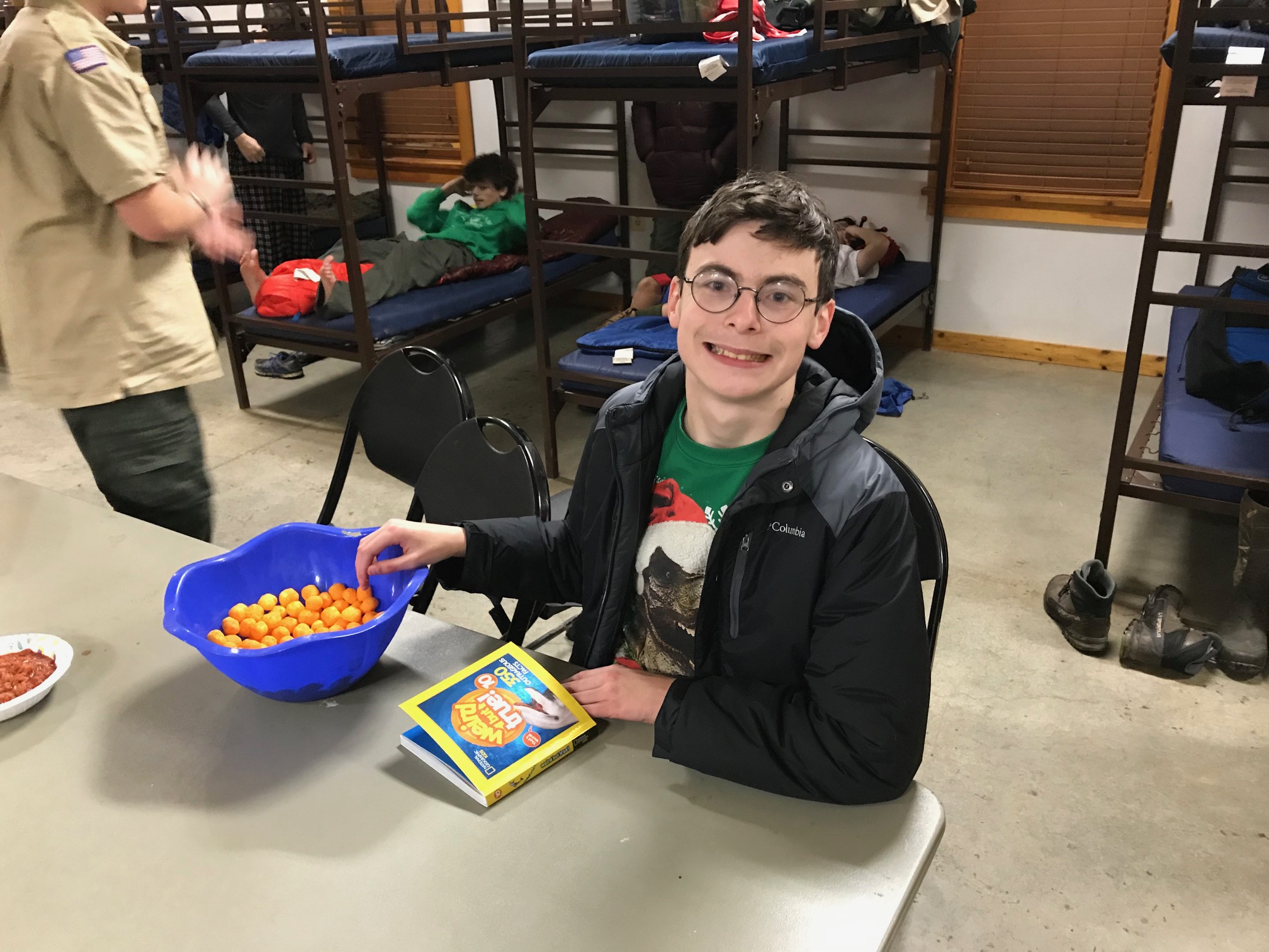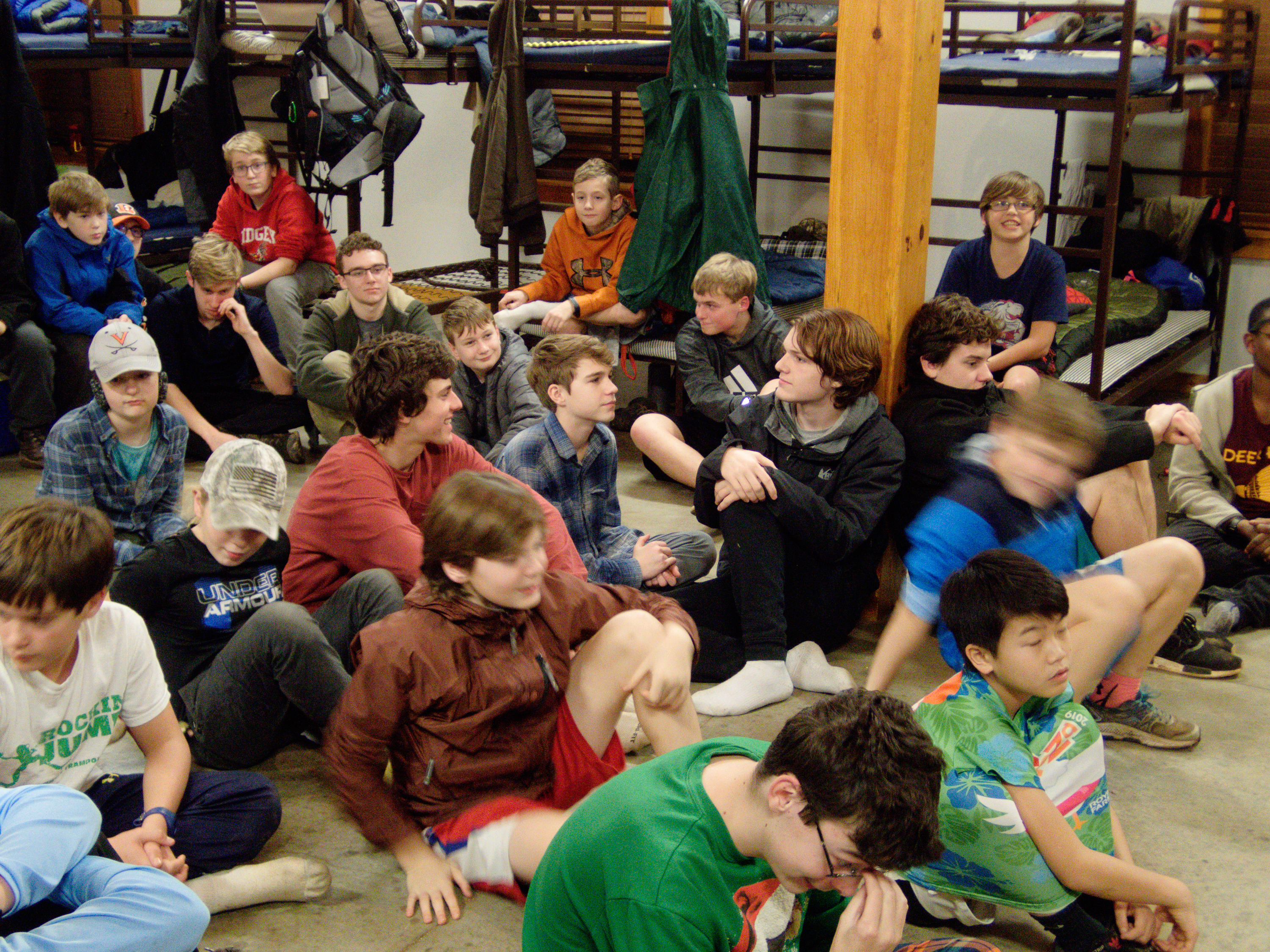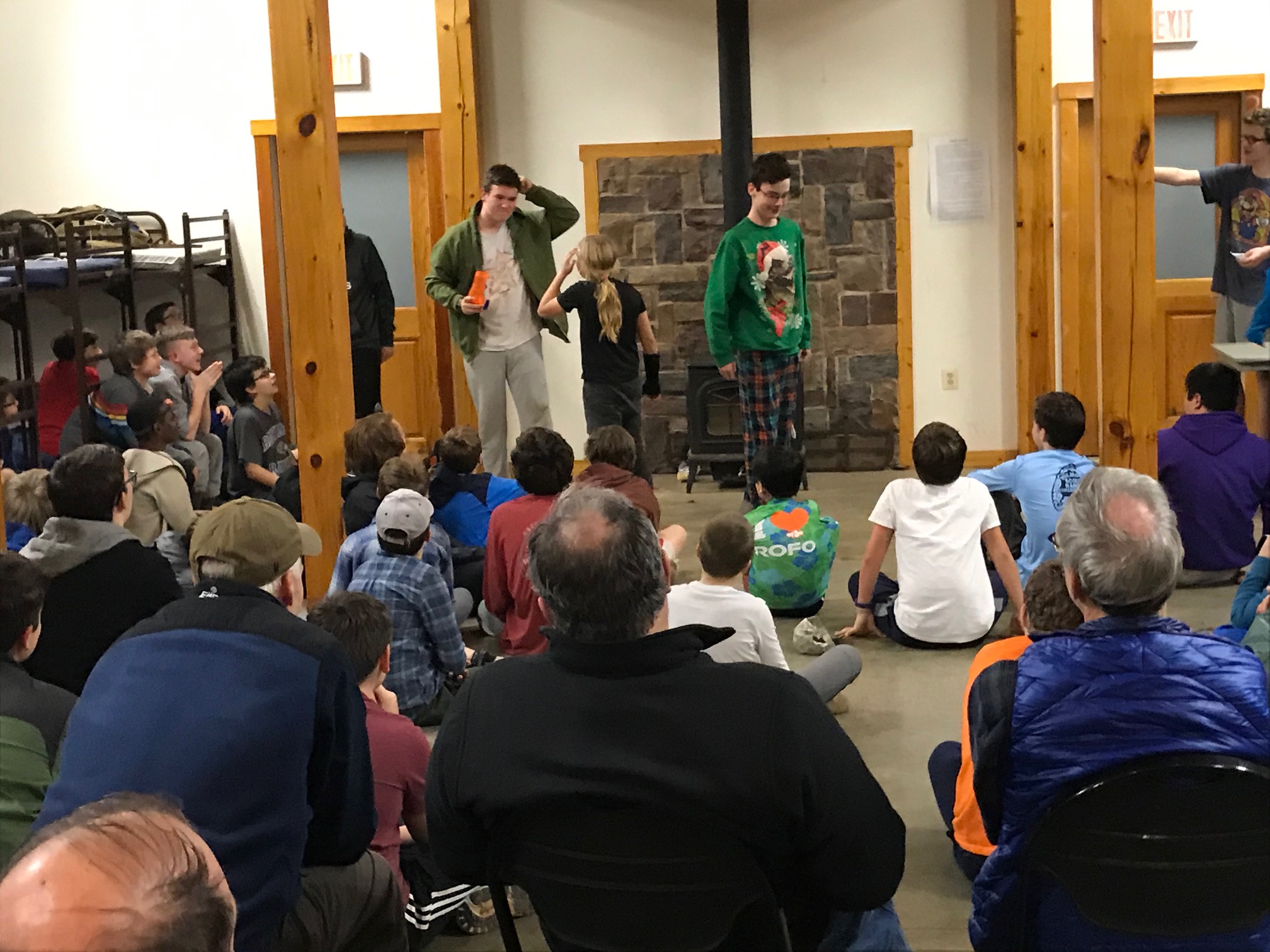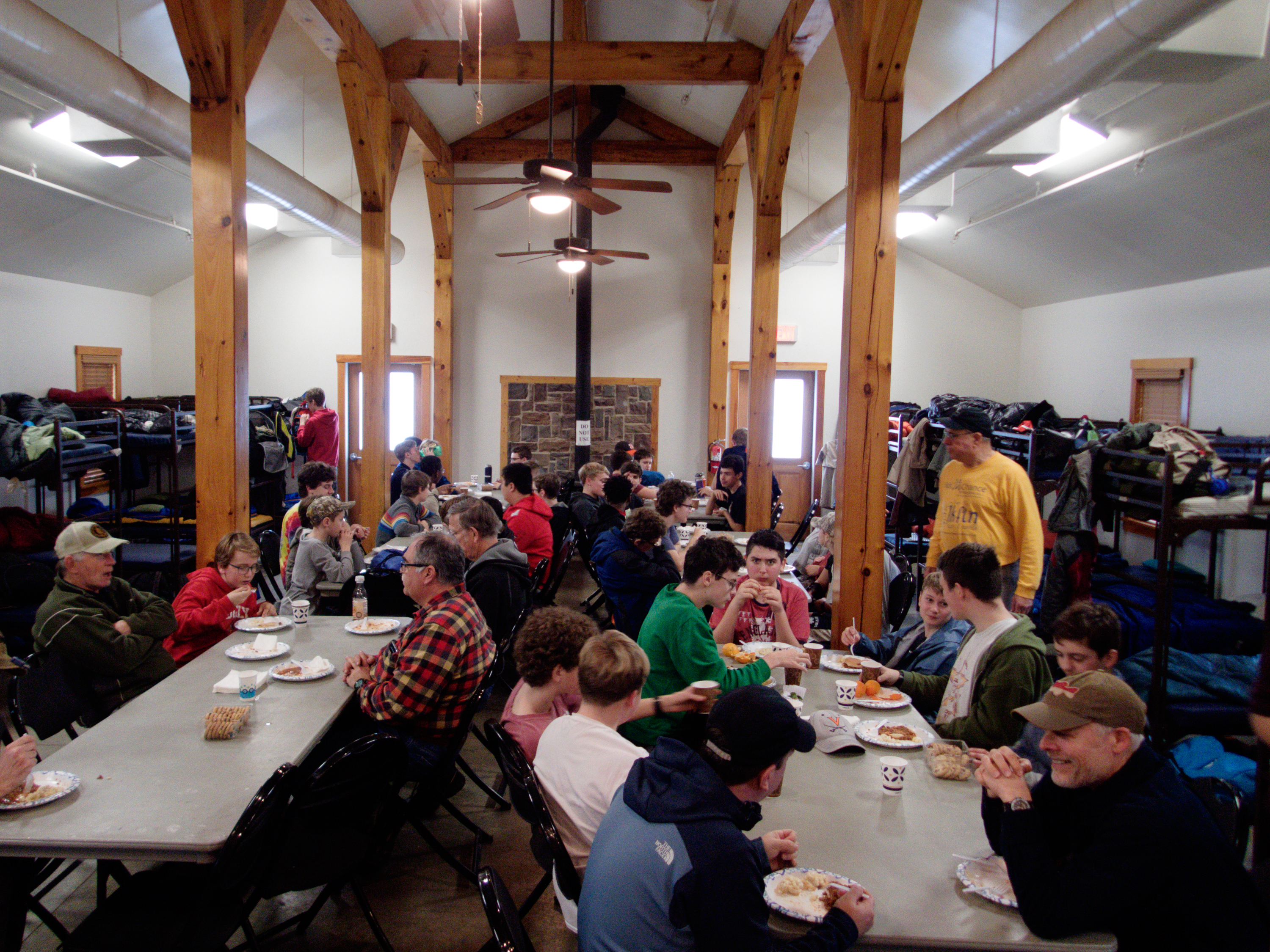 Our first camping trip of the new decade was to Camp Snyder in Haymarket, VA. It was our first time at this Capital Council camp. The camp is on about 400 acres within minutes of I-66 west of DC. There are tent campsites in the woods but we stayed in two bunk houses that are used to house the youth staff during the summer. They have 14 bunk beds in the main room and two small rooms in the back with two bunk beds each for a total of 36 beds in each building. There is a nice kitchen area at one end of the main room and space down the middle of the room for tables and chairs. There was also a grass area adjacent to one building with room for the 11 tents adults set up.The theme for the weekend was team building. The boys played a number of team games and team building activities. We also had a demonstration of flying drones by a very experienced FAA licensed remote pilot who is creating a drone program for the council.