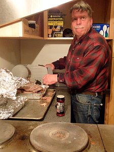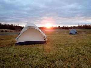 The weather was not the best but we didn't let it curtail our activities. It rained off and on all day Friday so the camp was wet when we arrived and it continue to rain throughout the night. It was a warm January night with a low of only 48. Saturday temperatures reached into the 60s with rain on and off all day. A front camp through Saturday night bring strong winds the shook the tents as strong as any weekend at Assateague and continued all night. The low on Sunday morning dropped to 27°F - a 21°F difference from the previous morning.