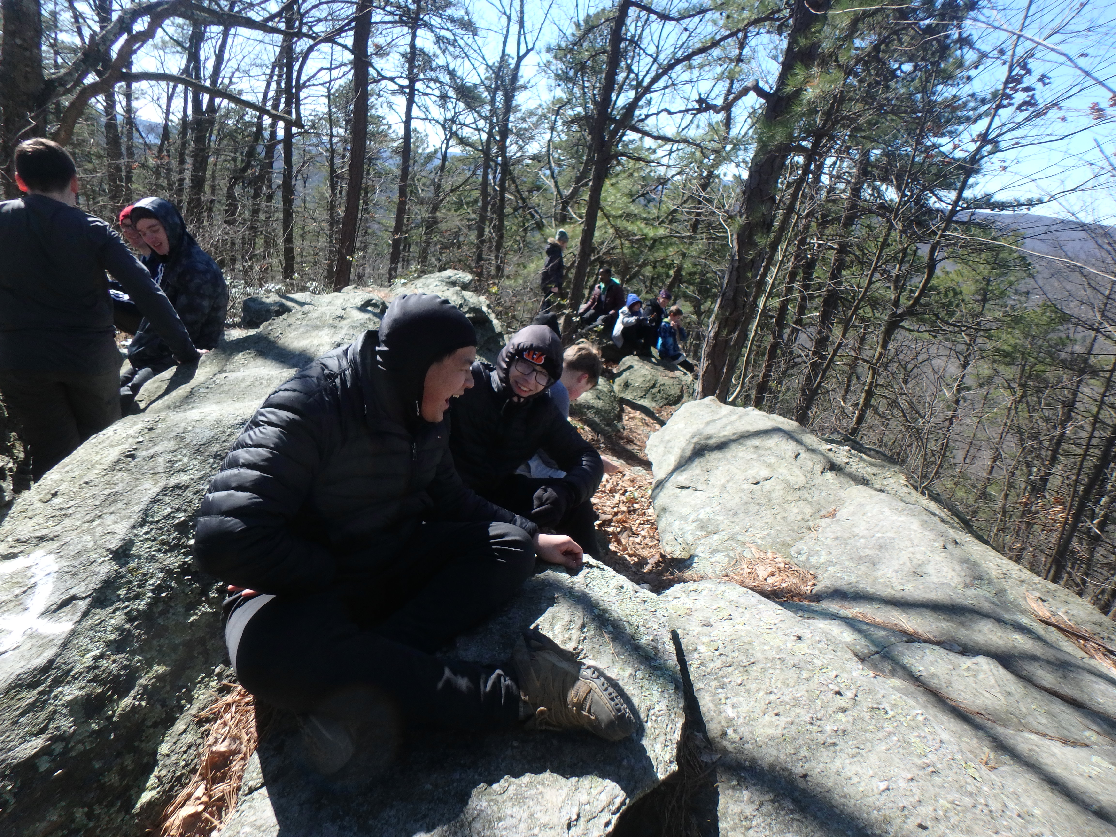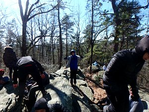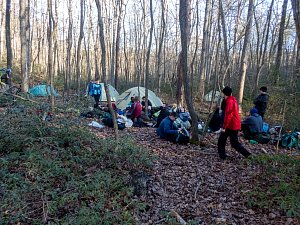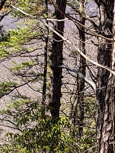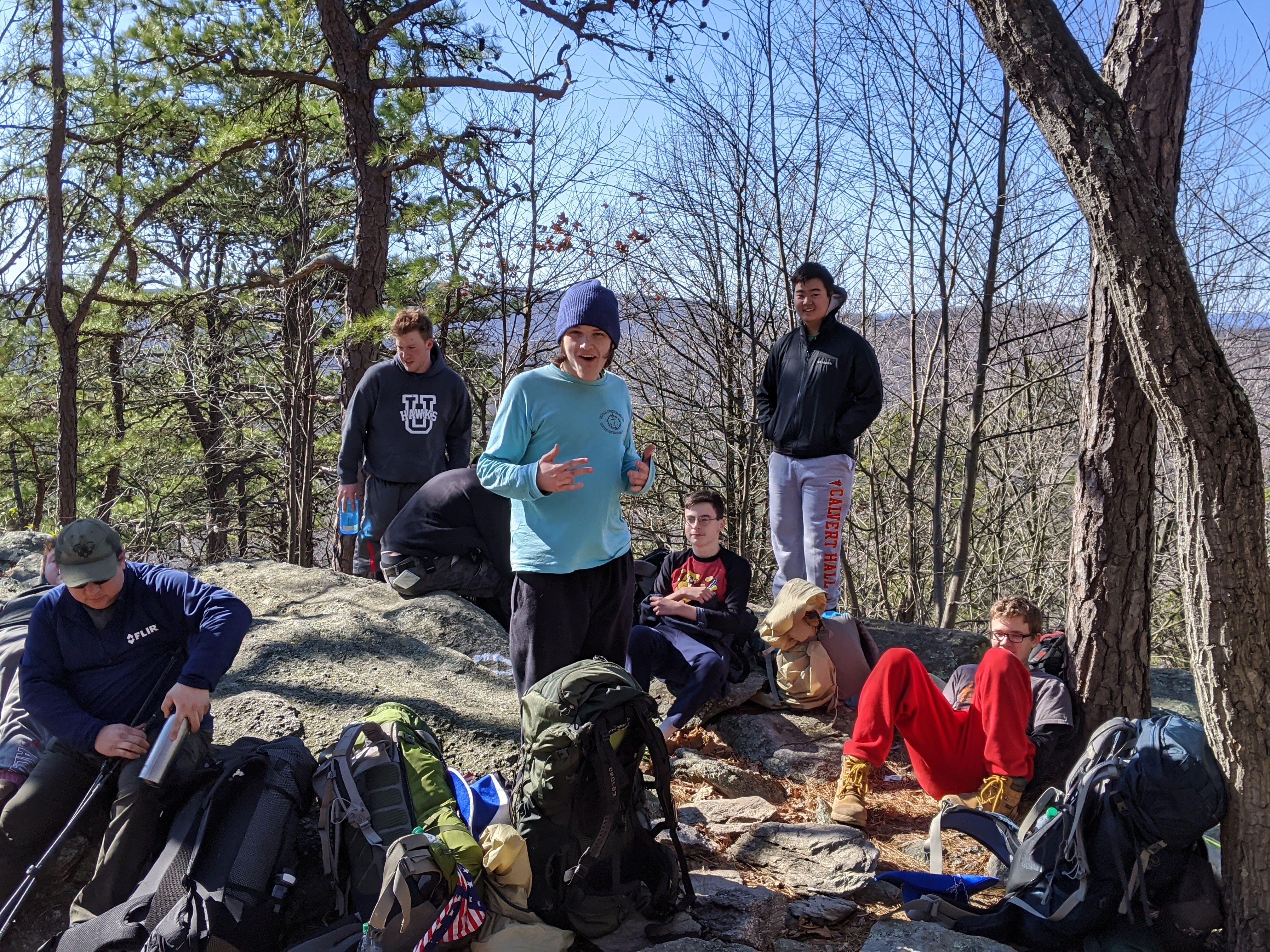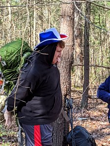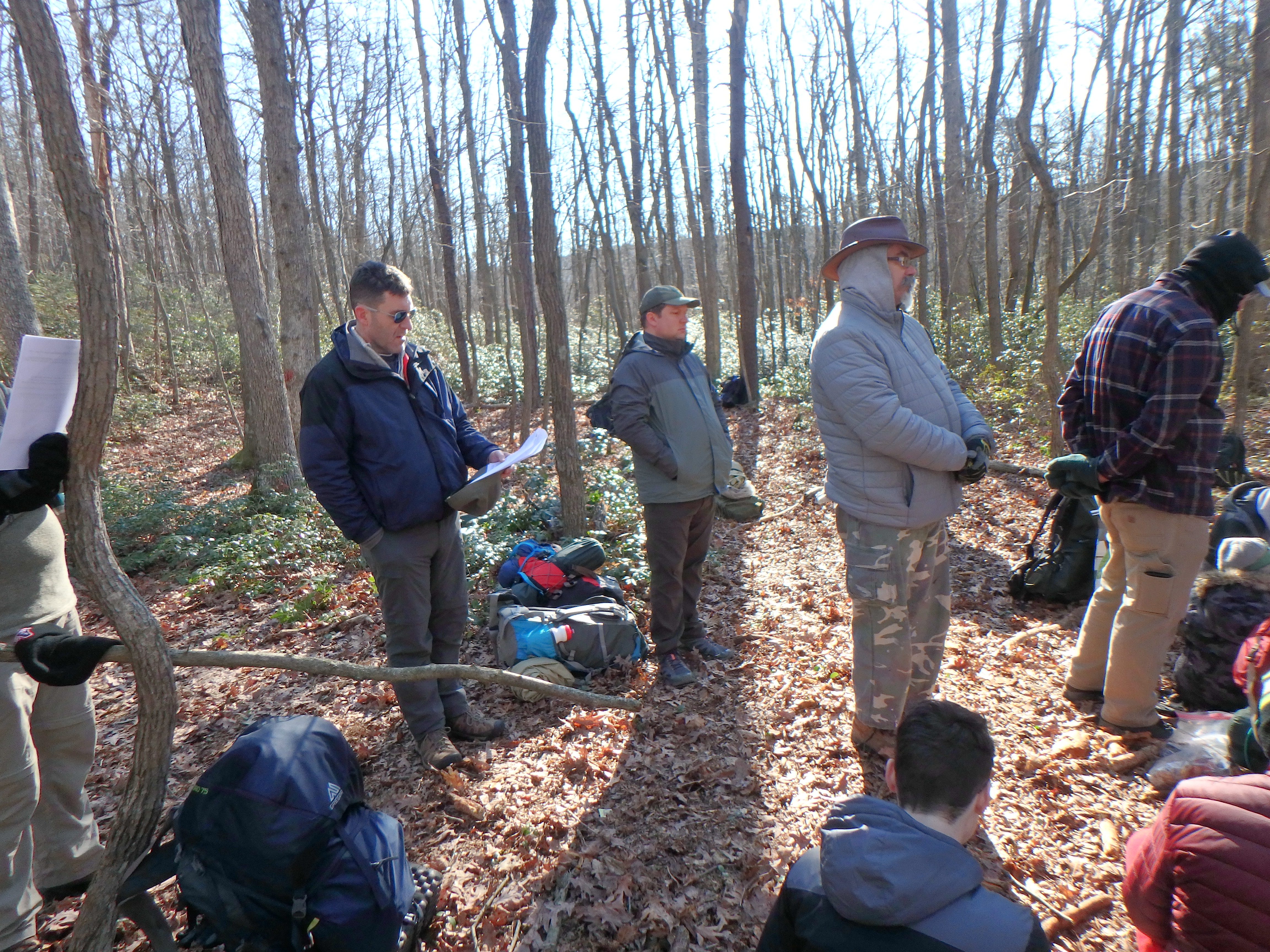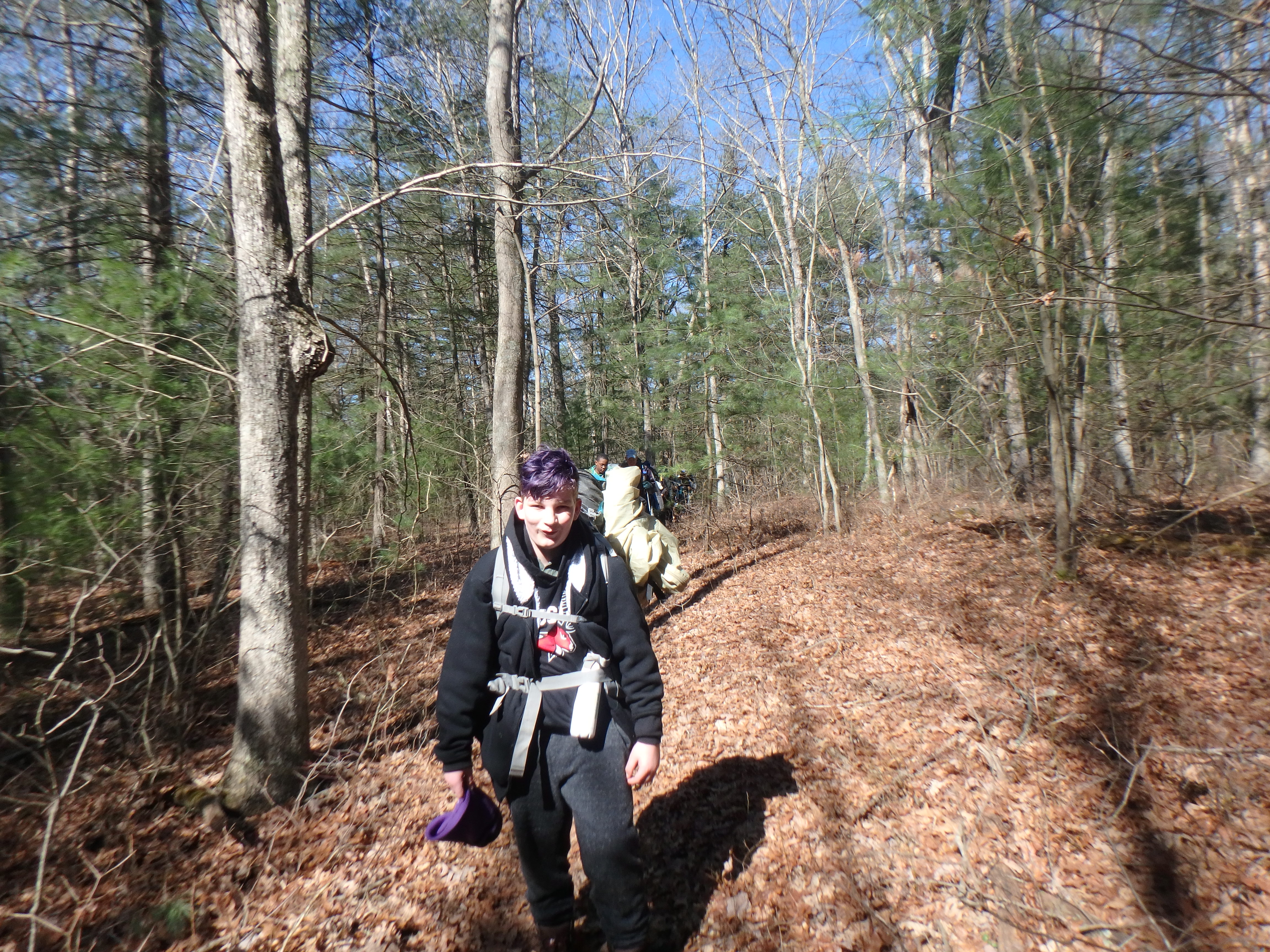 Our March camping trip was a spring backpacking trip along the Appalachian Trail in Pennsylvania. The short hikers walked about 6.5 miles north starting at the AT Trailhead parking on RT-34 just south of Hunters Run. The long hikers started about 5 miles south on a side trail which climbed to the AT and continued north to the starting location of the short hike and continued north along the same route. Both groups camped in a primitive area of the woods near a stream on Camp Tuckahoe property. We pitched our tents in between Mountain Laurel bushes wherever there was enough room. Unfortunately we could not have a fire but we did cook meals over backpacking stoves.It rained on Friday before we left but was mostly clear as we headed north to our campsite at Piney Mountain Ridge southeast of of Pine Grove Furnace. It was windy during the night and we had brief snow flurries without any snow accumulation. The temperature dropped to 28°F on Saturday morning and 24°F on Sunday morning. Temperatures reached into the 50s both days under bright, sunny skies.