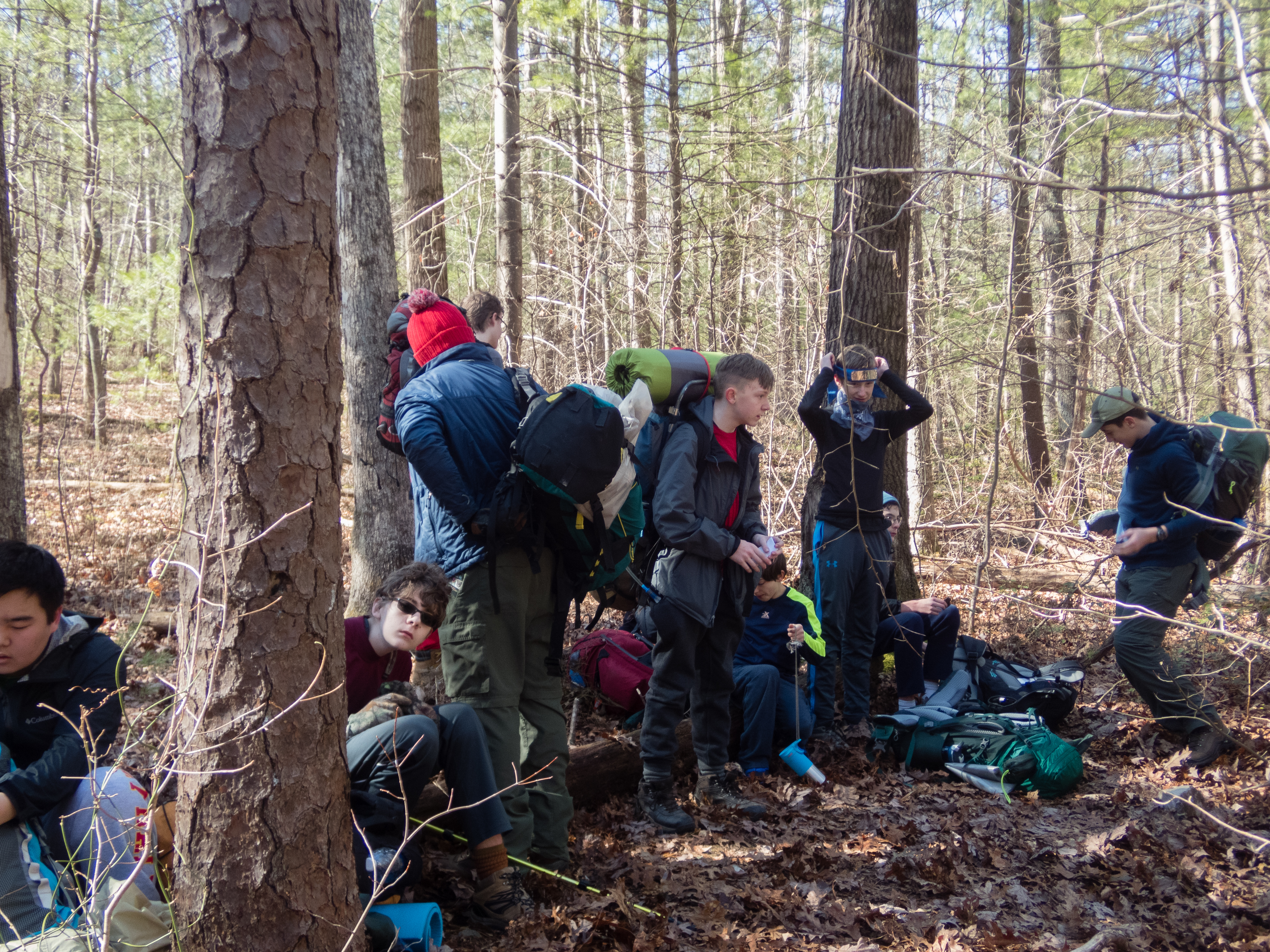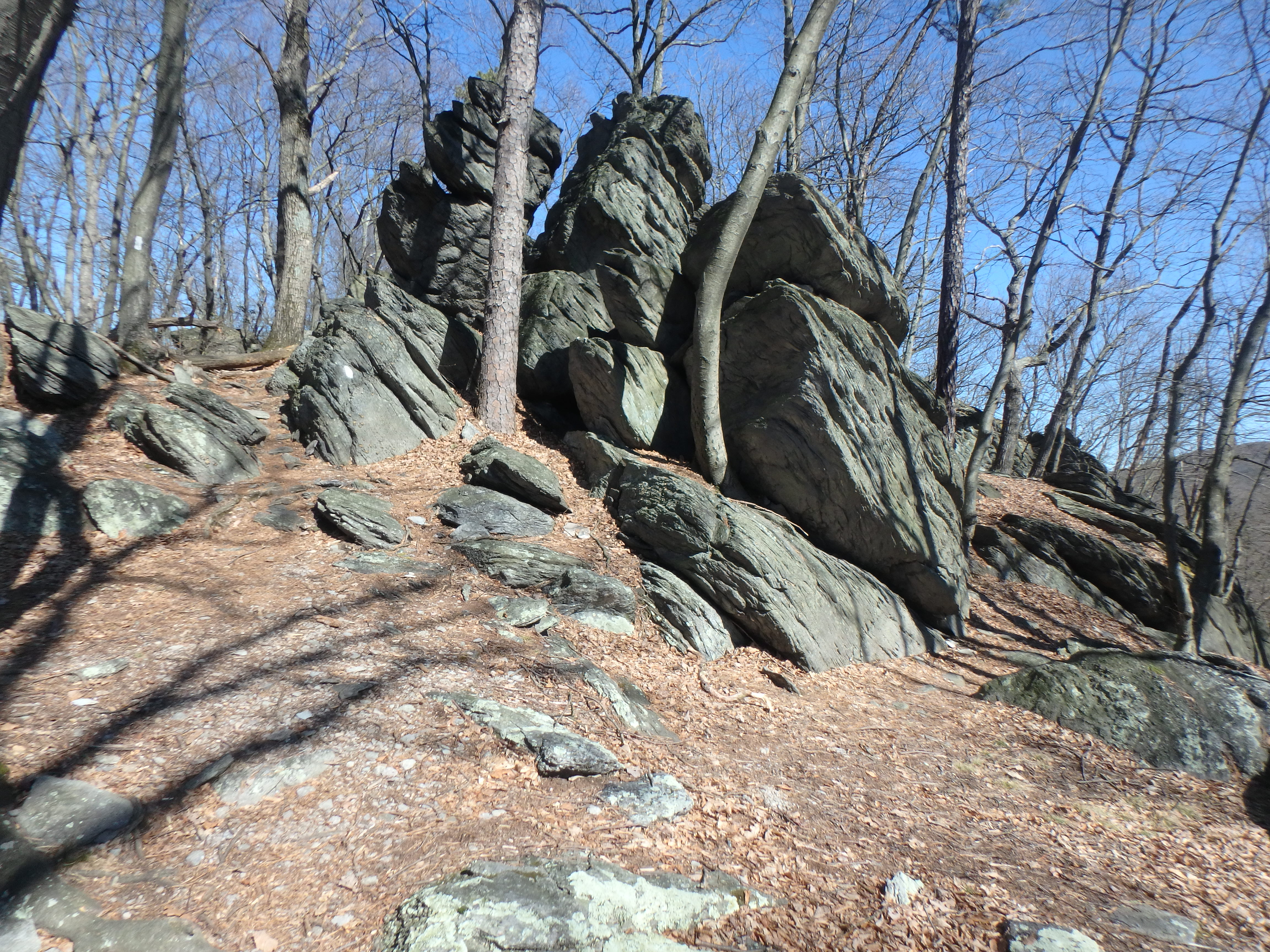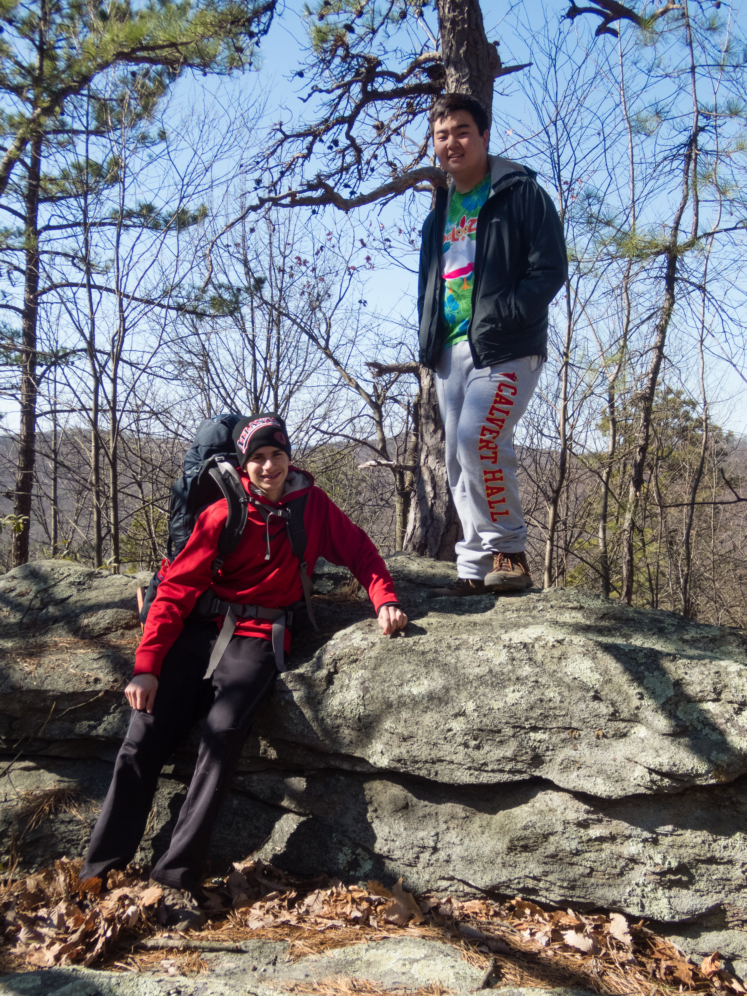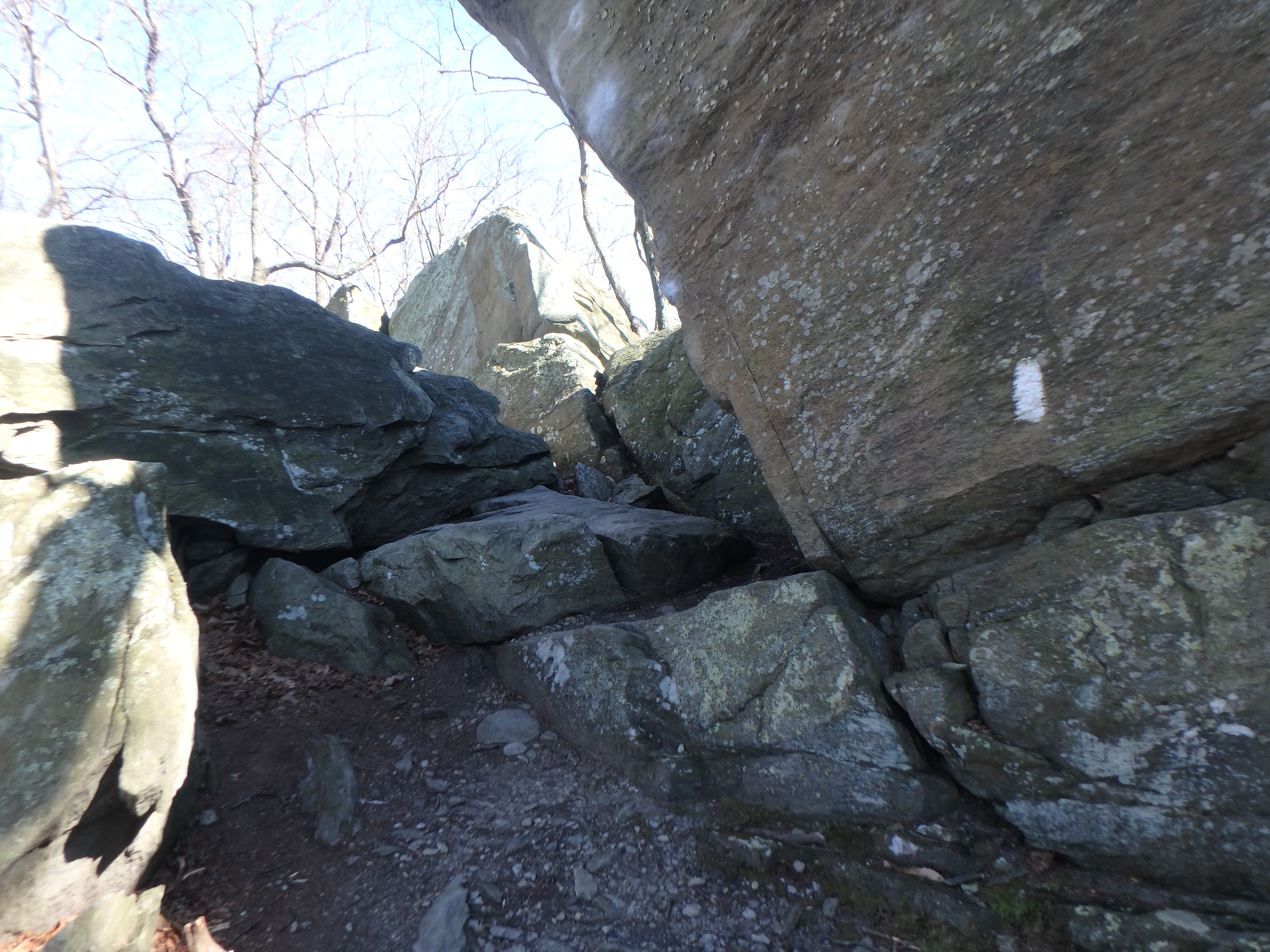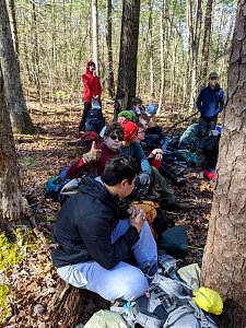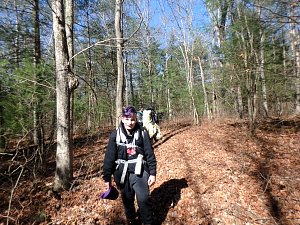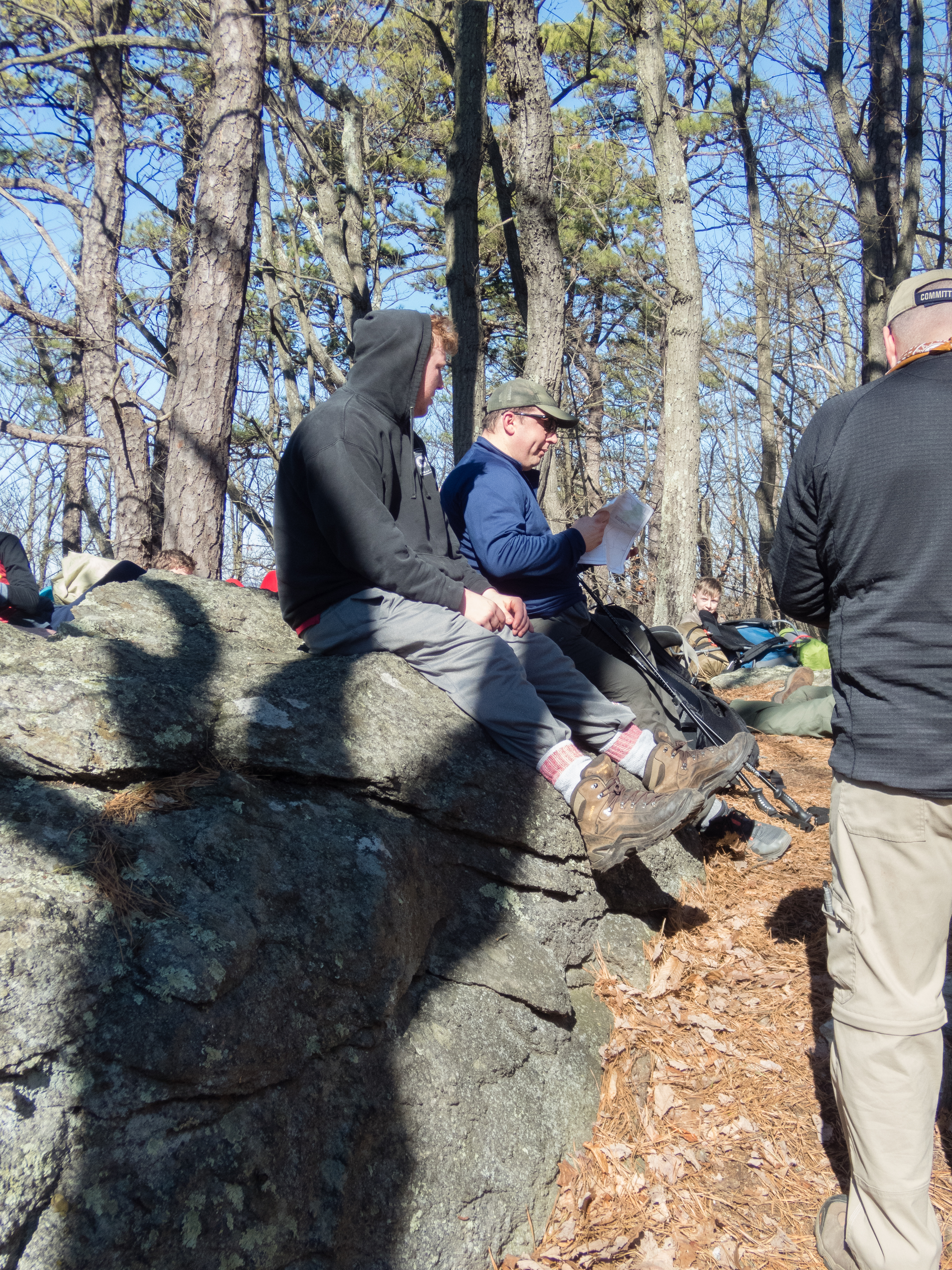 Our March camping trip was a spring backpacking trip along the Appalachian Trail in Pennsylvania. The short hikers walked about 6.5 miles north starting at the AT Trailhead parking on RT-34 just south of Hunters Run. The long hikers started about 5 miles south on a side trail which climbed to the AT and continued north to the starting location of the short hike and continued north along the same route. Both groups camped in a primitive area of the woods near a stream on Camp Tuckahoe property. We pitched our tents in between Mountain Laurel bushes wherever there was enough room. Unfortunately we could not have a fire but we did cook meals over backpacking stoves.It rained on Friday before we left but was mostly clear as we headed north to our campsite at Piney Mountain Ridge southeast of of Pine Grove Furnace. It was windy during the night and we had brief snow flurries without any snow accumulation. The temperature dropped to 28°F on Saturday morning and 24°F on Sunday morning. Temperatures reached into the 50s both days under bright, sunny skies.