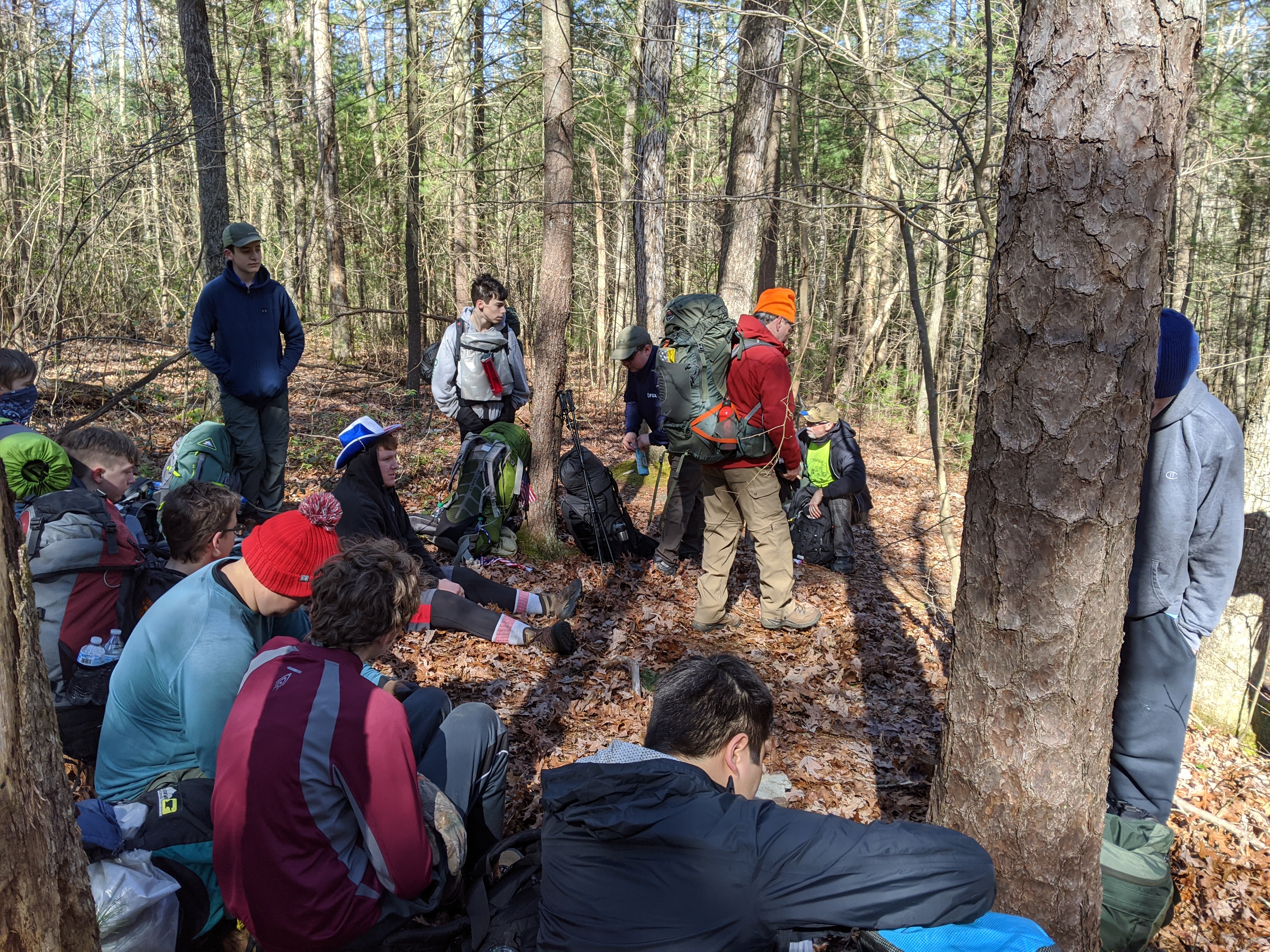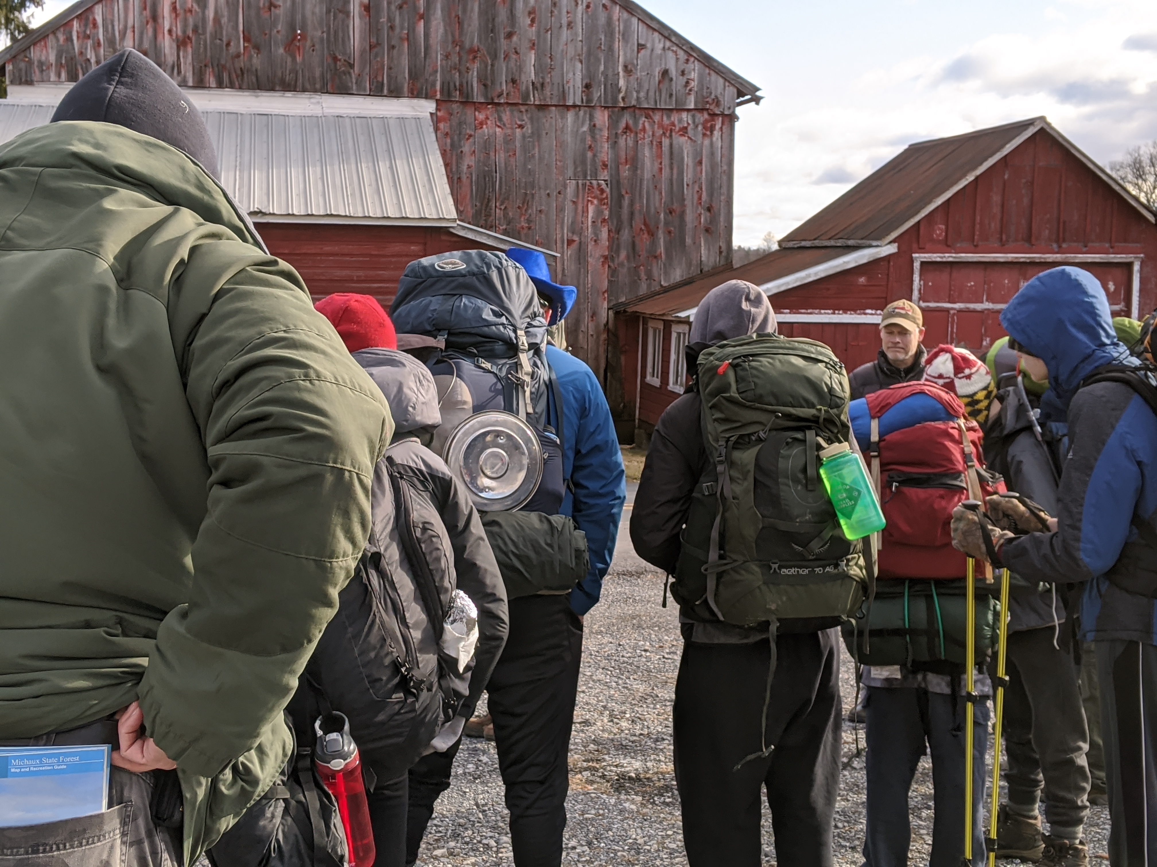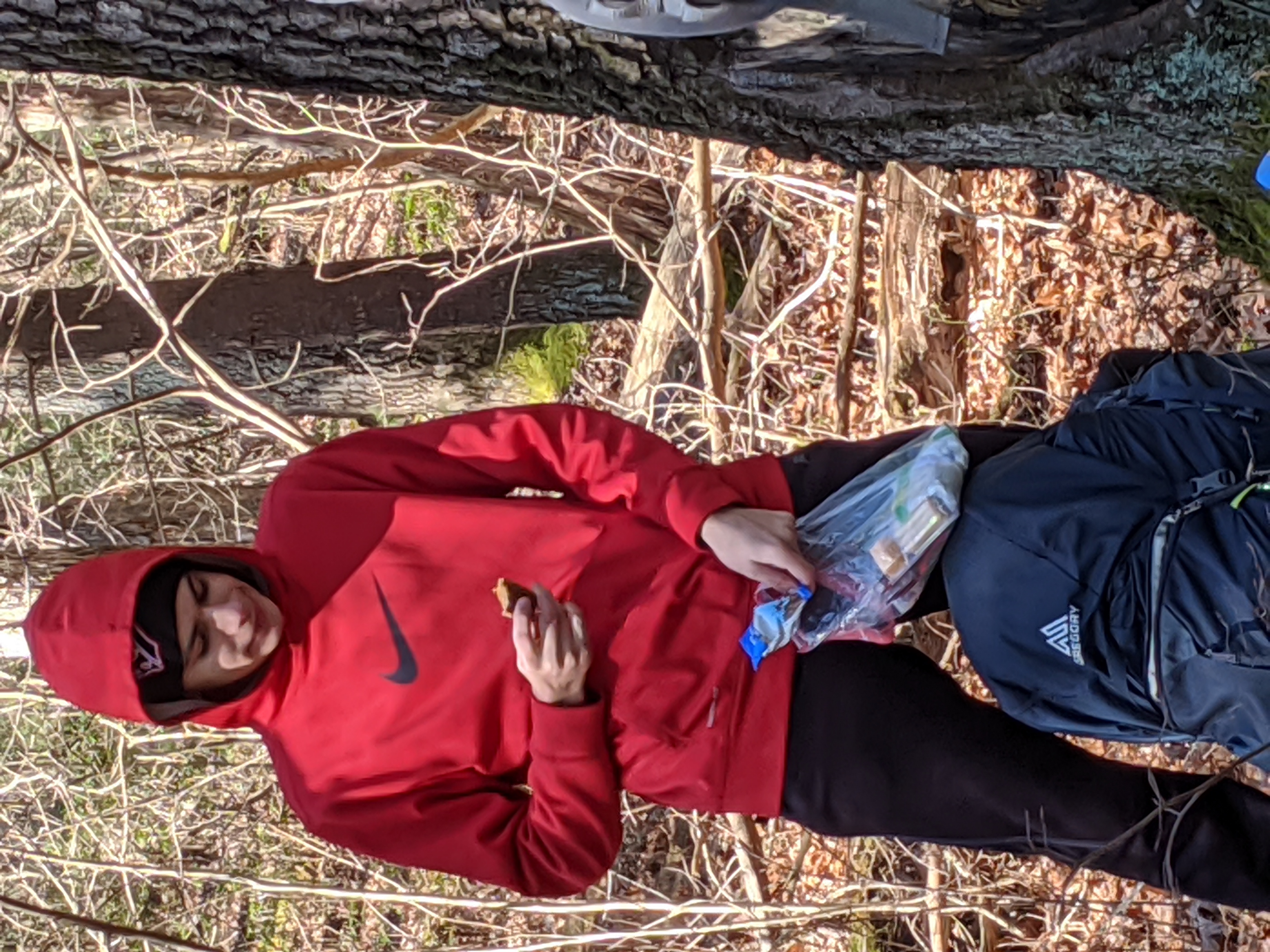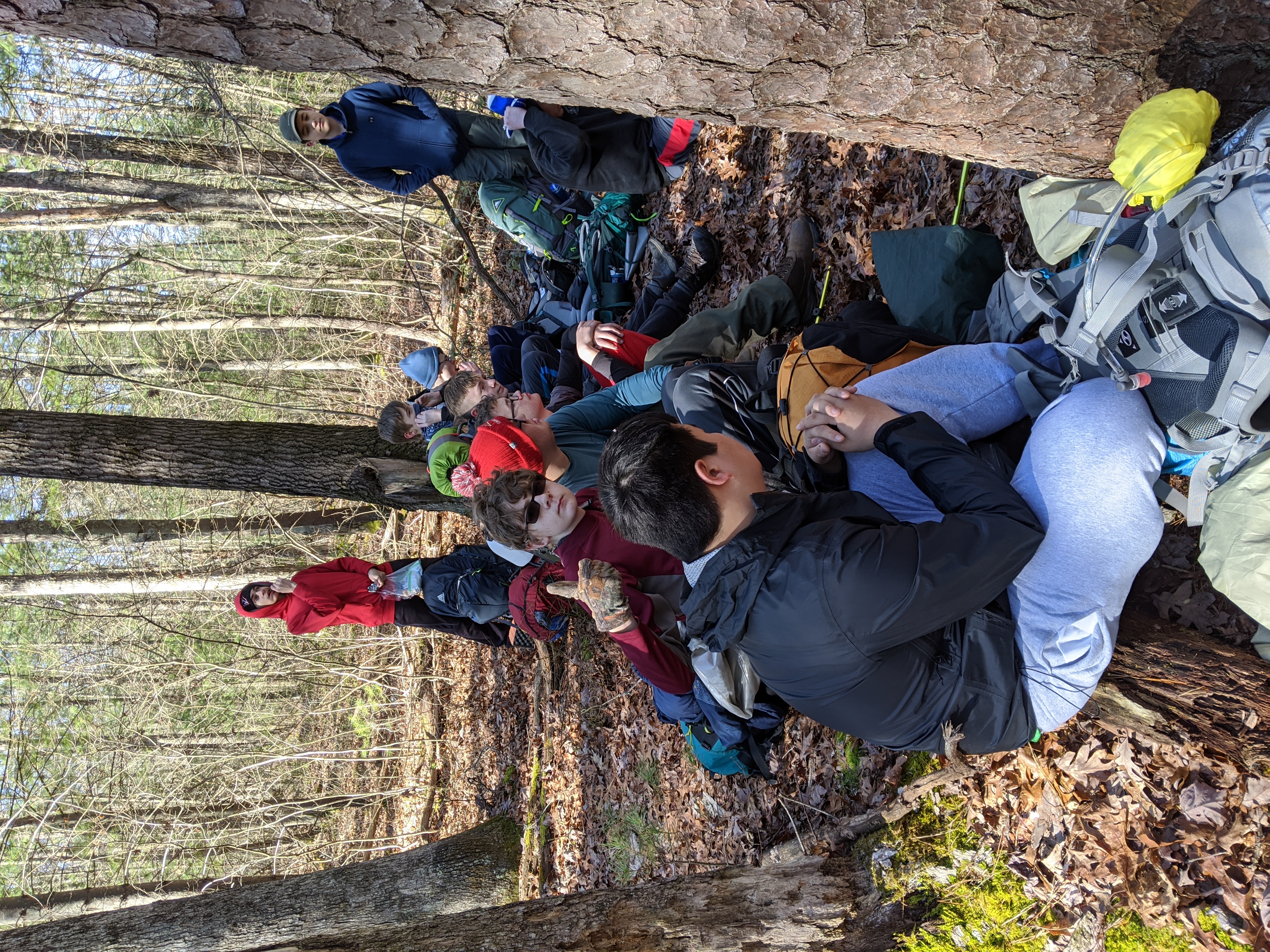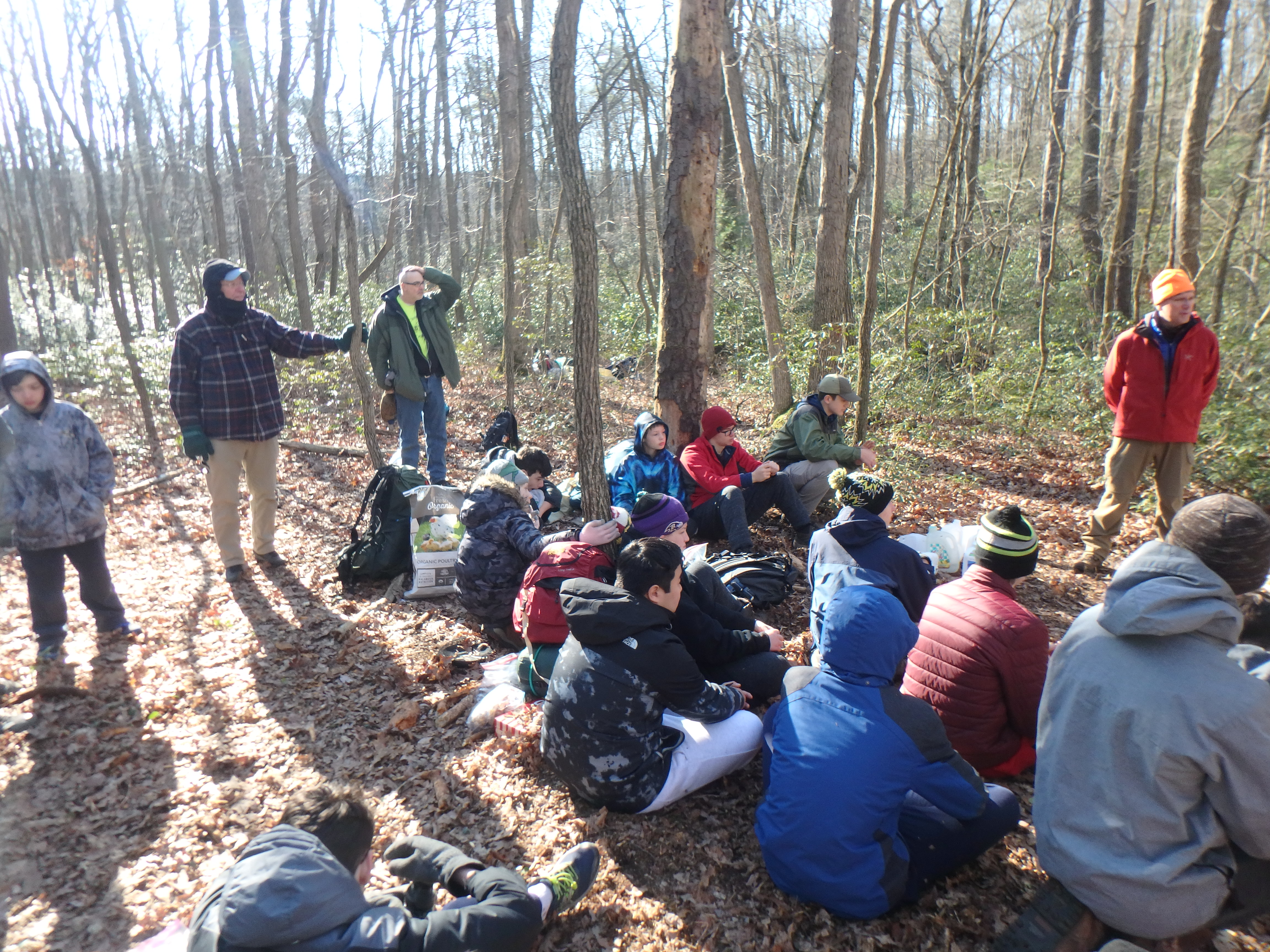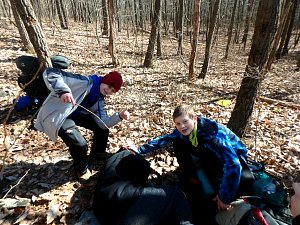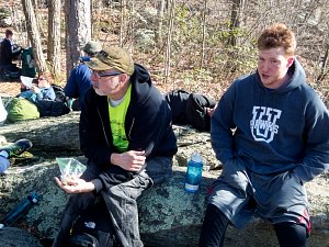 Our March camping trip was a spring backpacking trip along the Appalachian Trail in Pennsylvania. The short hikers walked about 6.5 miles north starting at the AT Trailhead parking on RT-34 just south of Hunters Run. The long hikers started about 5 miles south on a side trail which climbed to the AT and continued north to the starting location of the short hike and continued north along the same route. Both groups camped in a primitive area of the woods near a stream on Camp Tuckahoe property. We pitched our tents in between Mountain Laurel bushes wherever there was enough room. Unfortunately we could not have a fire but we did cook meals over backpacking stoves.It rained on Friday before we left but was mostly clear as we headed north to our campsite at Piney Mountain Ridge southeast of of Pine Grove Furnace. It was windy during the night and we had brief snow flurries without any snow accumulation. The temperature dropped to 28°F on Saturday morning and 24°F on Sunday morning. Temperatures reached into the 50s both days under bright, sunny skies.