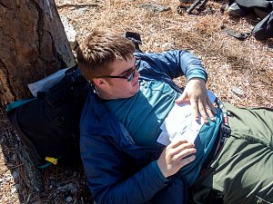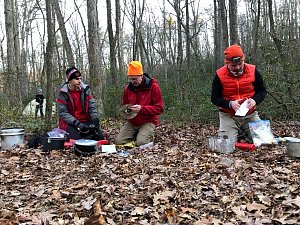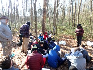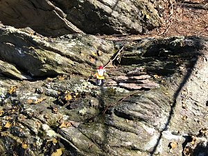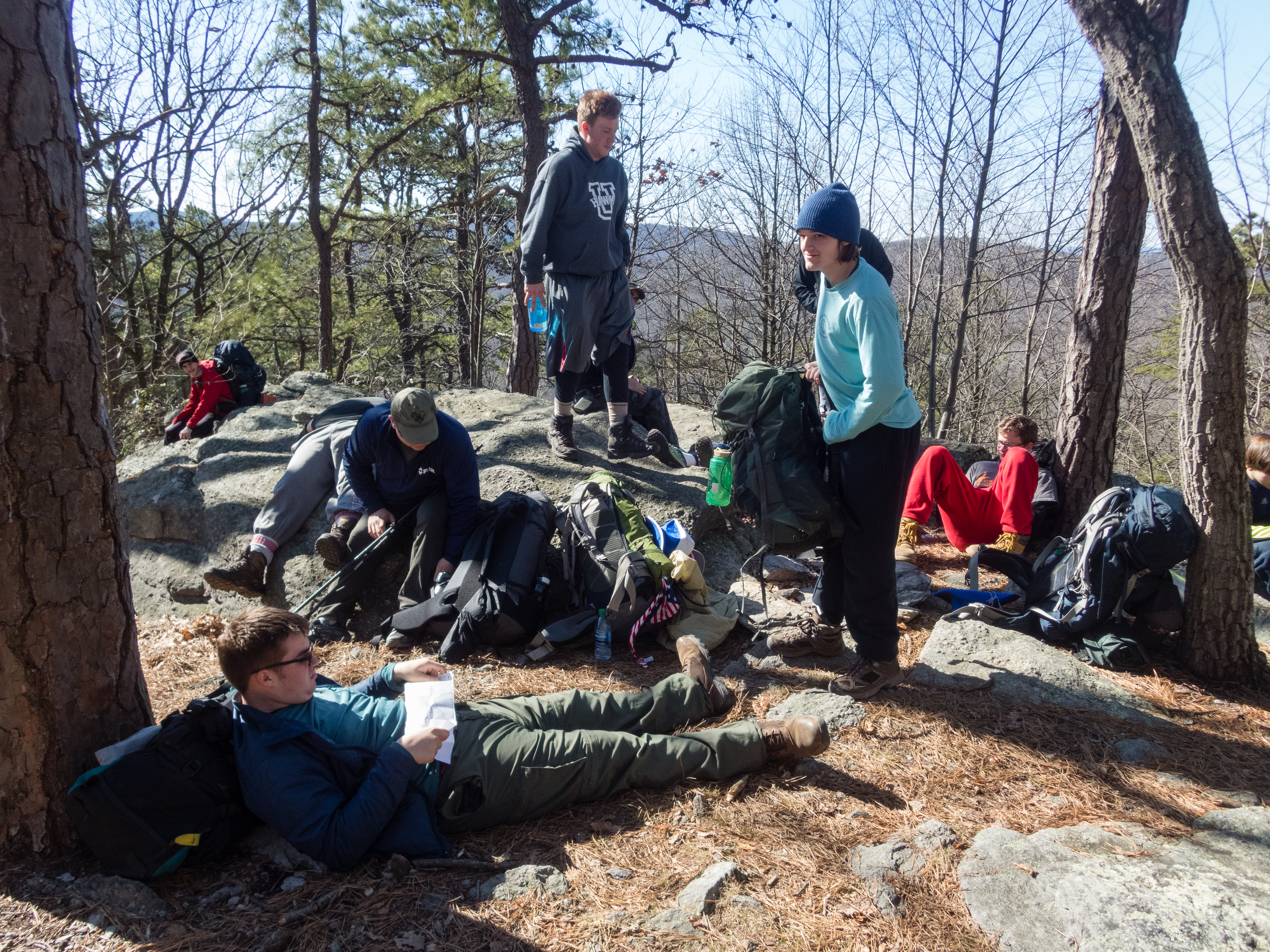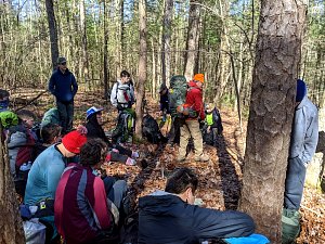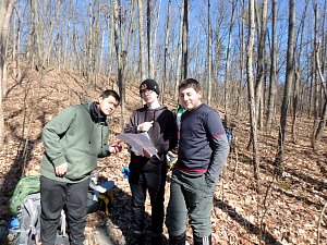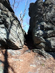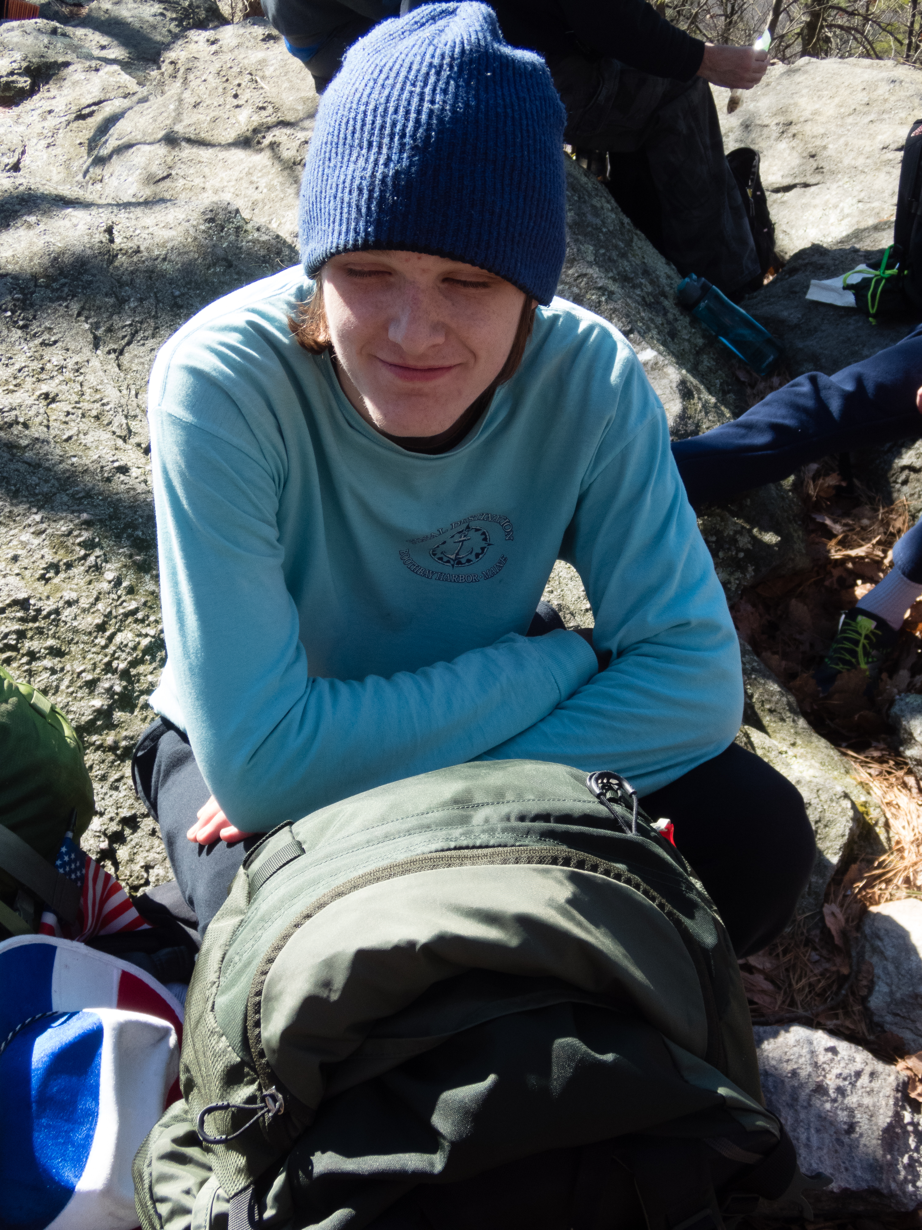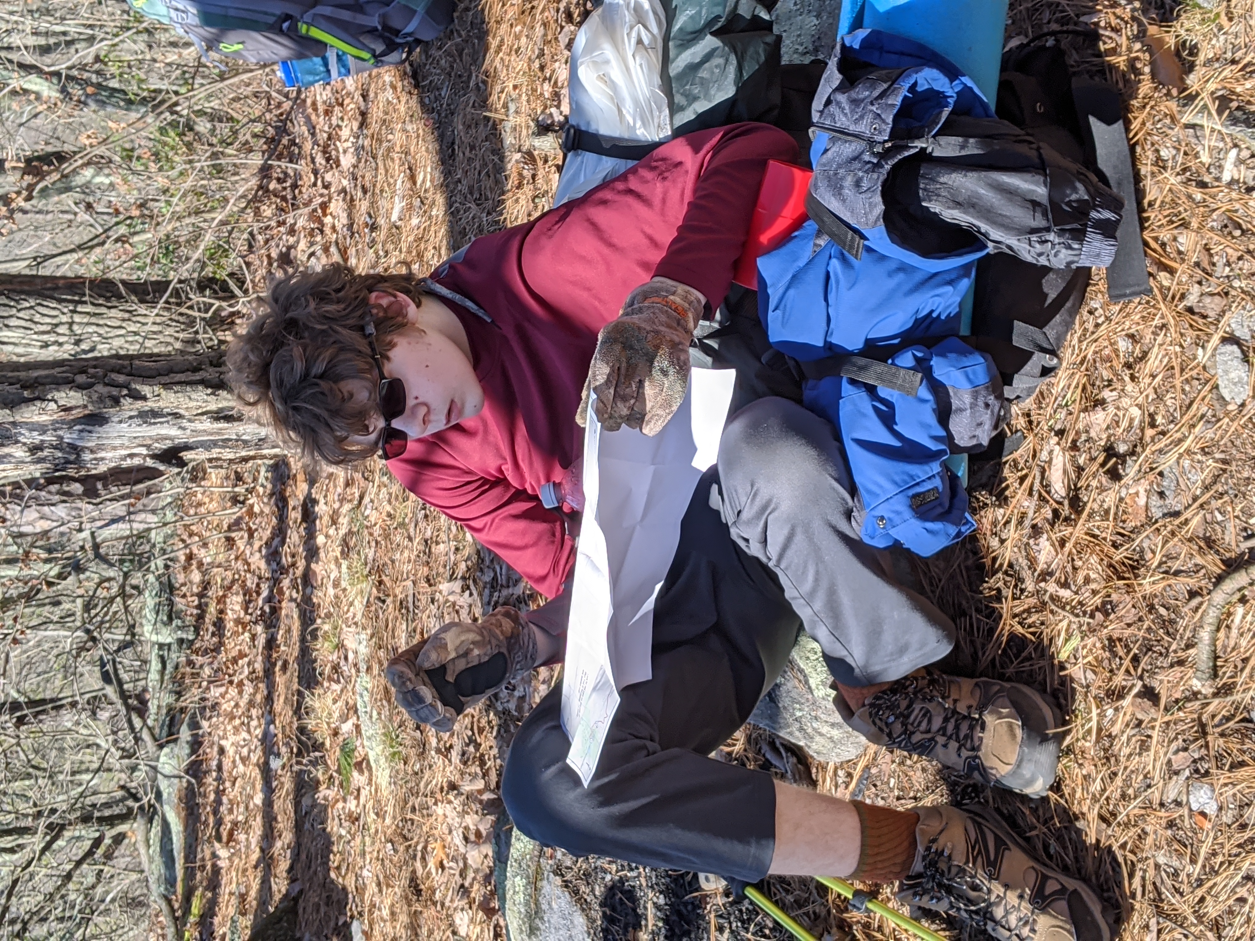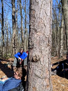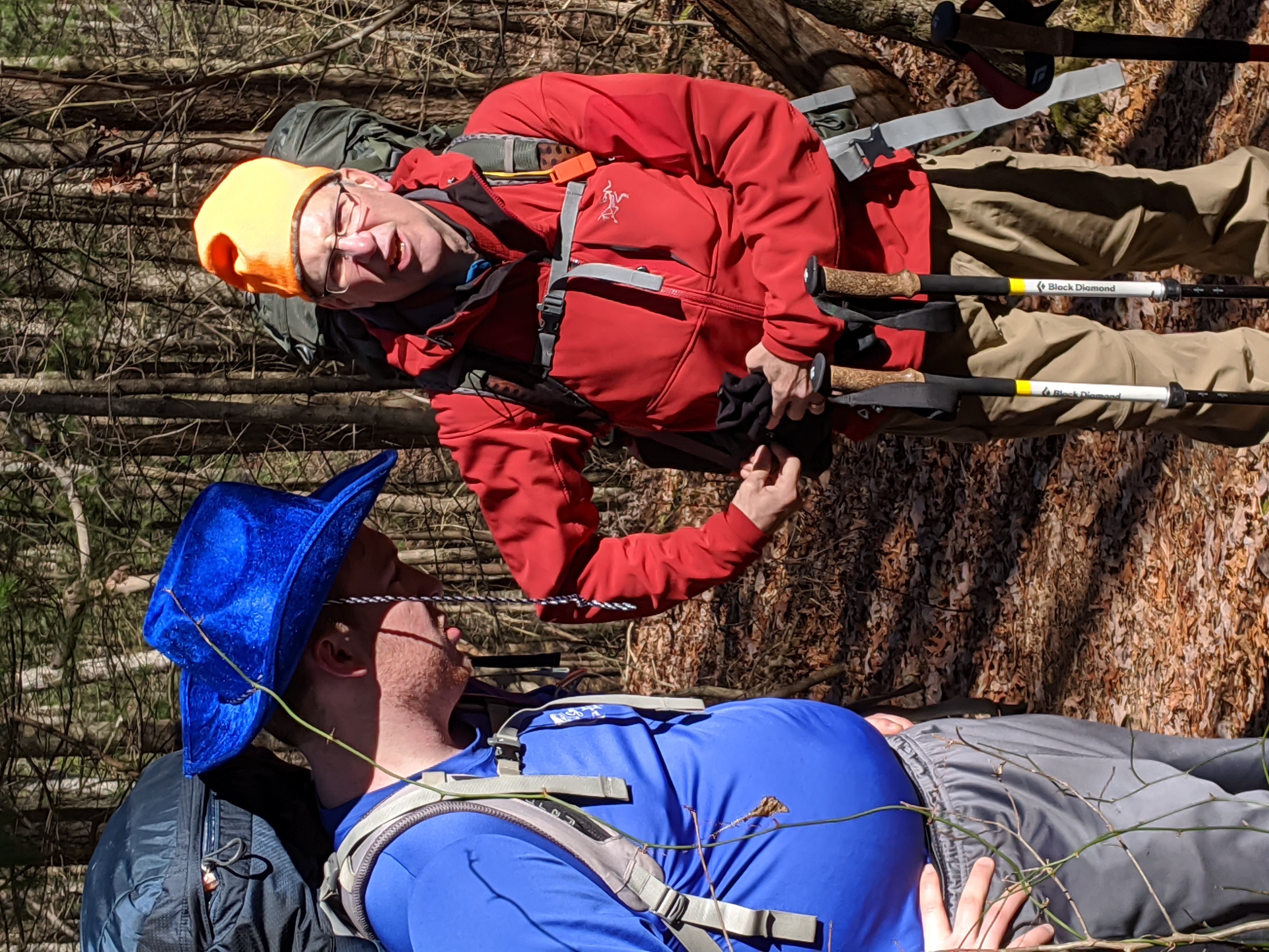 Our March camping trip was a spring backpacking trip along the Appalachian Trail in Pennsylvania. The short hikers walked about 6.5 miles north starting at the AT Trailhead parking on RT-34 just south of Hunters Run. The long hikers started about 5 miles south on a side trail which climbed to the AT and continued north to the starting location of the short hike and continued north along the same route. Both groups camped in a primitive area of the woods near a stream on Camp Tuckahoe property. We pitched our tents in between Mountain Laurel bushes wherever there was enough room. Unfortunately we could not have a fire but we did cook meals over backpacking stoves.It rained on Friday before we left but was mostly clear as we headed north to our campsite at Piney Mountain Ridge southeast of of Pine Grove Furnace. It was windy during the night and we had brief snow flurries without any snow accumulation. The temperature dropped to 28°F on Saturday morning and 24°F on Sunday morning. Temperatures reached into the 50s both days under bright, sunny skies.