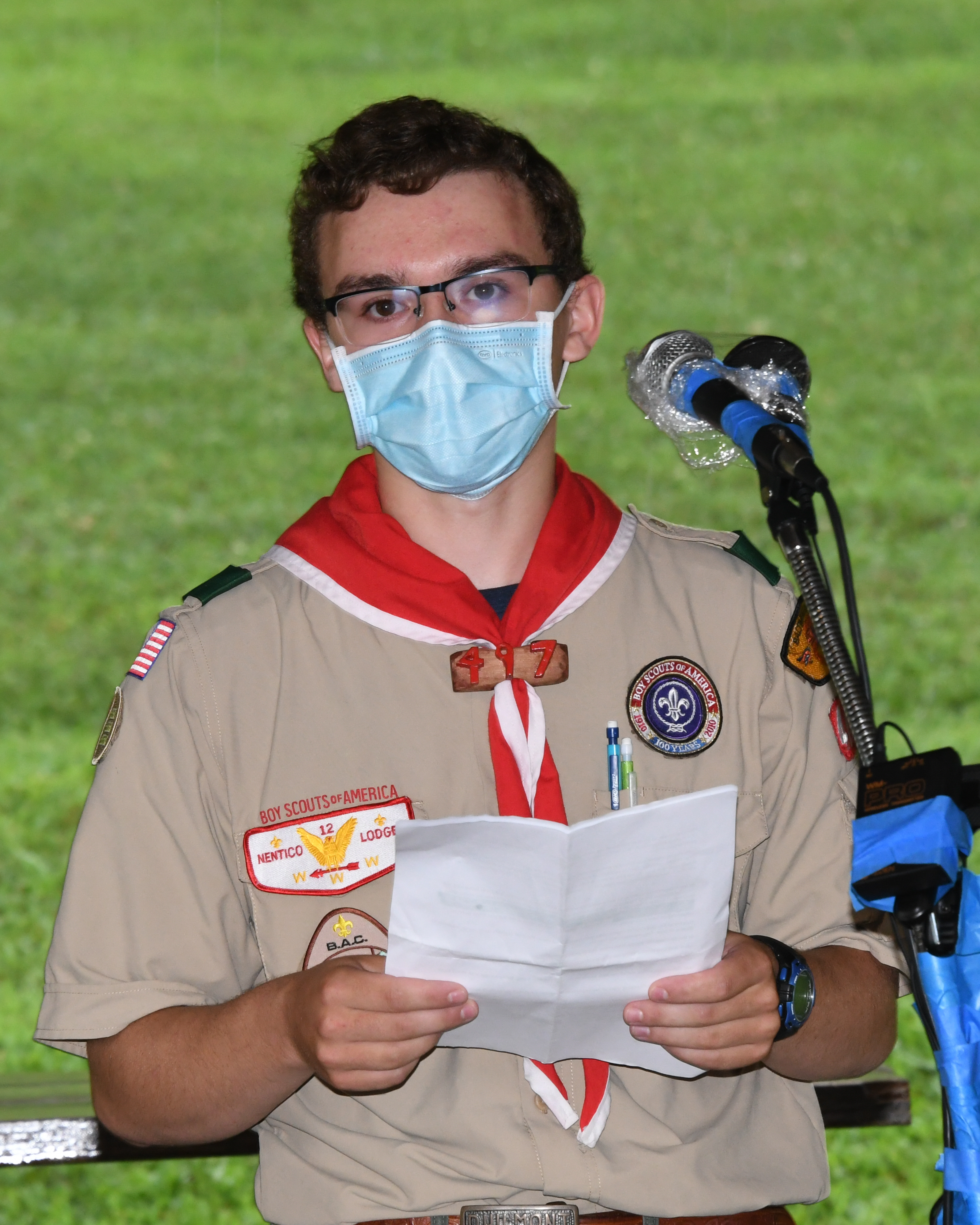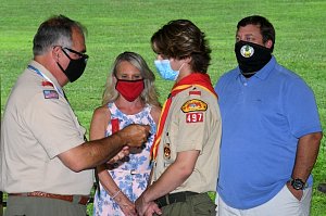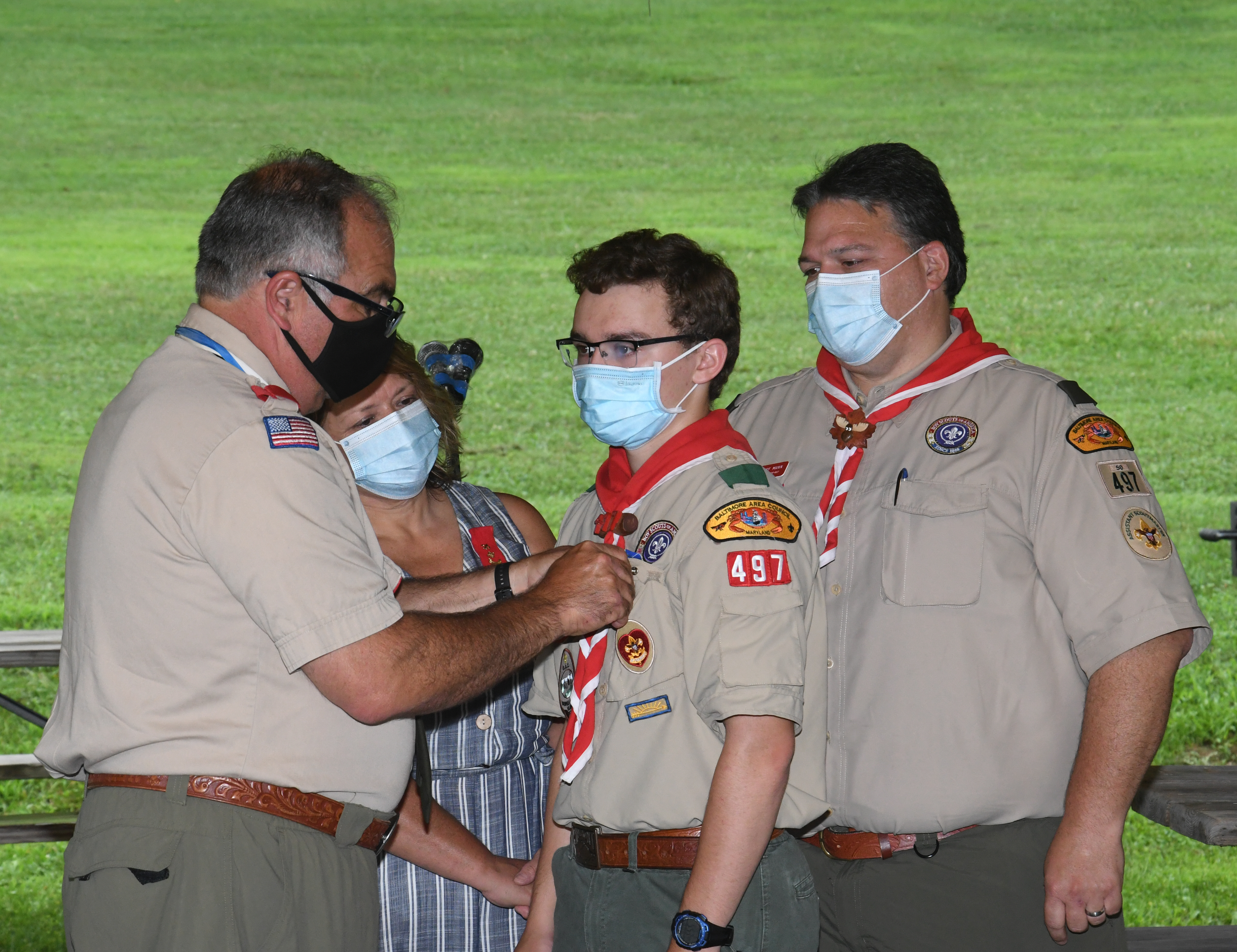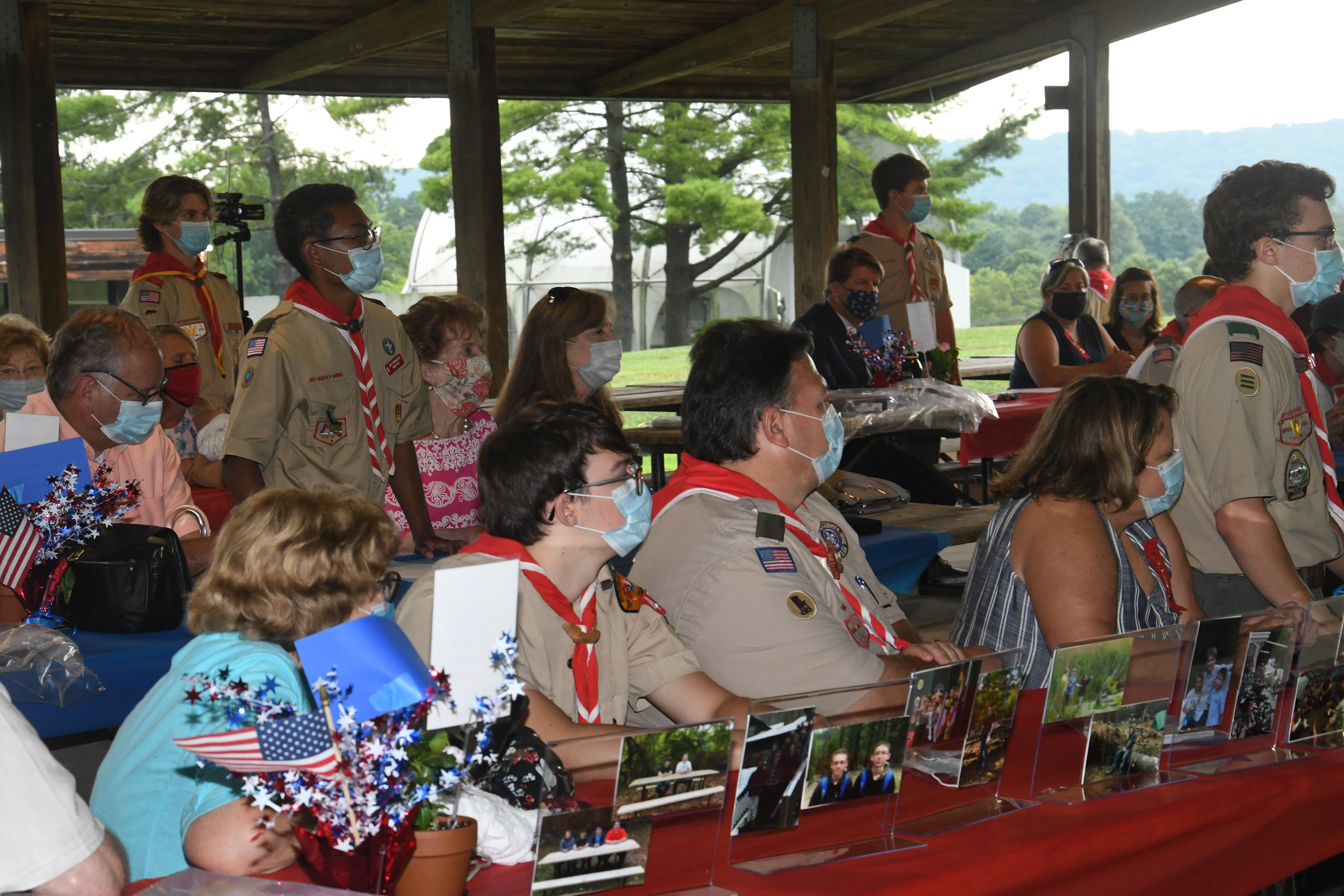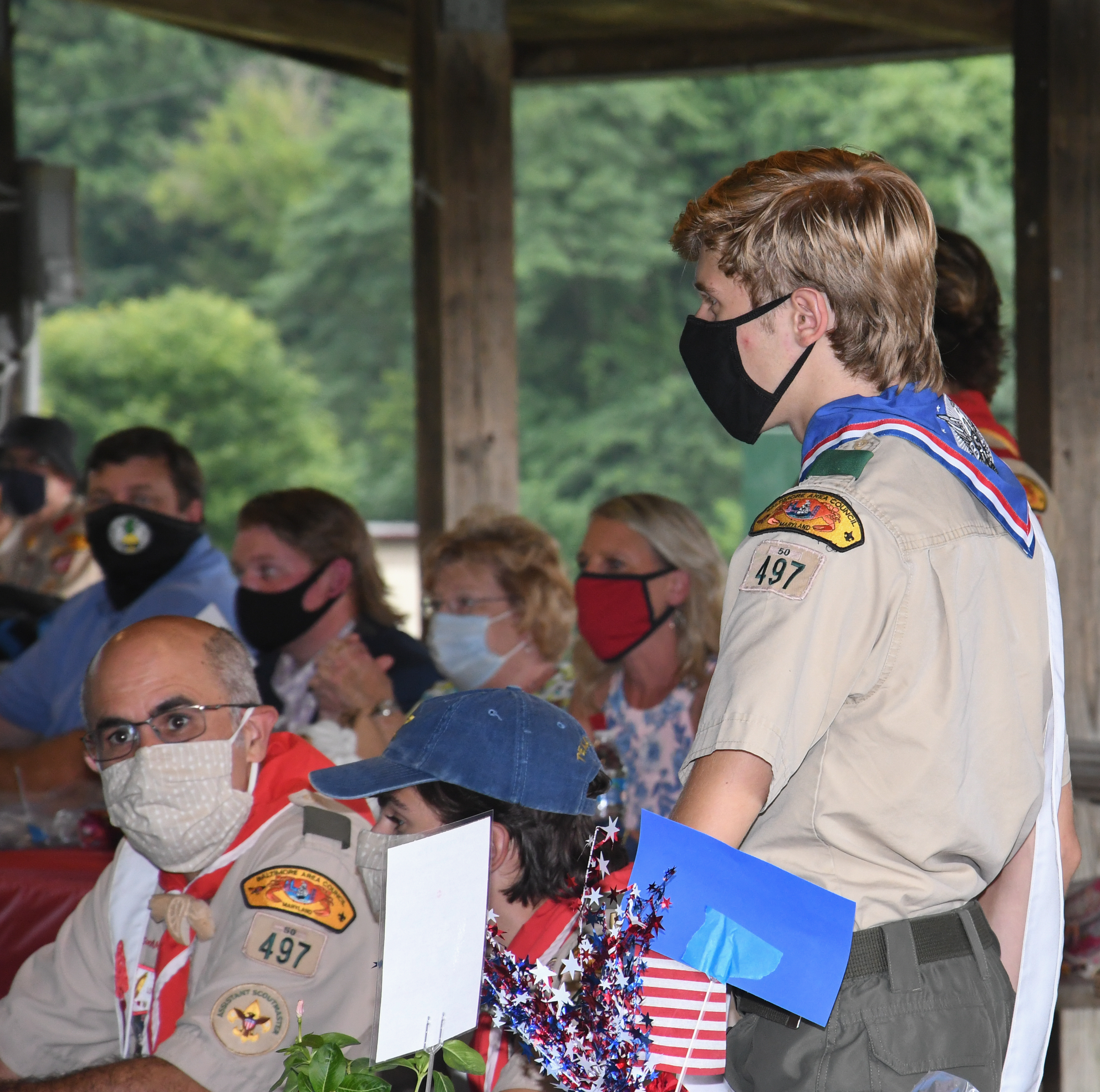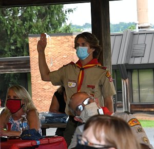 We held our spring Court of Honor at Oregon Ridge Park in August this year. Because of Covid-19 we restricted the awards to just the Eagle presentations. It was our first Court of Honor where everyone wore mask!.