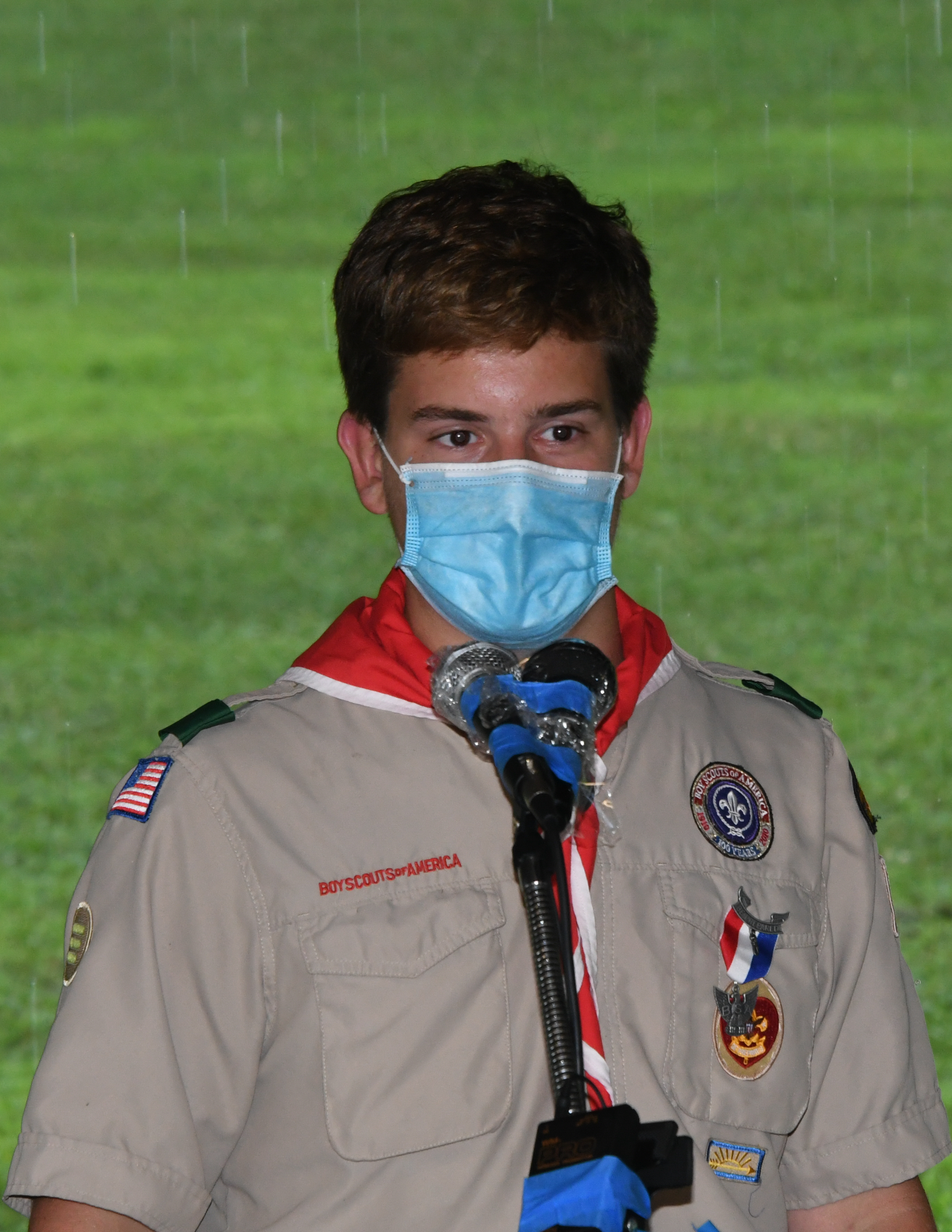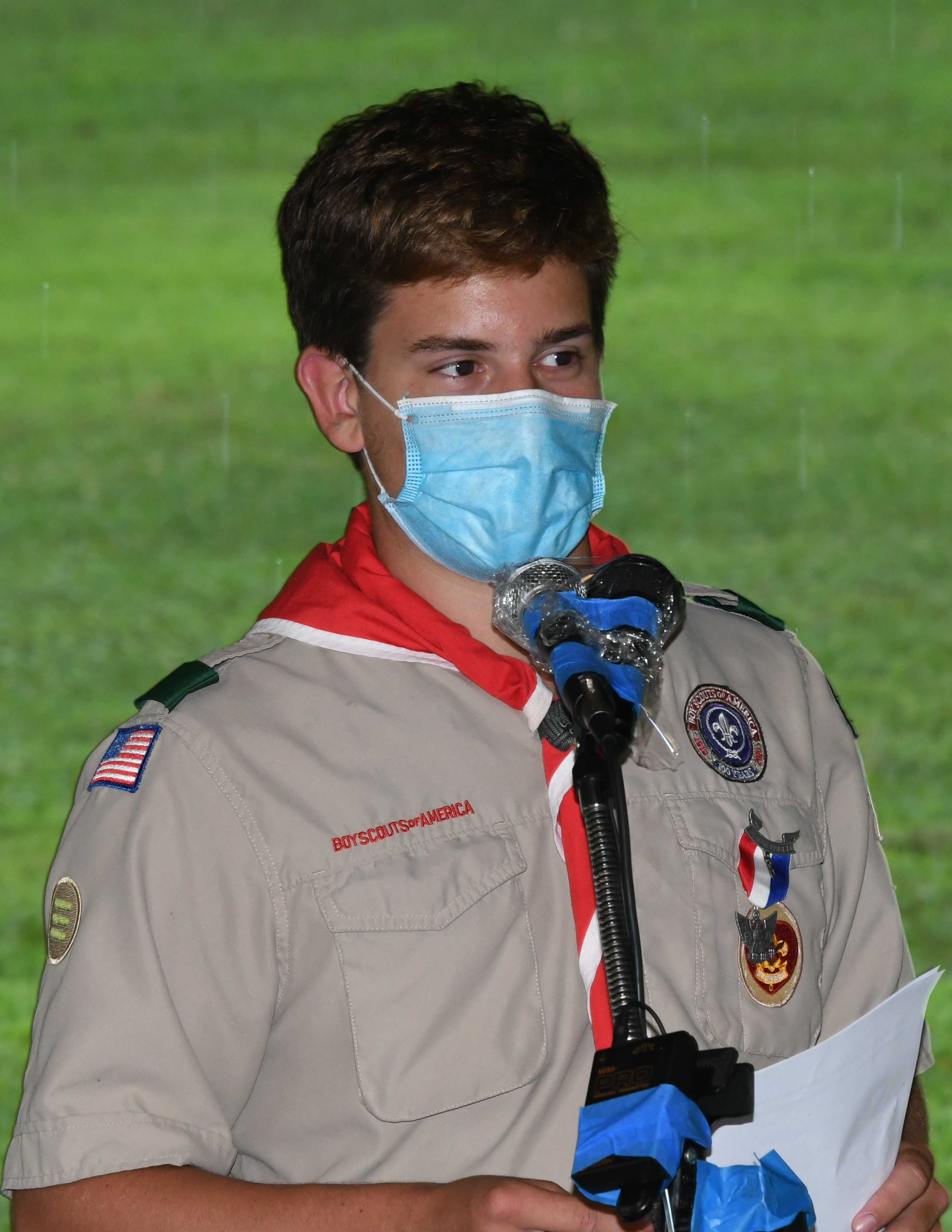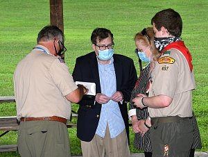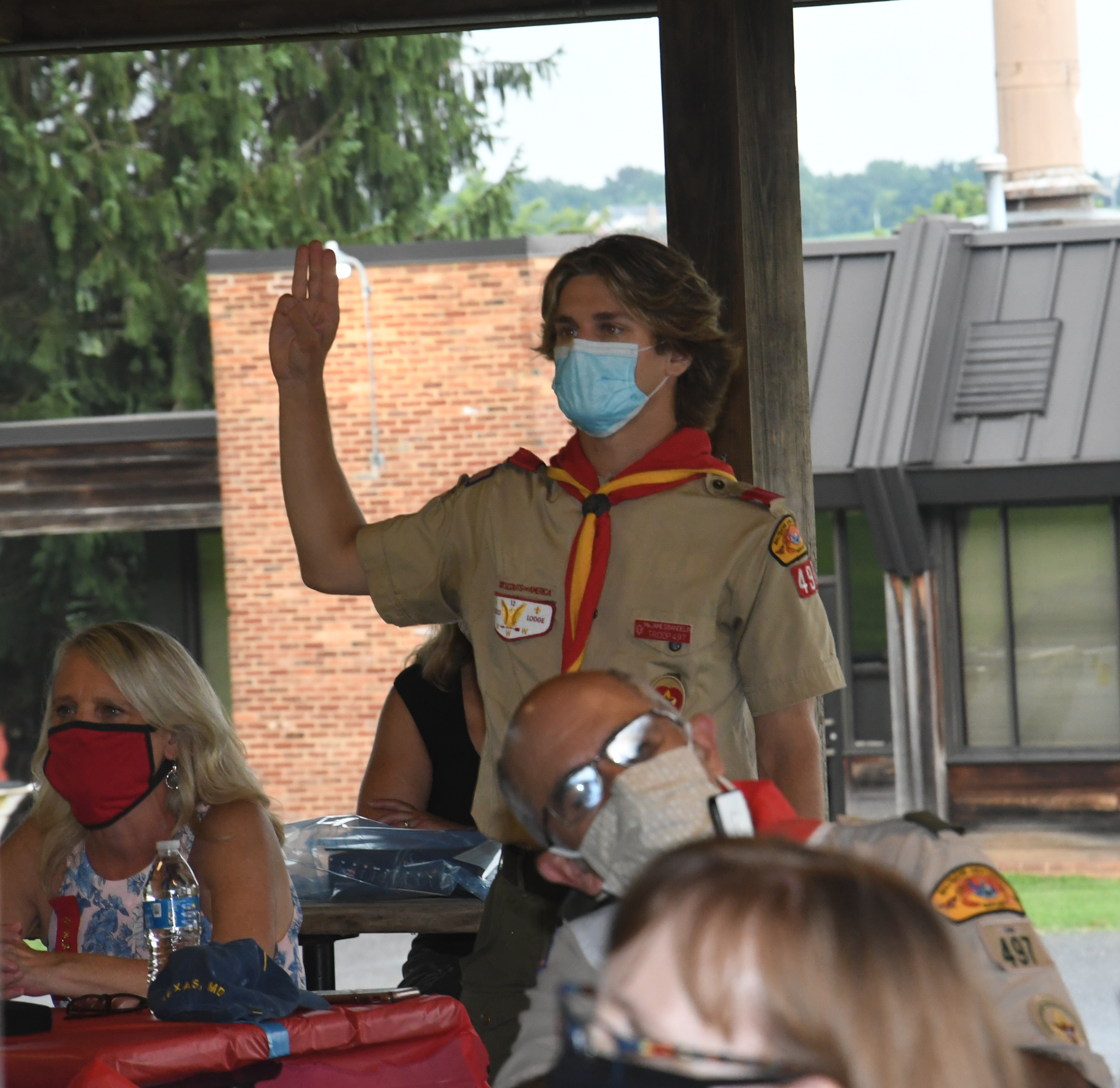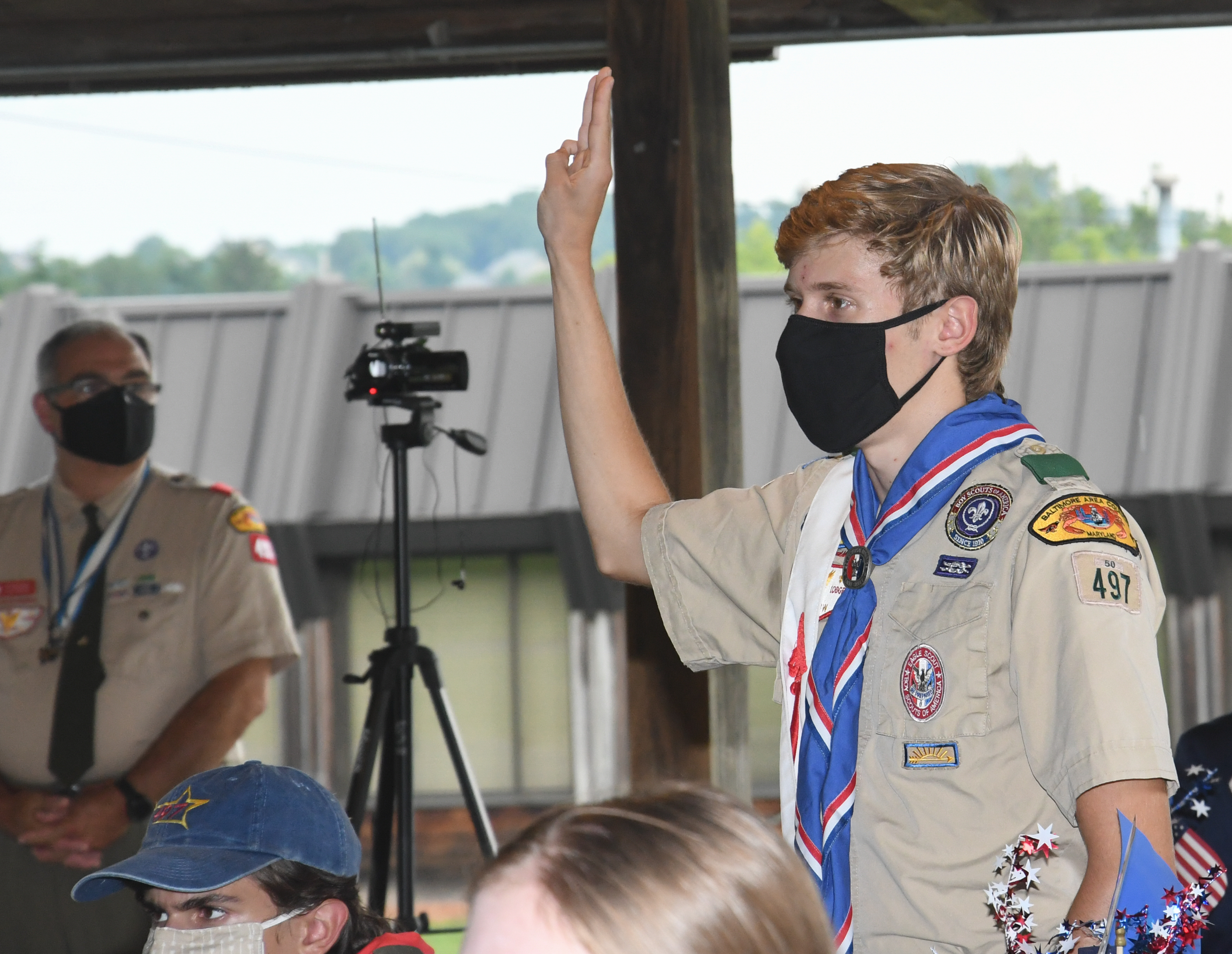 We held our spring Court of Honor at Oregon Ridge Park in August this year. Because of Covid-19 we restricted the awards to just the Eagle presentations. It was our first Court of Honor where everyone wore mask!.