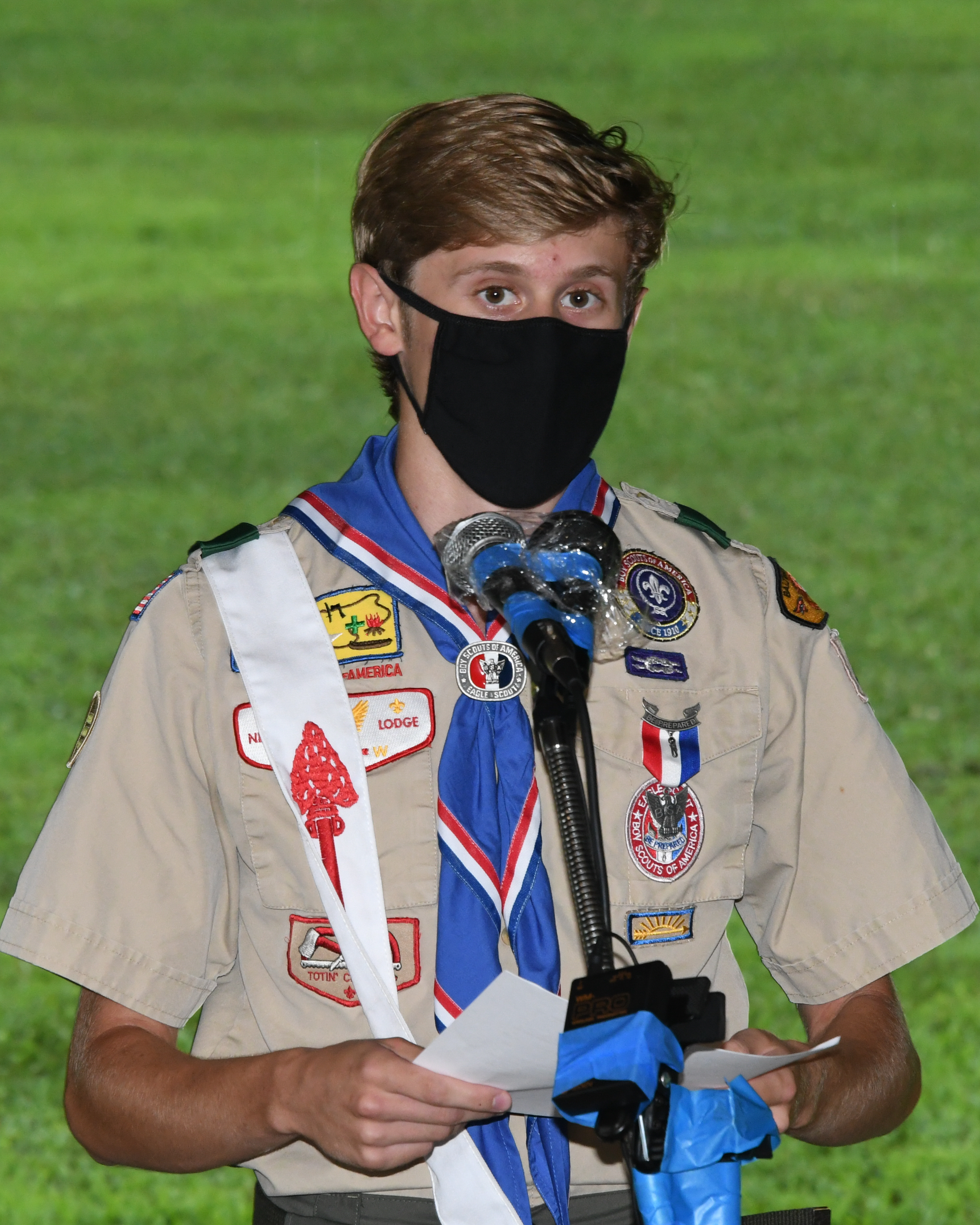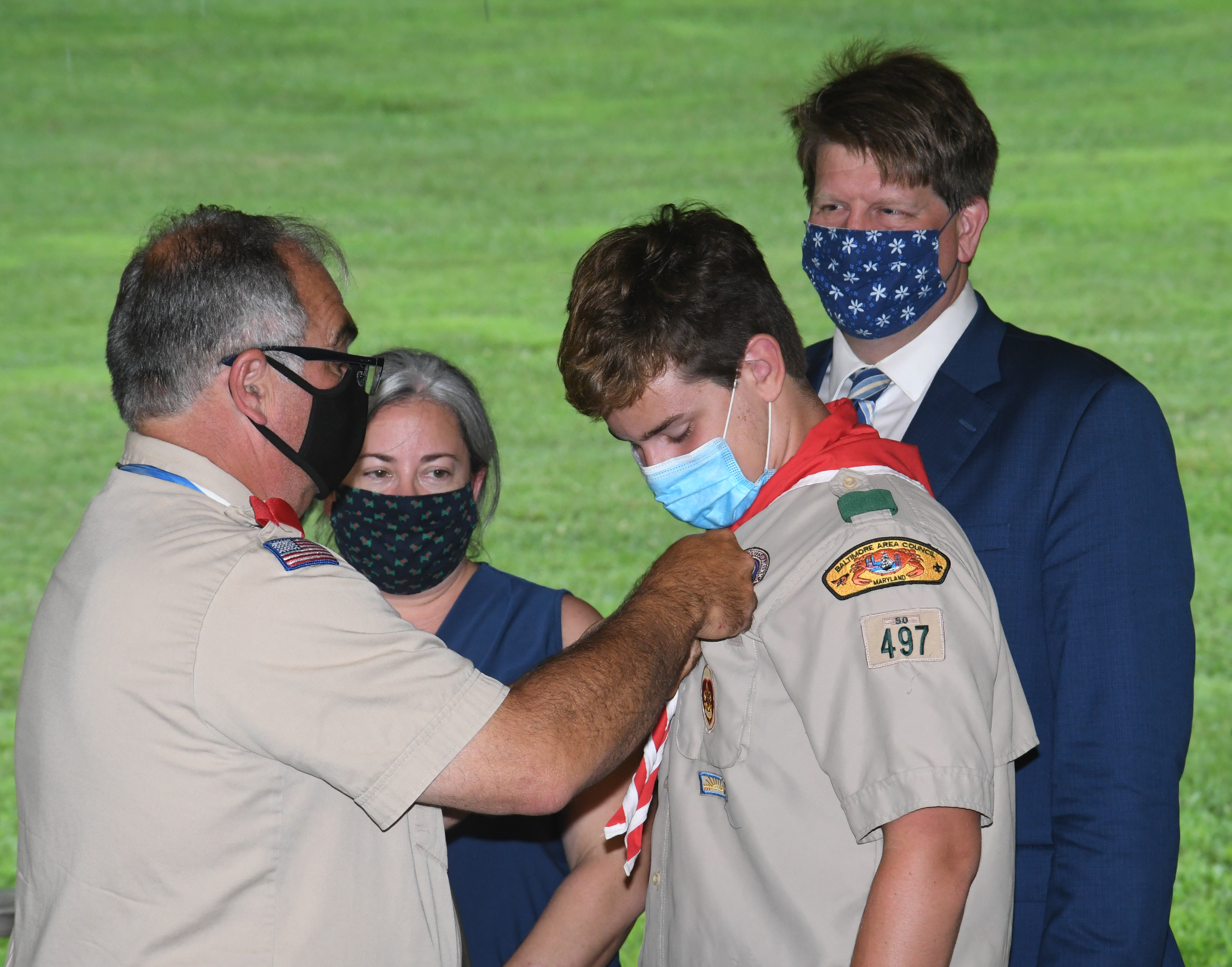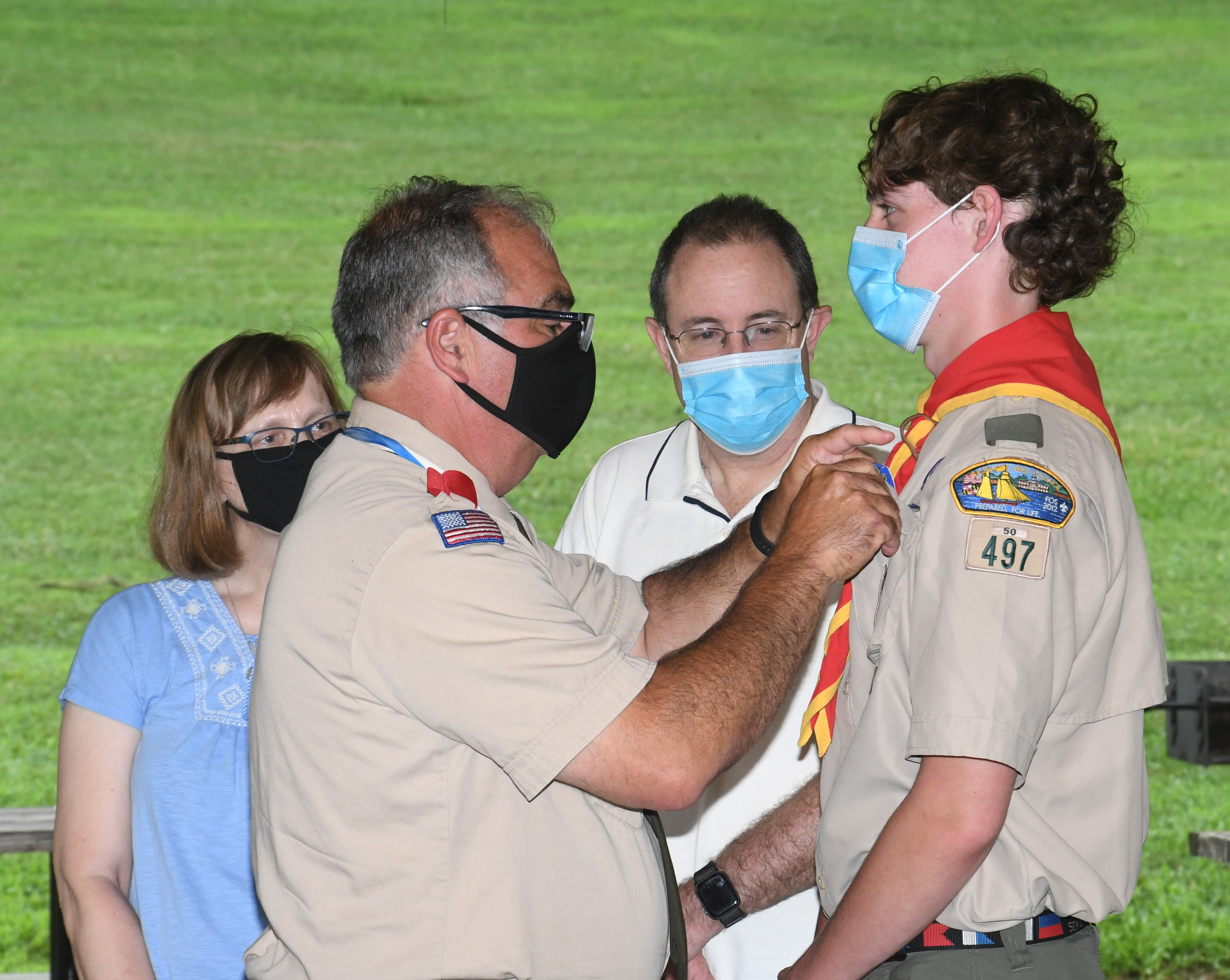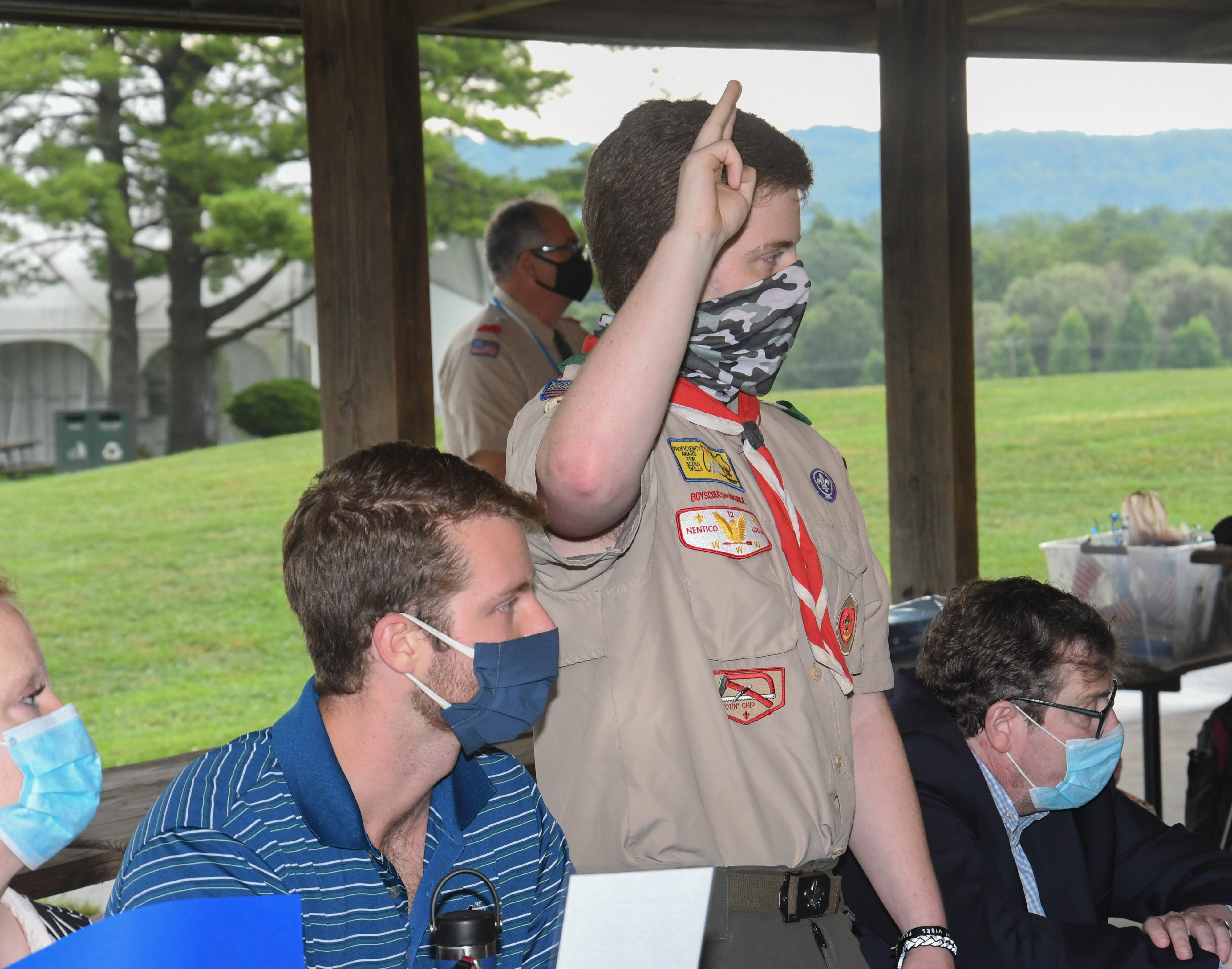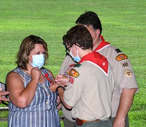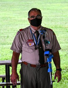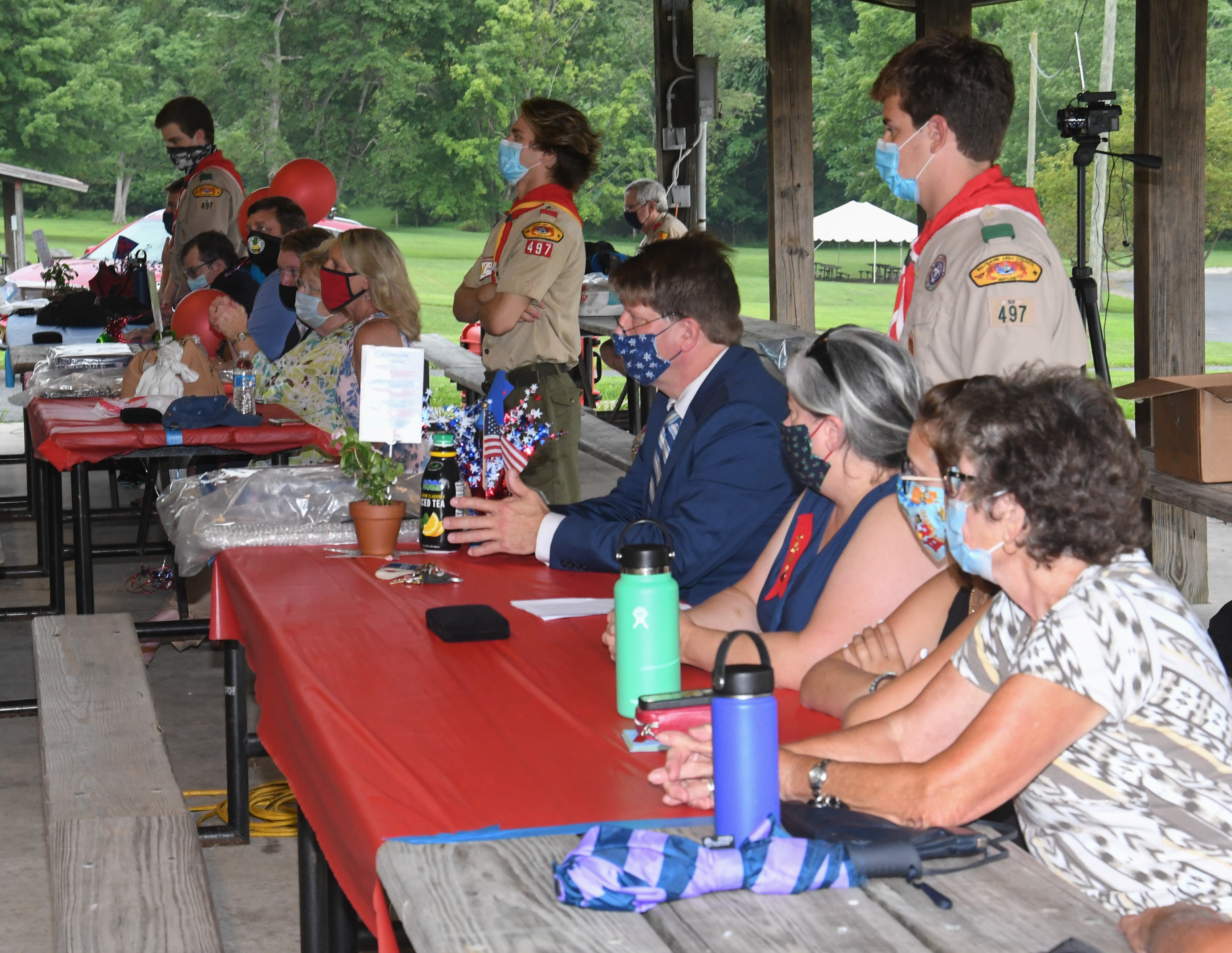 We held our spring Court of Honor at Oregon Ridge Park in August this year. Because of Covid-19 we restricted the awards to just the Eagle presentations. It was our first Court of Honor where everyone wore mask!.