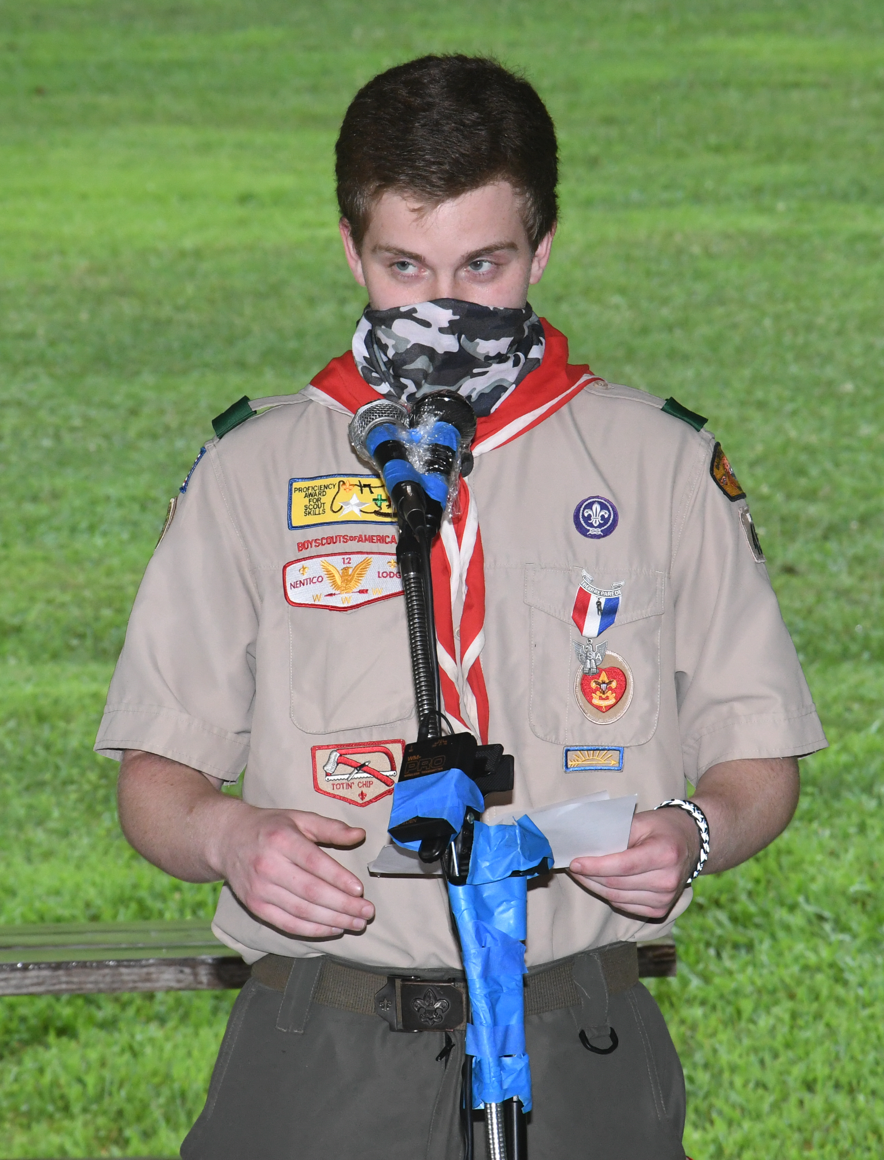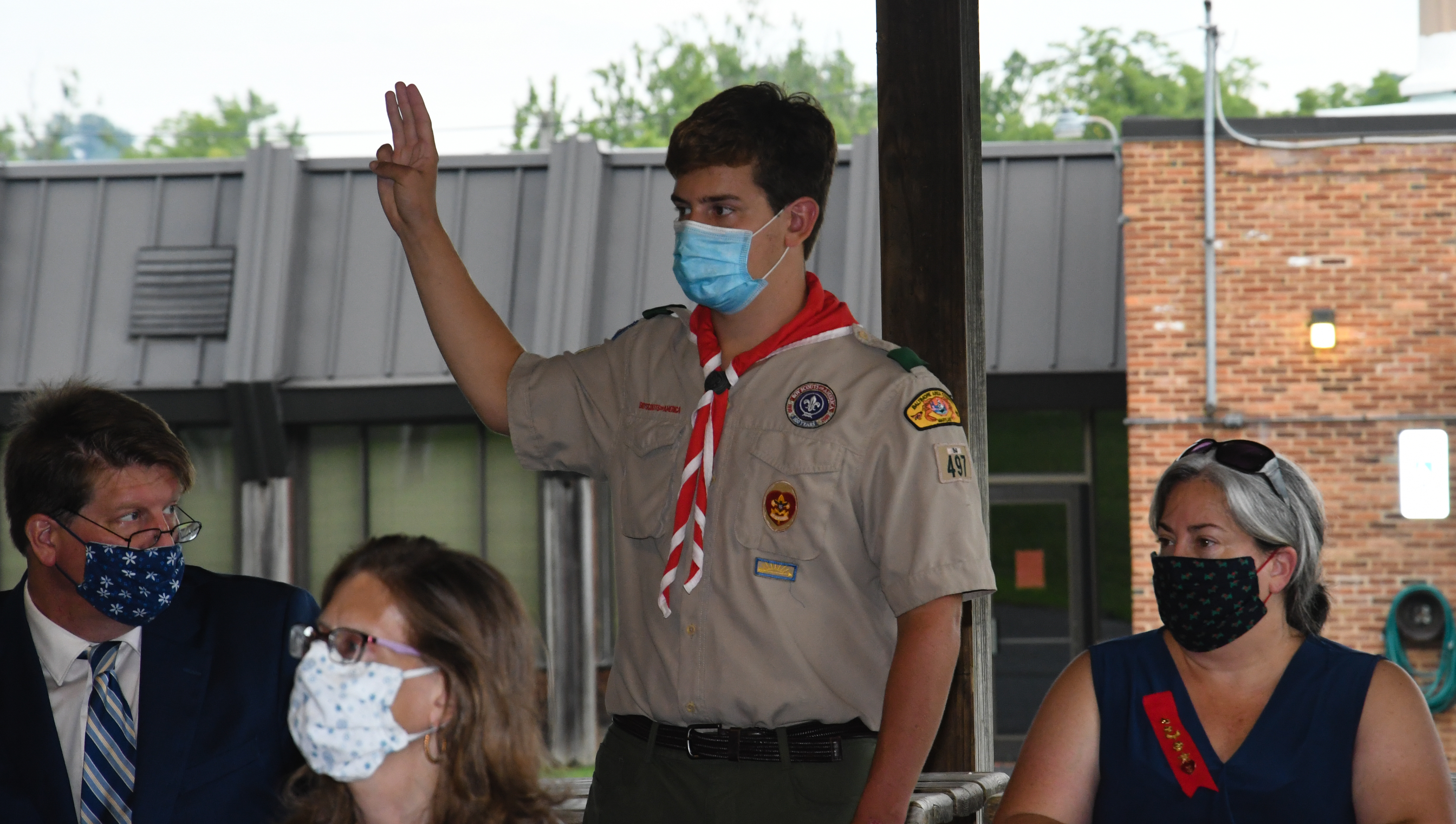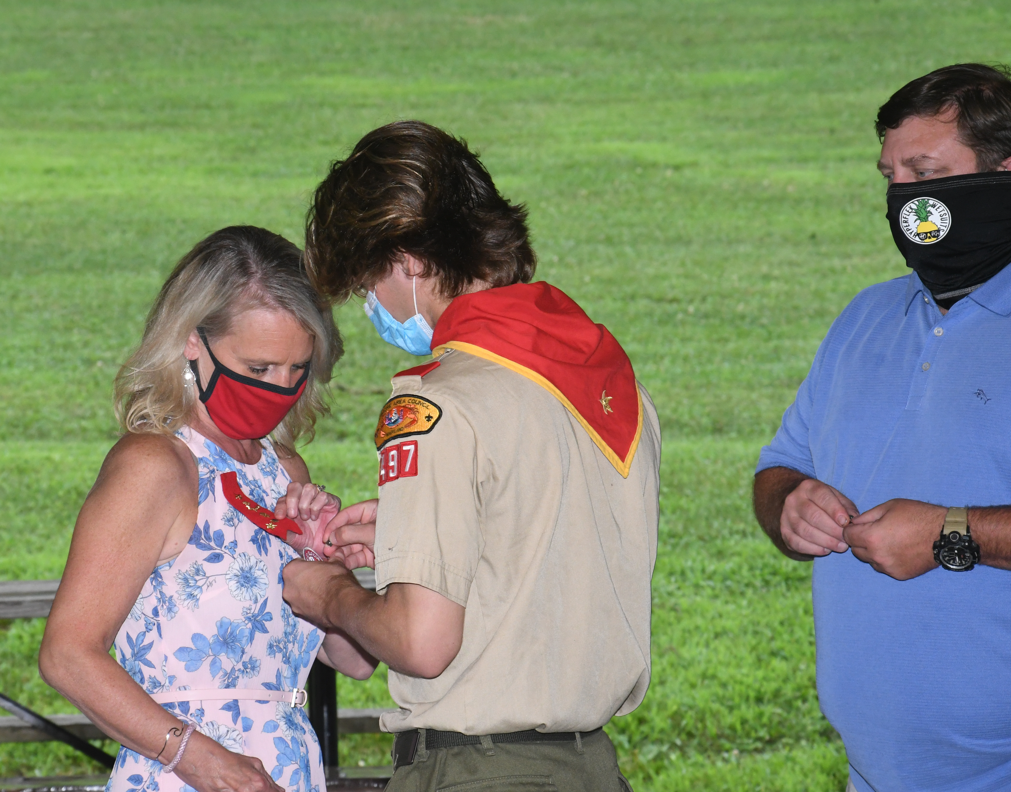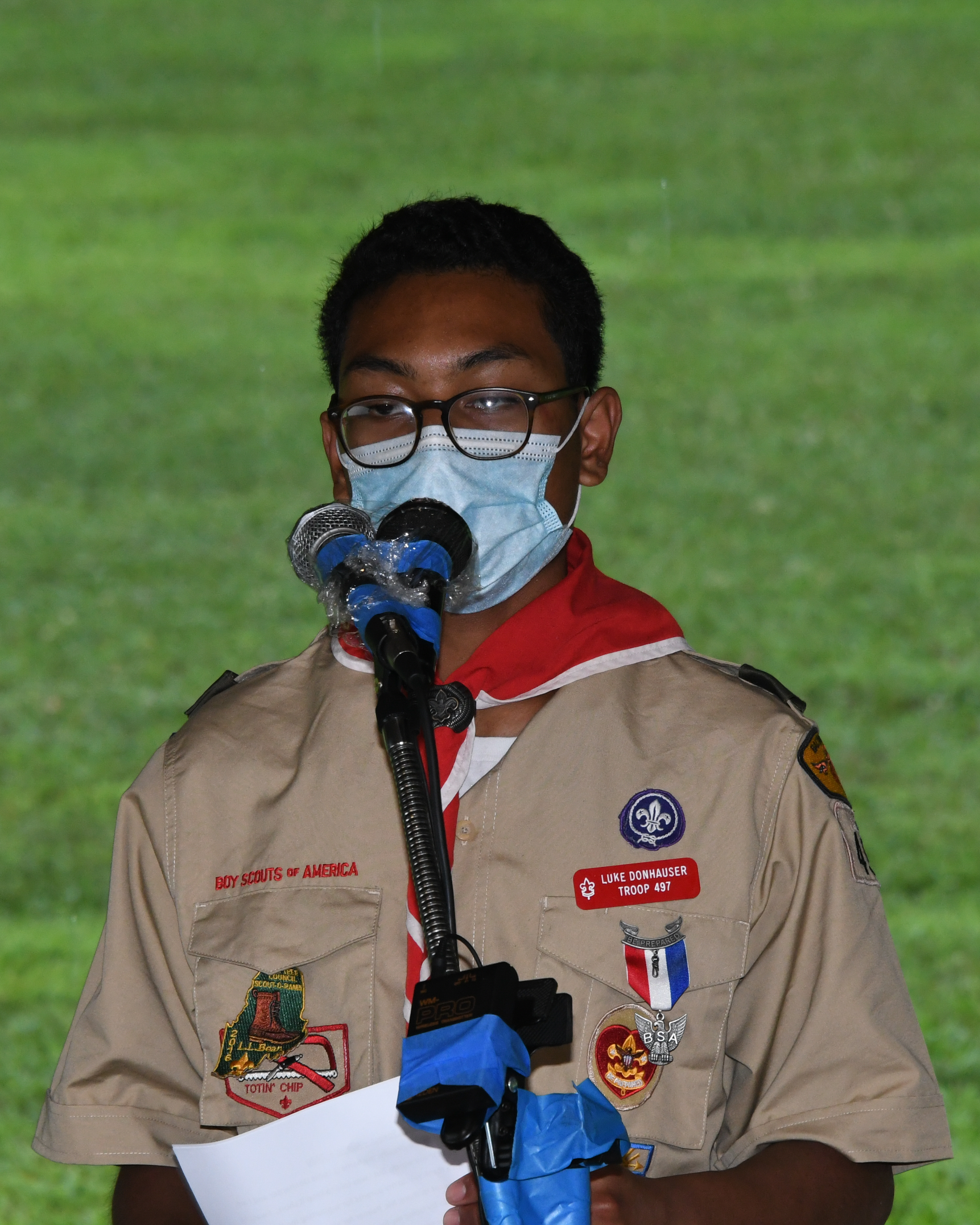 We held our spring Court of Honor at Oregon Ridge Park in August this year. Because of Covid-19 we restricted the awards to just the Eagle presentations. It was our first Court of Honor where everyone wore mask!.
