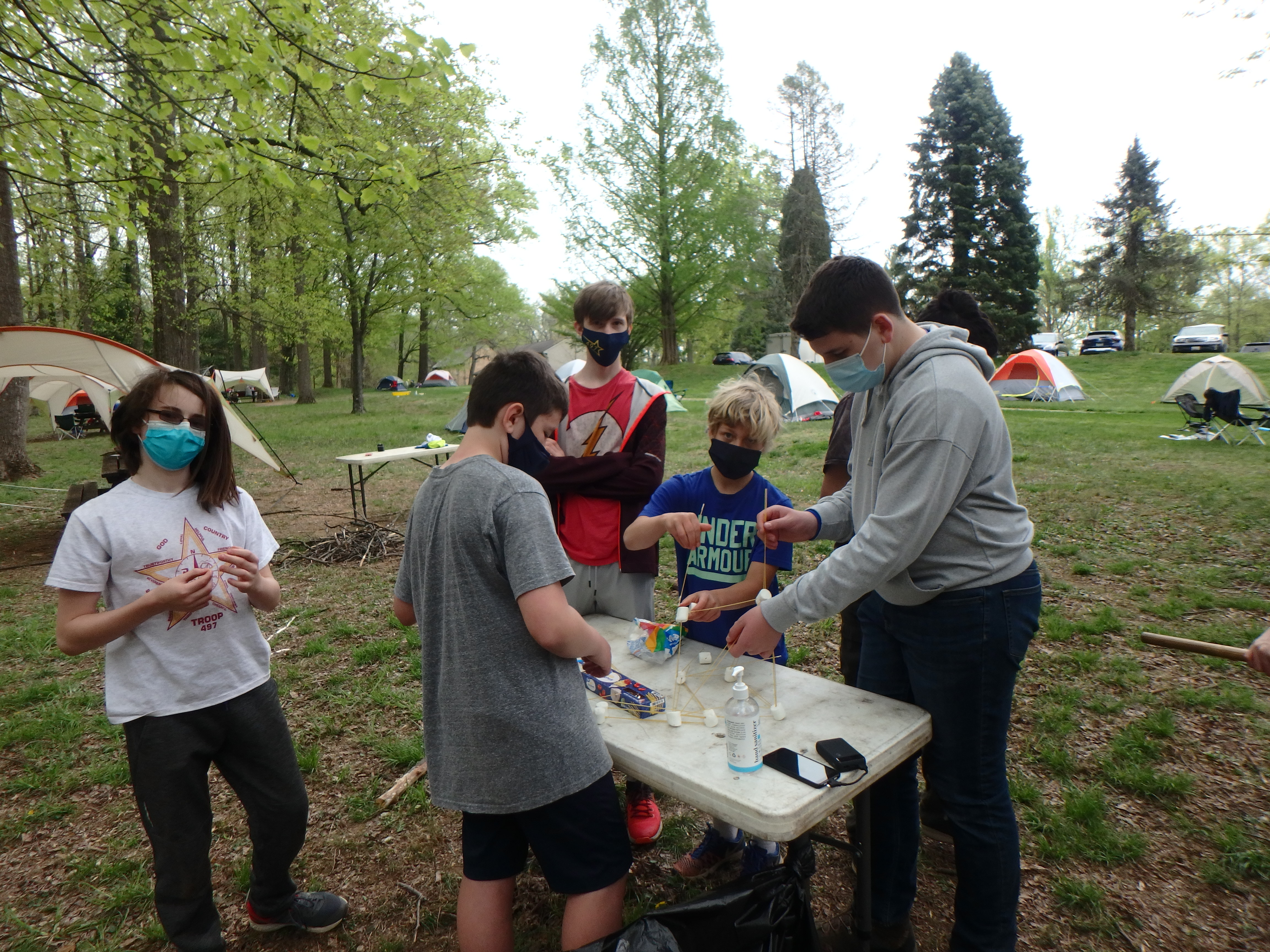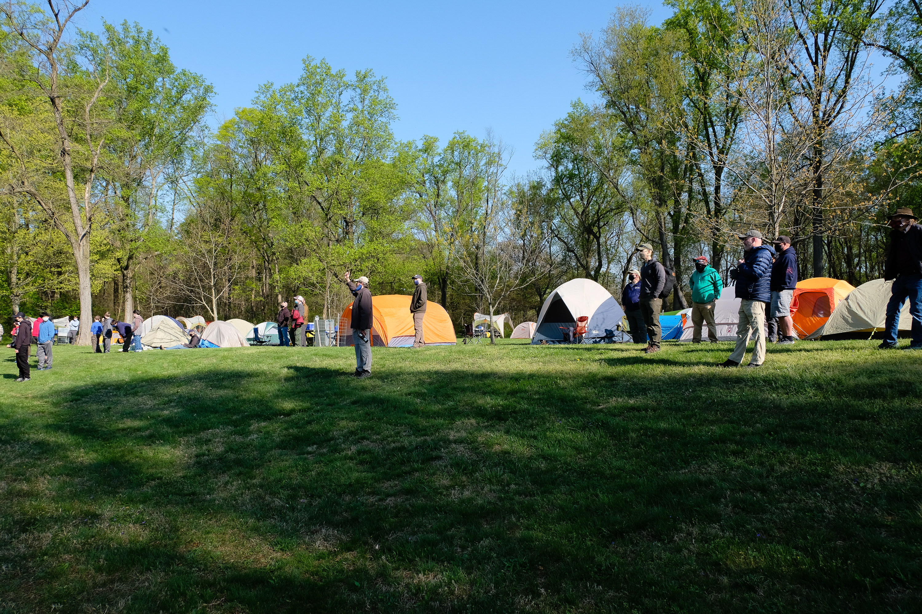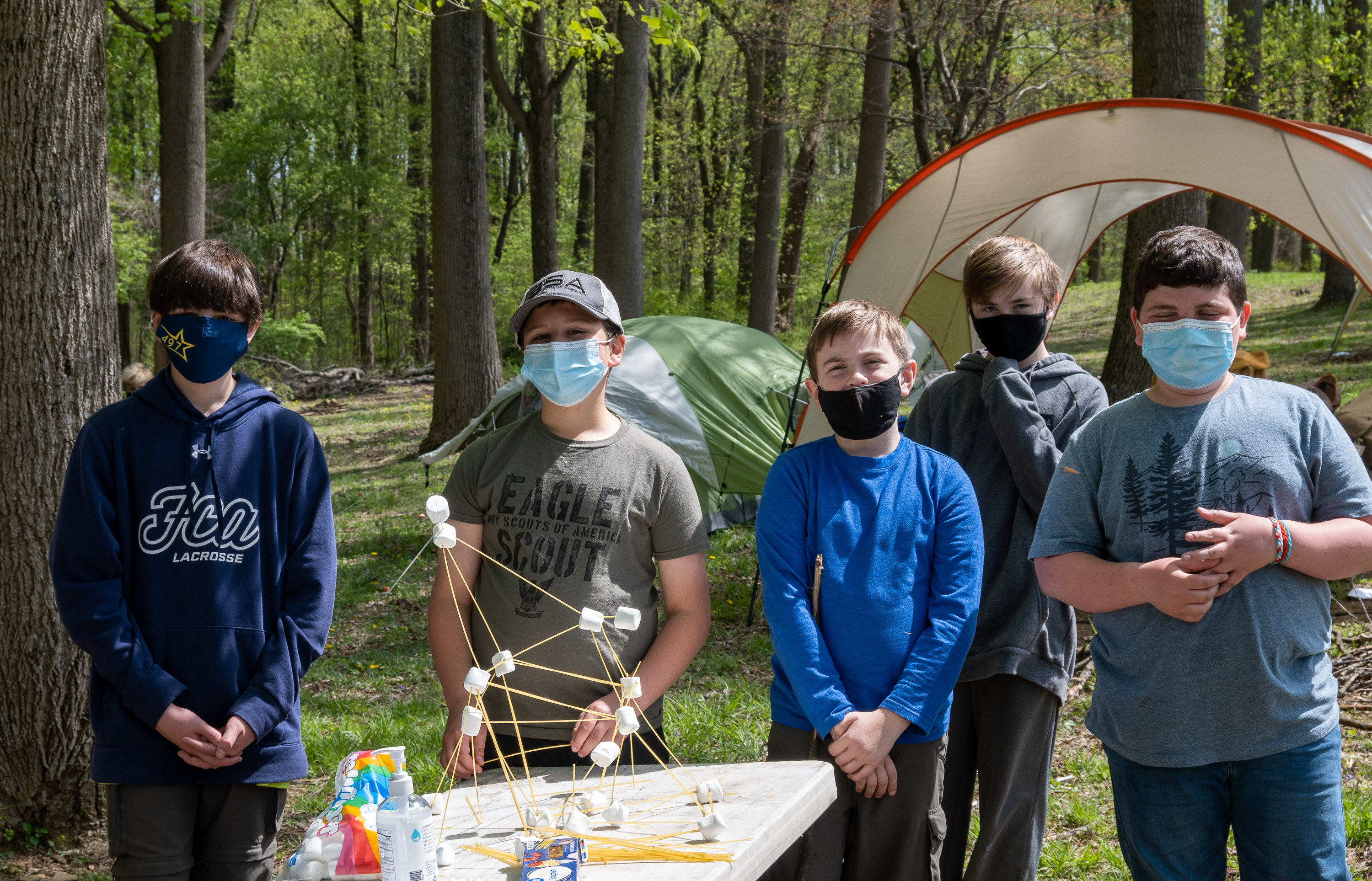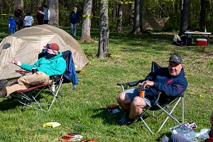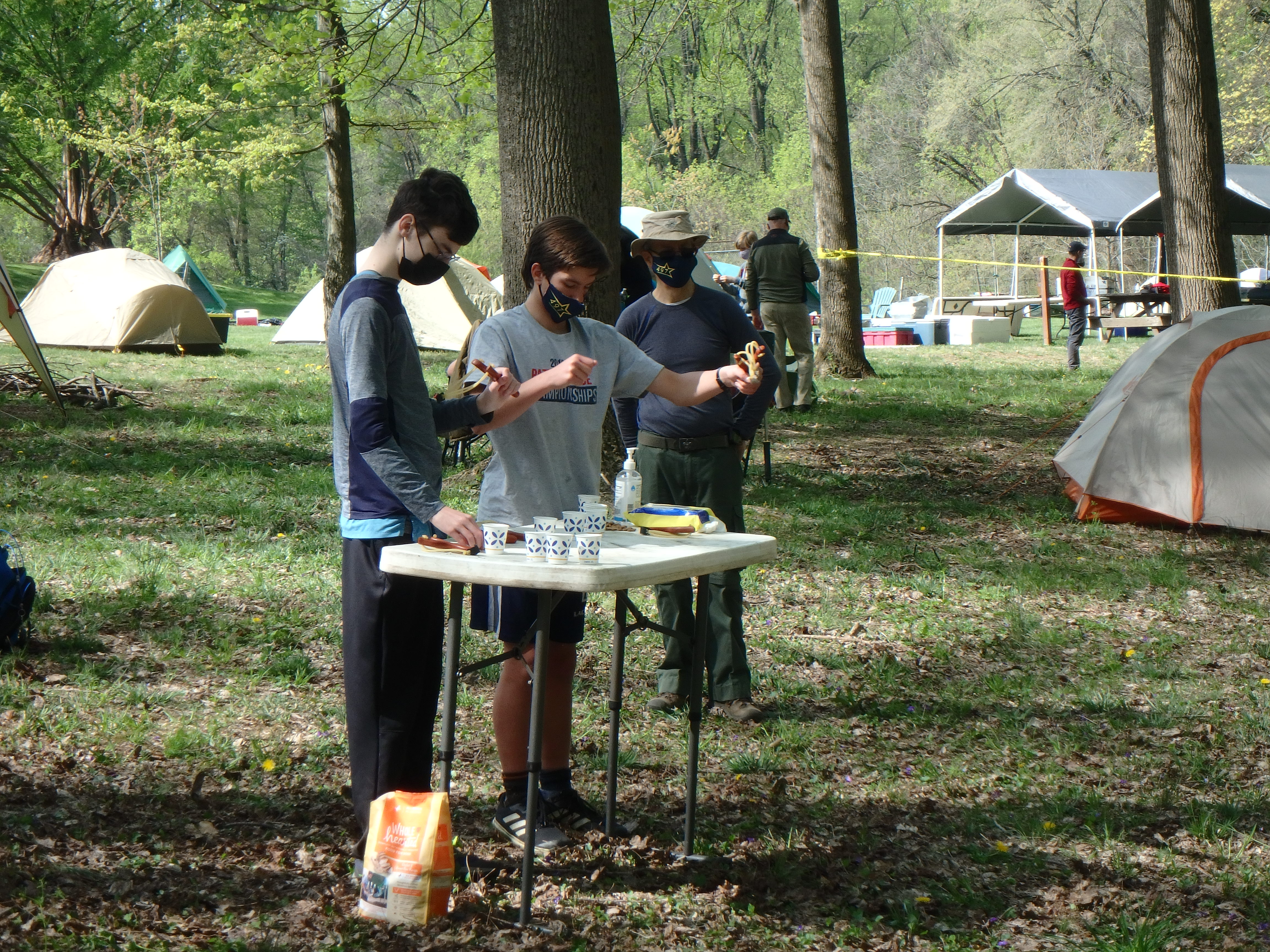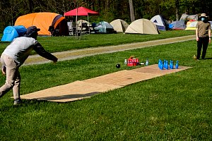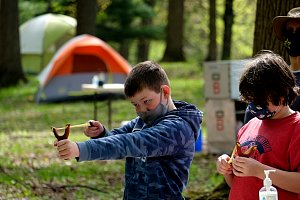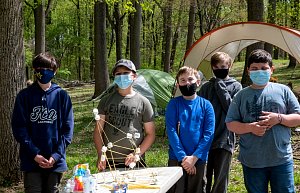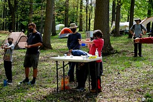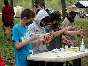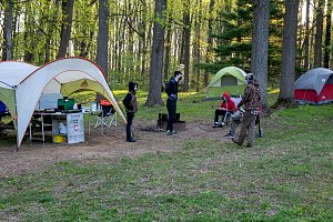 This was our first entire Troop camping trip since our backpacking weekend in March of 2020 and what a camping weekend it was. We broke attendance records for a weekend trip. Participating in the weekend were 107 Scouts, Webelos guests, and adults. We made some changes for Covid-19 safety. Parents had to transport their sons to and from the Susquehannock SP and many of the dads decided to join us for the weekend. Forty-three cars were in the parking lot on Saturday morning. Only immediate family members could tent together so many of us tented alone or with their sons or brothers. In all 77 tents filled our campsites with a very different look since many of the tents were personal tents.The theme for the weekend was Senior Surprise, a patrol based competition weekend in which Scouts compete in Scout skills and other fun challenges. Saturday quickly warmed up and became a mostly sunny day which was perfect for these events. After dinner we had a few sprinkles and then after we were in our tents for the night it rained, sometimes quite hard. We woke to a few sprinkles which ended around 8 AM and then the sun came out again.