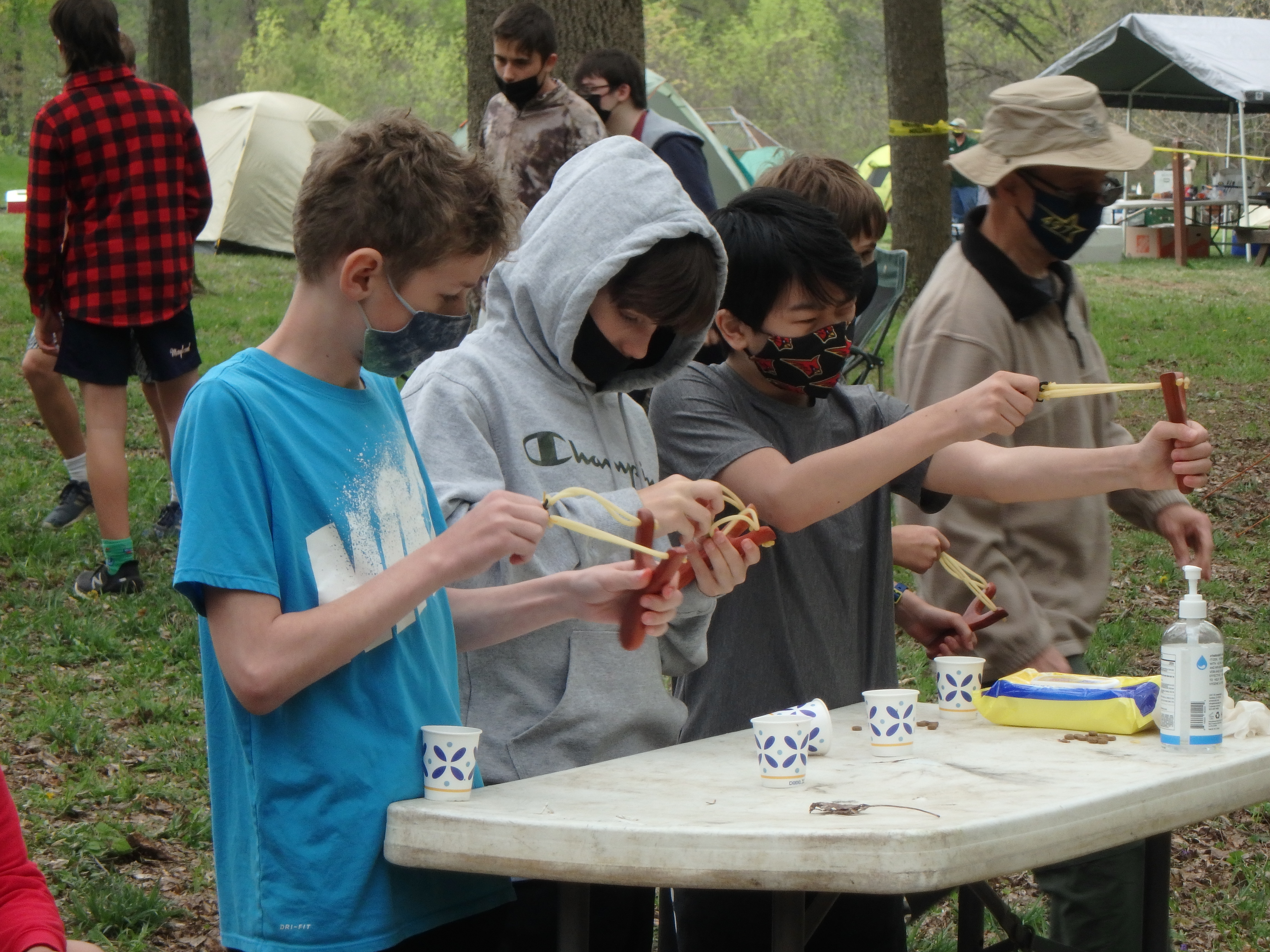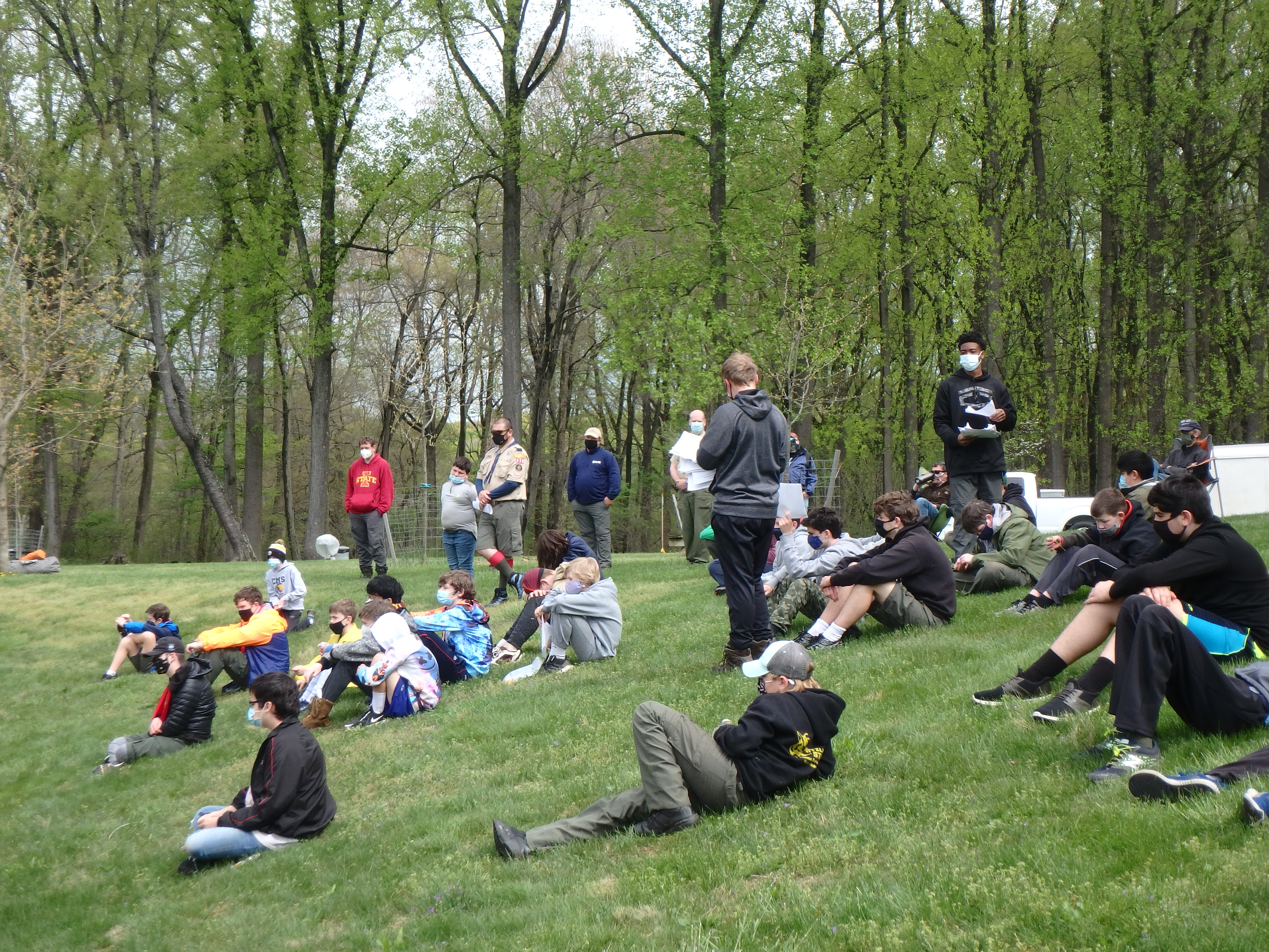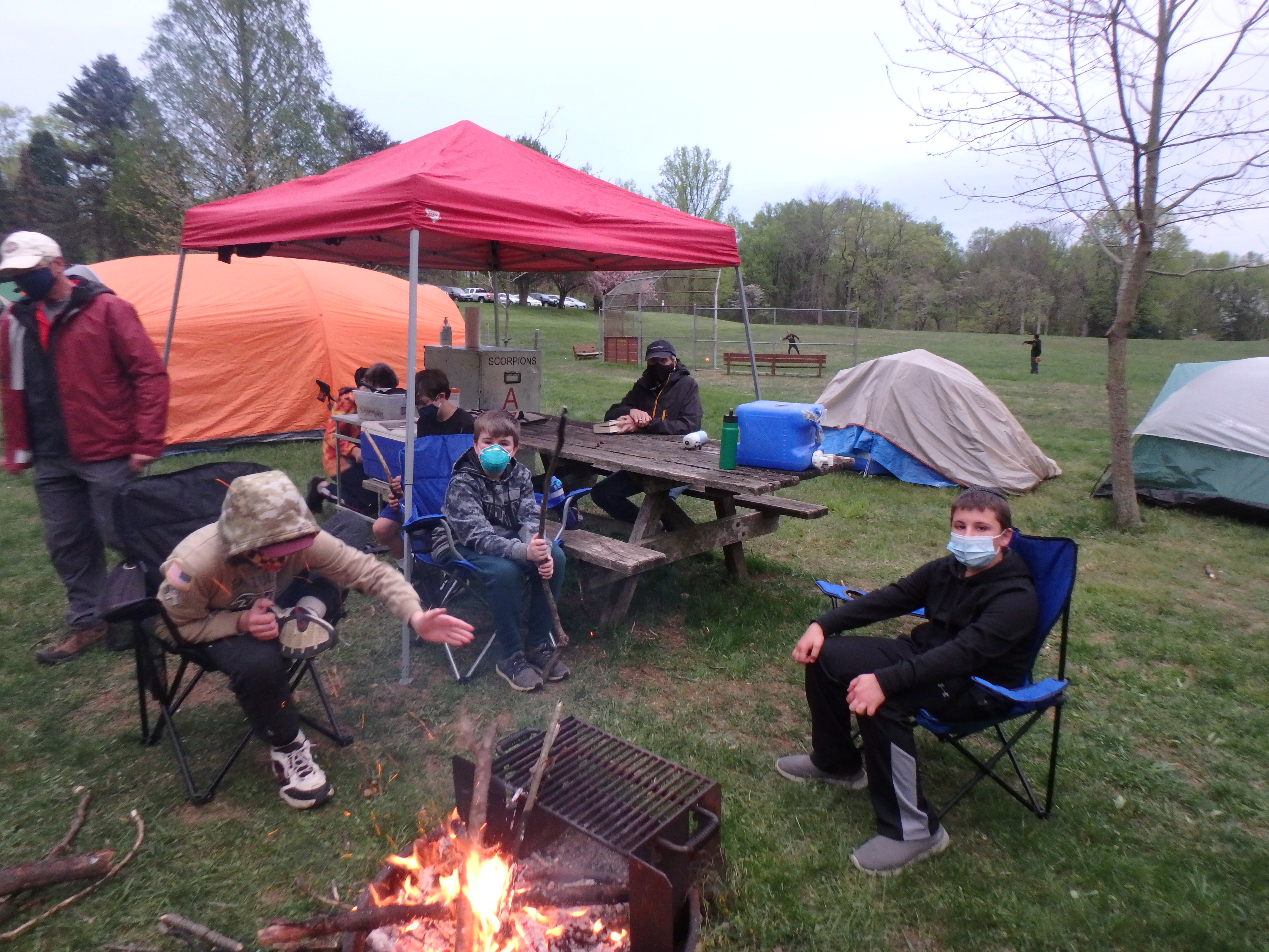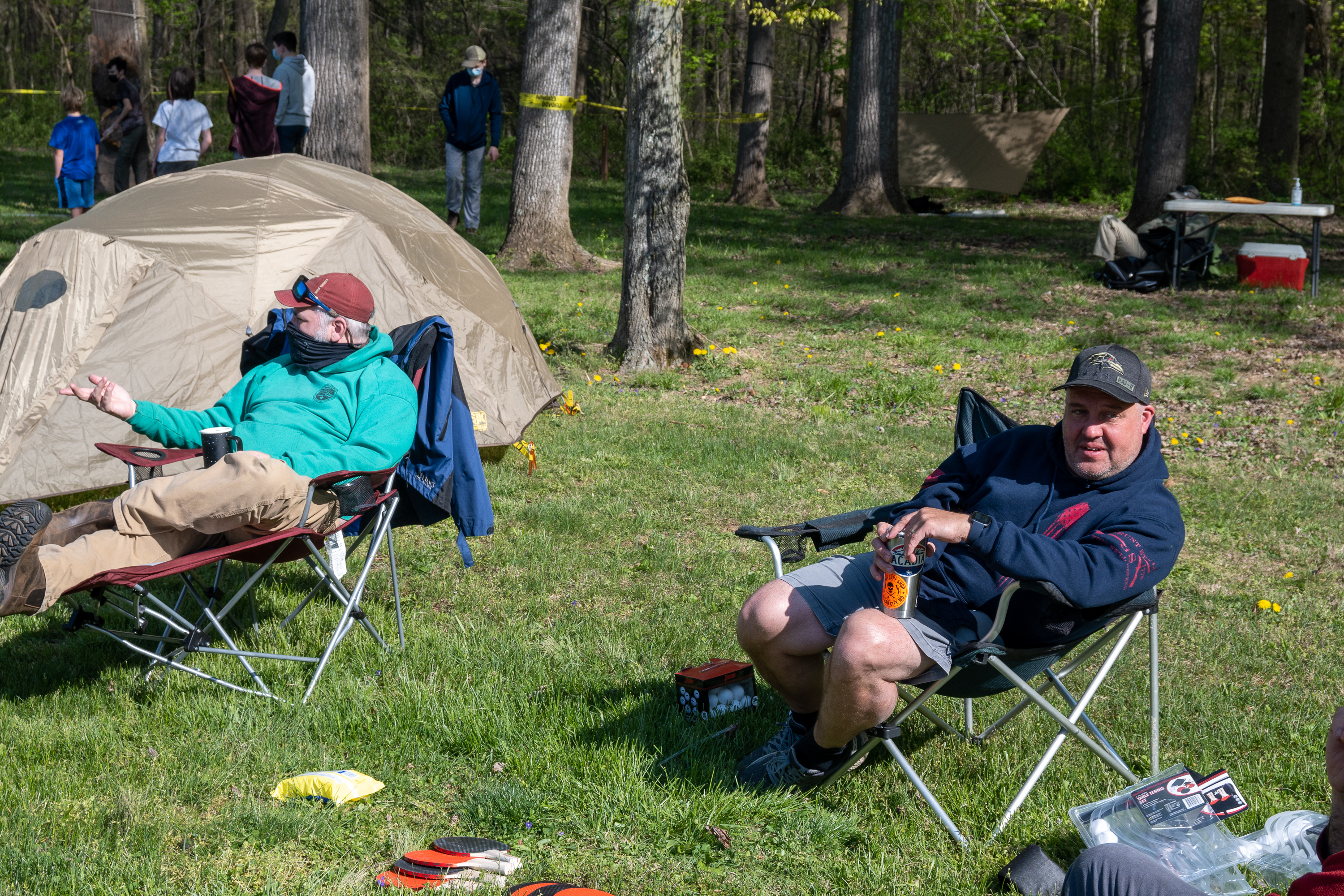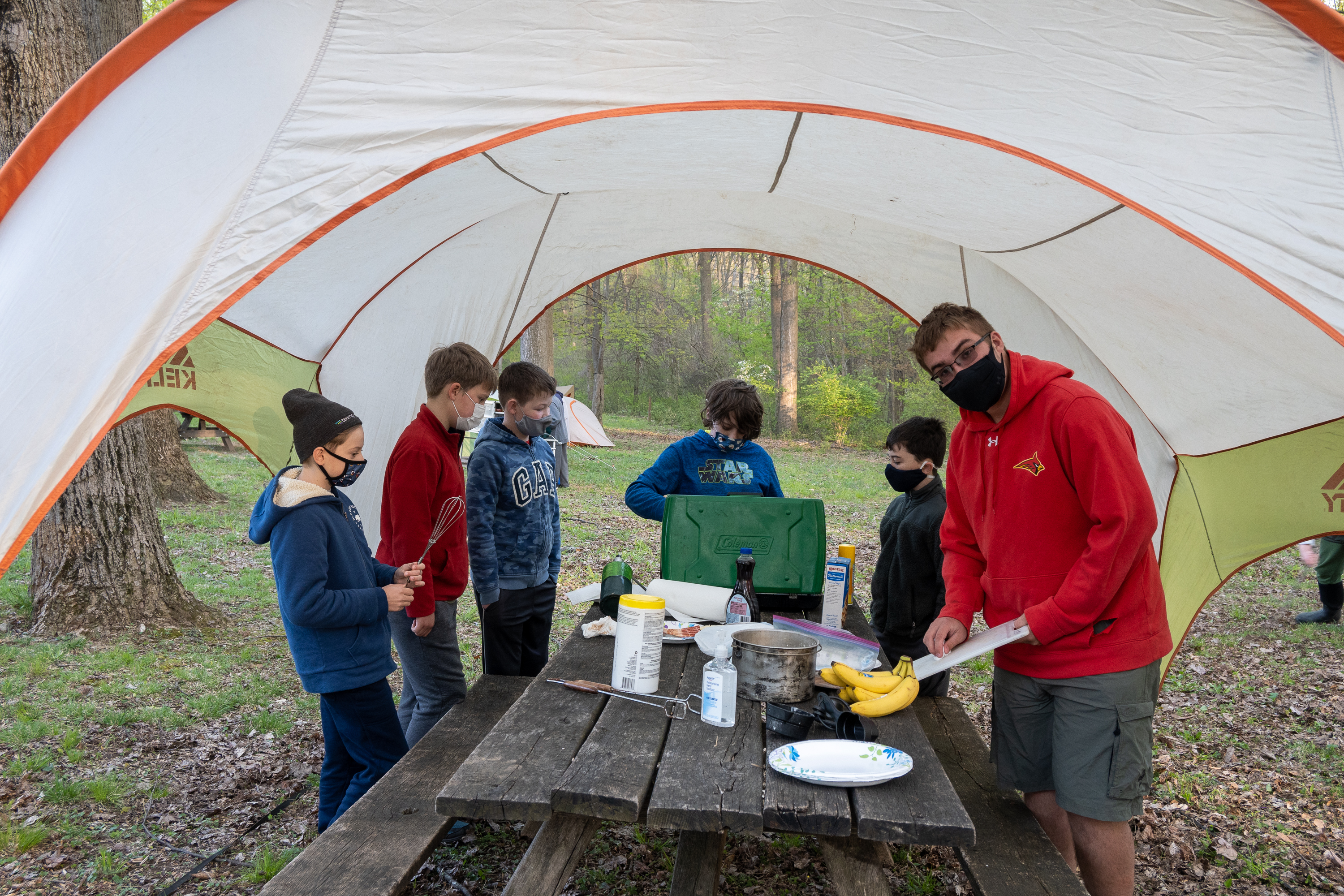 This was our first entire Troop camping trip since our backpacking weekend in March of 2020 and what a camping weekend it was. We broke attendance records for a weekend trip. Participating in the weekend were 107 Scouts, Webelos guests, and adults. We made some changes for Covid-19 safety. Parents had to transport their sons to and from the Susquehannock SP and many of the dads decided to join us for the weekend. Forty-three cars were in the parking lot on Saturday morning. Only immediate family members could tent together so many of us tented alone or with their sons or brothers. In all 77 tents filled our campsites with a very different look since many of the tents were personal tents.The theme for the weekend was Senior Surprise, a patrol based competition weekend in which Scouts compete in Scout skills and other fun challenges. Saturday quickly warmed up and became a mostly sunny day which was perfect for these events. After dinner we had a few sprinkles and then after we were in our tents for the night it rained, sometimes quite hard. We woke to a few sprinkles which ended around 8 AM and then the sun came out again.