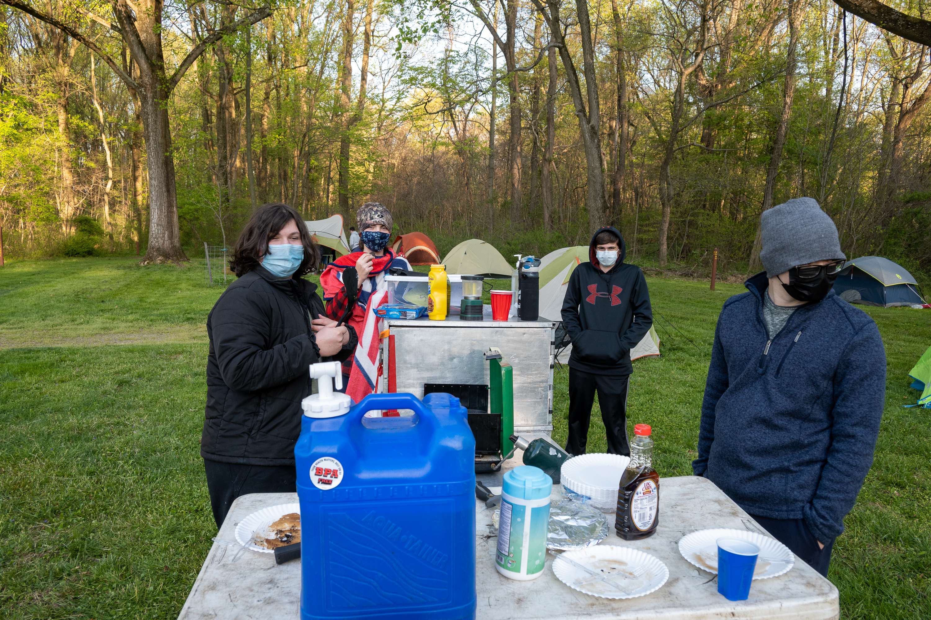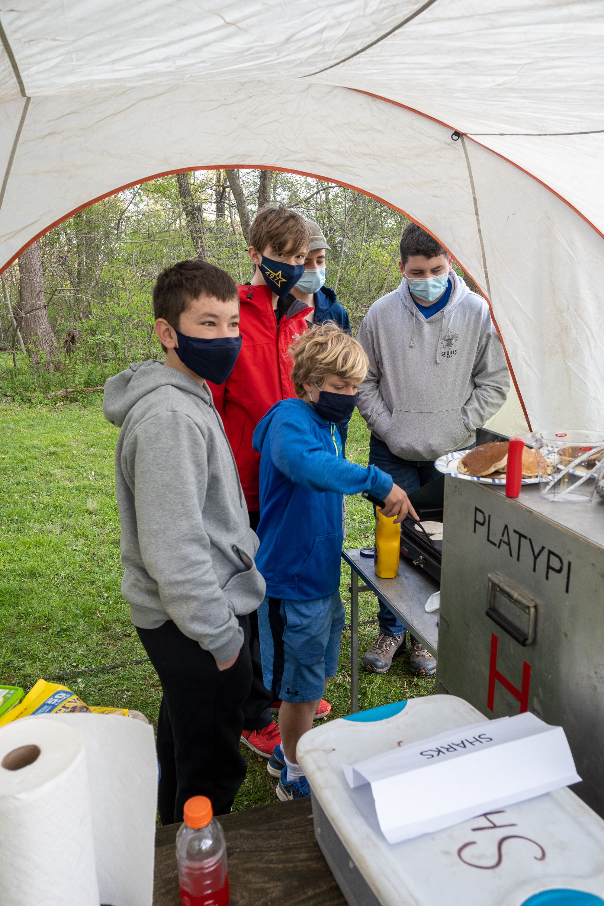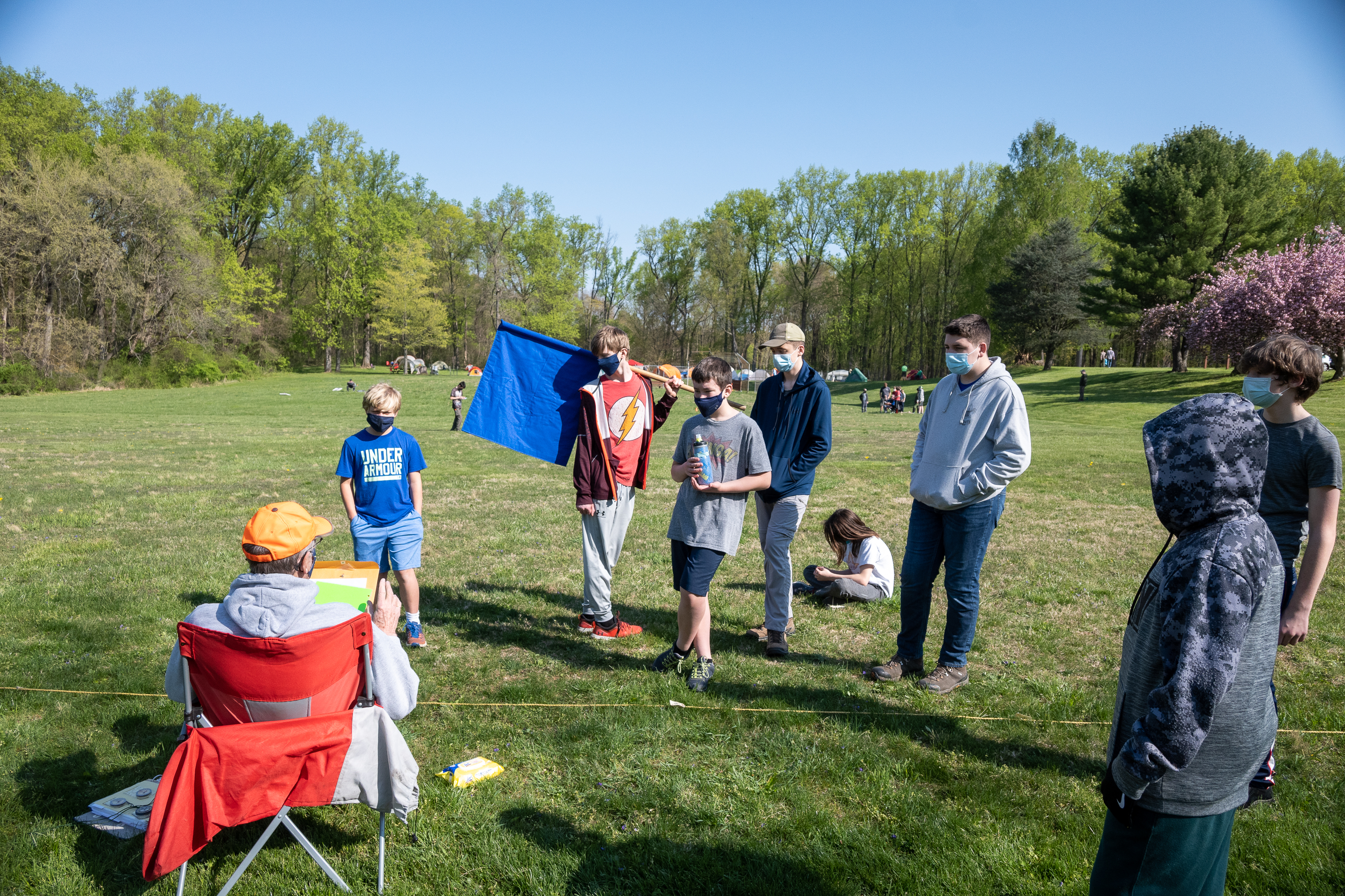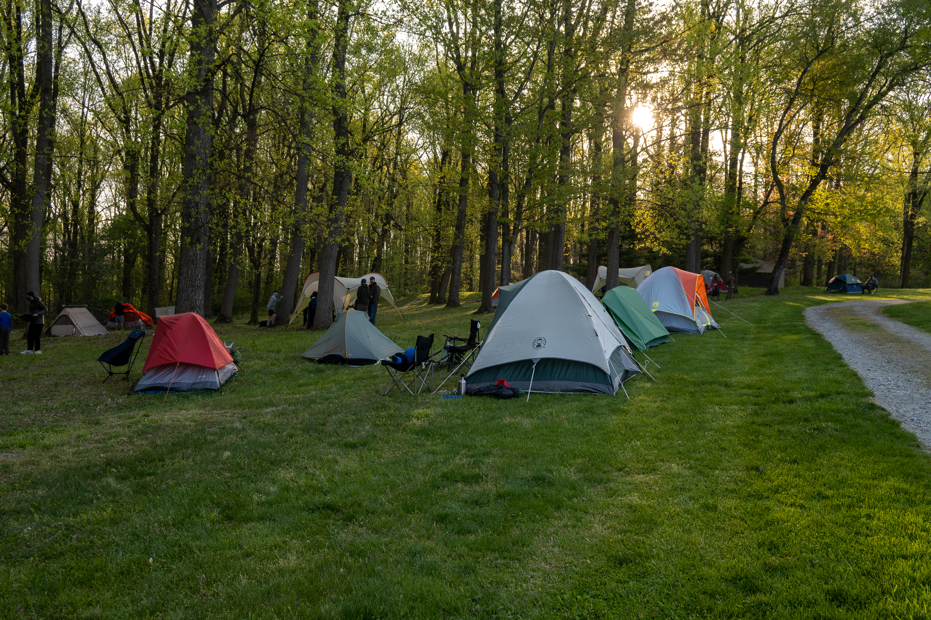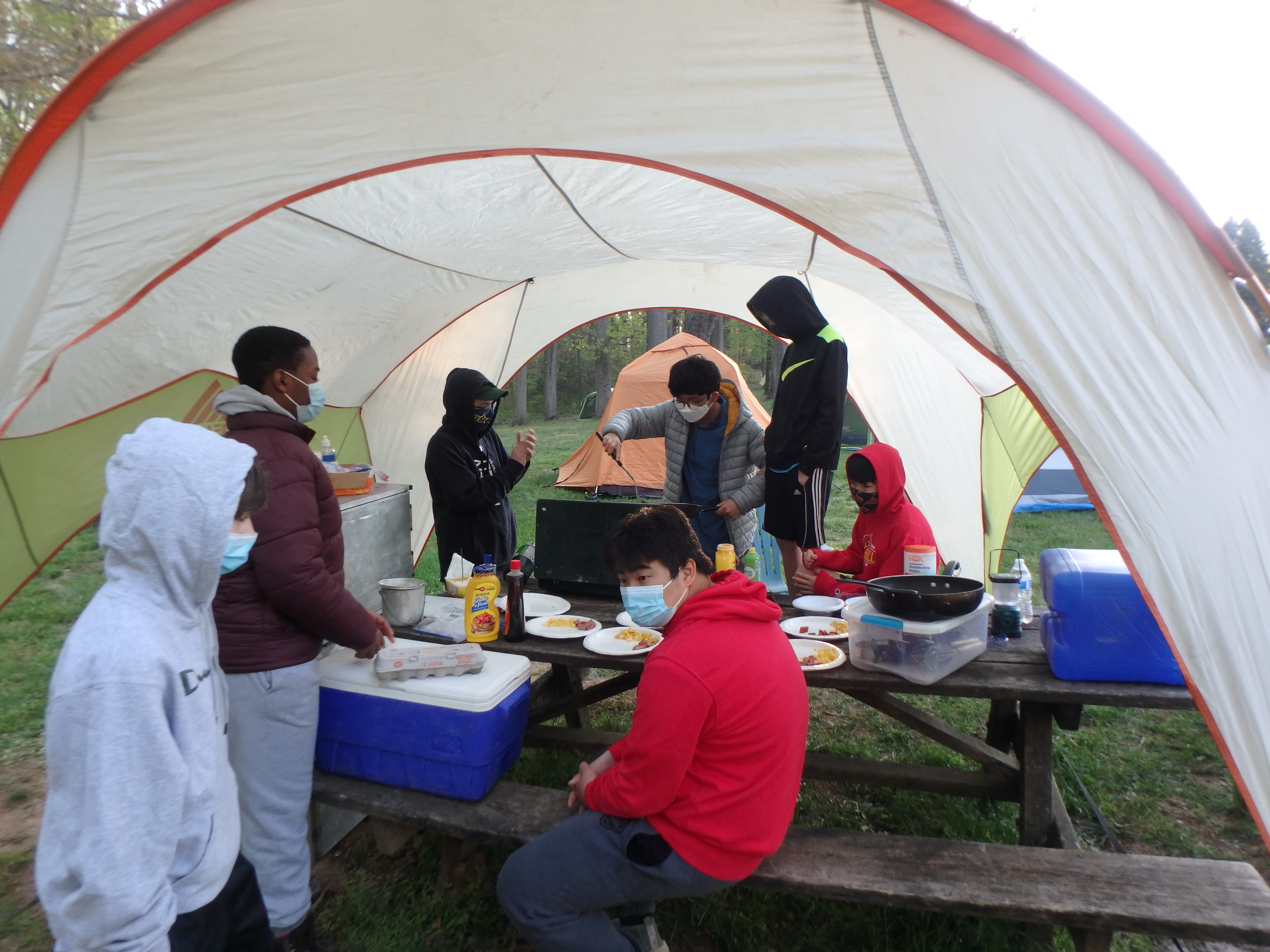 This was our first entire Troop camping trip since our backpacking weekend in March of 2020 and what a camping weekend it was. We broke attendance records for a weekend trip. Participating in the weekend were 107 Scouts, Webelos guests, and adults. We made some changes for Covid-19 safety. Parents had to transport their sons to and from the Susquehannock SP and many of the dads decided to join us for the weekend. Forty-three cars were in the parking lot on Saturday morning. Only immediate family members could tent together so many of us tented alone or with their sons or brothers. In all 77 tents filled our campsites with a very different look since many of the tents were personal tents.The theme for the weekend was Senior Surprise, a patrol based competition weekend in which Scouts compete in Scout skills and other fun challenges. Saturday quickly warmed up and became a mostly sunny day which was perfect for these events. After dinner we had a few sprinkles and then after we were in our tents for the night it rained, sometimes quite hard. We woke to a few sprinkles which ended around 8 AM and then the sun came out again.