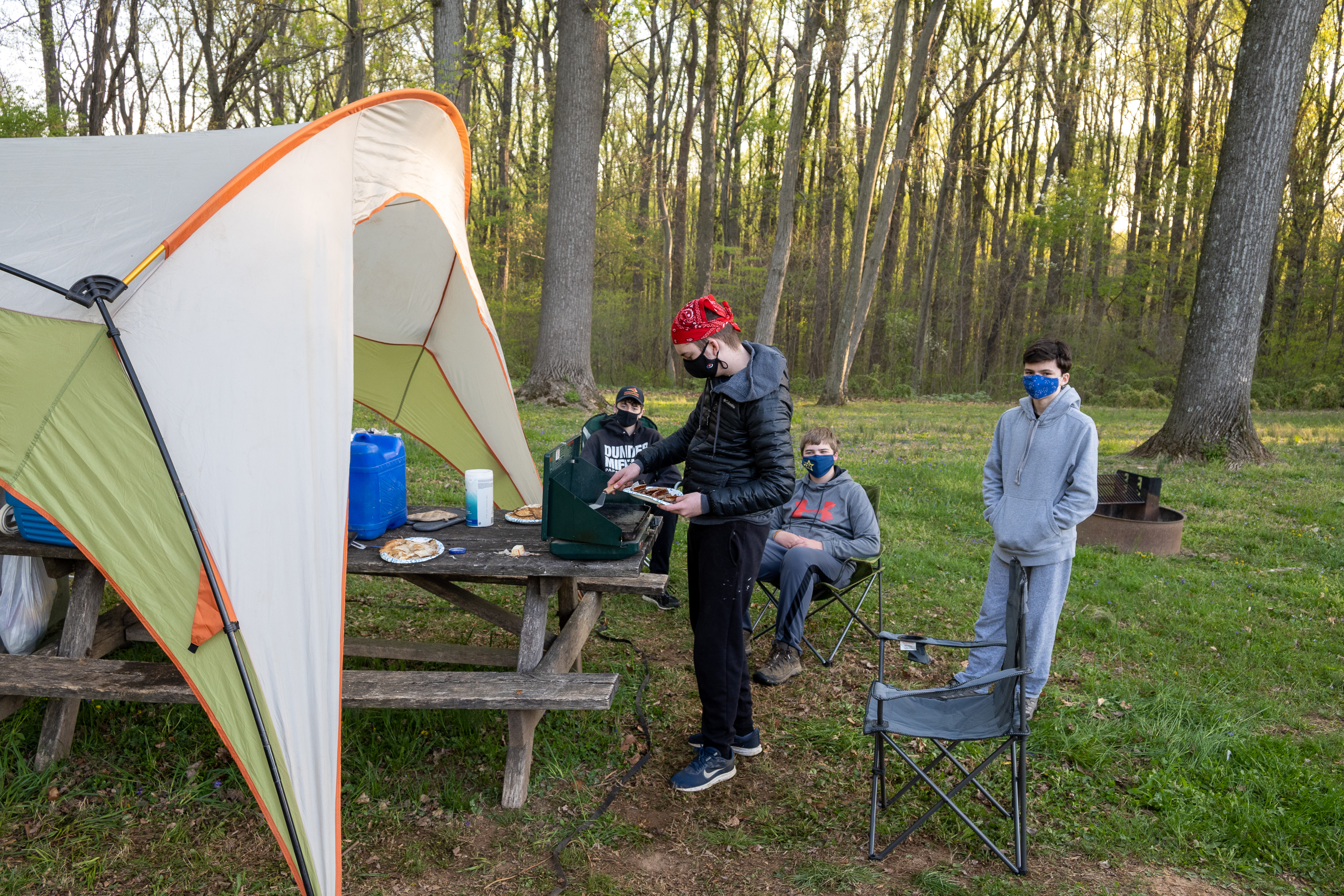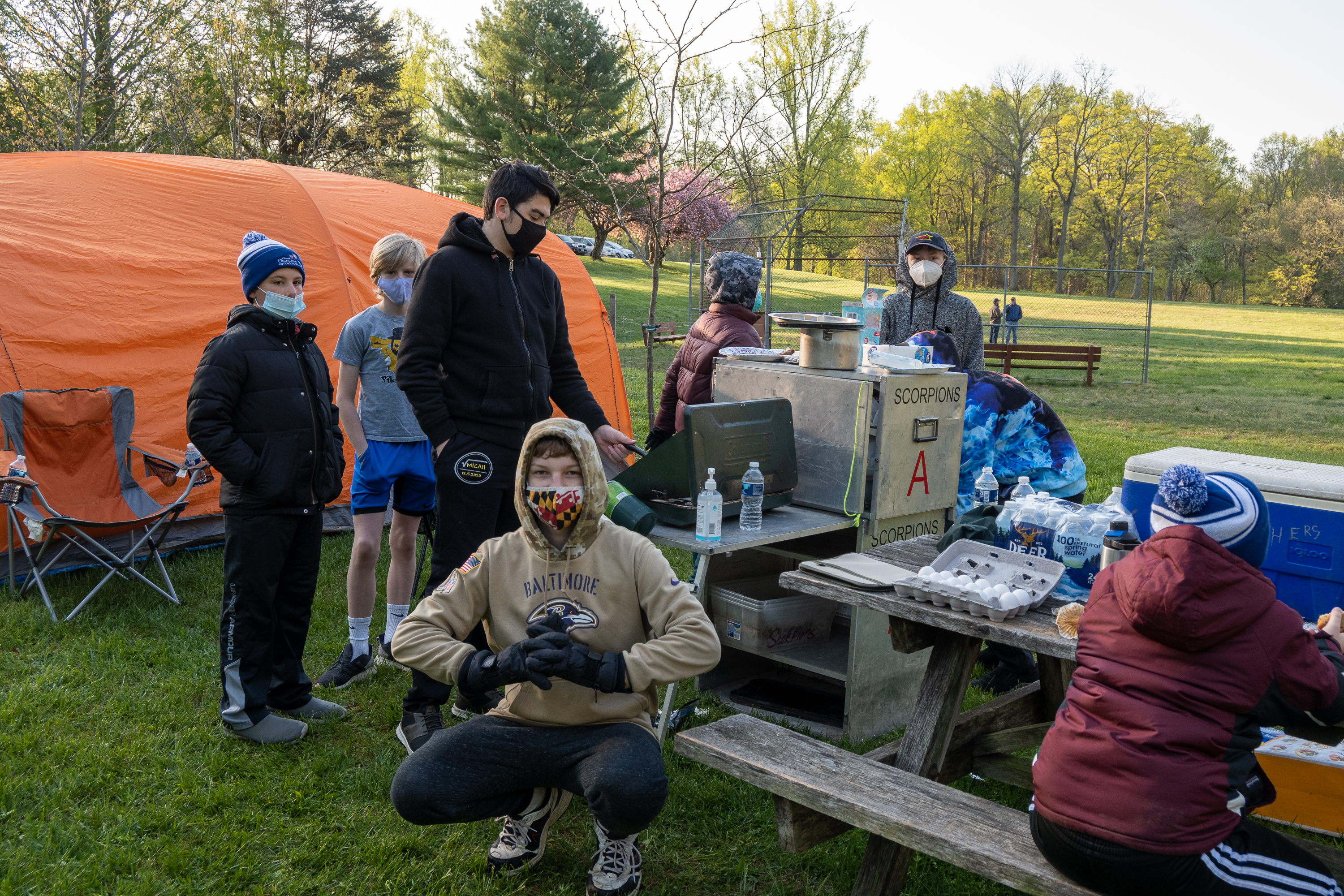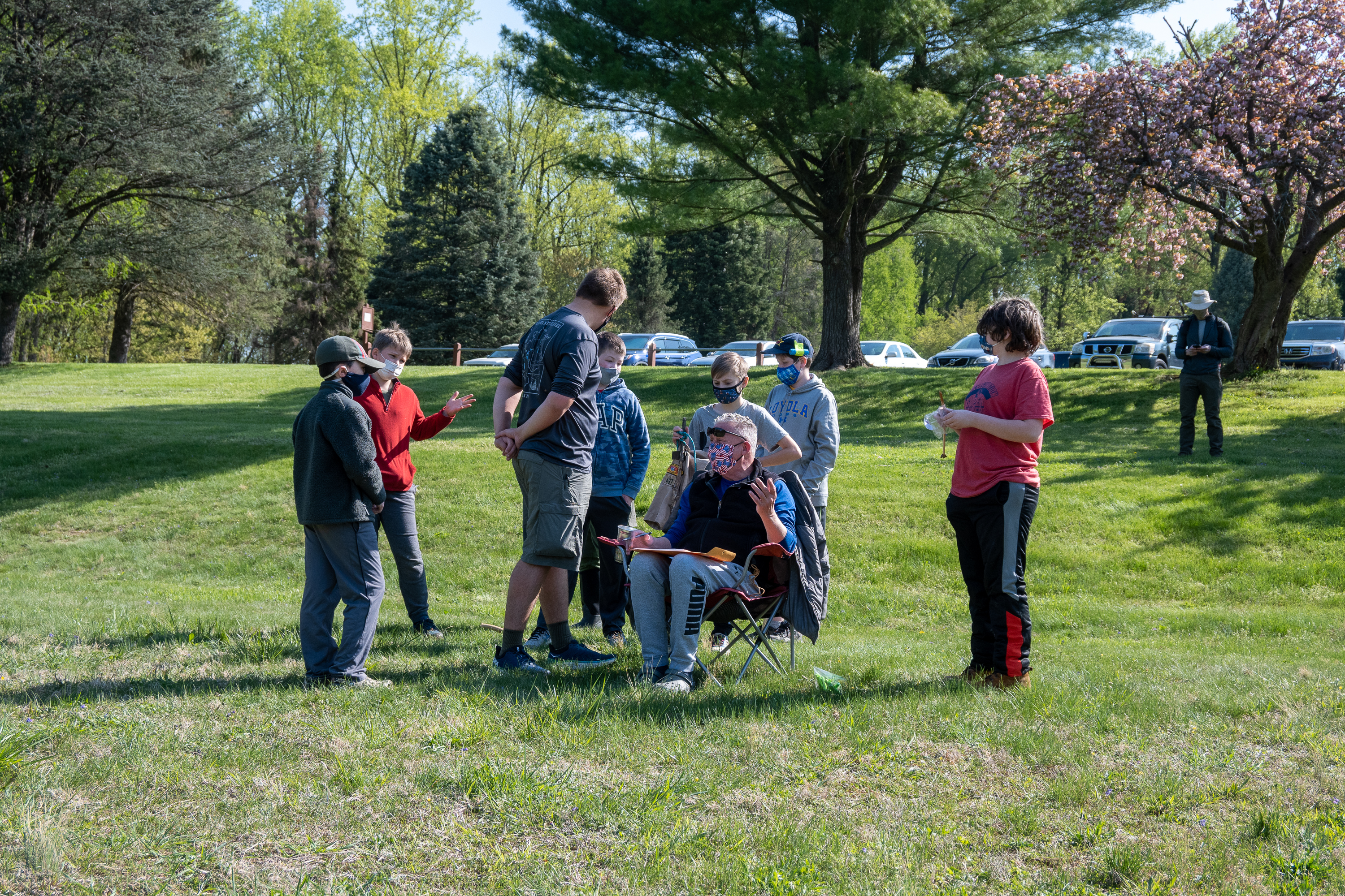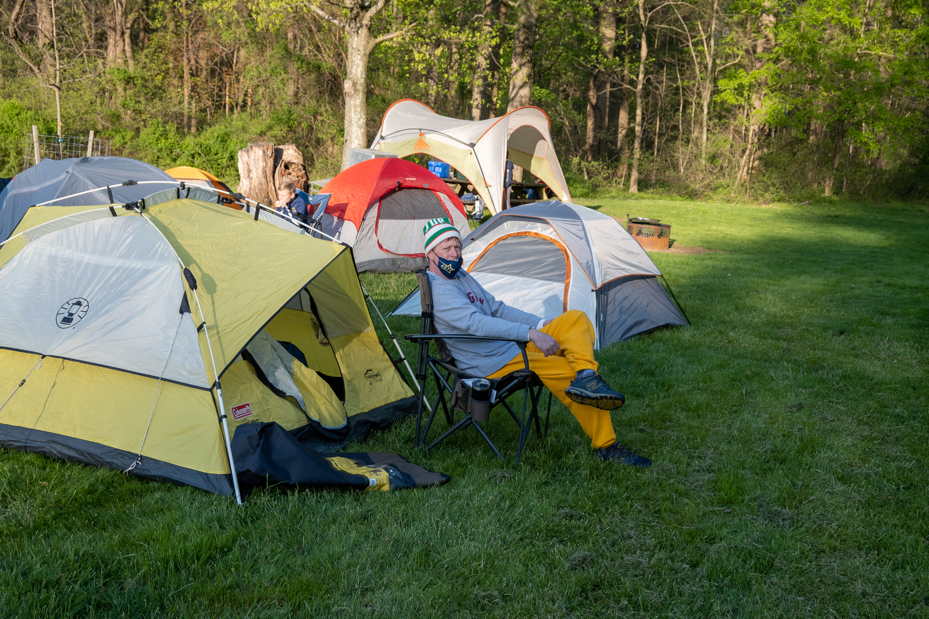 This was our first entire Troop camping trip since our backpacking weekend in March of 2020 and what a camping weekend it was. We broke attendance records for a weekend trip. Participating in the weekend were 107 Scouts, Webelos guests, and adults. We made some changes for Covid-19 safety. Parents had to transport their sons to and from the Susquehannock SP and many of the dads decided to join us for the weekend. Forty-three cars were in the parking lot on Saturday morning. Only immediate family members could tent together so many of us tented alone or with their sons or brothers. In all 77 tents filled our campsites with a very different look since many of the tents were personal tents.The theme for the weekend was Senior Surprise, a patrol based competition weekend in which Scouts compete in Scout skills and other fun challenges. Saturday quickly warmed up and became a mostly sunny day which was perfect for these events. After dinner we had a few sprinkles and then after we were in our tents for the night it rained, sometimes quite hard. We woke to a few sprinkles which ended around 8 AM and then the sun came out again.