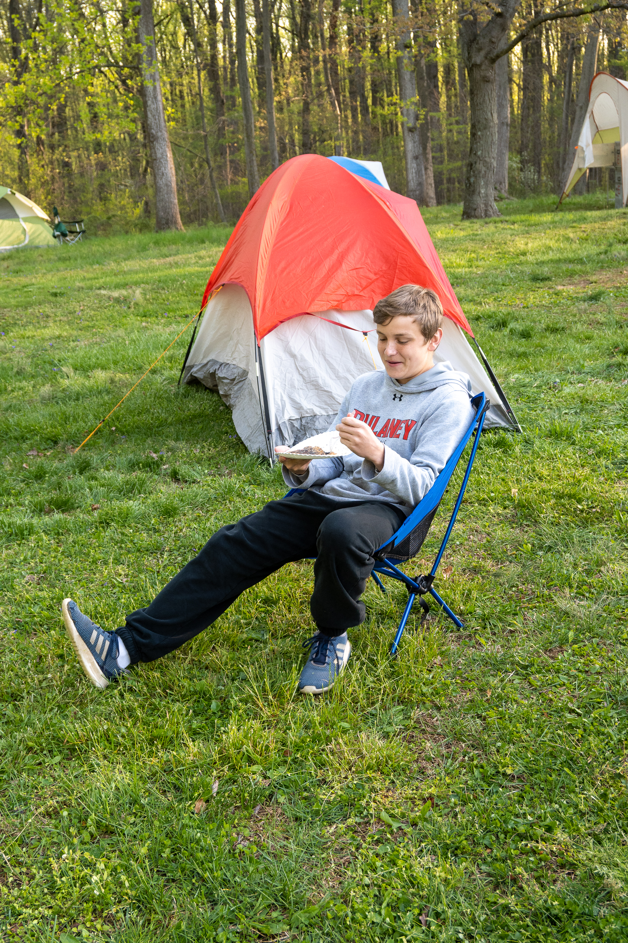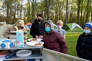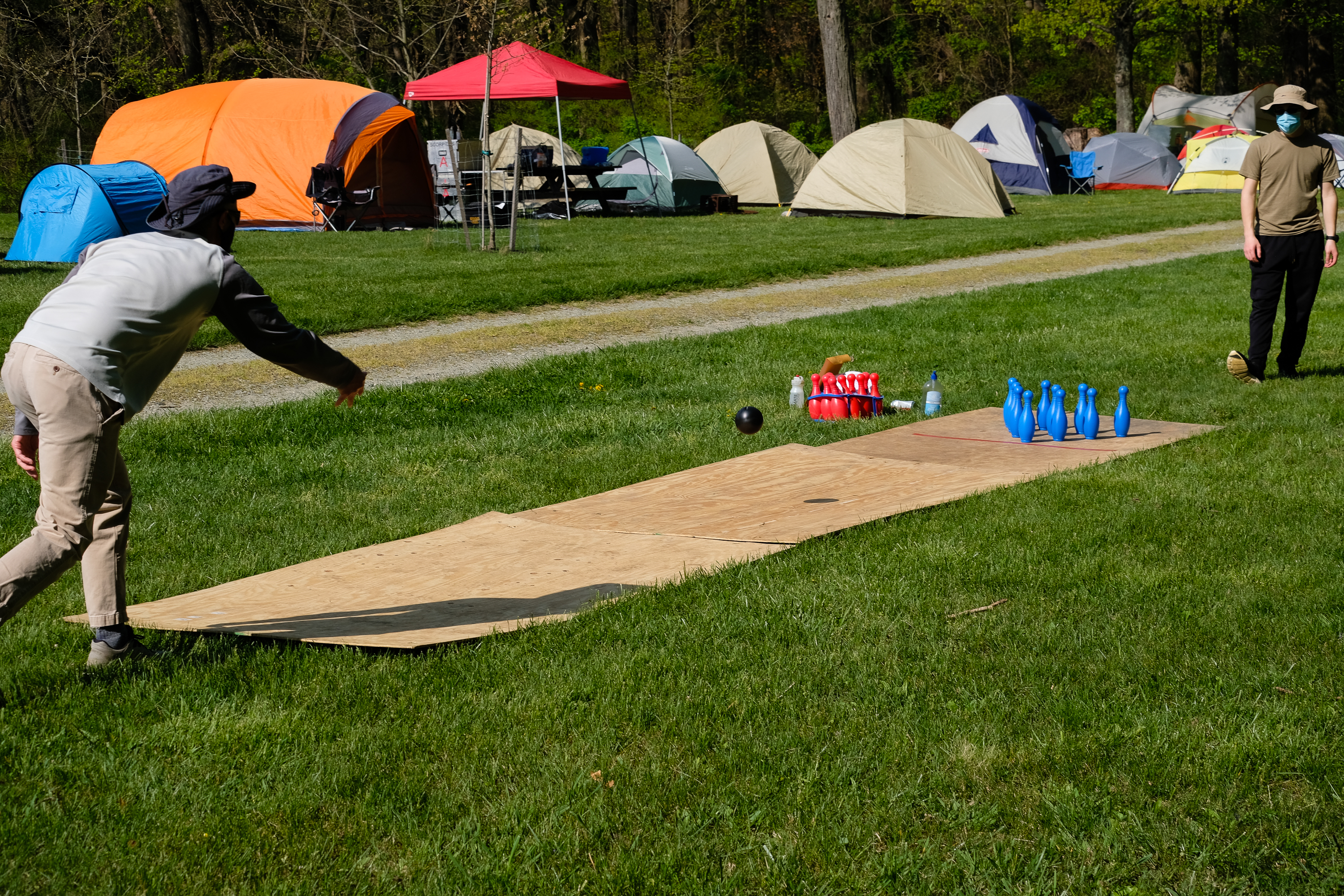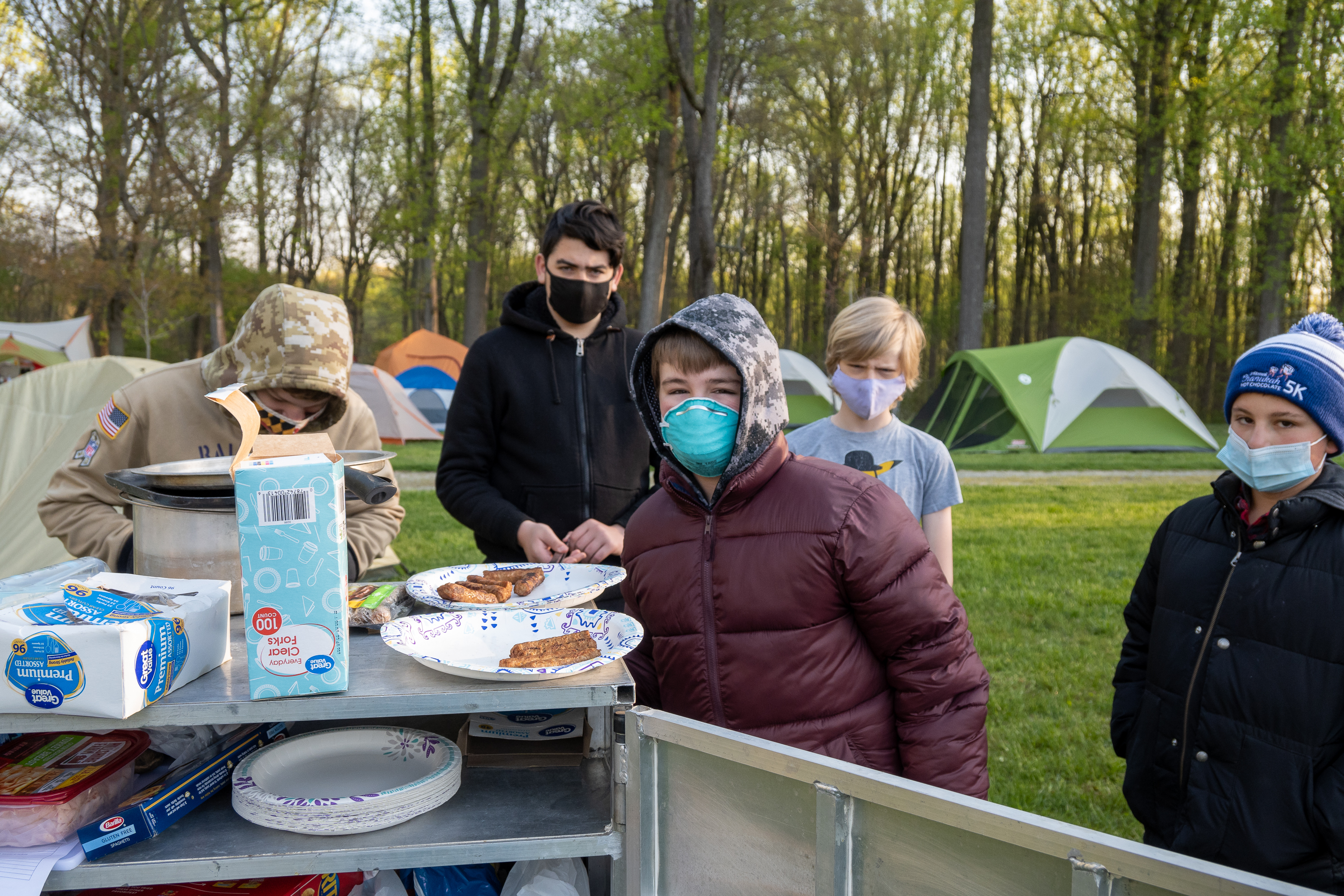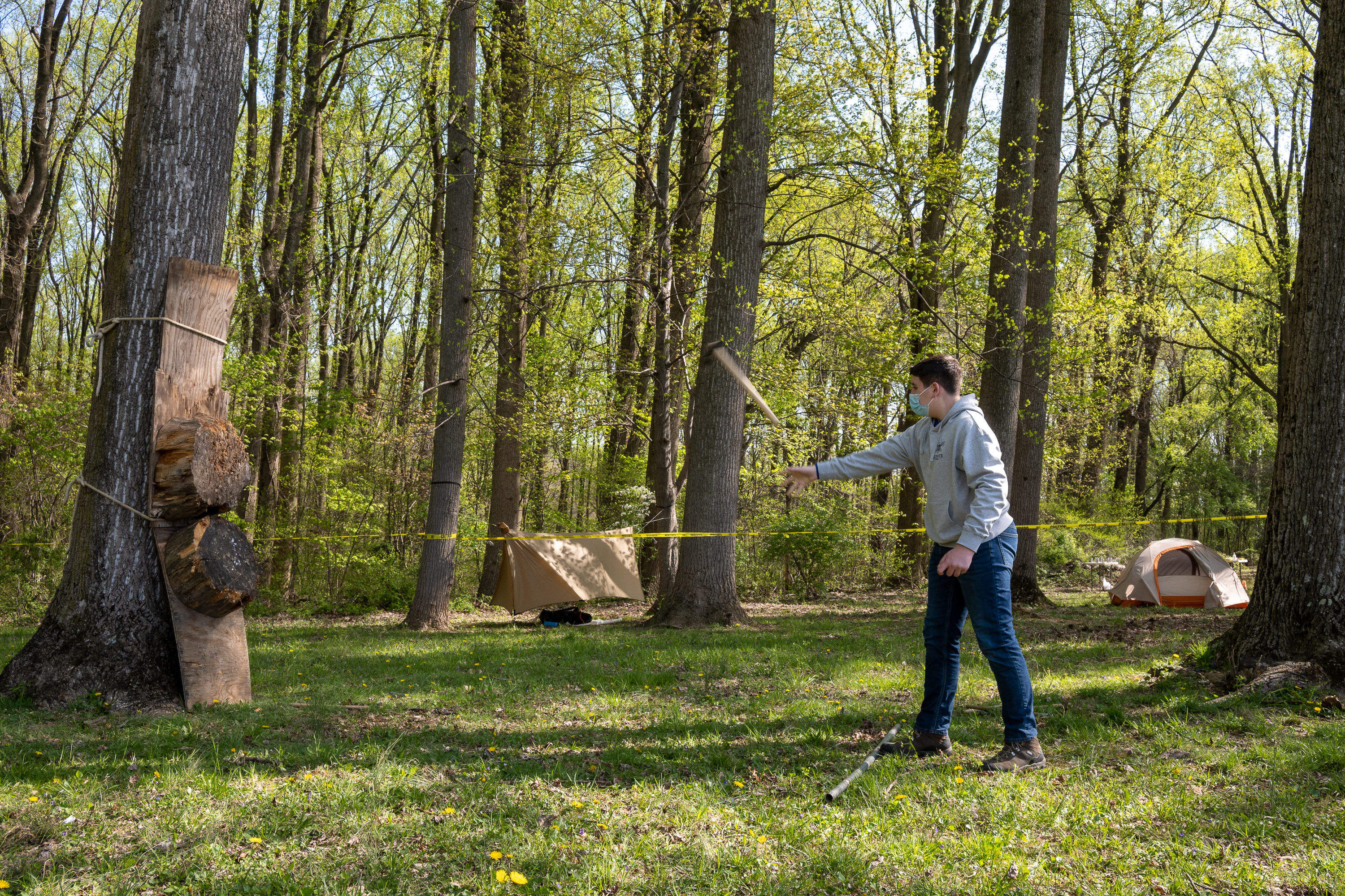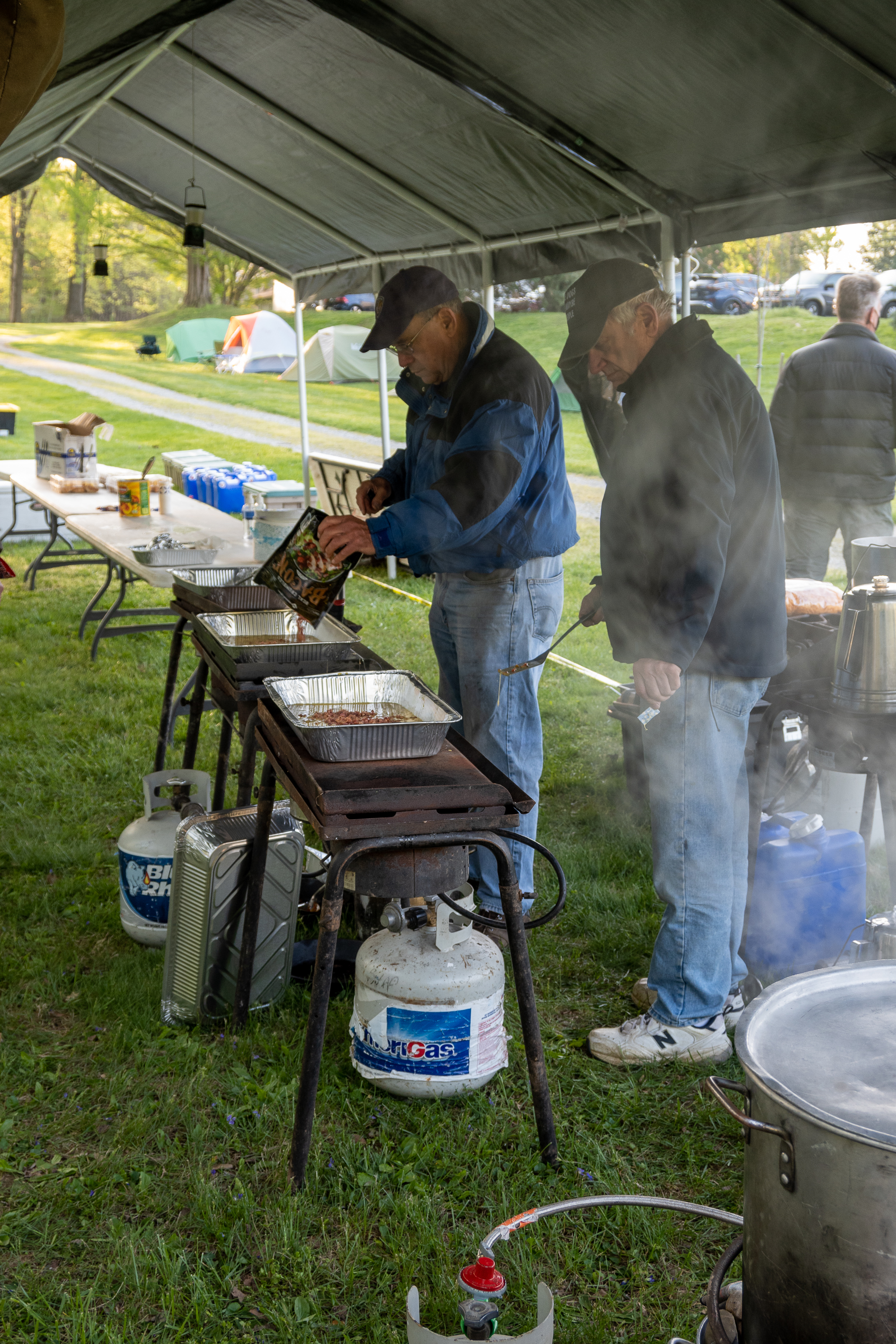 This was our first entire Troop camping trip since our backpacking weekend in March of 2020 and what a camping weekend it was. We broke attendance records for a weekend trip. Participating in the weekend were 107 Scouts, Webelos guests, and adults. We made some changes for Covid-19 safety. Parents had to transport their sons to and from the Susquehannock SP and many of the dads decided to join us for the weekend. Forty-three cars were in the parking lot on Saturday morning. Only immediate family members could tent together so many of us tented alone or with their sons or brothers. In all 77 tents filled our campsites with a very different look since many of the tents were personal tents.The theme for the weekend was Senior Surprise, a patrol based competition weekend in which Scouts compete in Scout skills and other fun challenges. Saturday quickly warmed up and became a mostly sunny day which was perfect for these events. After dinner we had a few sprinkles and then after we were in our tents for the night it rained, sometimes quite hard. We woke to a few sprinkles which ended around 8 AM and then the sun came out again.