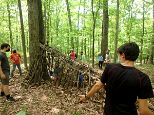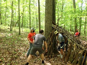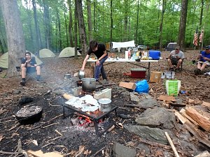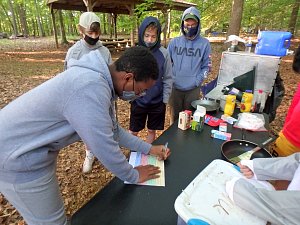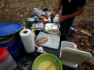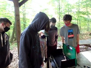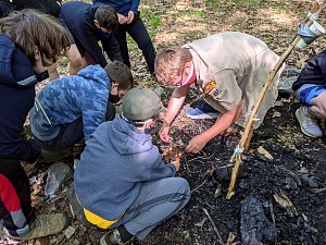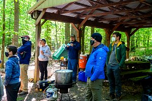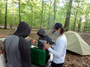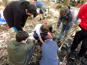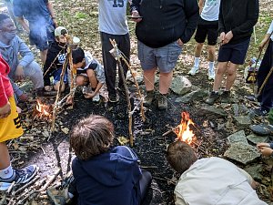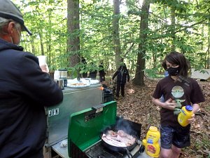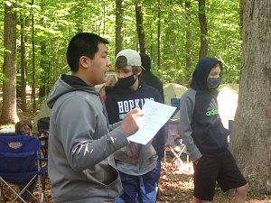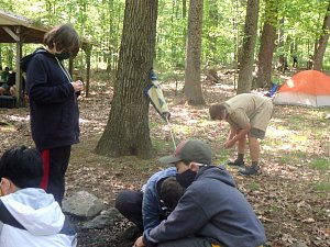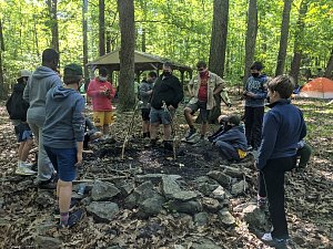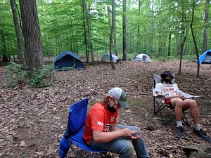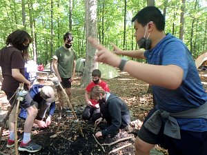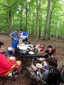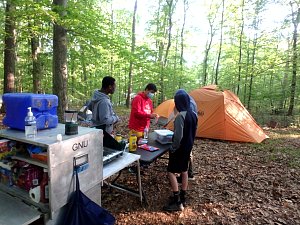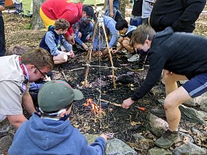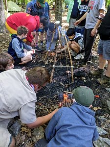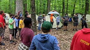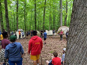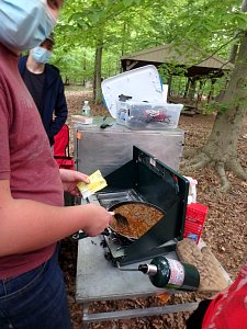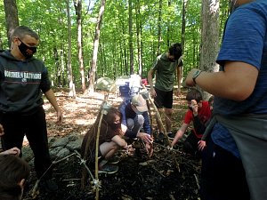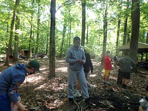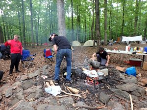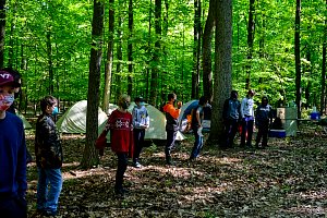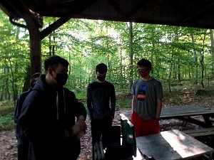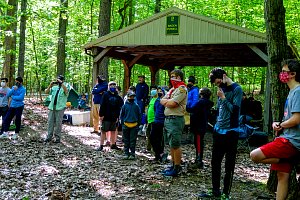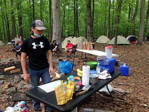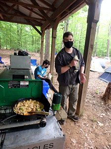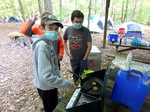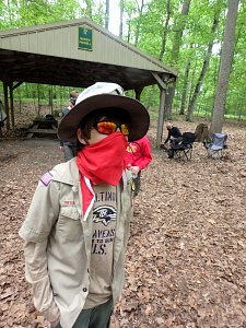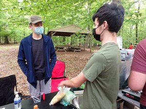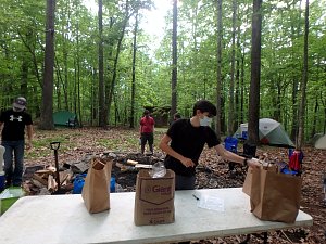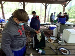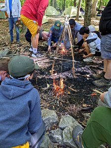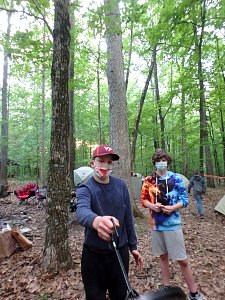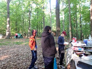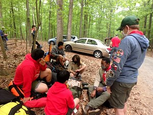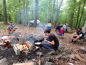 We camp at Broad Creek Memorial Scout Reservation, Camp Oest May 14-16, 2021. We had three wooded campsites. The weather was perfect for camping with nighttime temperatures in the mid 40s and highs in the 70s. This was a patrol cooking trip and the Scouts appeared to eat quite well. Two Scouts cooked their PASS meals on Saturday and the Scouts who ate those meals had quite the feast!The main activities for the weekend was a shelter/fort building competition followed by a game of capture the flag using the shelters/forts and a fire building competition. Parents transported their sons once again to the camp because of Covid-19 protocols and everyone wore mask throughout the weekend. Scouts were allowed to bring chairs so they could keep separated more easily and we had multiple campfires on Saturday instead of one big gathering.