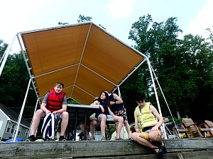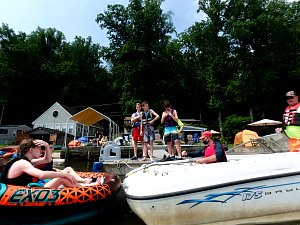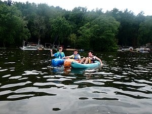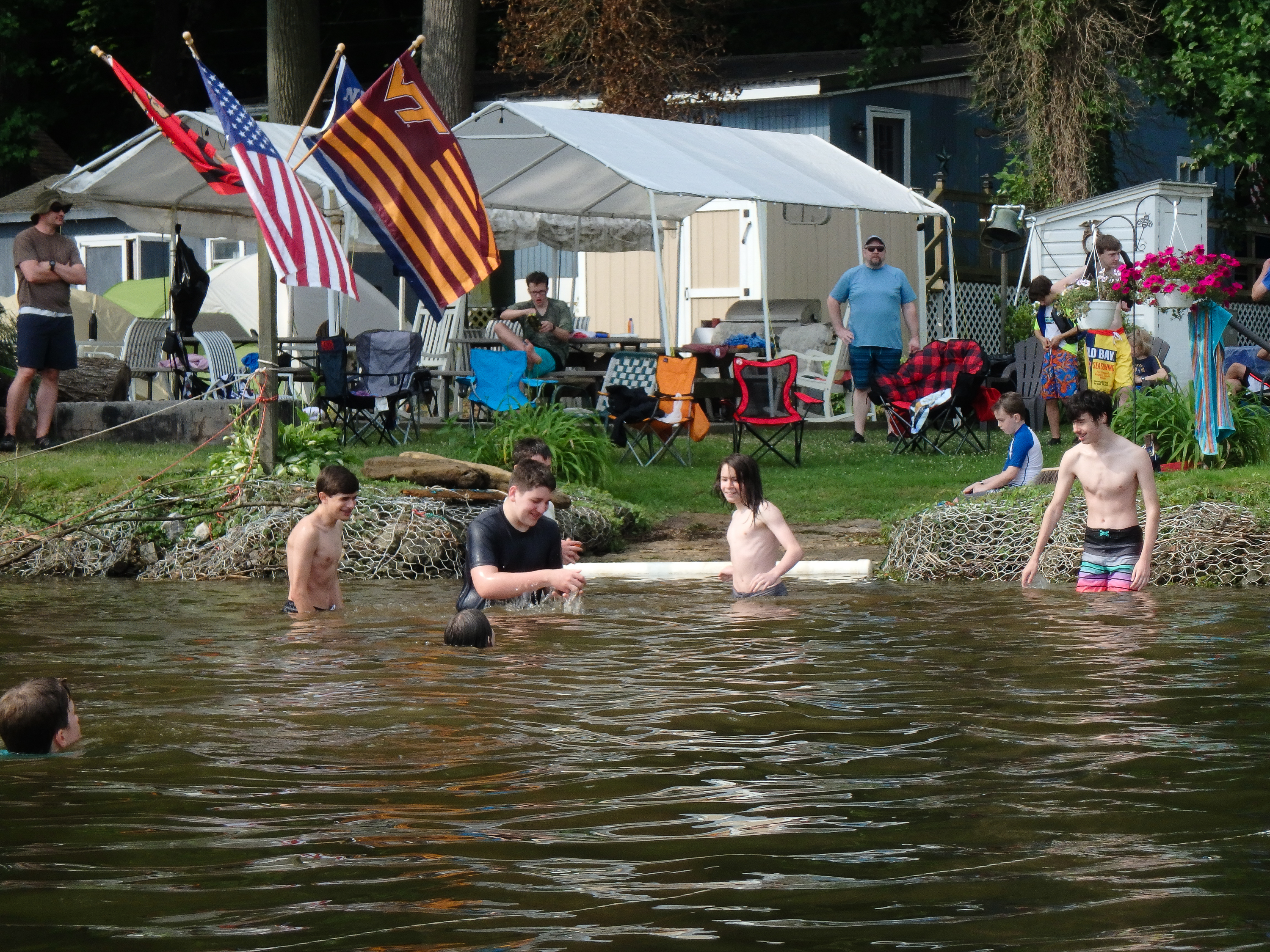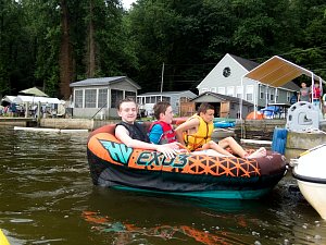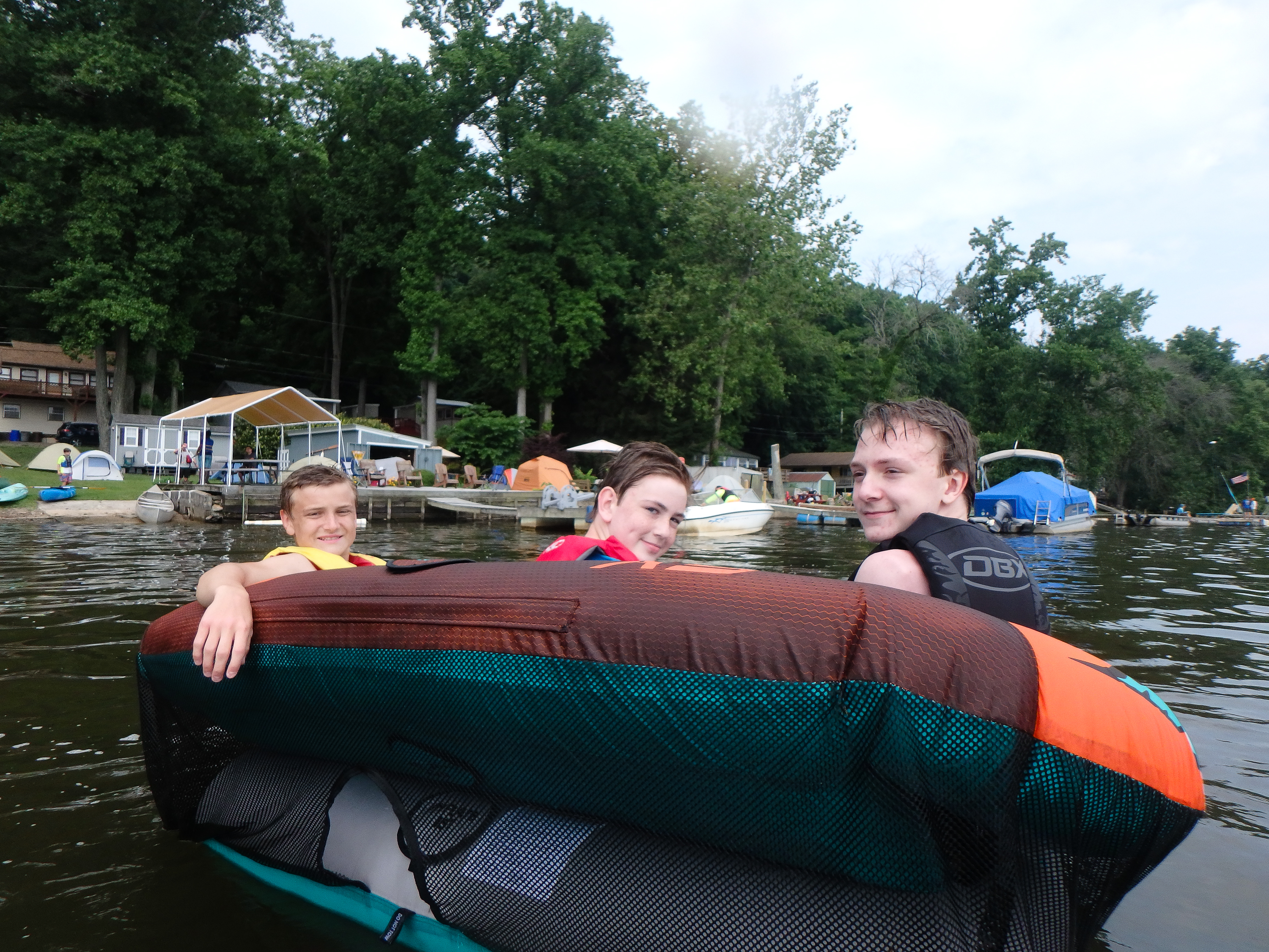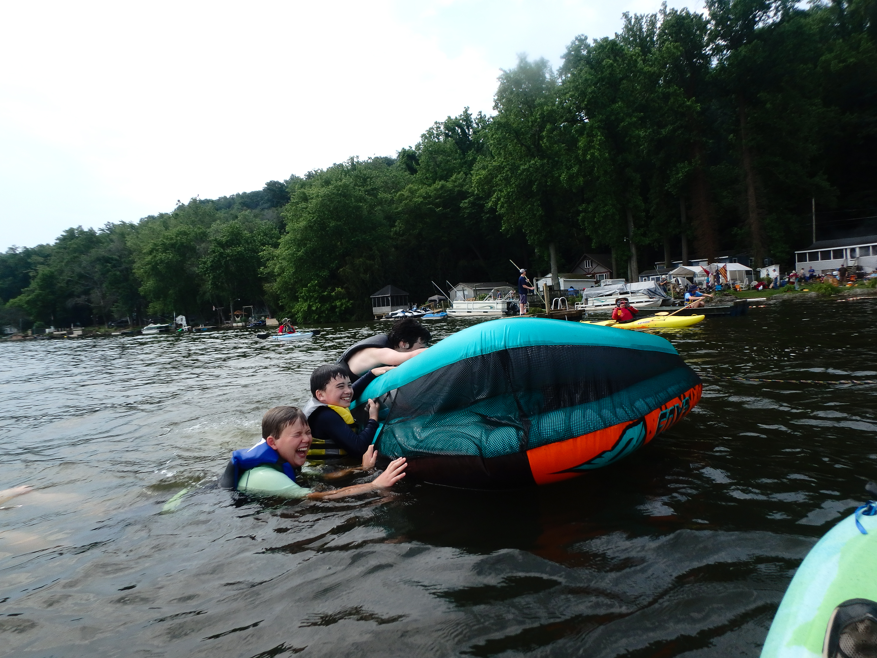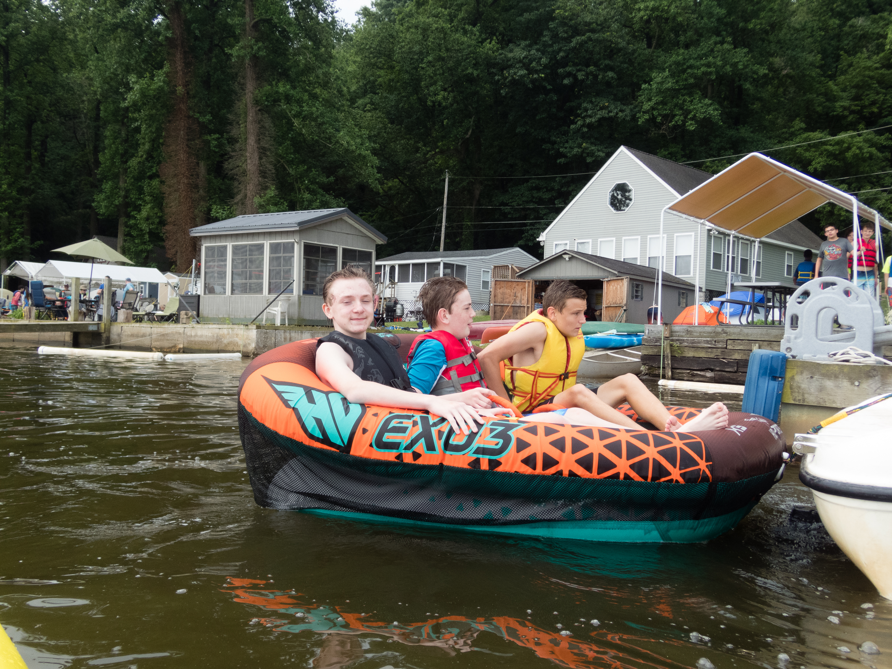 When you look at the photographs you can see all the water based activities that were partaken including swimming, tubing, canoeing, kayaking, fishing, and motor boating. The weather cooperated with partly cloudy skies on Saturday without any of the threatened thunderstorms. The cooler nighttime temperatures made it more comfortable for sleeping.