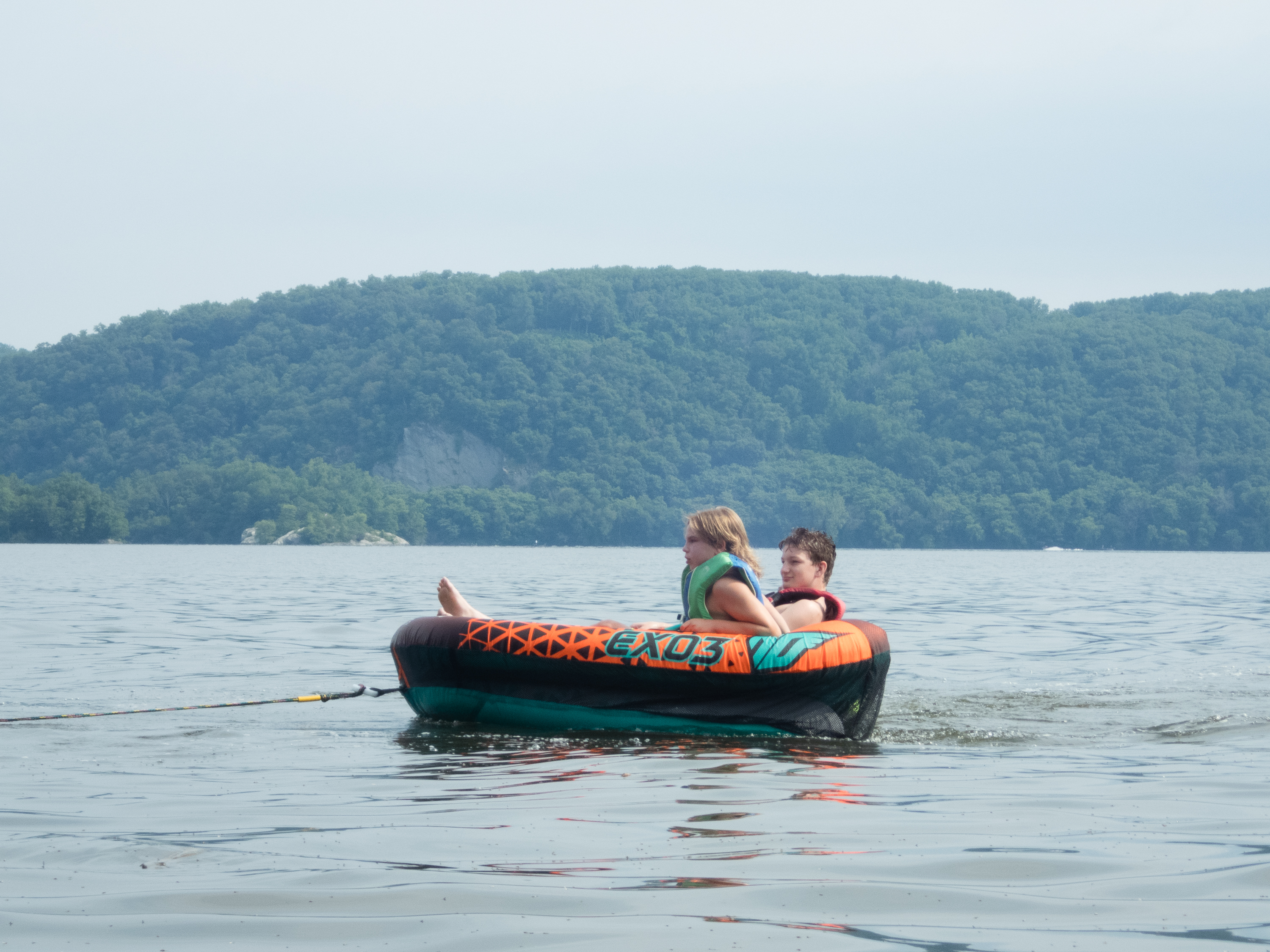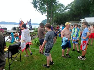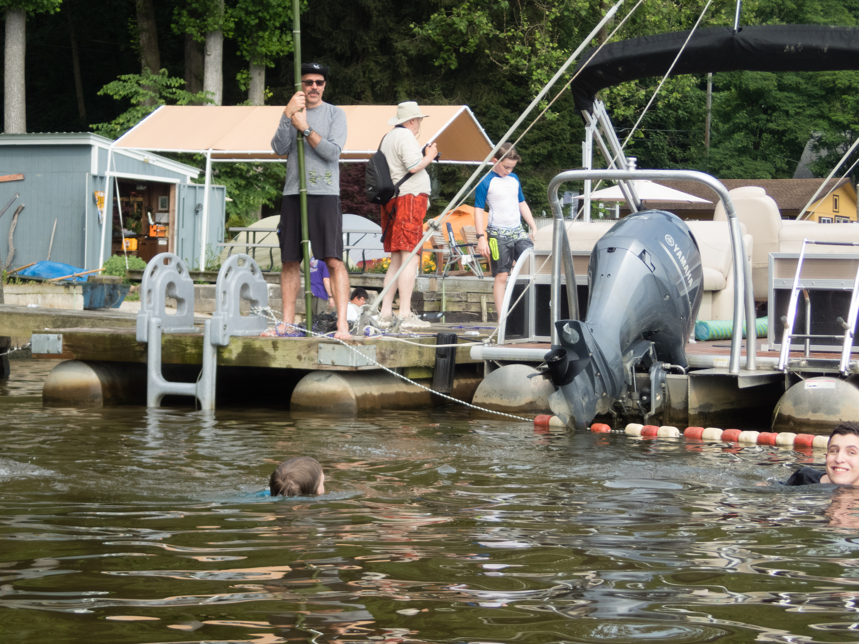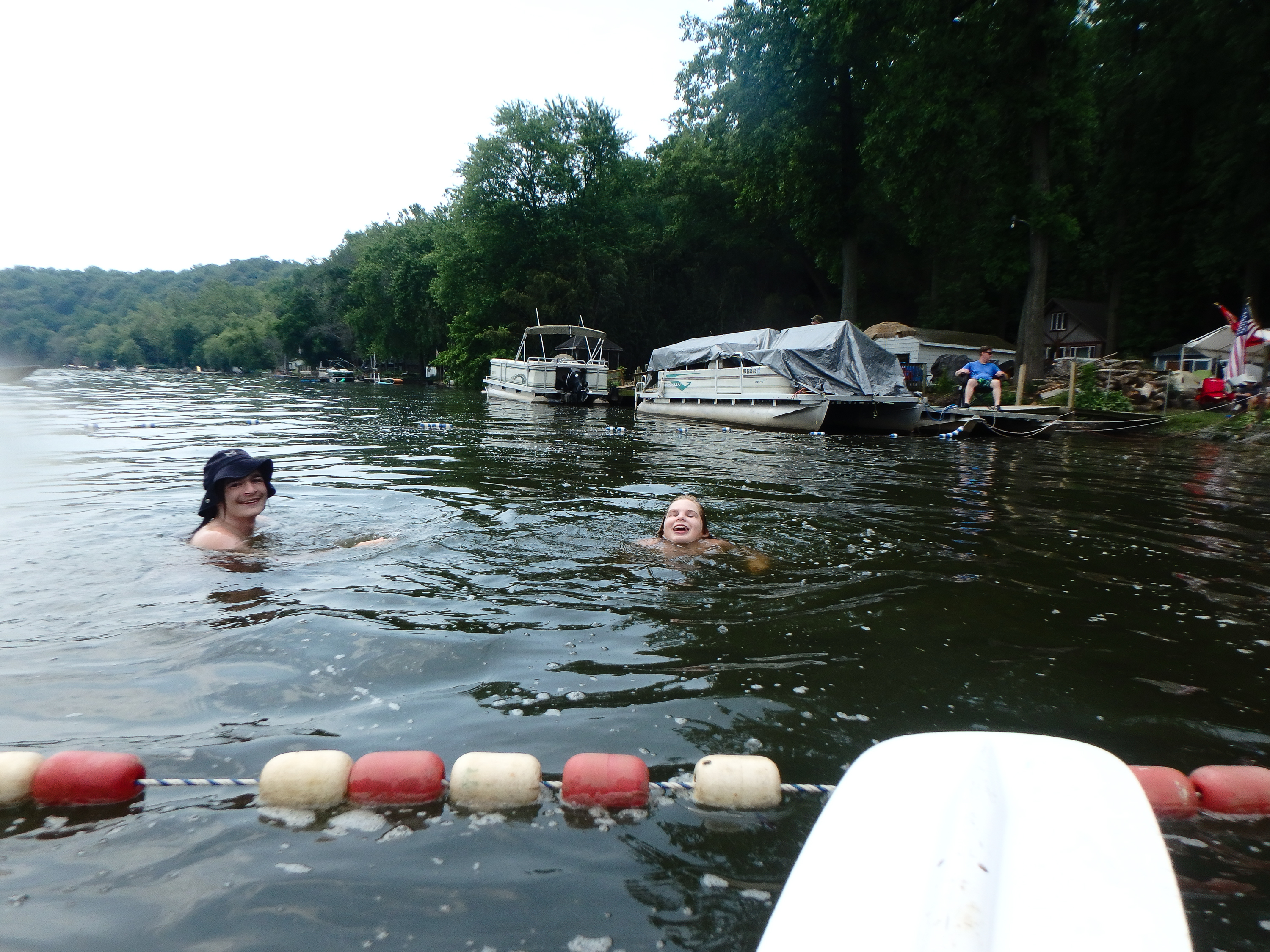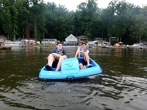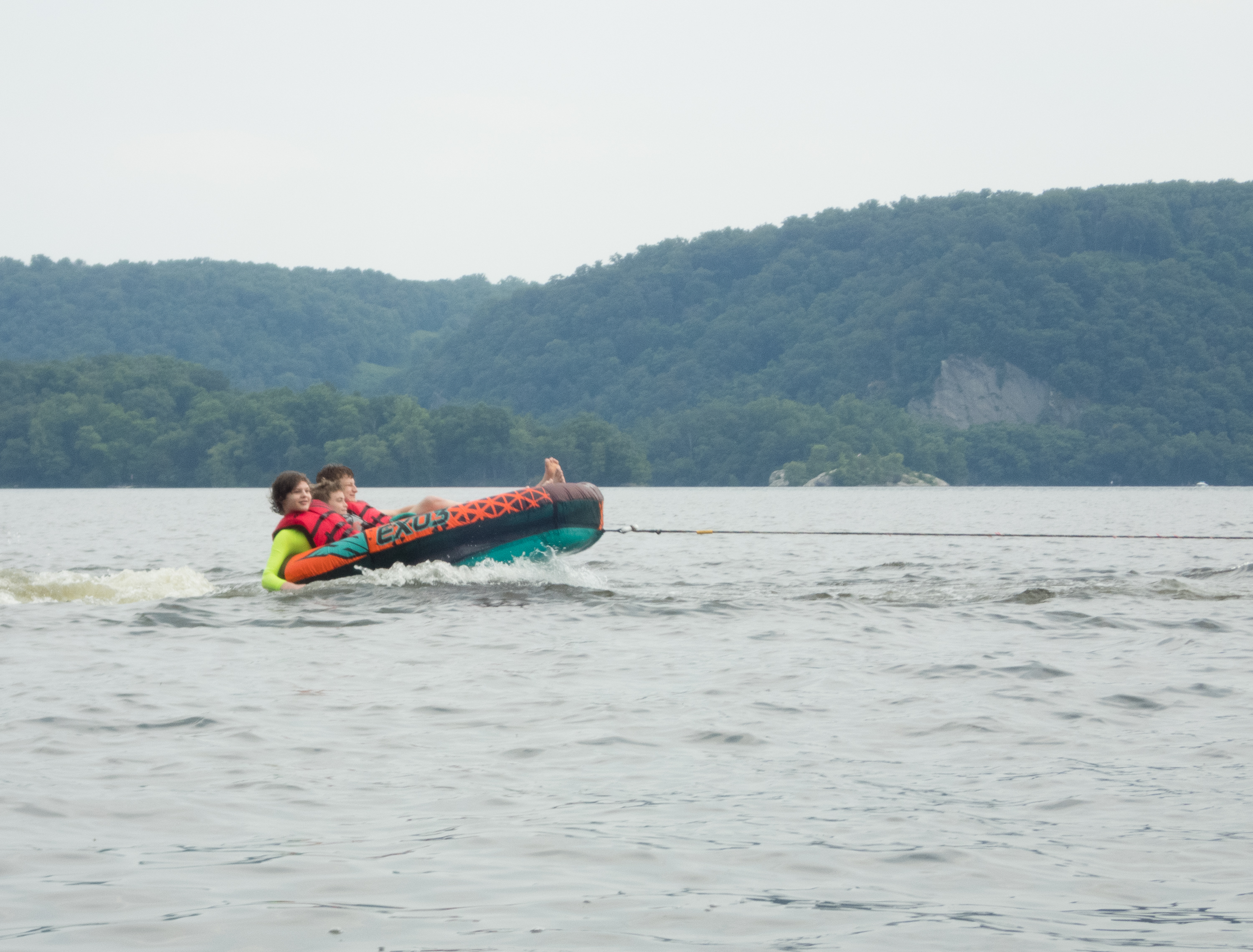 When you look at the photographs you can see all the water based activities that were partaken including swimming, tubing, canoeing, kayaking, fishing, and motor boating. The weather cooperated with partly cloudy skies on Saturday without any of the threatened thunderstorms. The cooler nighttime temperatures made it more comfortable for sleeping.