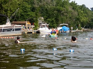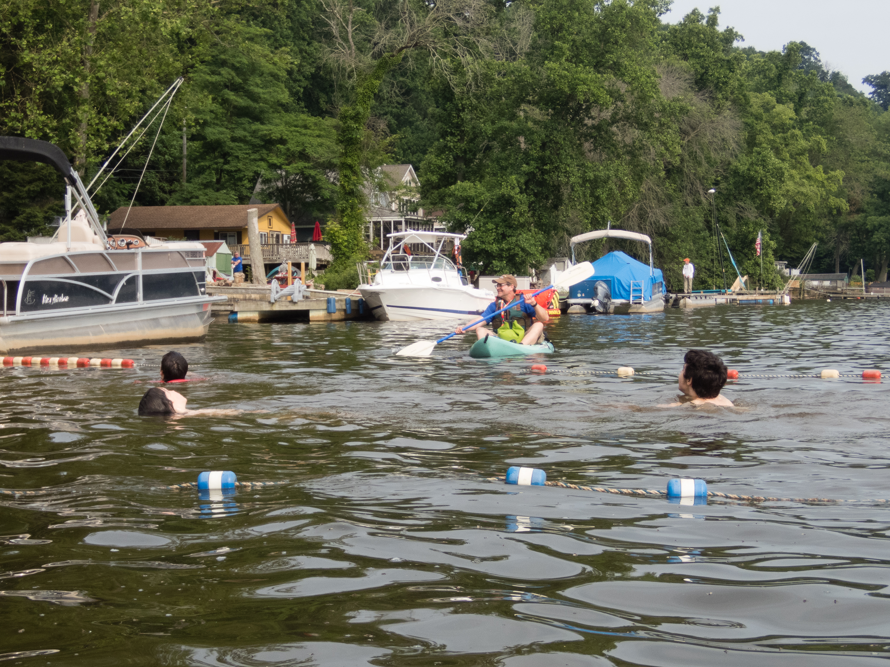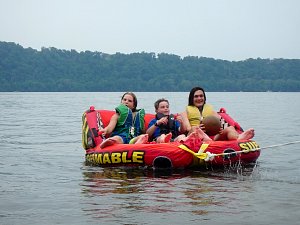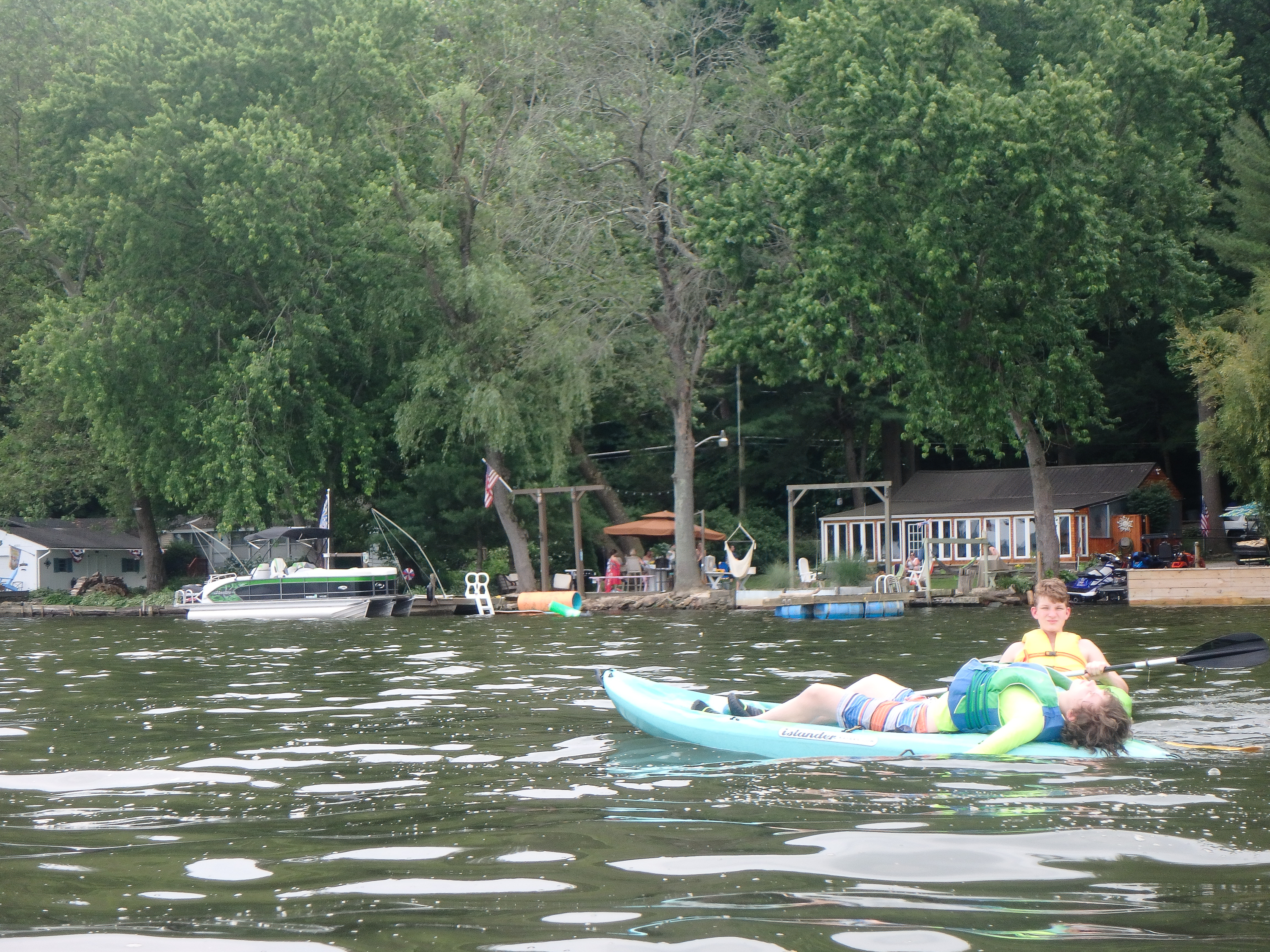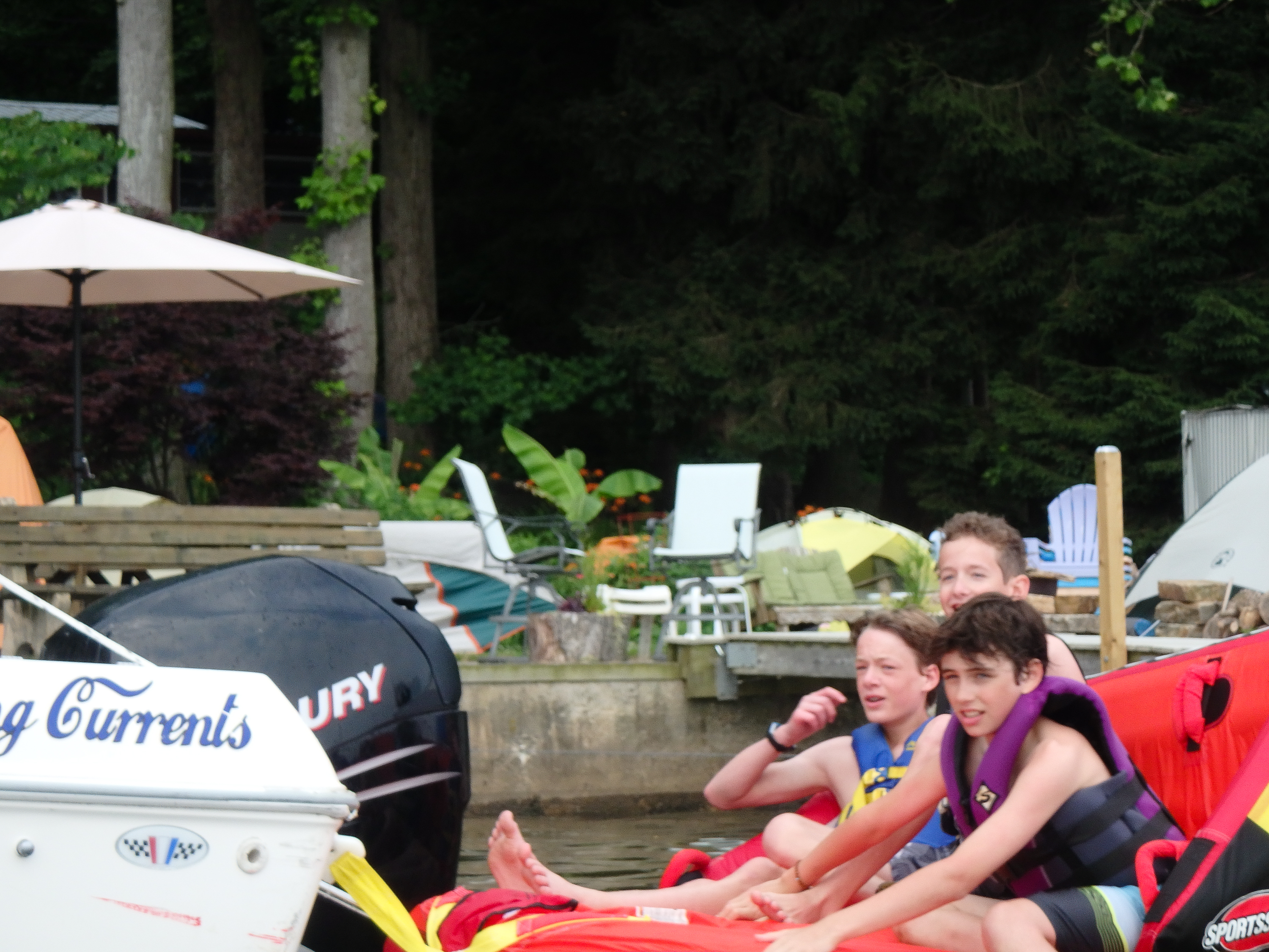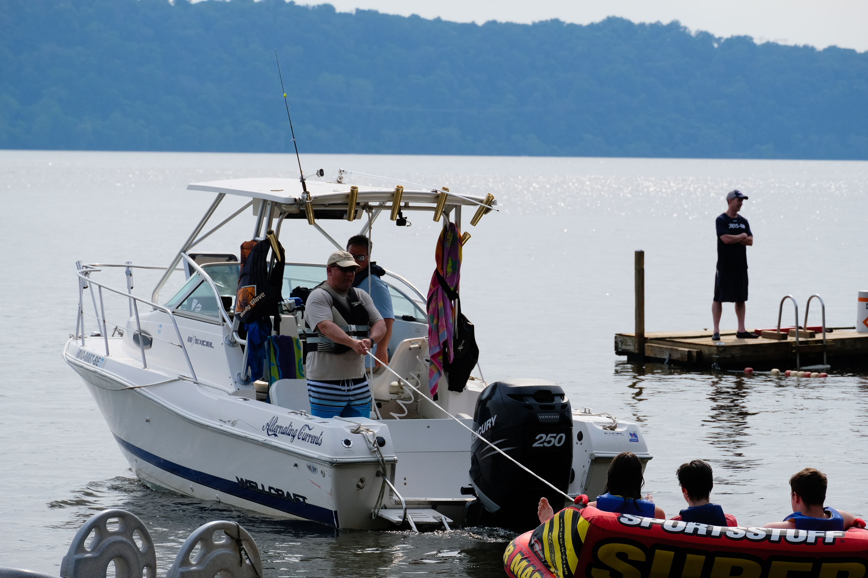 When you look at the photographs you can see all the water based activities that were partaken including swimming, tubing, canoeing, kayaking, fishing, and motor boating. The weather cooperated with partly cloudy skies on Saturday without any of the threatened thunderstorms. The cooler nighttime temperatures made it more comfortable for sleeping.