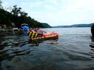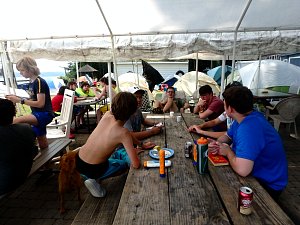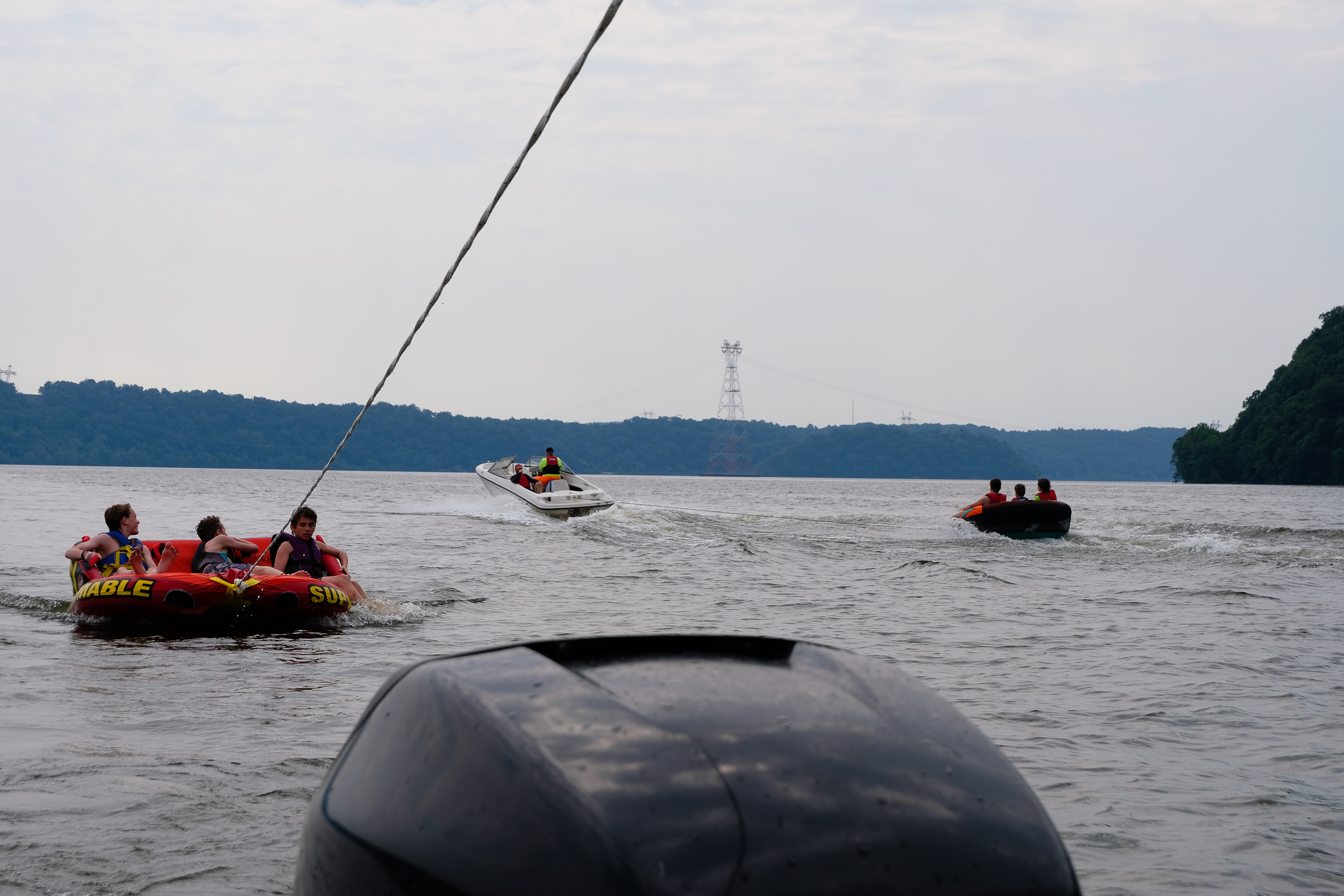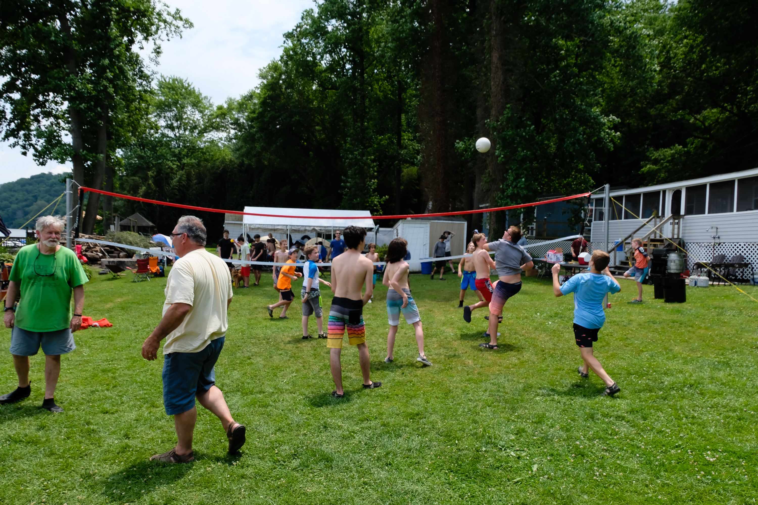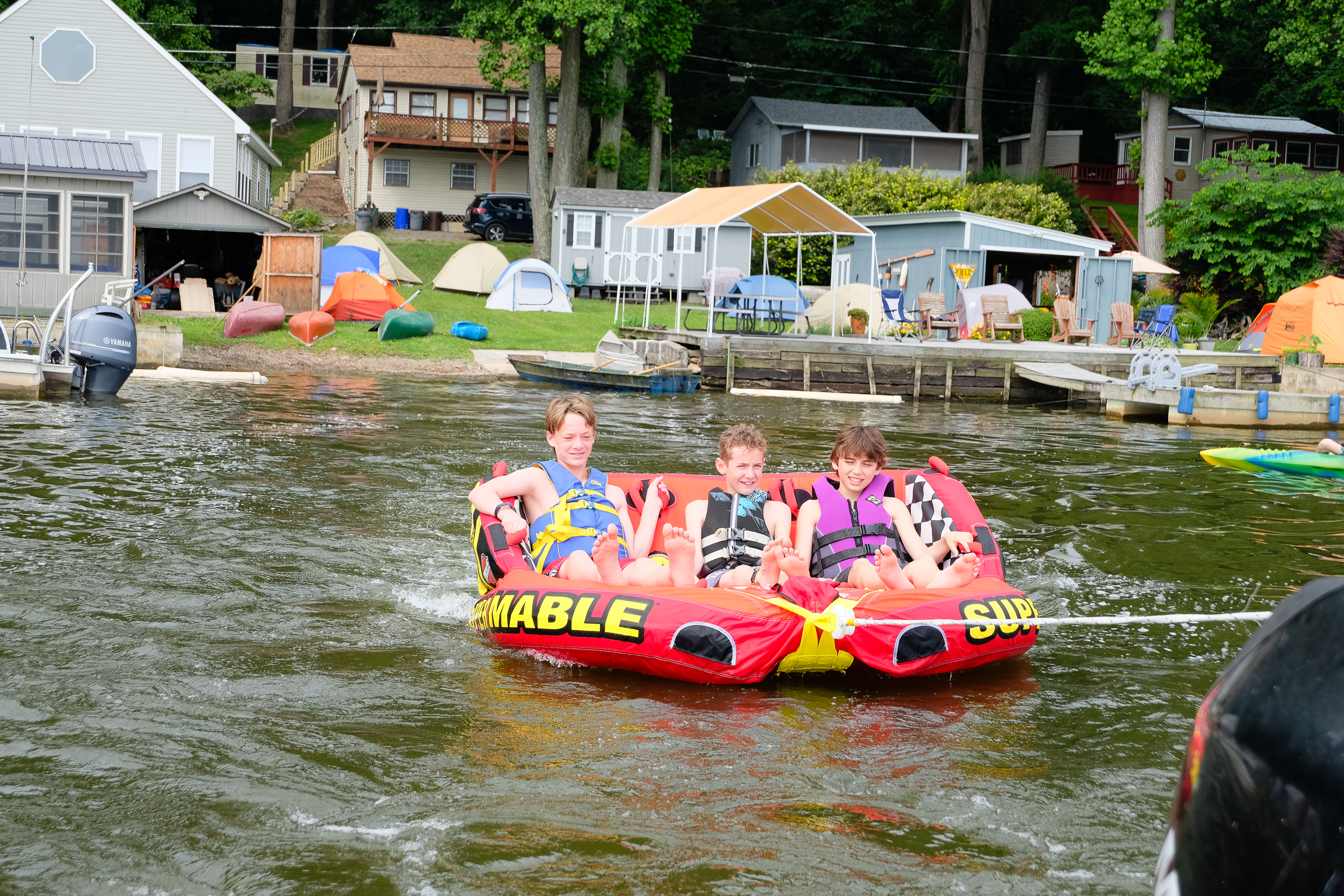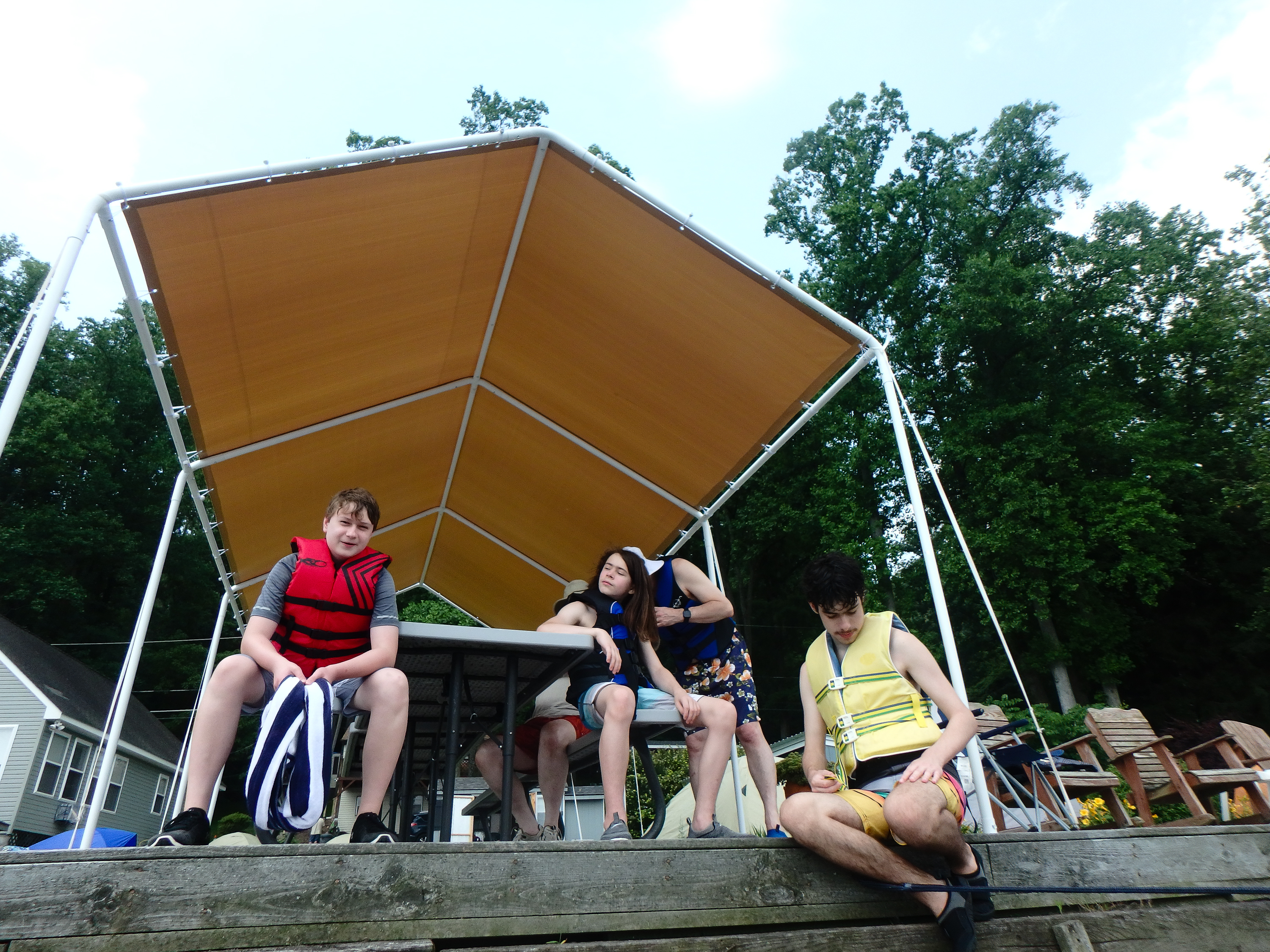 When you look at the photographs you can see all the water based activities that were partaken including swimming, tubing, canoeing, kayaking, fishing, and motor boating. The weather cooperated with partly cloudy skies on Saturday without any of the threatened thunderstorms. The cooler nighttime temperatures made it more comfortable for sleeping.