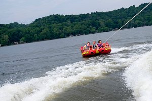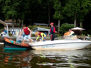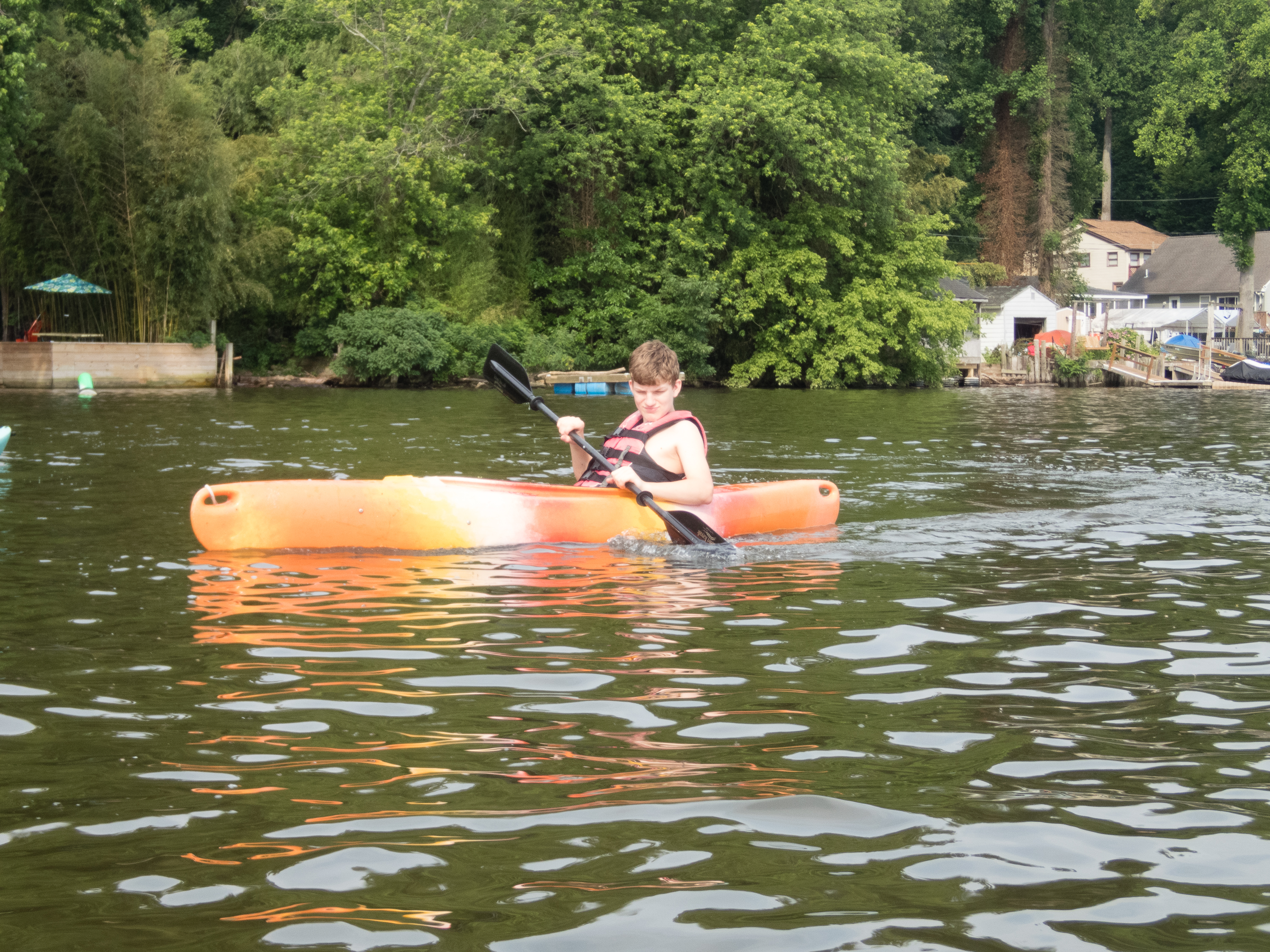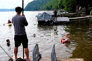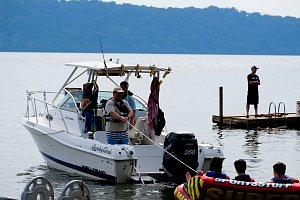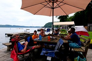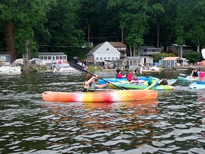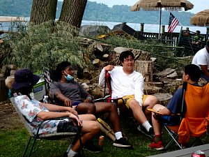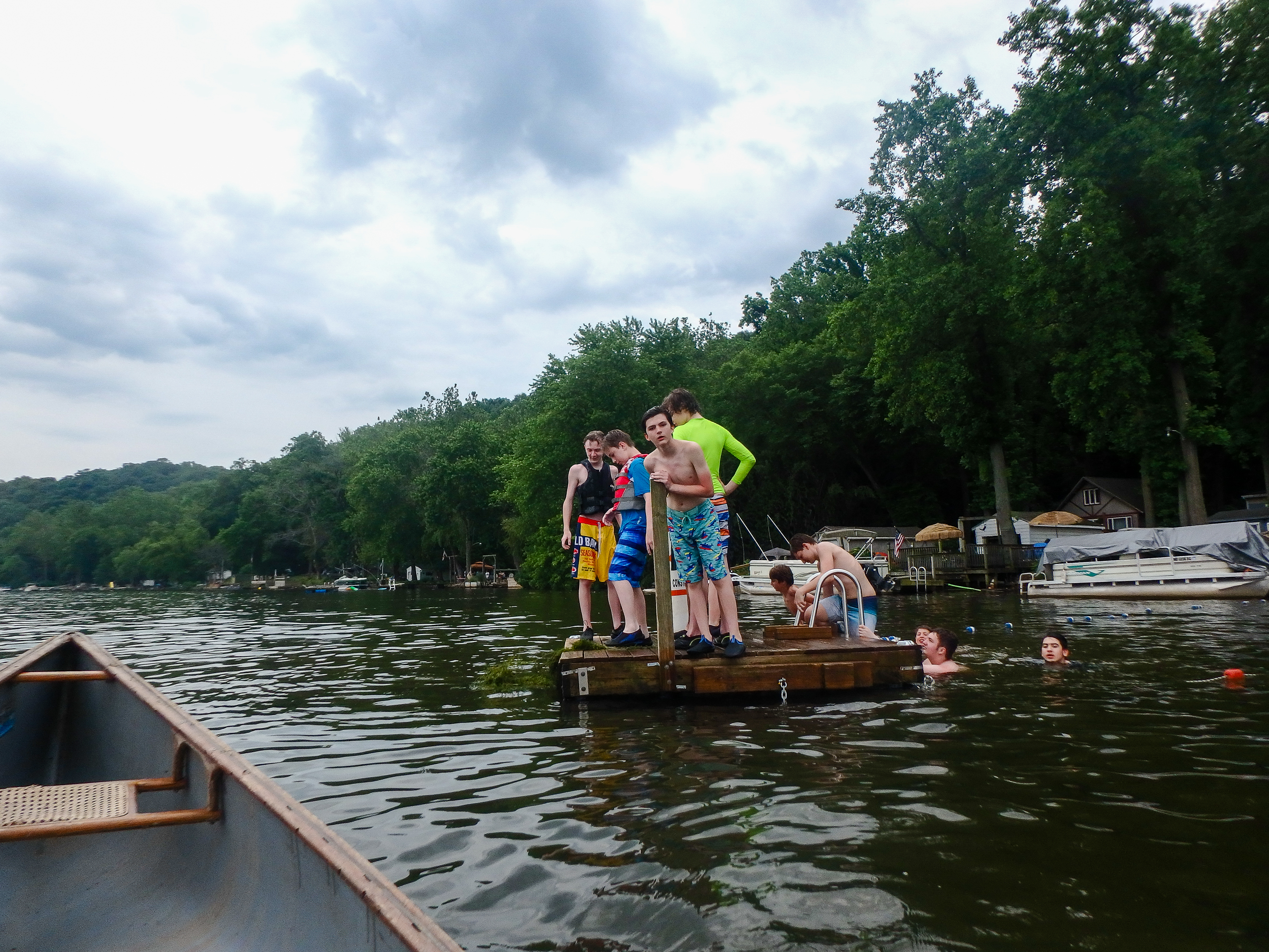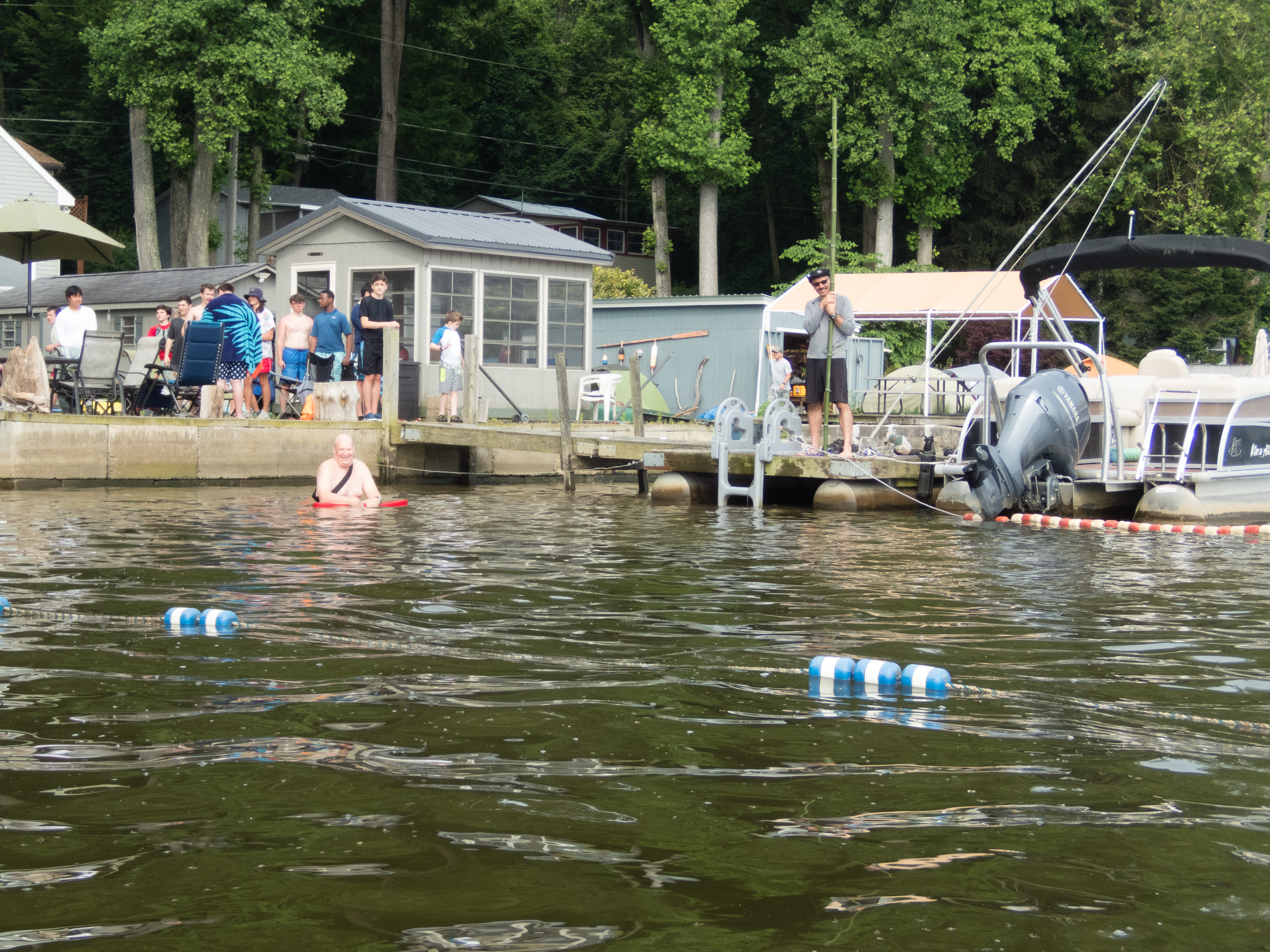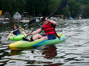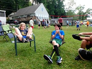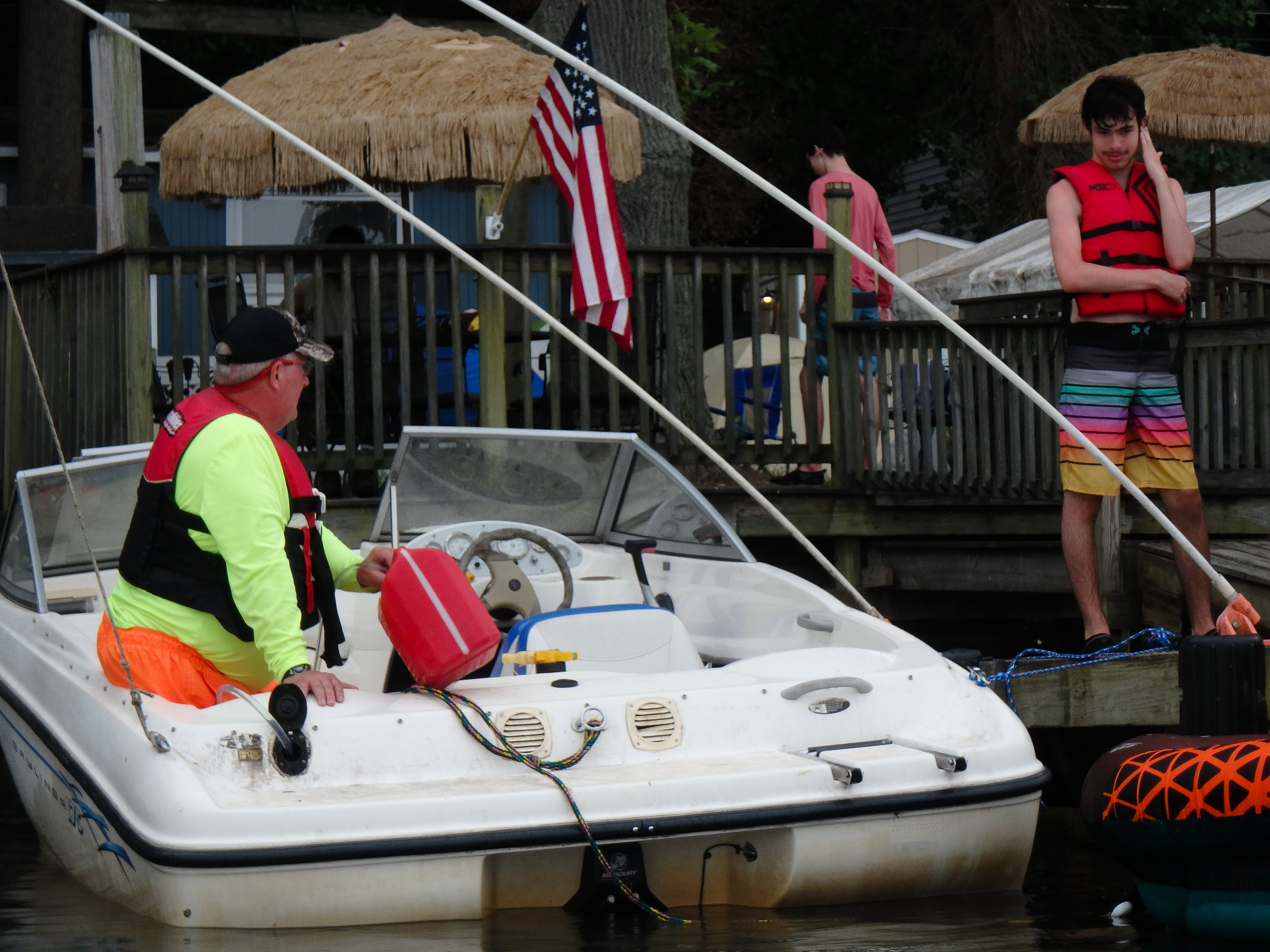 When you look at the photographs you can see all the water based activities that were partaken including swimming, tubing, canoeing, kayaking, fishing, and motor boating. The weather cooperated with partly cloudy skies on Saturday without any of the threatened thunderstorms. The cooler nighttime temperatures made it more comfortable for sleeping.