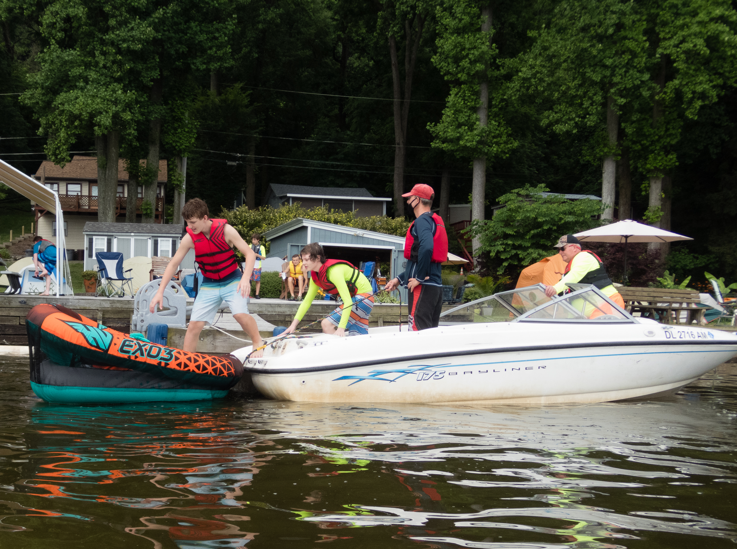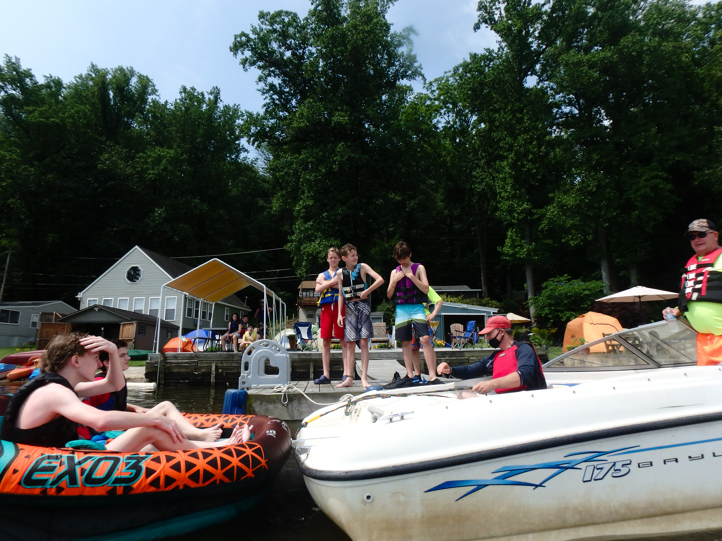 Our June camping trip this year was once again a water weekend on the Susquehanna River. Troop 497 is very thankful to the families who so generously allowed us to camp in their front yards along the river and use their waterfront facilities. About 70 Scouts, adult leaders, and parents camped out with additional people coming up for the day on Saturday.