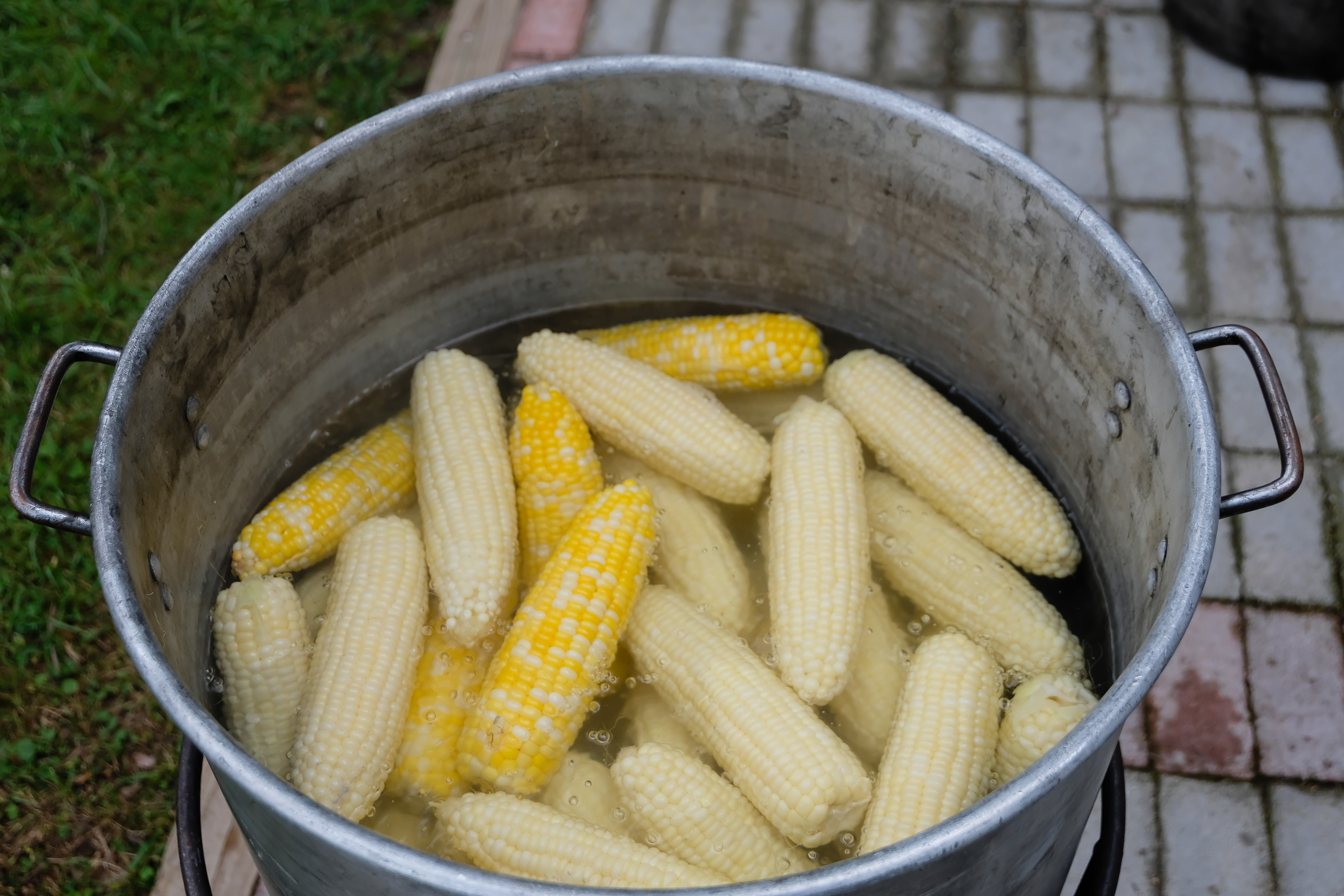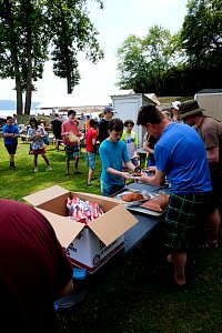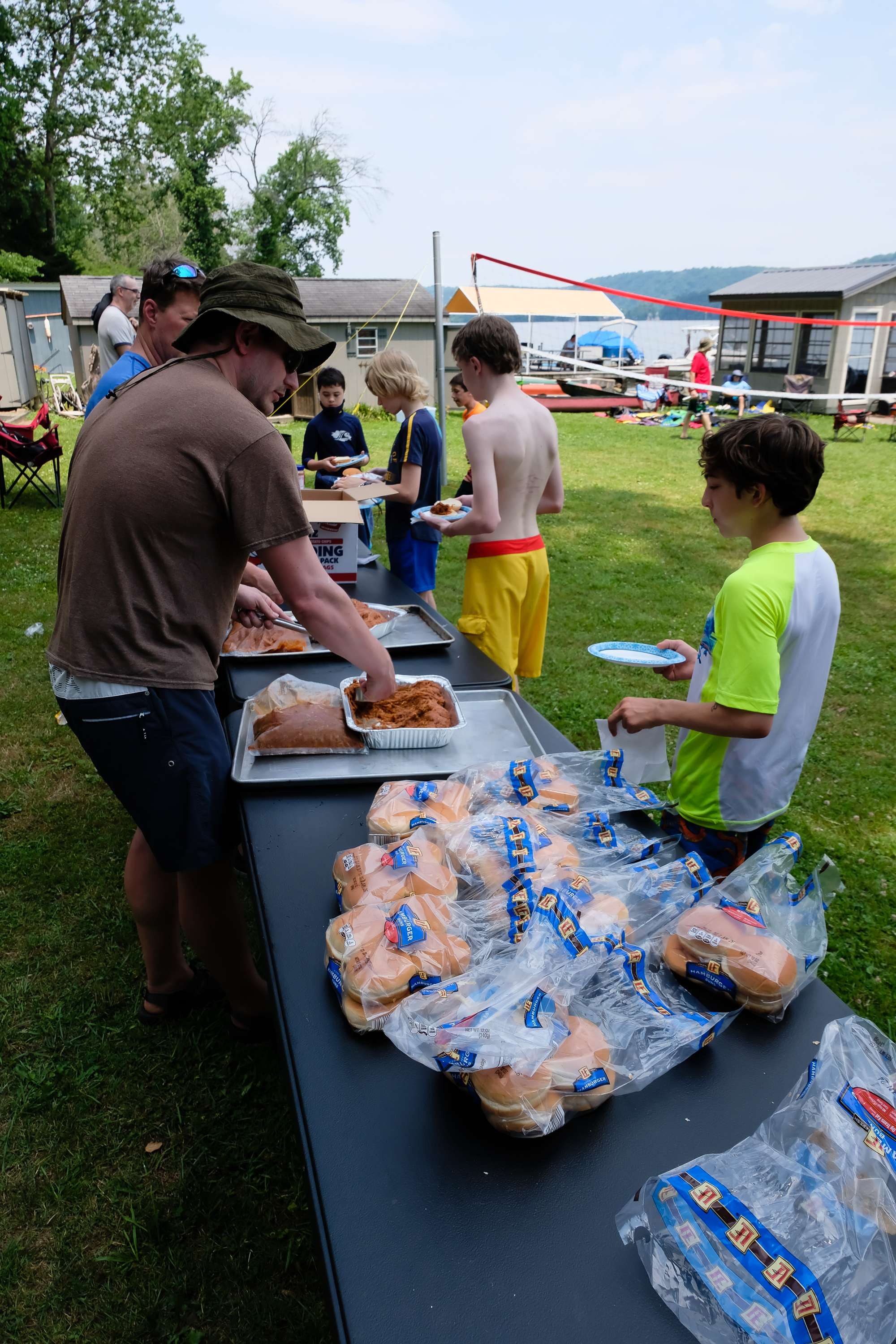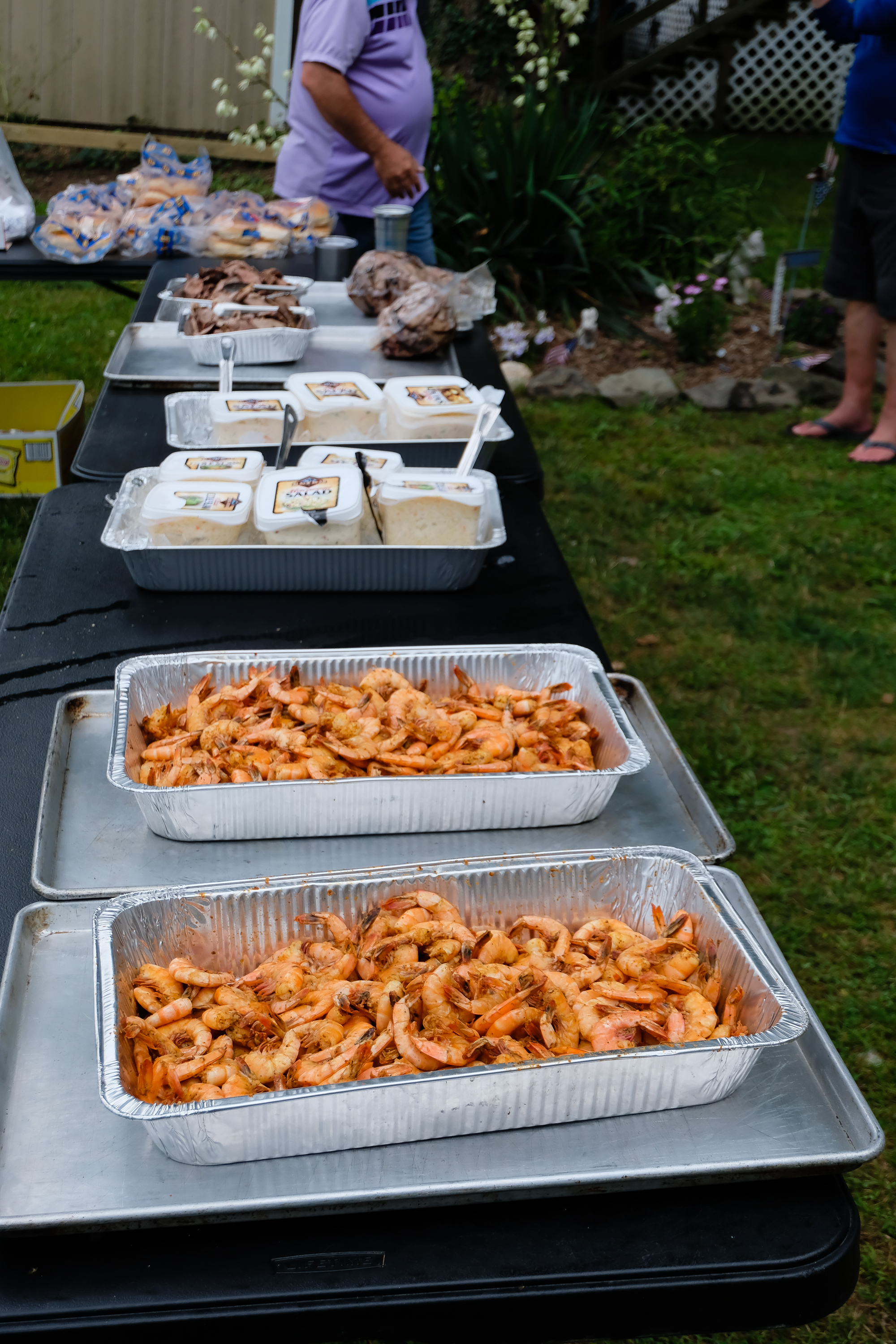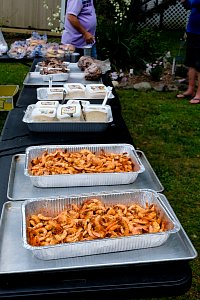 We all had a wonderful feast on Saturday evening. Our kitchen crew prepared what has become our standard menu for water weekend consisting of shrimp, roast beef, and corn on the cob, along with potato and macaroni salads and coleslaw.