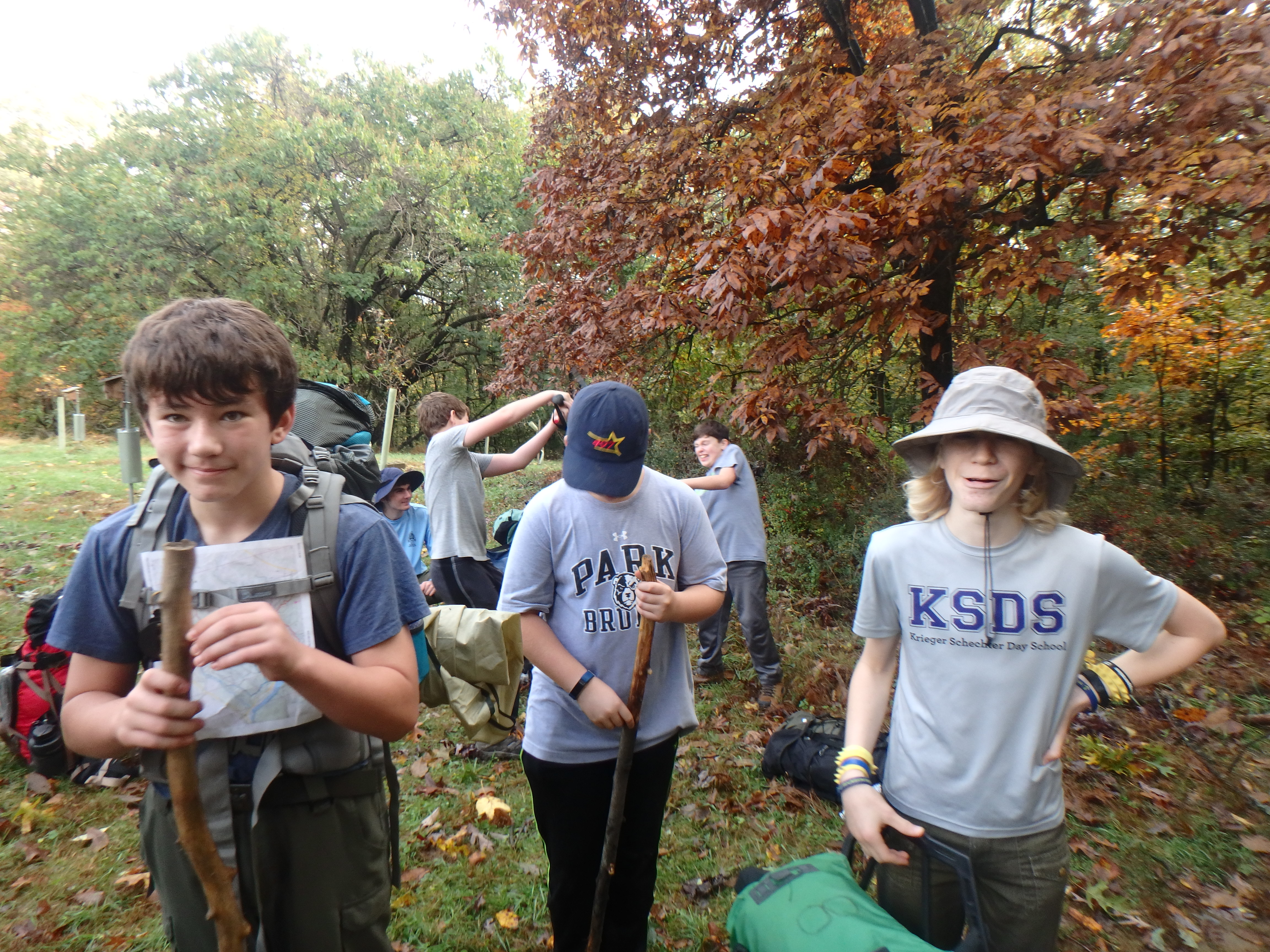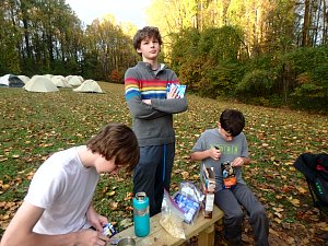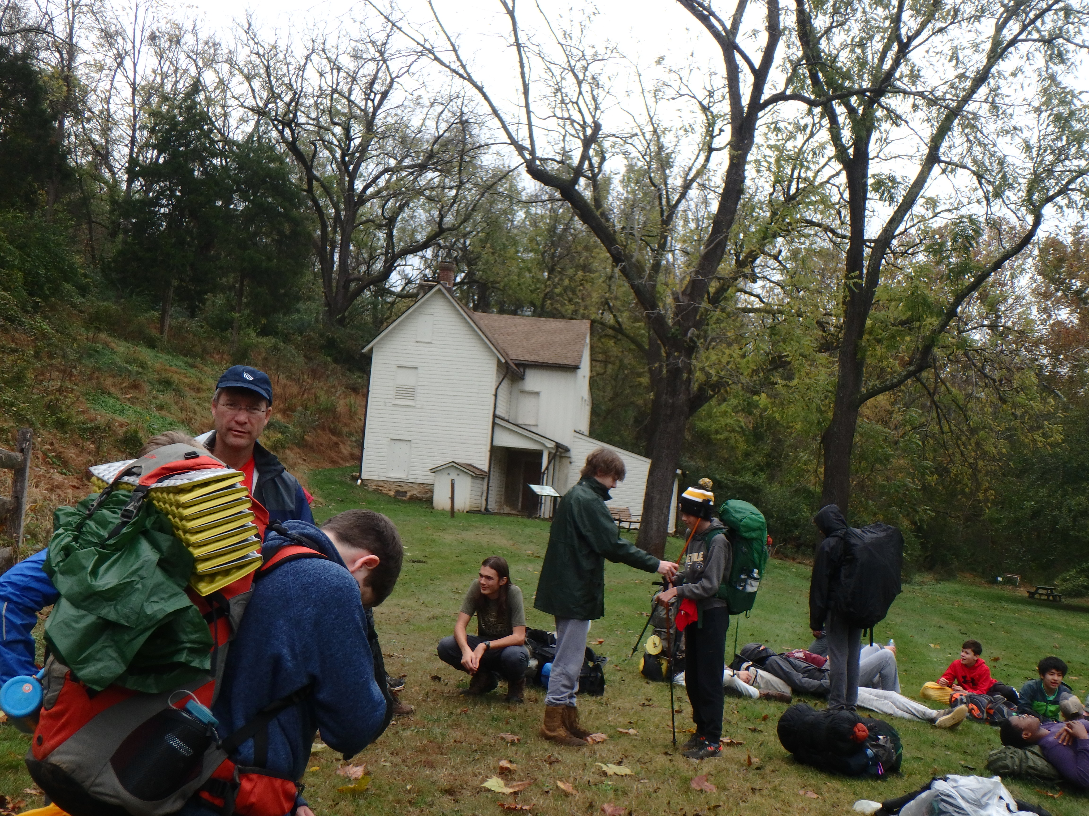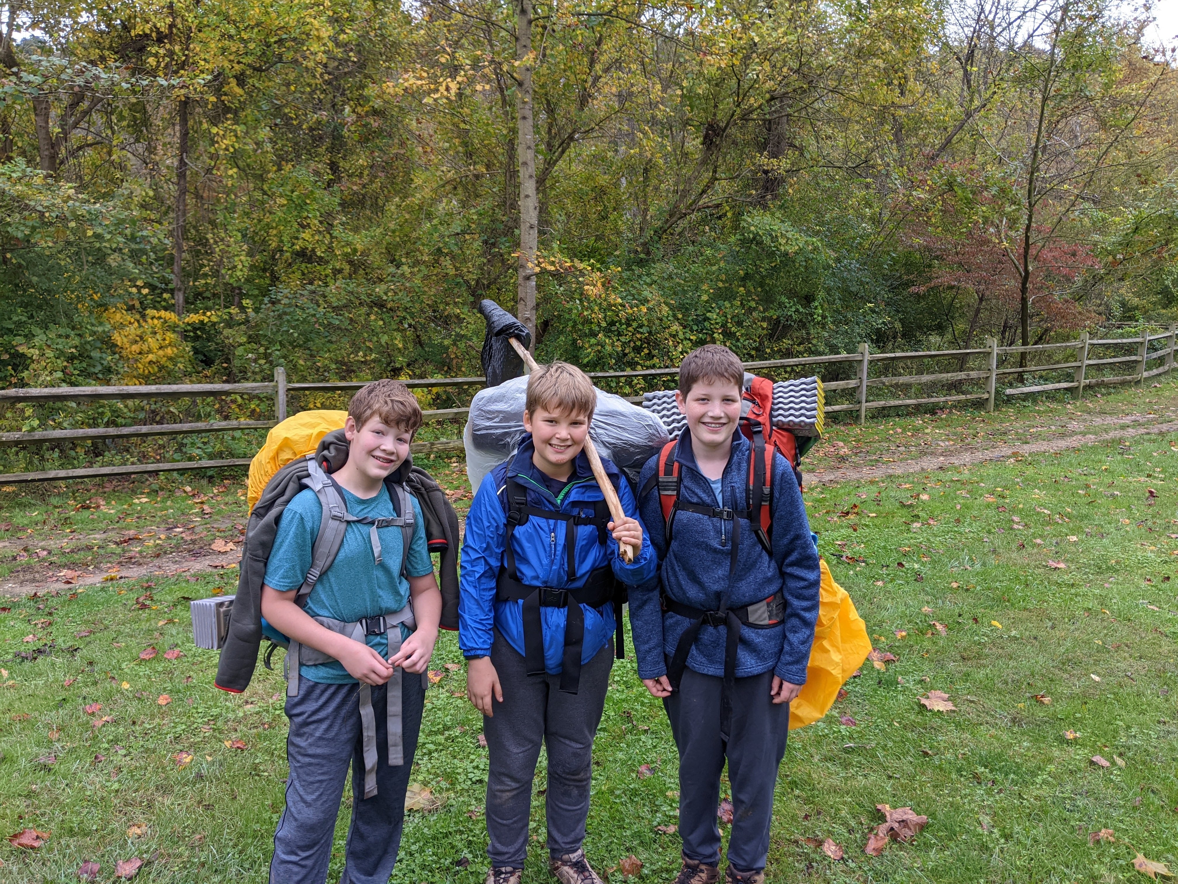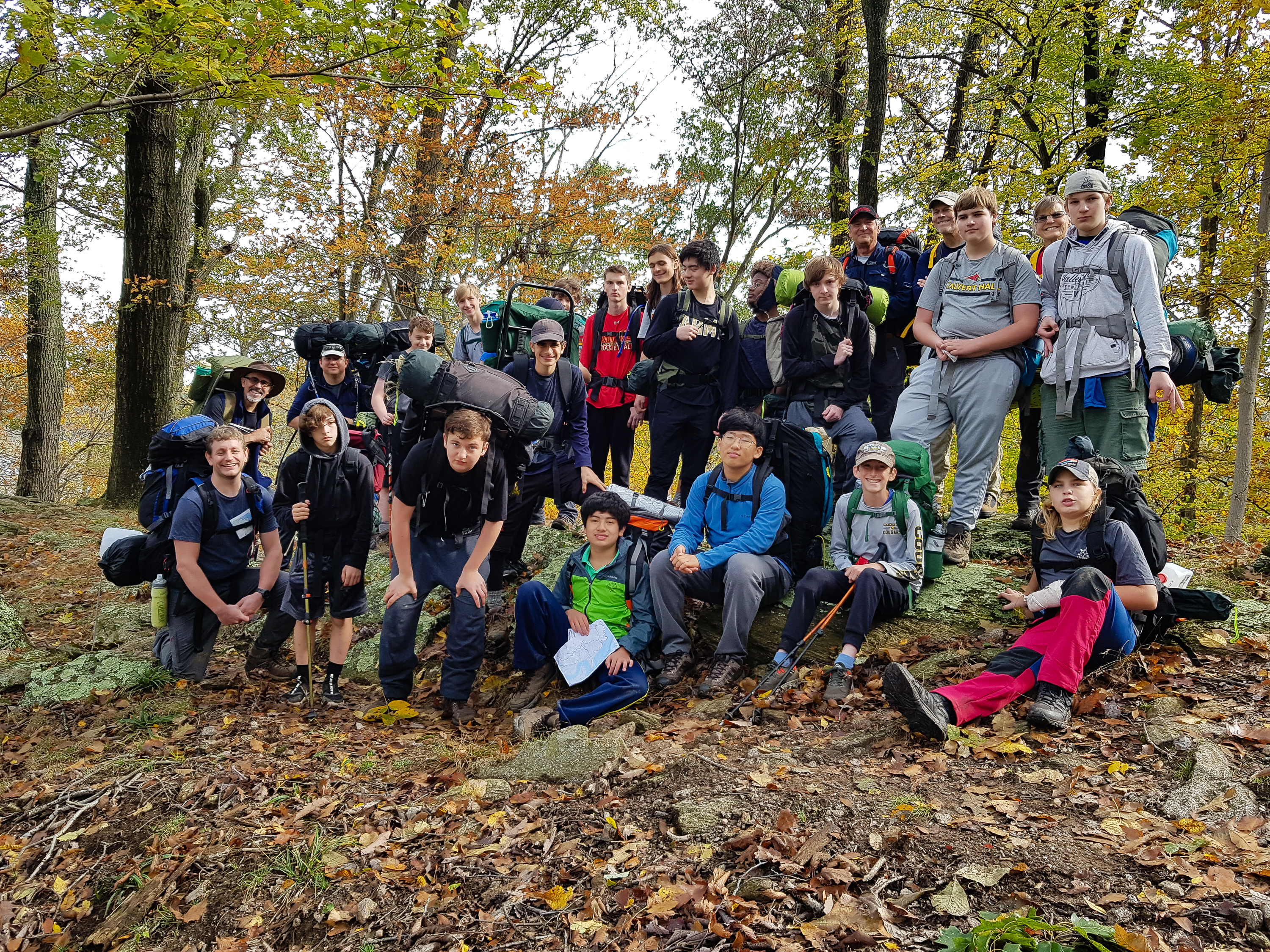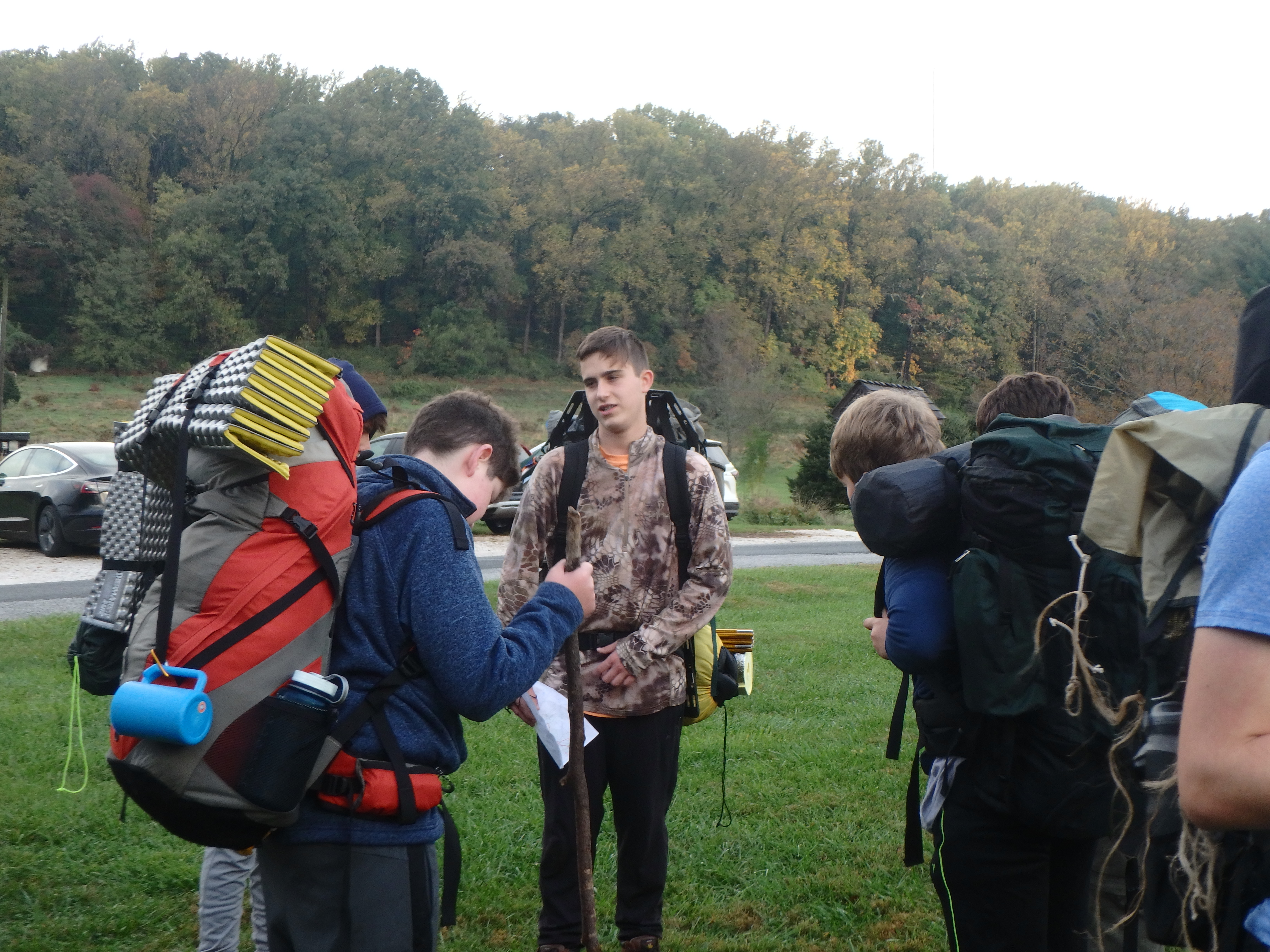 Our backpacking trip on 30-31 October was an unusual event which was designed to fit with our current Covid-19 protocols and provide a true backpacking experience for the scouts and adults. We planned a short hike (5 miles) and a long hike (10.5 miles) on trails in Cromwell Valley Park in Parkville and on adjacent Loch Raven Reservoir trails. Both hikes terminated at the Scout Camping Area within Cromwell Valley Park. After camping Saturday night we hiked out about 1.3 miles visiting the Lime Kilns on our way back to the parking lot on Sunday morning. Parents were able to drop off and pick up their sons at the park and we did not have to shuttle any vehicles.