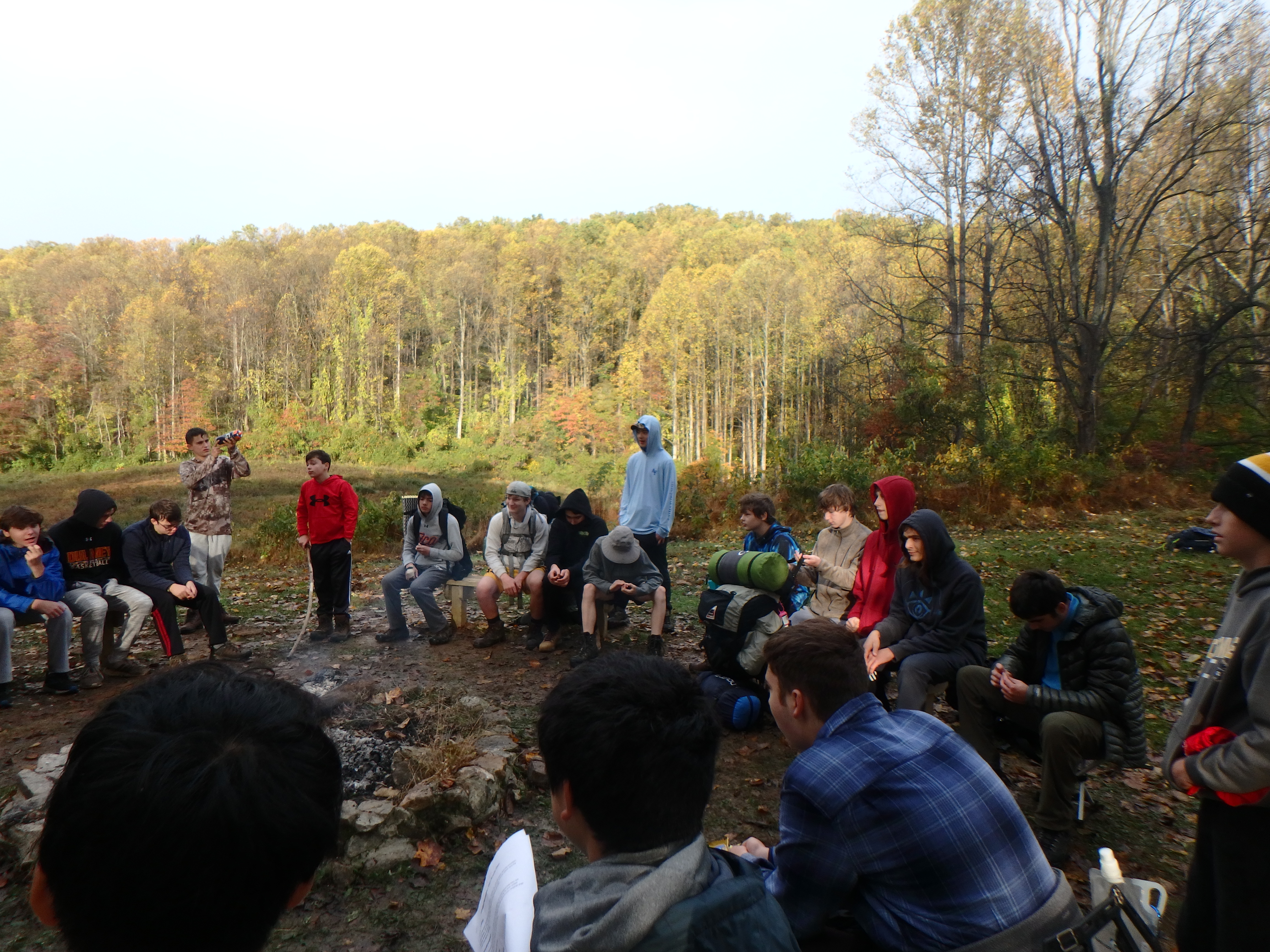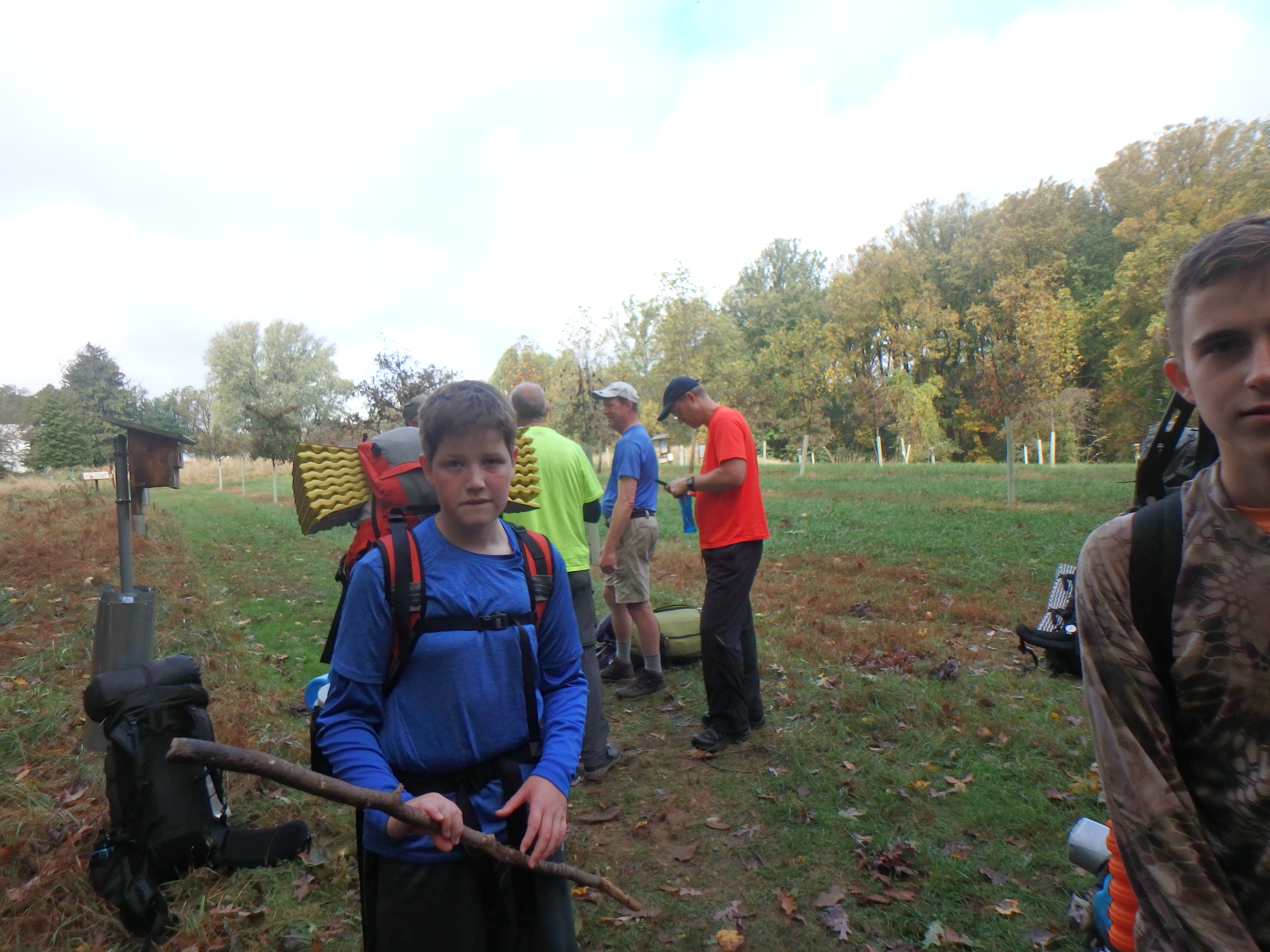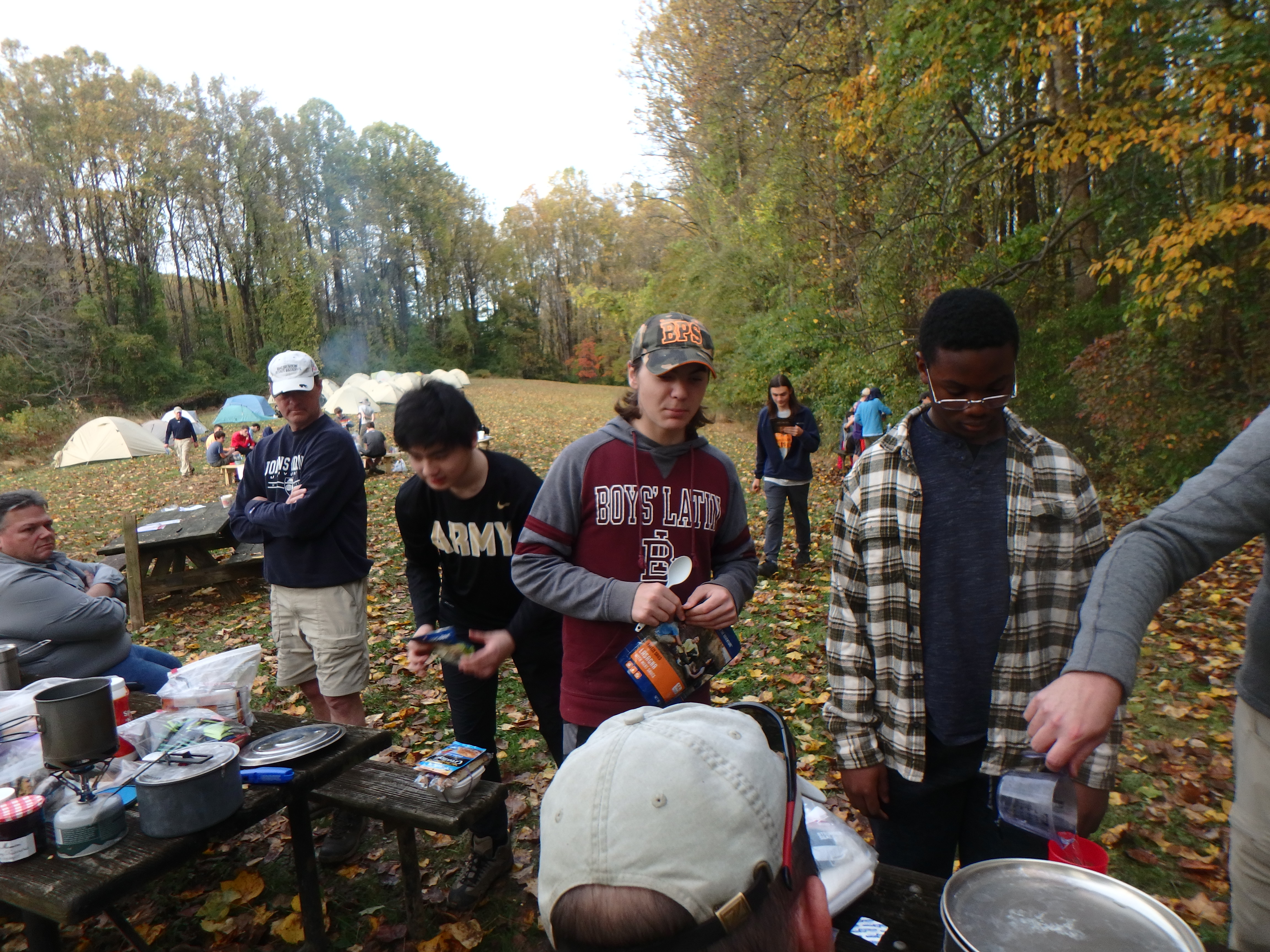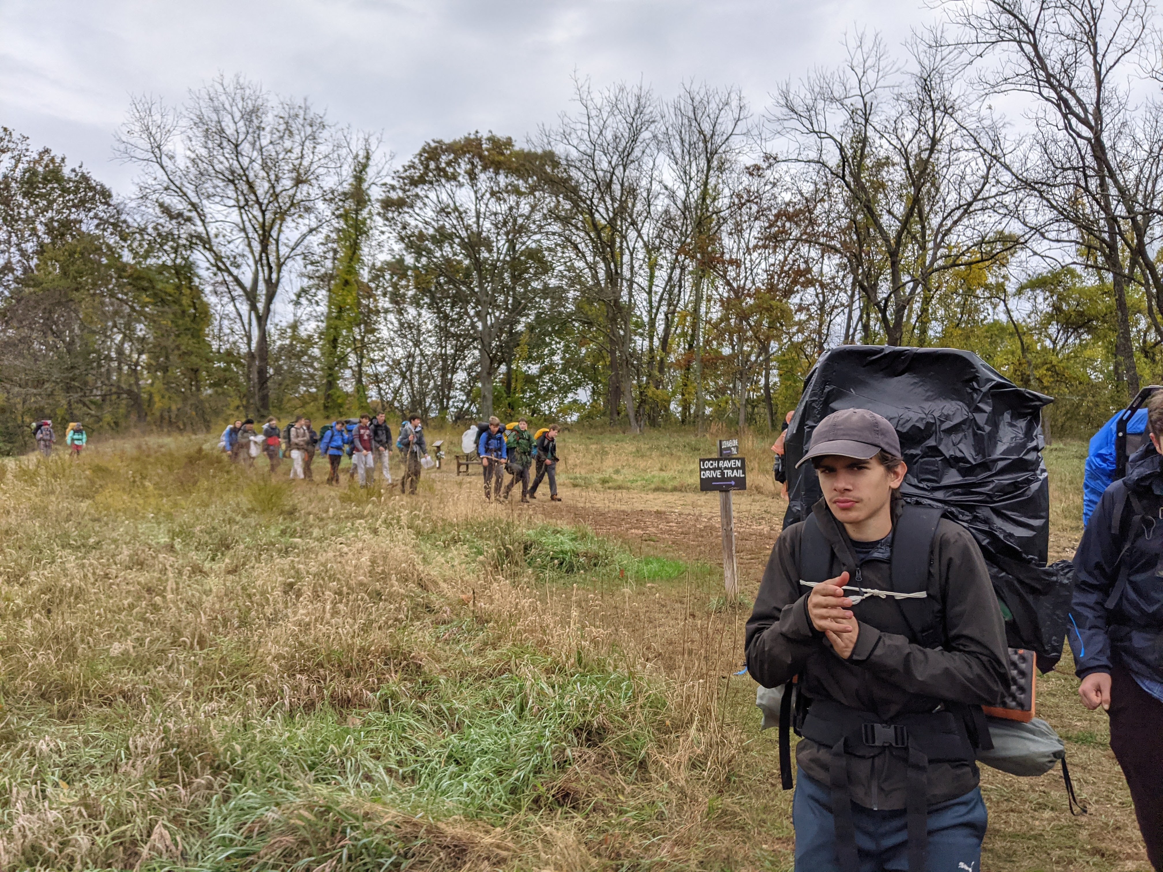 Our backpacking trip on 30-31 October was an unusual event which was designed to fit with our current Covid-19 protocols and provide a true backpacking experience for the scouts and adults. We planned a short hike (5 miles) and a long hike (10.5 miles) on trails in Cromwell Valley Park in Parkville and on adjacent Loch Raven Reservoir trails. Both hikes terminated at the Scout Camping Area within Cromwell Valley Park. After camping Saturday night we hiked out about 1.3 miles visiting the Lime Kilns on our way back to the parking lot on Sunday morning. Parents were able to drop off and pick up their sons at the park and we did not have to shuttle any vehicles.