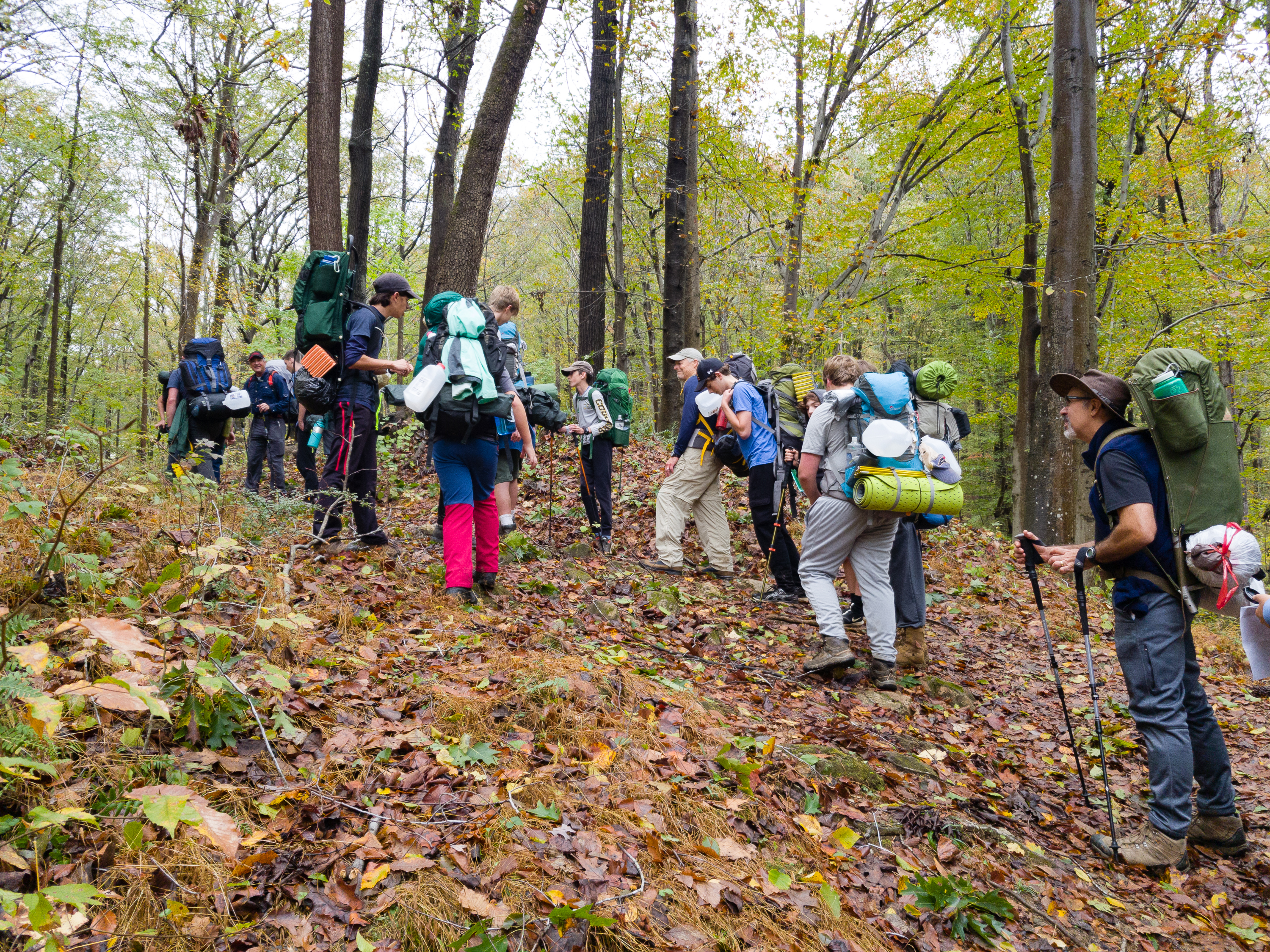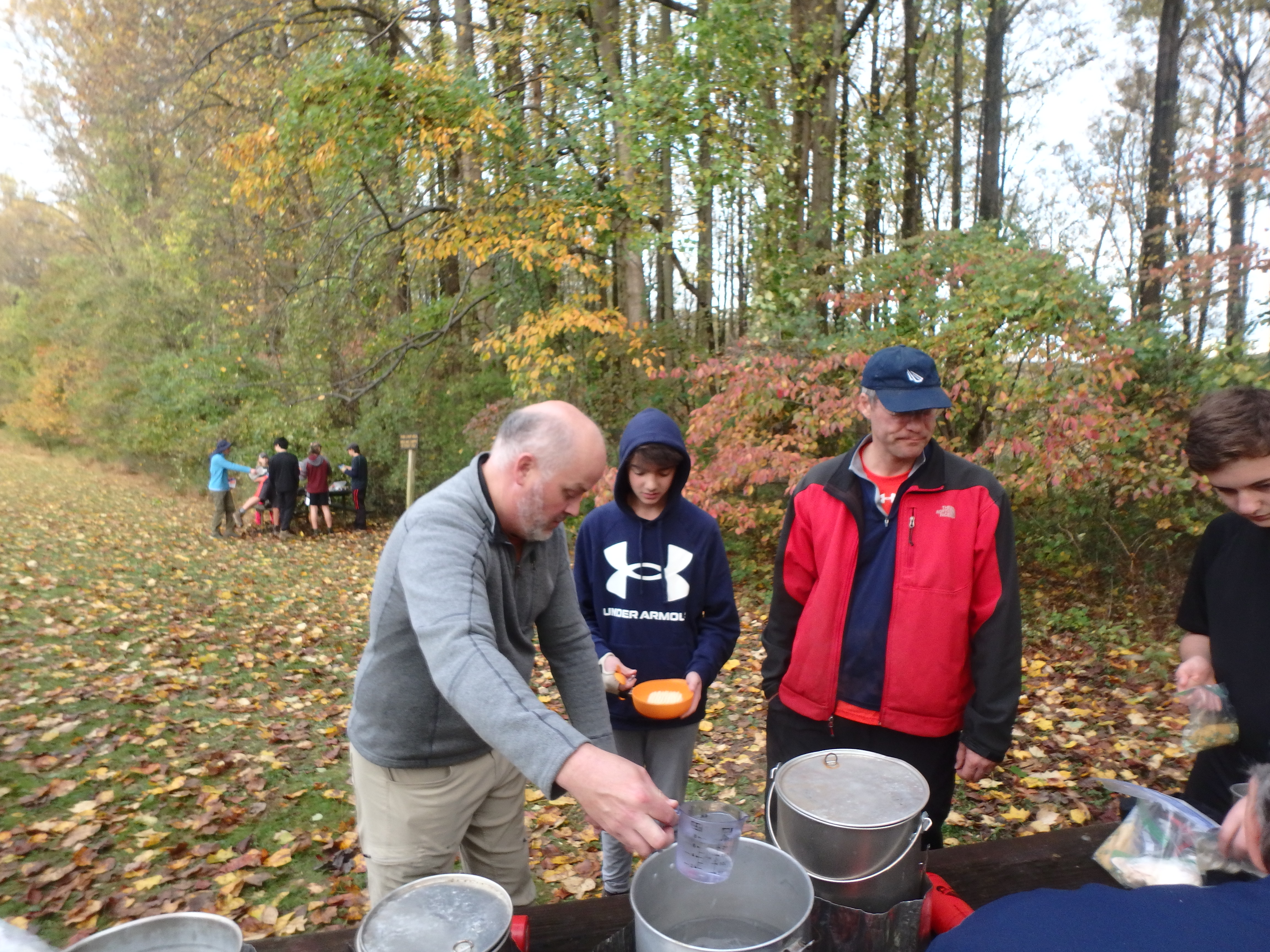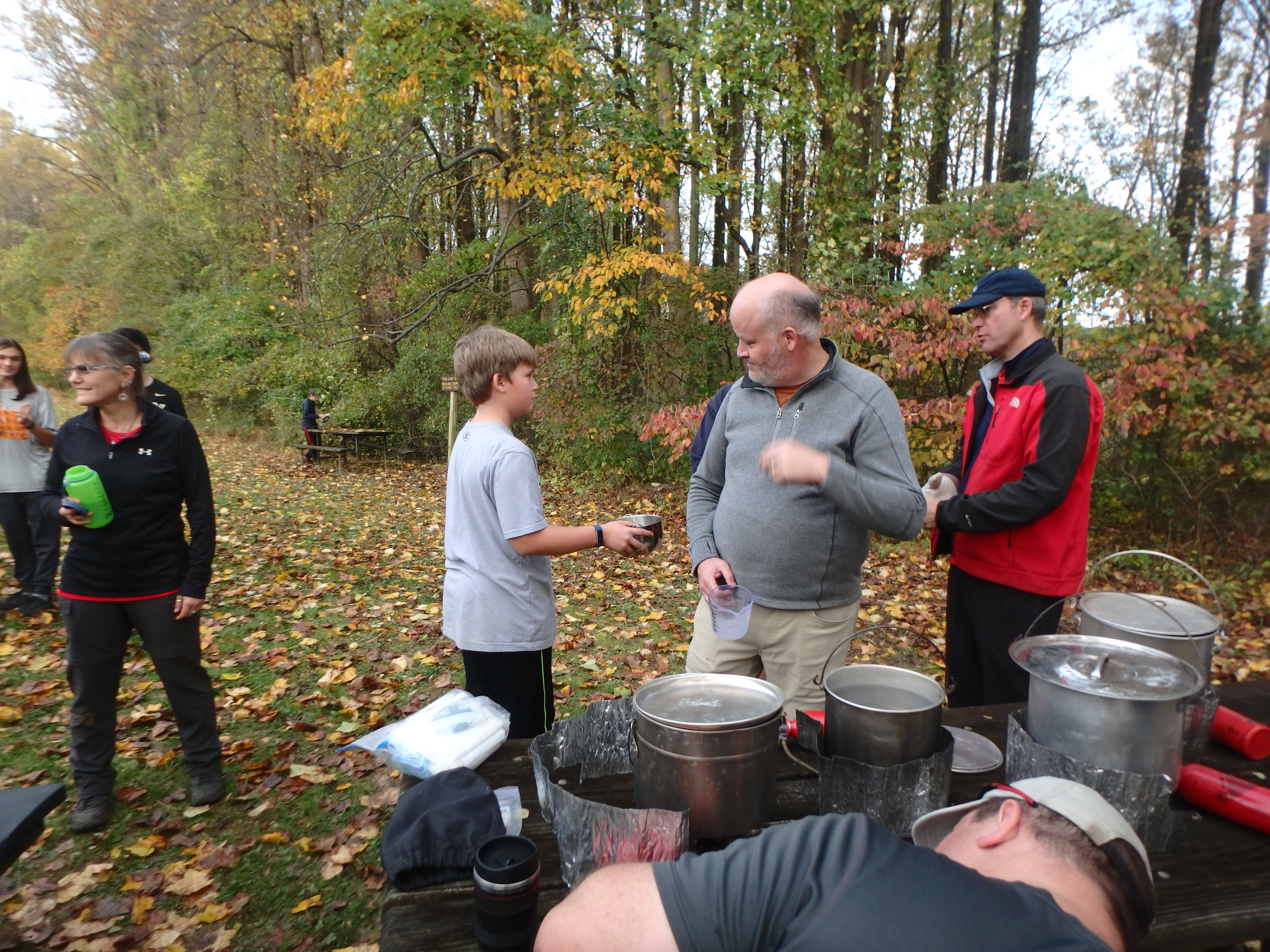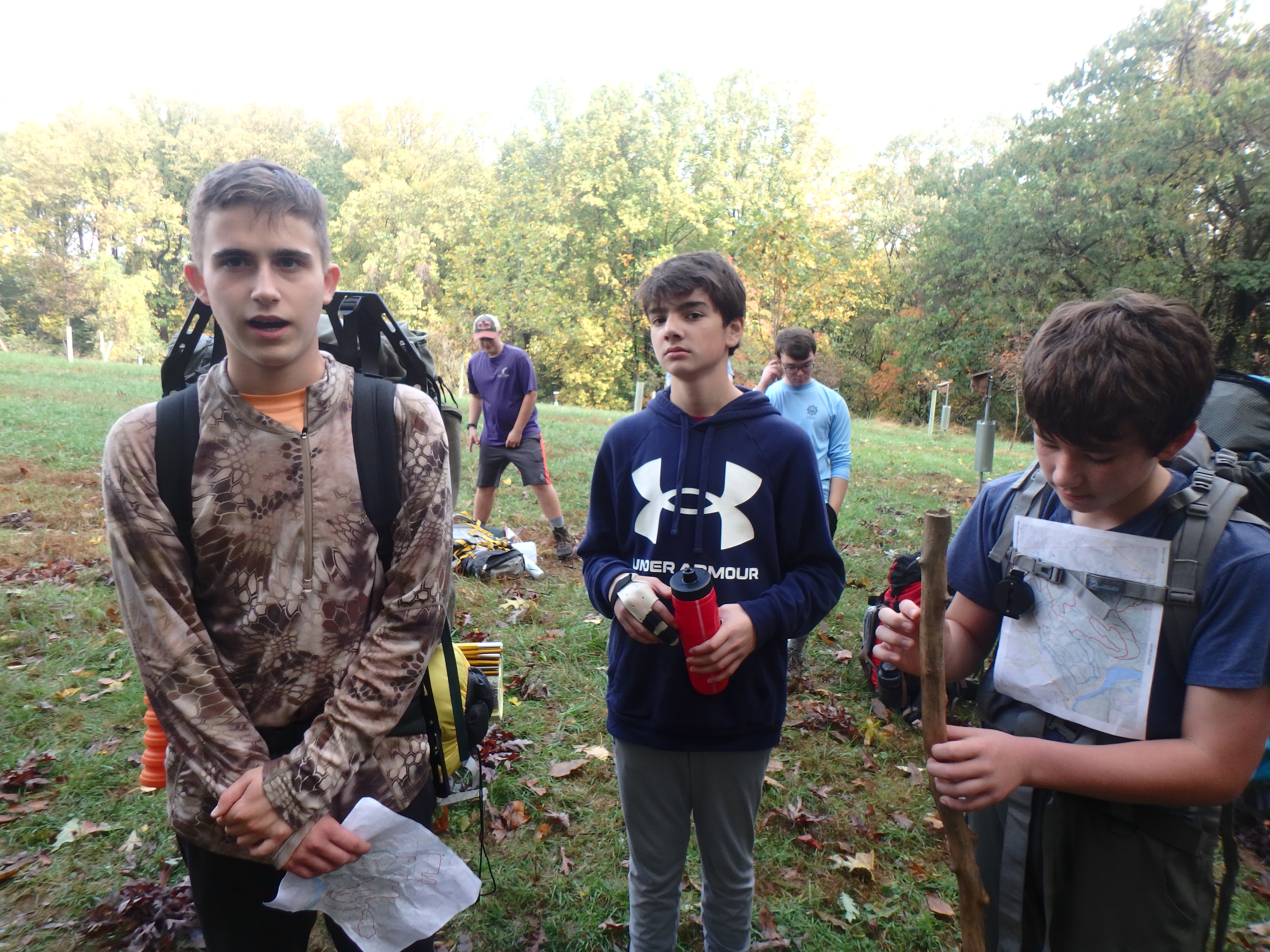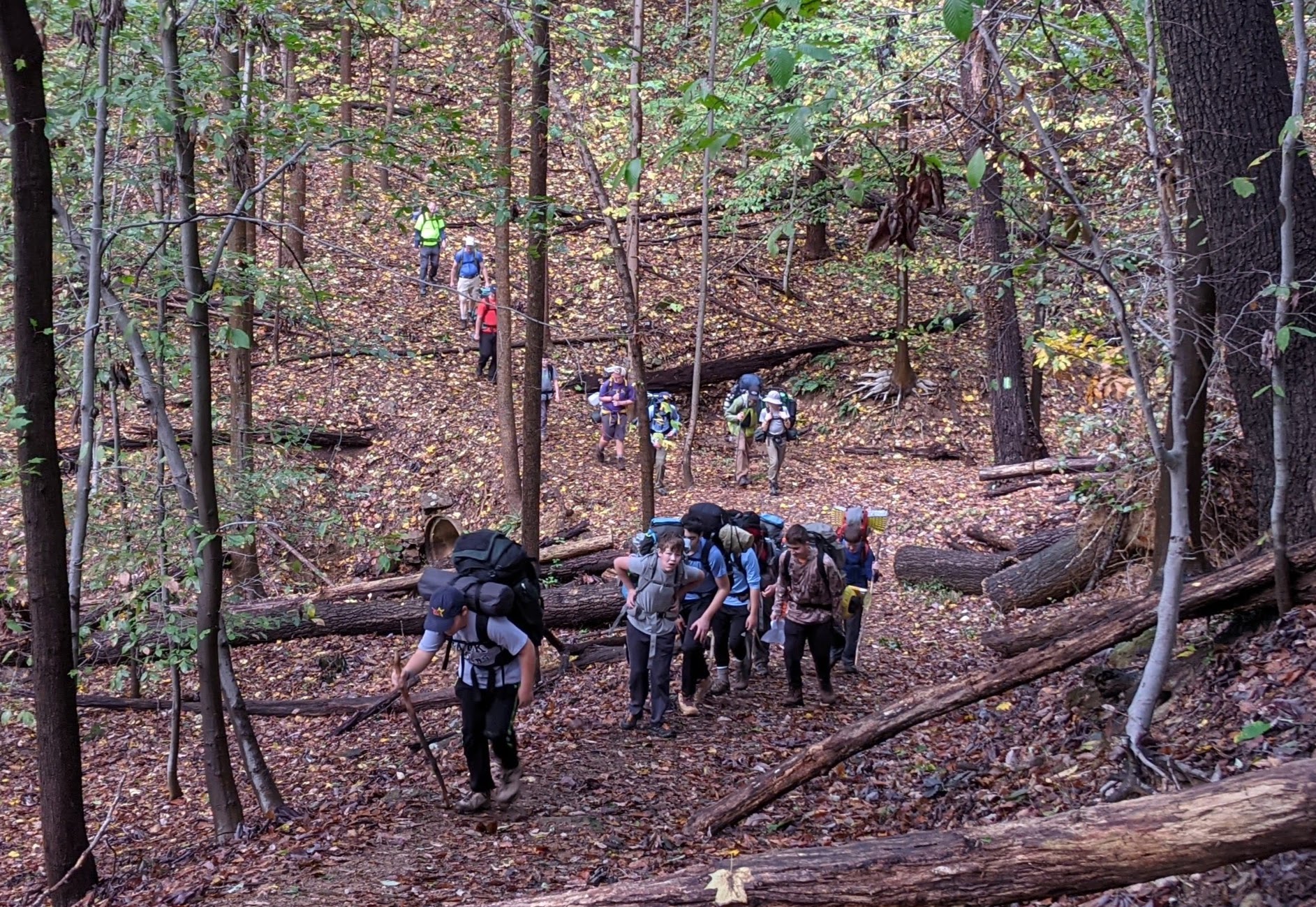 Our backpacking trip on 30-31 October was an unusual event which was designed to fit with our current Covid-19 protocols and provide a true backpacking experience for the scouts and adults. We planned a short hike (5 miles) and a long hike (10.5 miles) on trails in Cromwell Valley Park in Parkville and on adjacent Loch Raven Reservoir trails. Both hikes terminated at the Scout Camping Area within Cromwell Valley Park. After camping Saturday night we hiked out about 1.3 miles visiting the Lime Kilns on our way back to the parking lot on Sunday morning. Parents were able to drop off and pick up their sons at the park and we did not have to shuttle any vehicles.