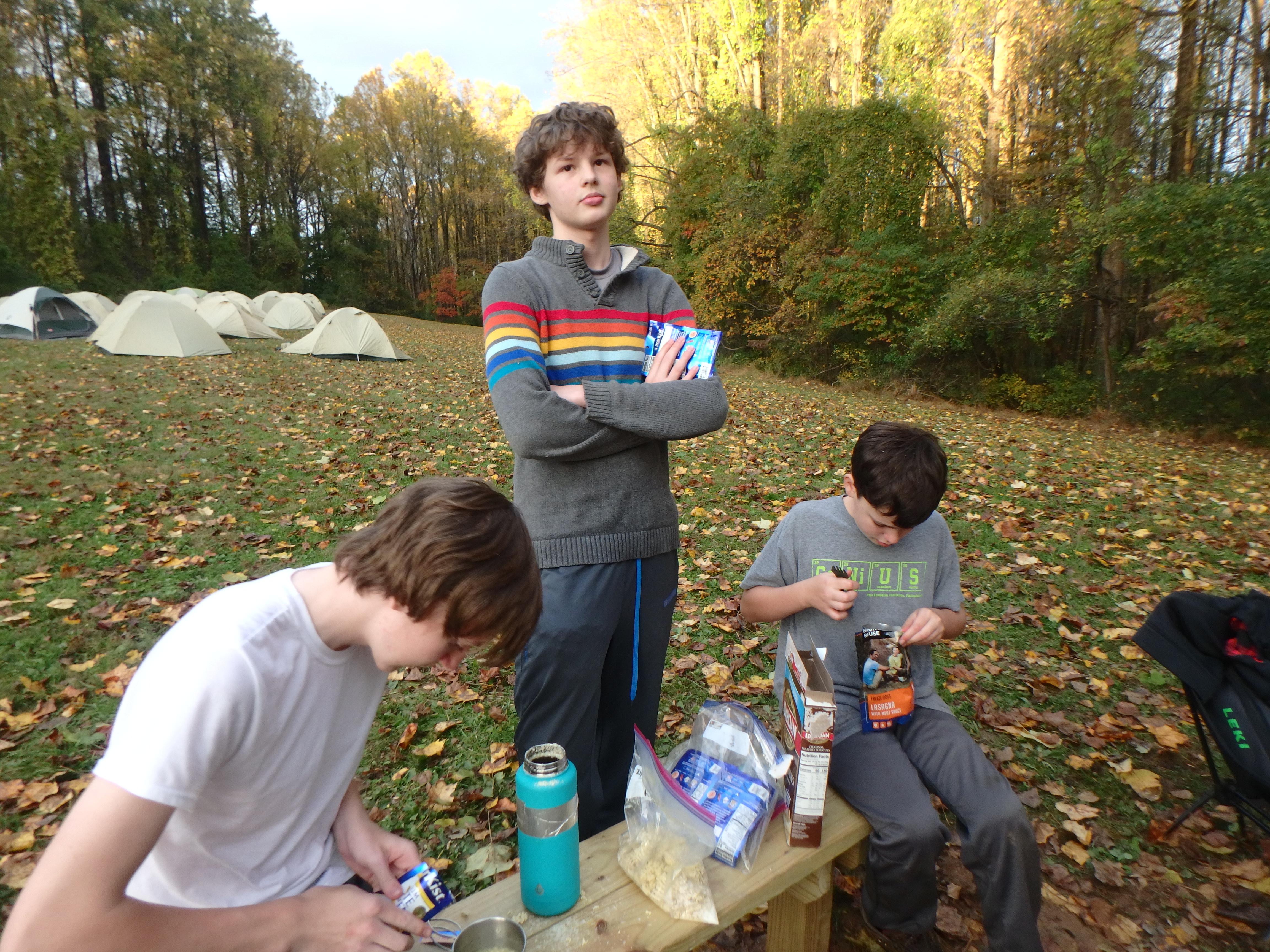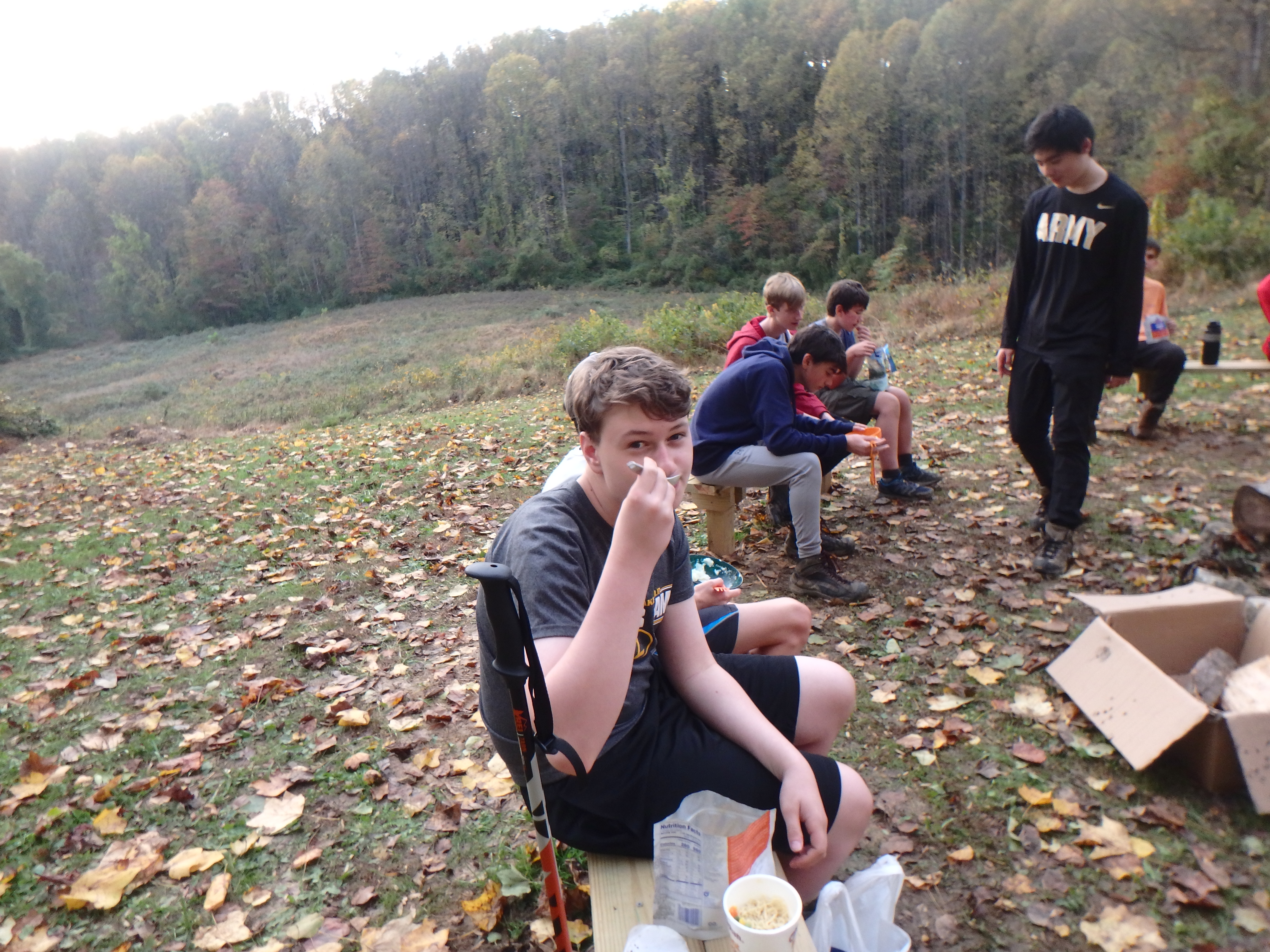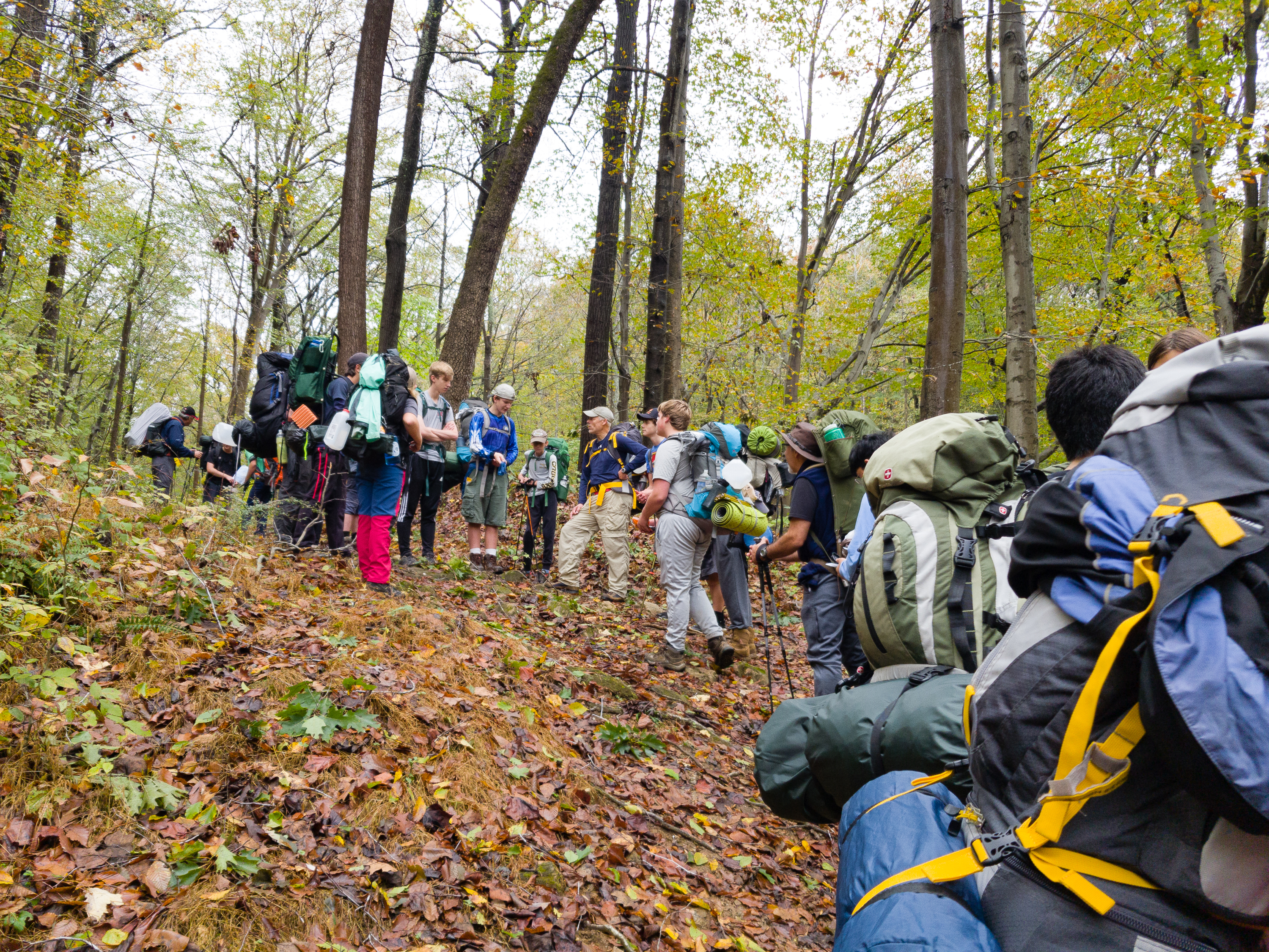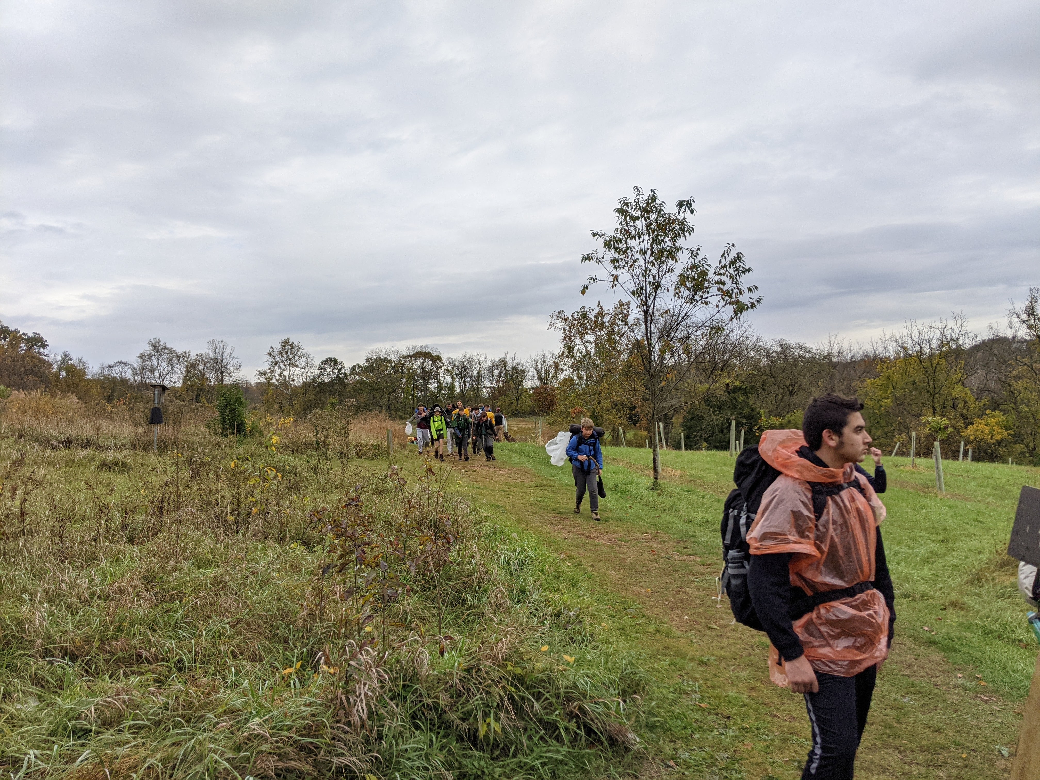 Our backpacking trip on 30-31 October was an unusual event which was designed to fit with our current Covid-19 protocols and provide a true backpacking experience for the scouts and adults. We planned a short hike (5 miles) and a long hike (10.5 miles) on trails in Cromwell Valley Park in Parkville and on adjacent Loch Raven Reservoir trails. Both hikes terminated at the Scout Camping Area within Cromwell Valley Park. After camping Saturday night we hiked out about 1.3 miles visiting the Lime Kilns on our way back to the parking lot on Sunday morning. Parents were able to drop off and pick up their sons at the park and we did not have to shuttle any vehicles.
