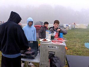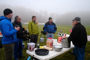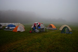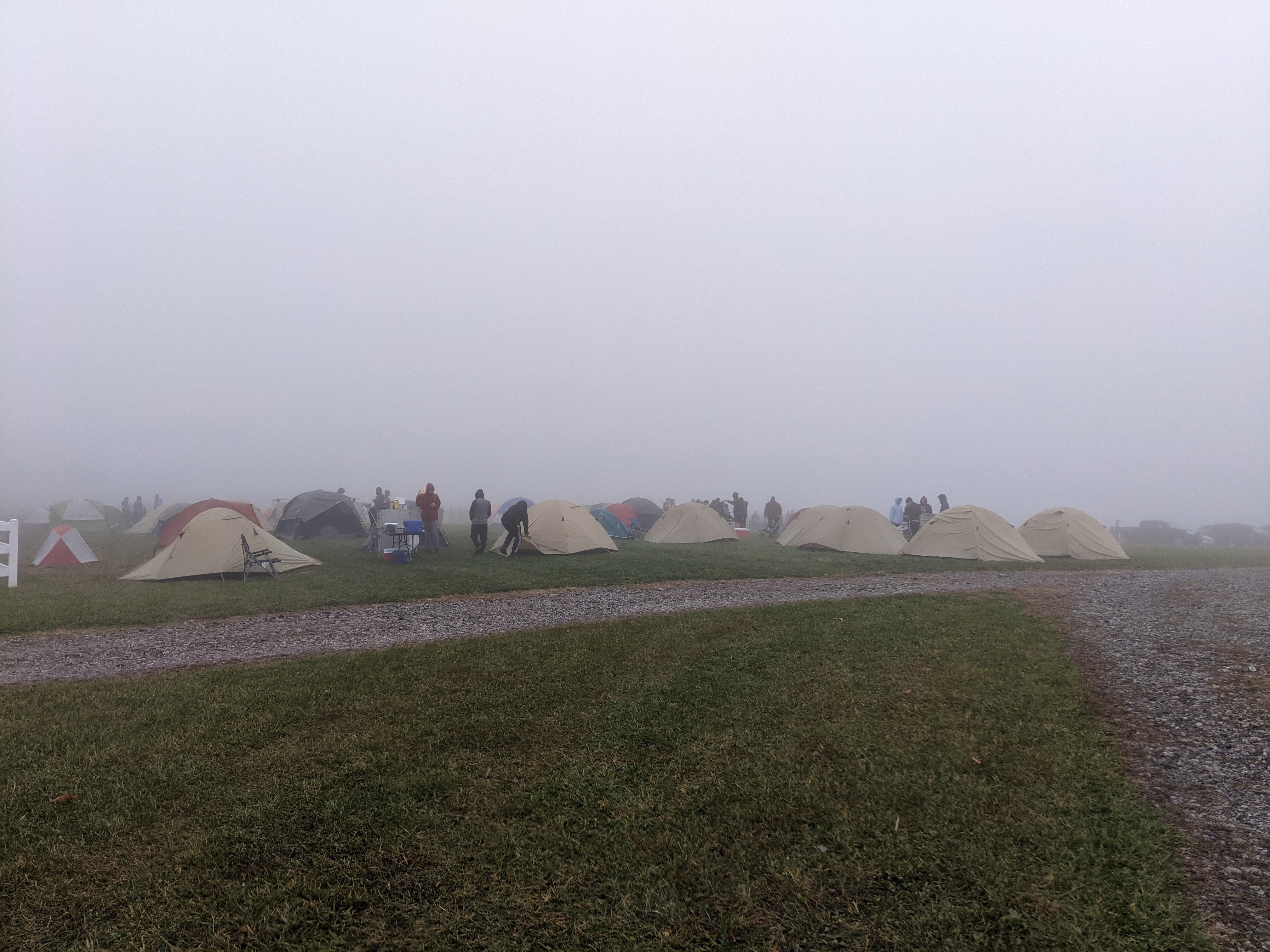 Friday night was clear and colder than expected with a low temperature of 33°F. Perfect weather for setting up camp. Saturday morning was a complete surprise when we woke up to thick fog surrounding the area. It cleared and we had a beautiful morning. We had some brief showers around noon and then the wind came roaring through around 3:30 uprooting patrol canopies and blowing them across the fields. It also blew some personal tents around and broke some tent and canopy poles. The wind subsided during the night and the temperature dropped to a low of 24°F earning 8 Texas Tough points for anyone who camped out both Friday and Saturday nights