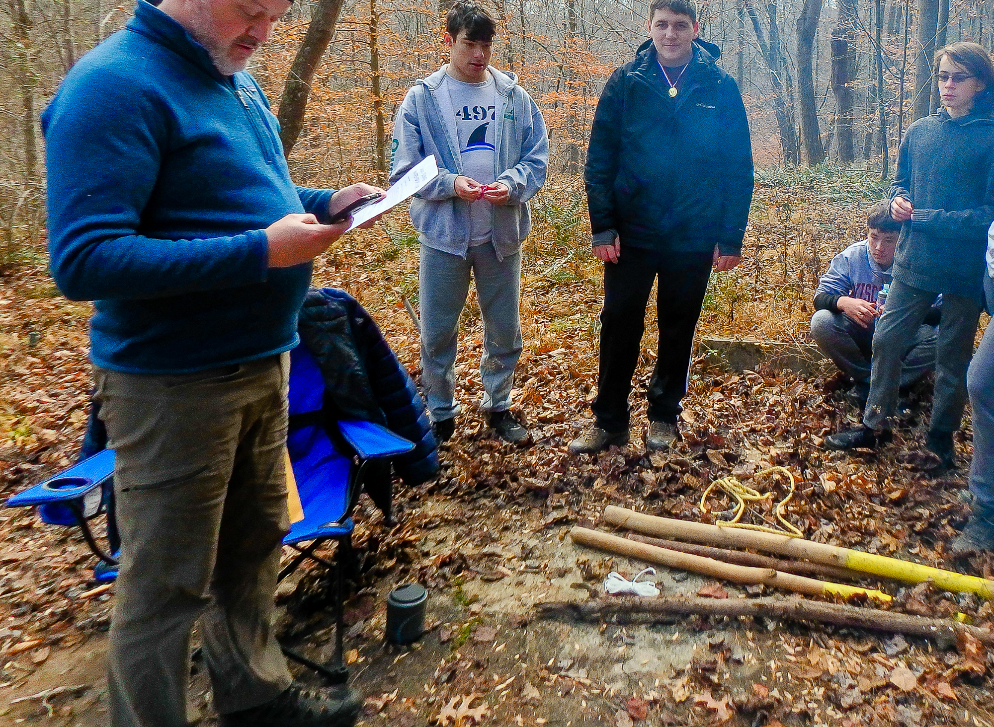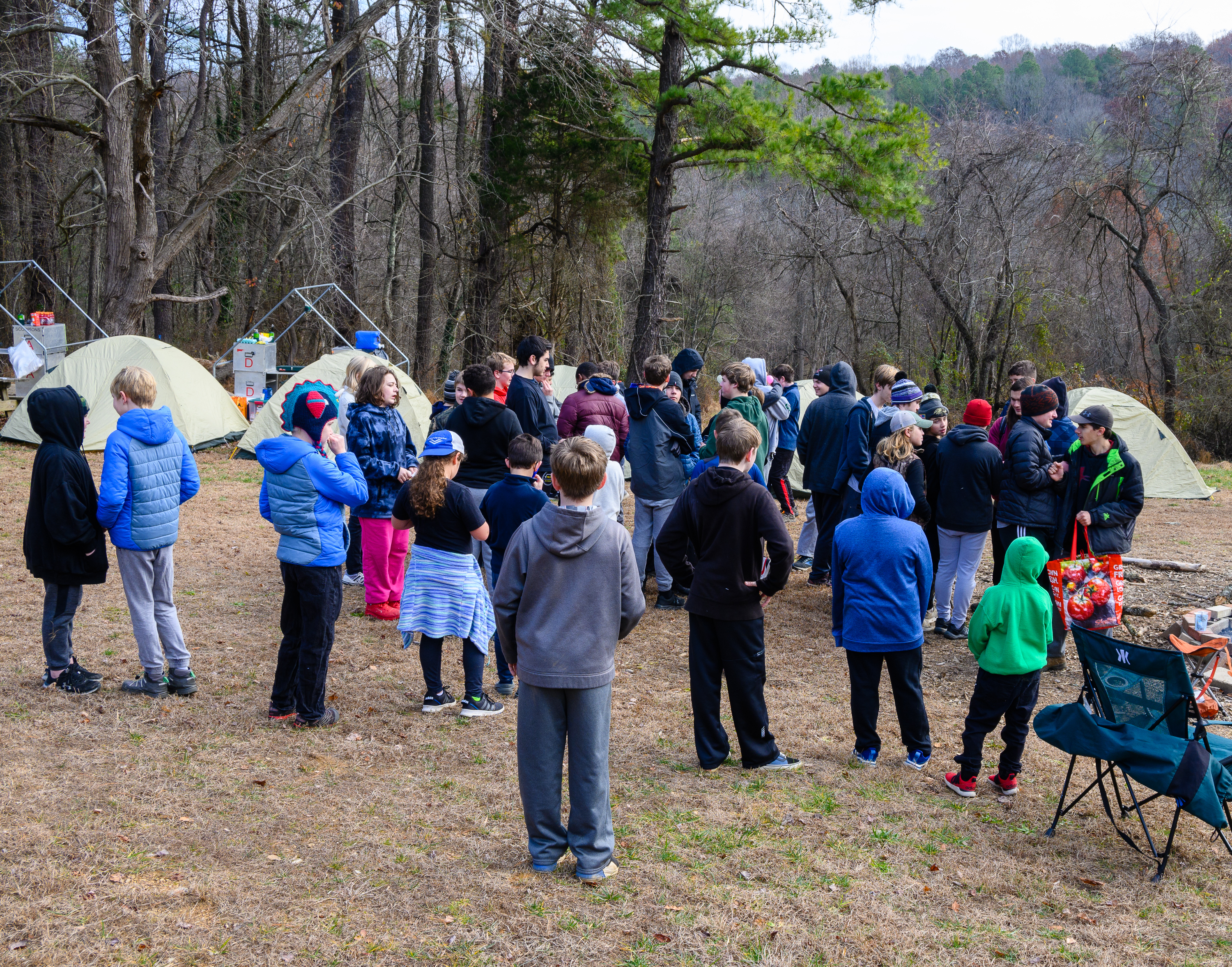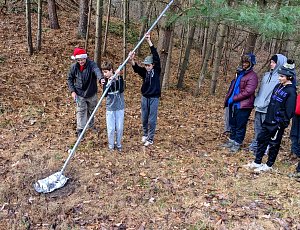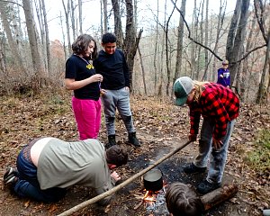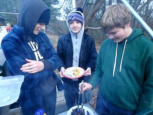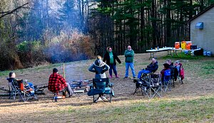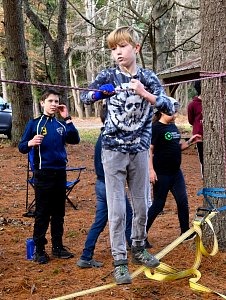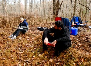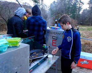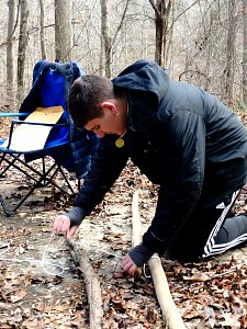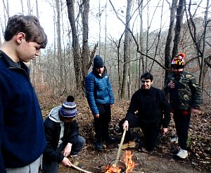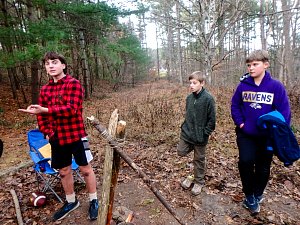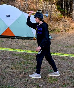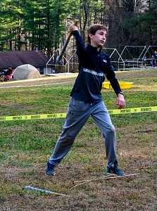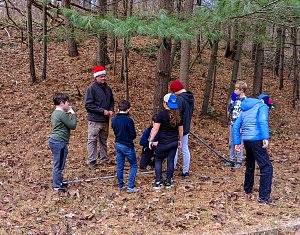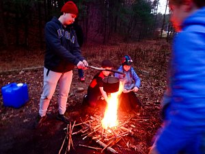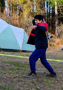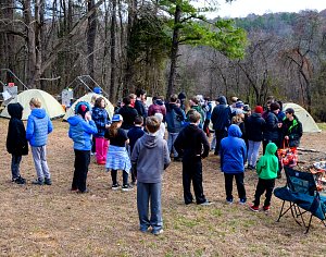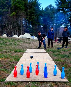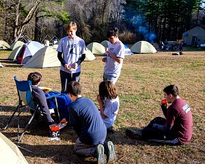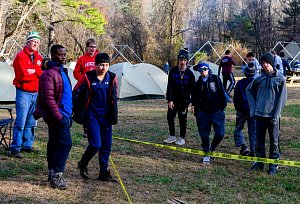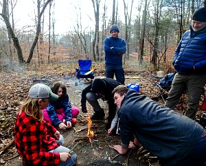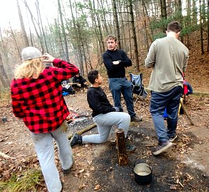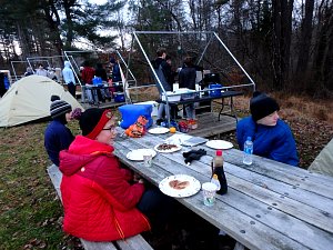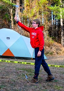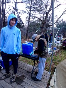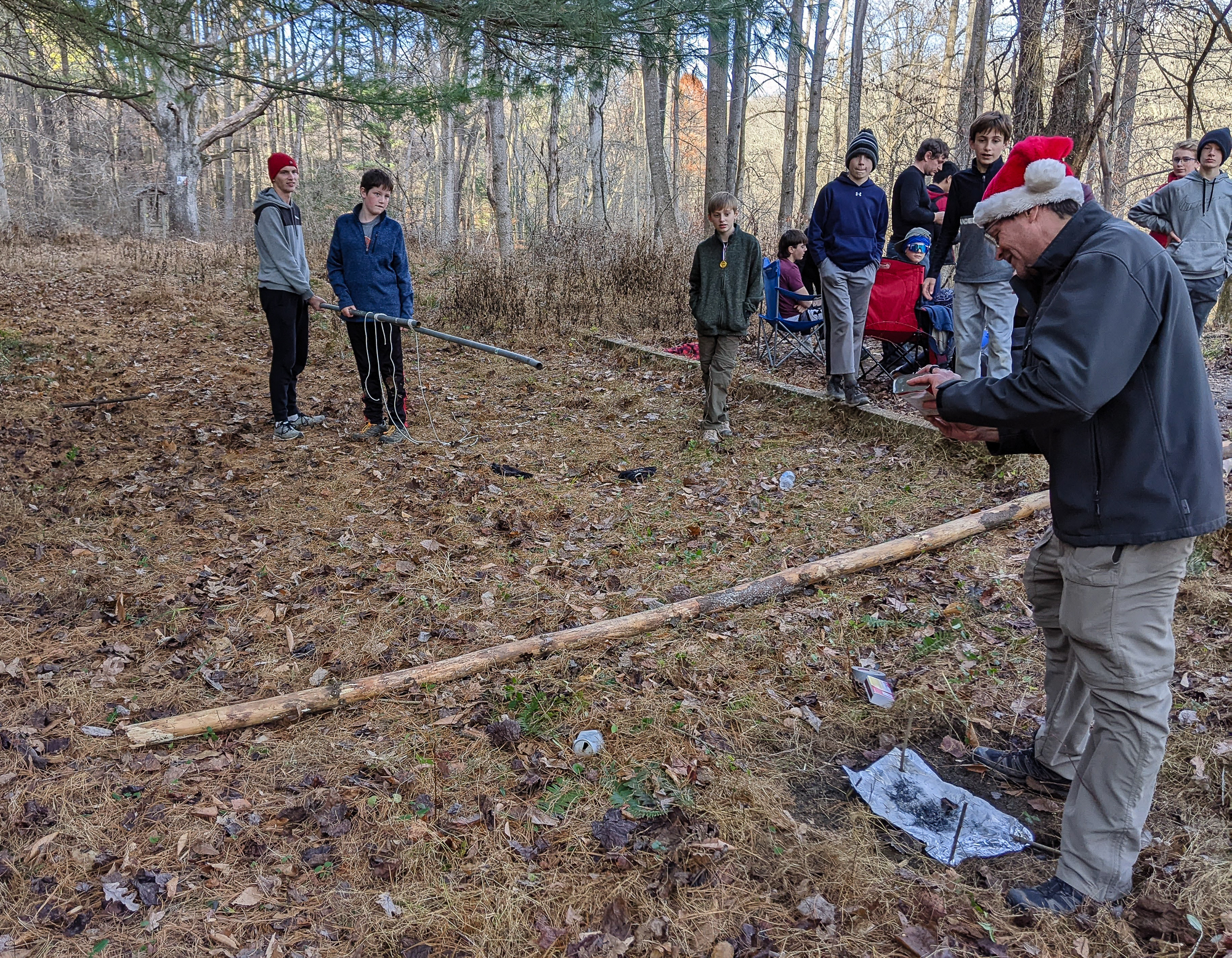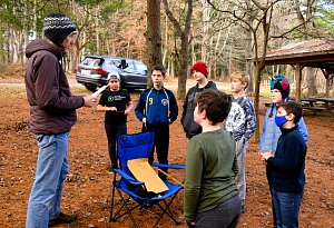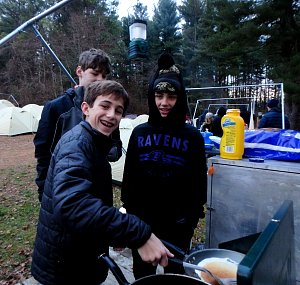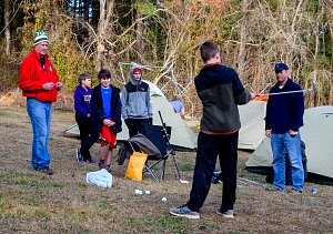 Our December camping trip was to Broad Creek Memorial Scout Reservation in Whiteford, Maryland. We had reserved the Dan Beard site for our Senior Surprise weekend. We were also joined again this year on Saturday by a number of Webelos from nearby packs. Saturday was filled with a variety of competitive events for patrols as shown in the photographs below. We also had a surprise visitor to our campfire on Saturday evening. Scroll down the photographs to see who it was.