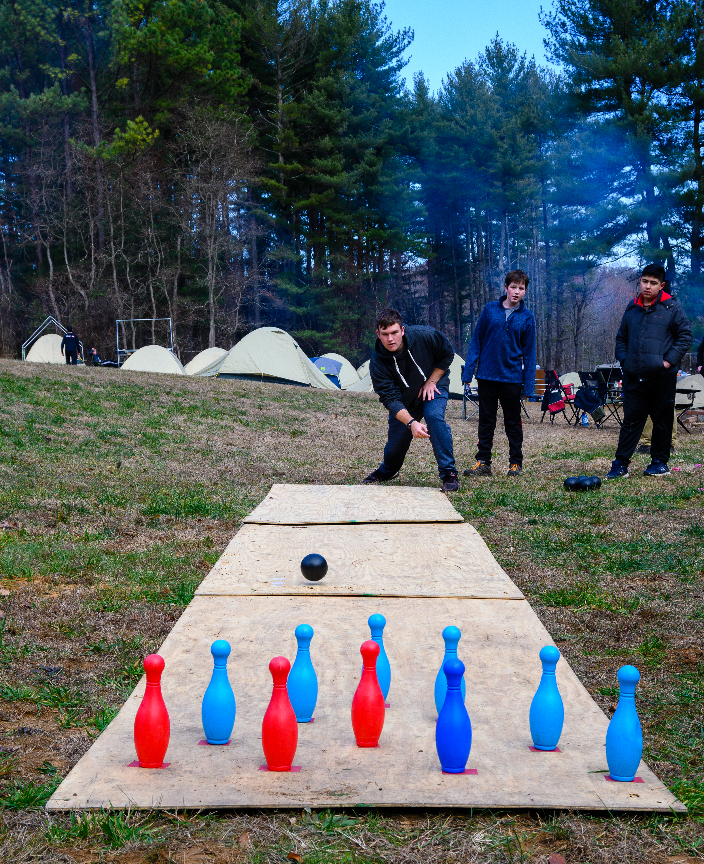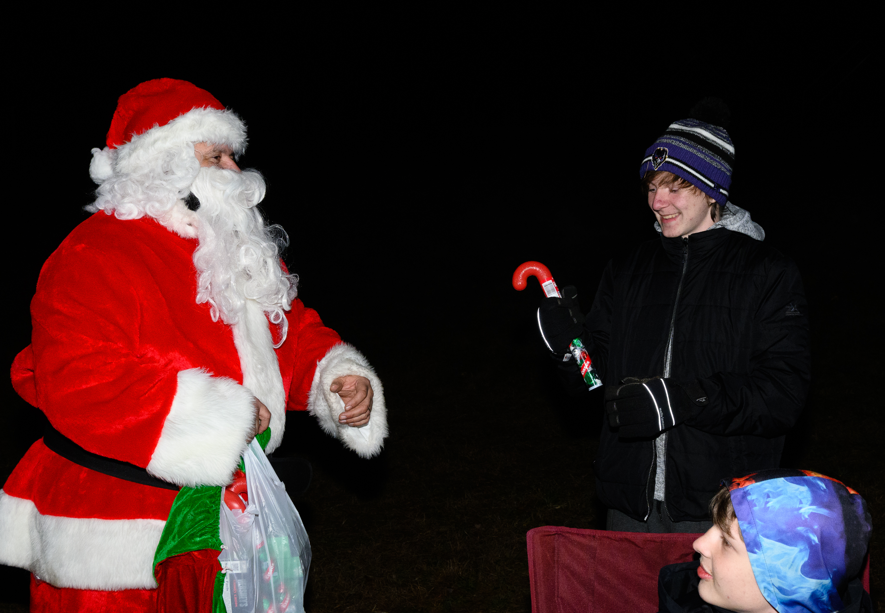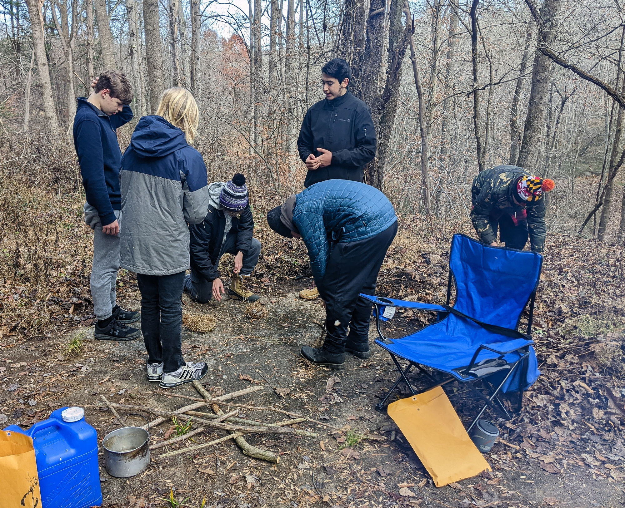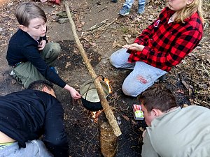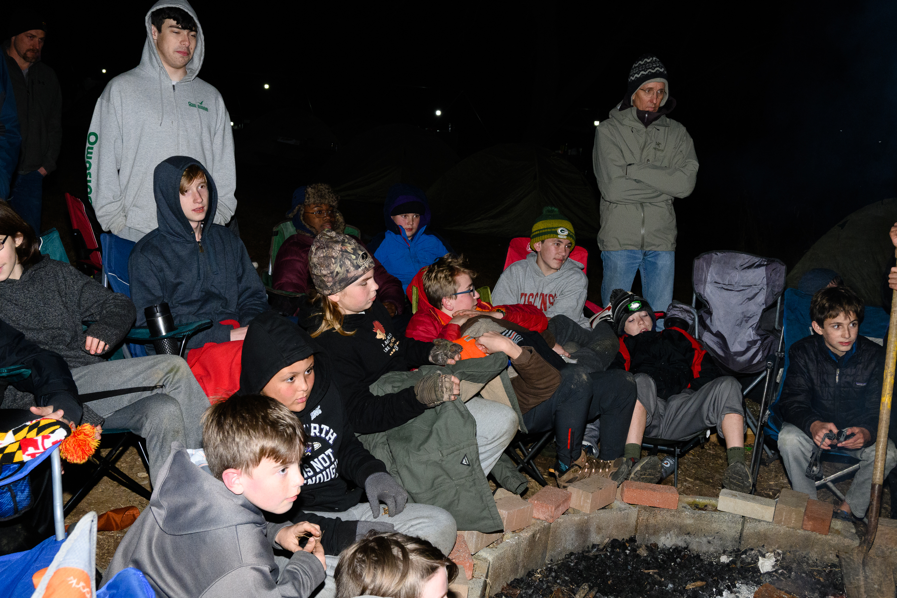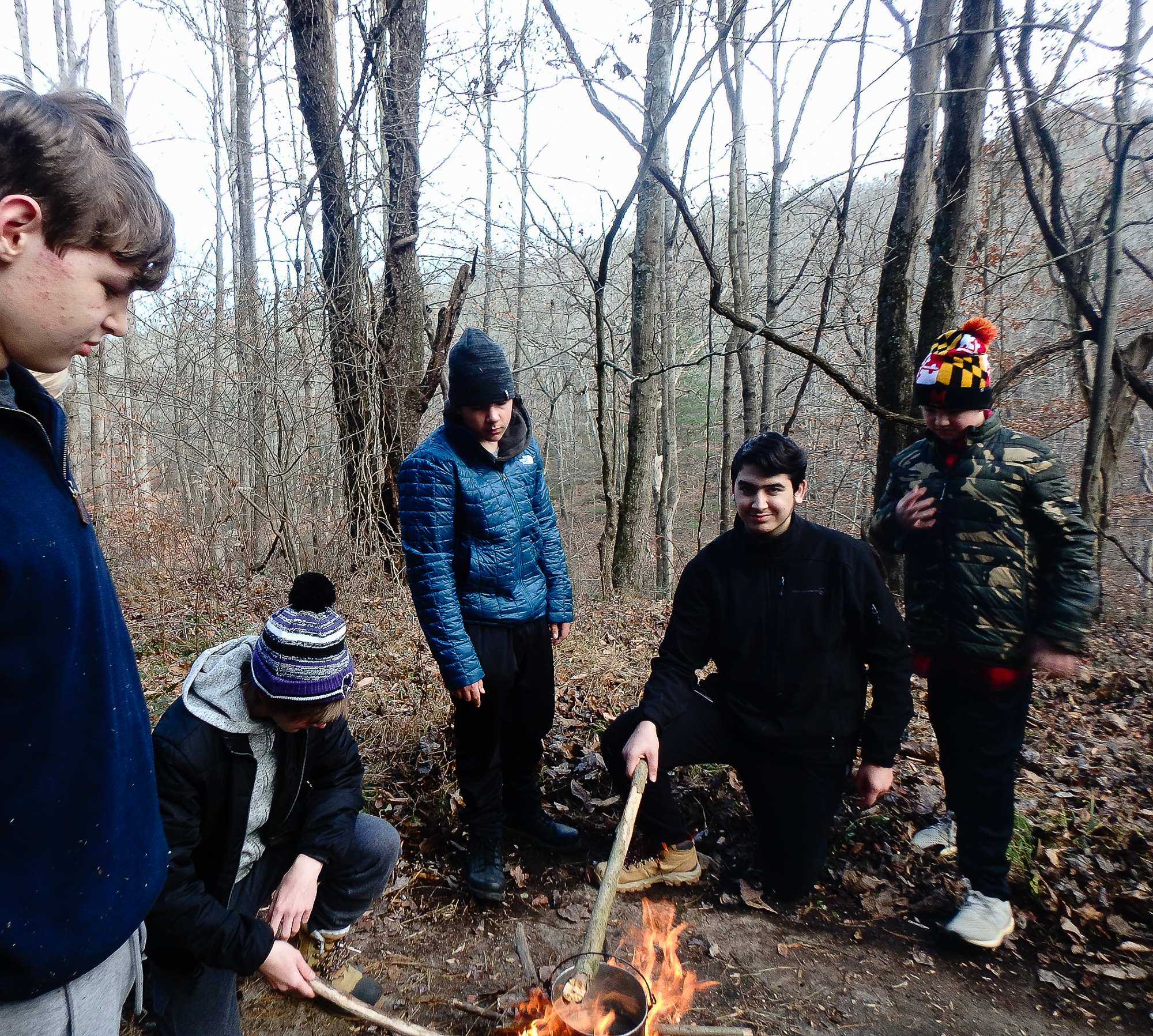 Our December camping trip was to Broad Creek Memorial Scout Reservation in Whiteford, Maryland. We had reserved the Dan Beard site for our Senior Surprise weekend. We were also joined again this year on Saturday by a number of Webelos from nearby packs. Saturday was filled with a variety of competitive events for patrols as shown in the photographs below. We also had a surprise visitor to our campfire on Saturday evening. Scroll down the photographs to see who it was.