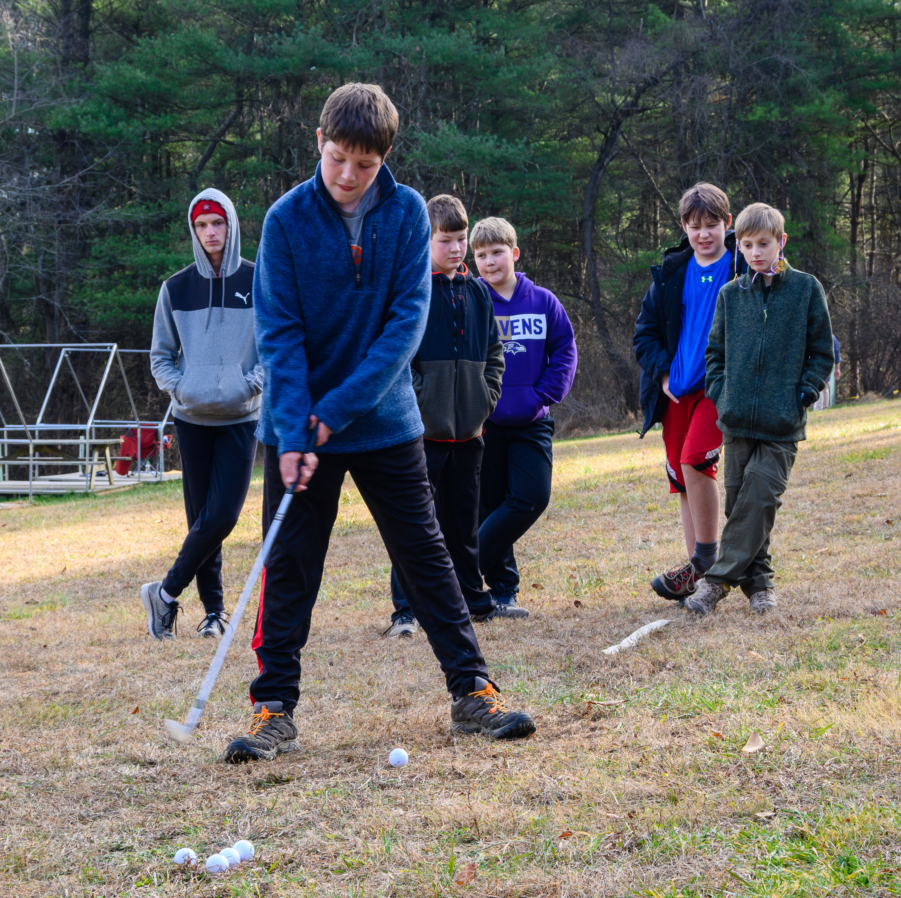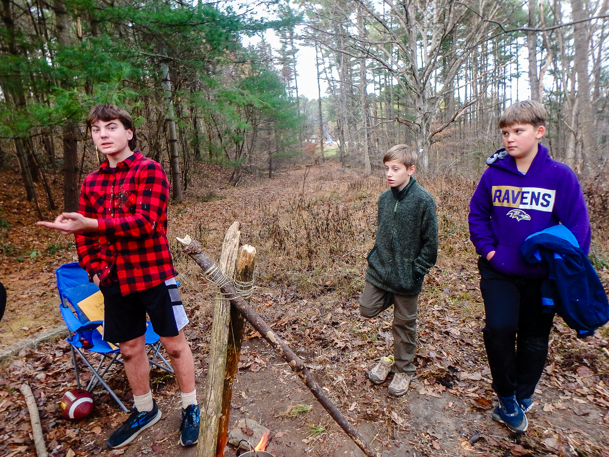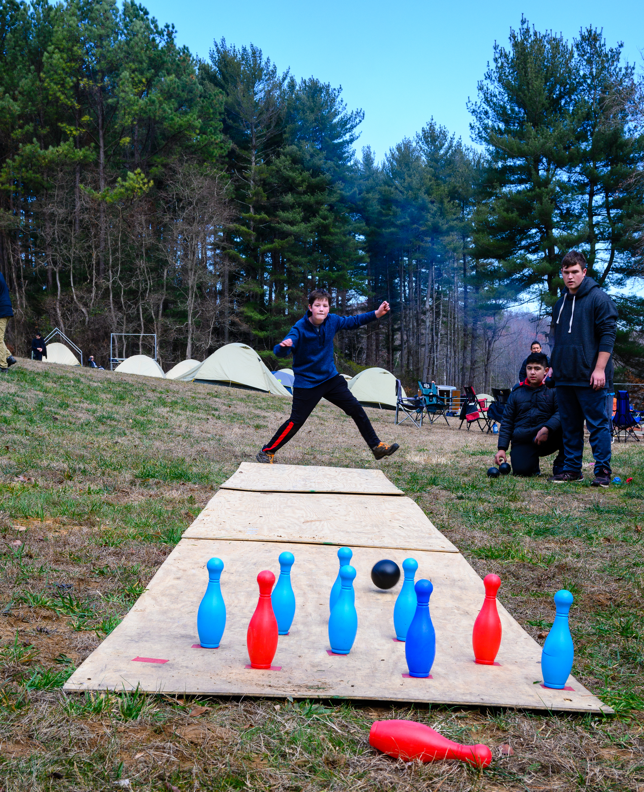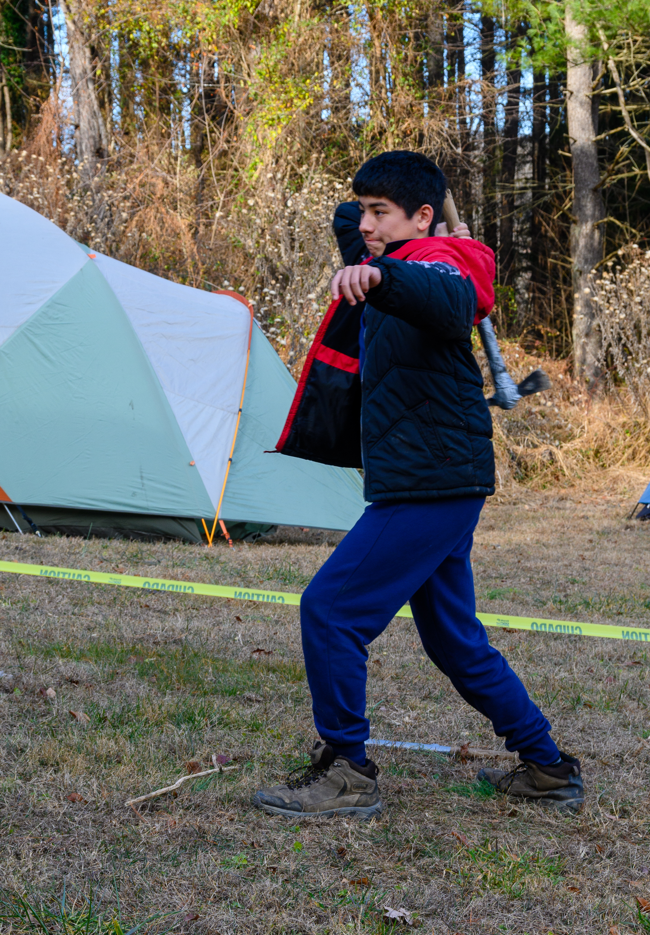 Our December camping trip was to Broad Creek Memorial Scout Reservation in Whiteford, Maryland. We had reserved the Dan Beard site for our Senior Surprise weekend. We were also joined again this year on Saturday by a number of Webelos from nearby packs. Saturday was filled with a variety of competitive events for patrols as shown in the photographs below. We also had a surprise visitor to our campfire on Saturday evening. Scroll down the photographs to see who it was.