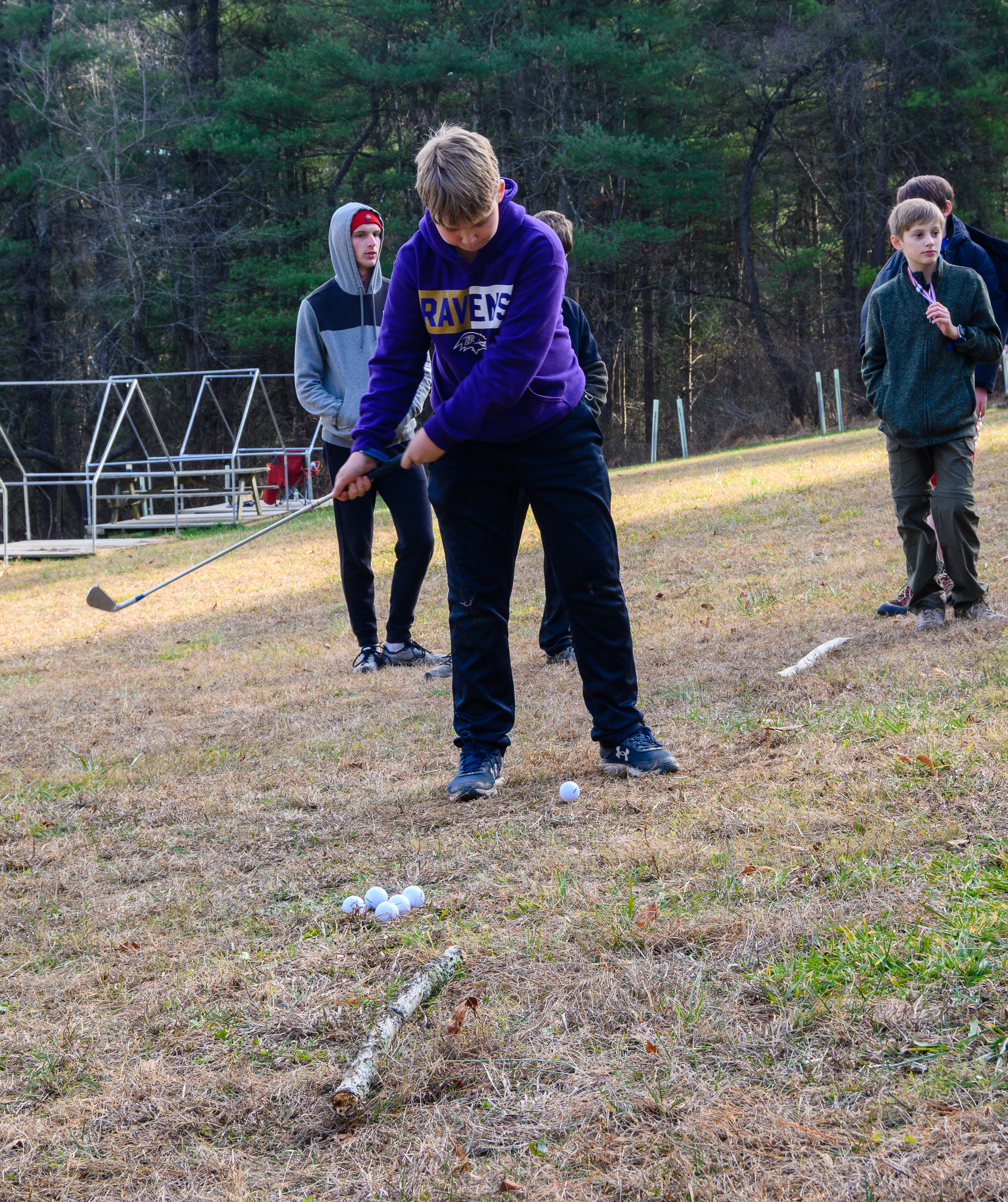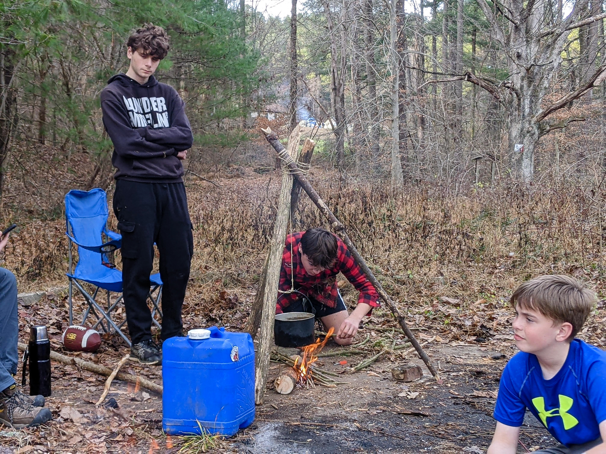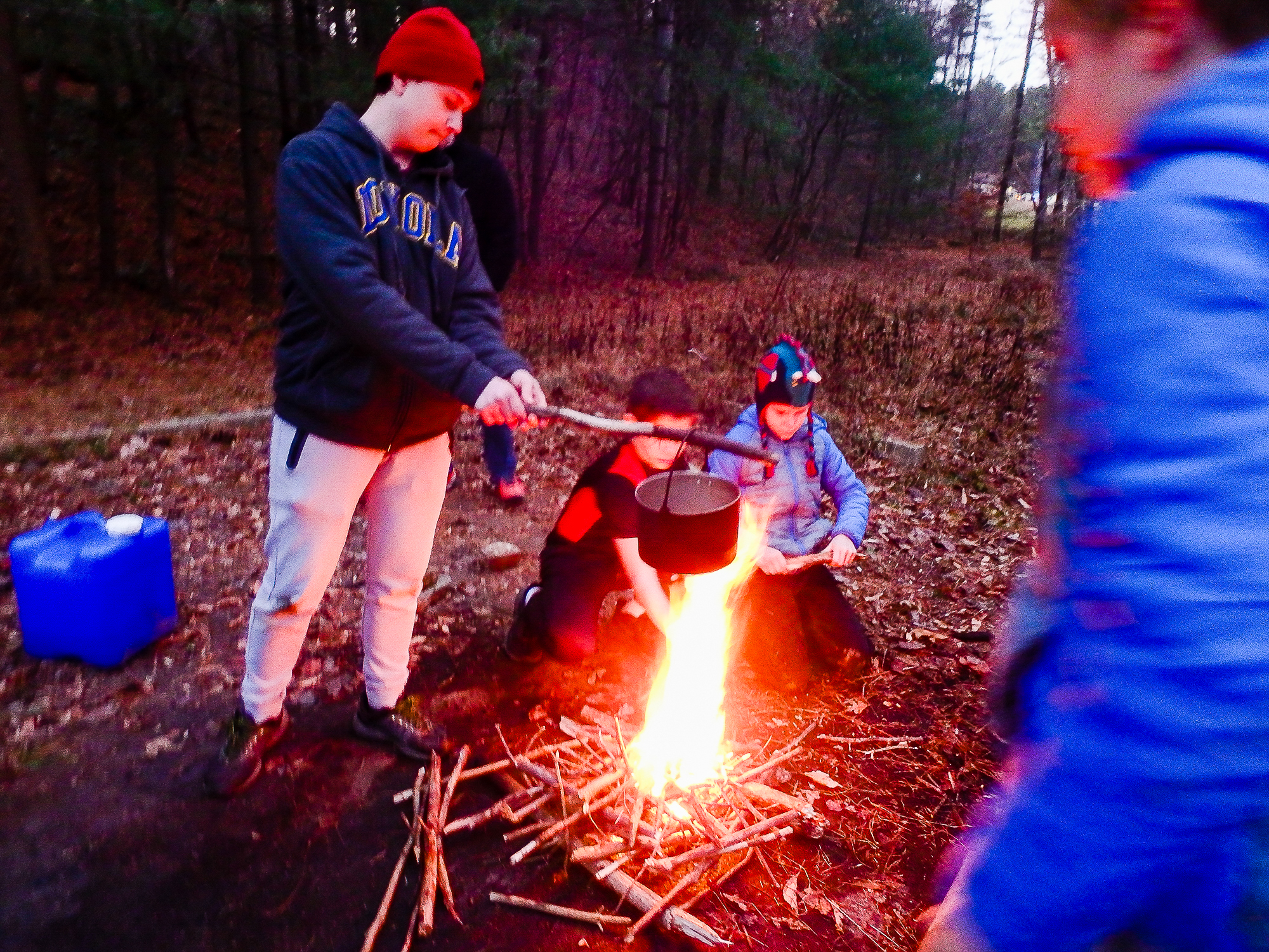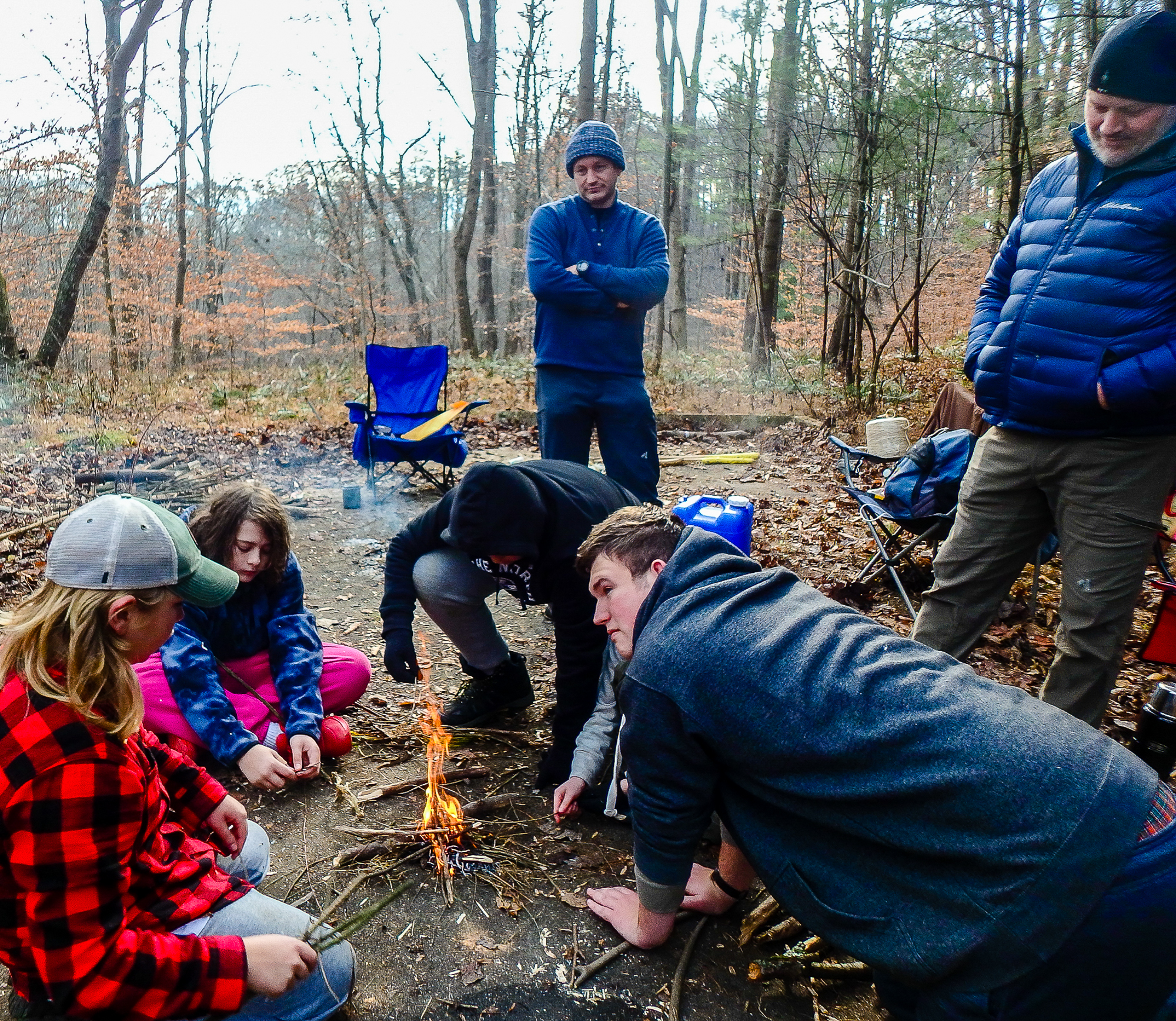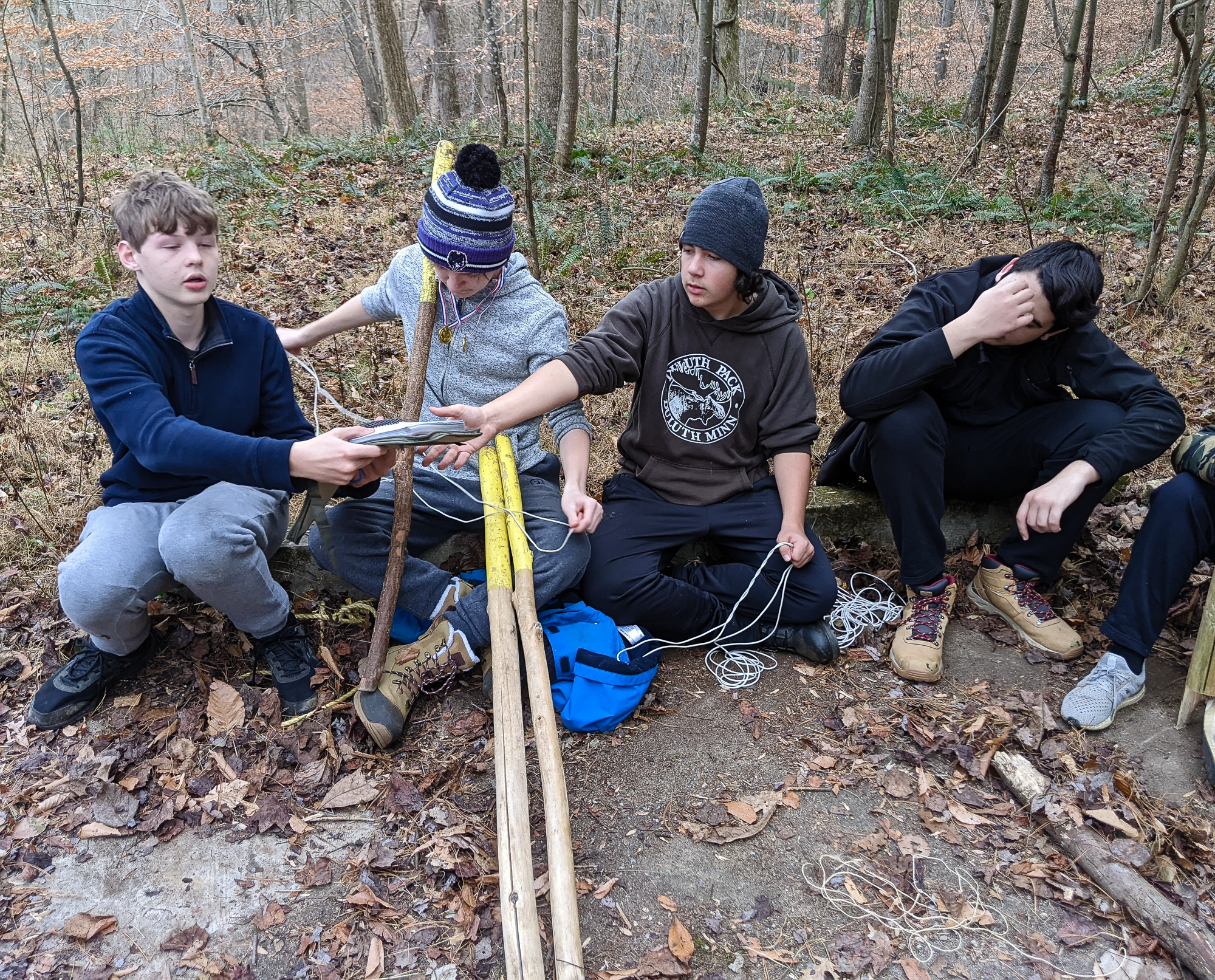 Our December camping trip was to Broad Creek Memorial Scout Reservation in Whiteford, Maryland. We had reserved the Dan Beard site for our Senior Surprise weekend. We were also joined again this year on Saturday by a number of Webelos from nearby packs. Saturday was filled with a variety of competitive events for patrols as shown in the photographs below. We also had a surprise visitor to our campfire on Saturday evening. Scroll down the photographs to see who it was.