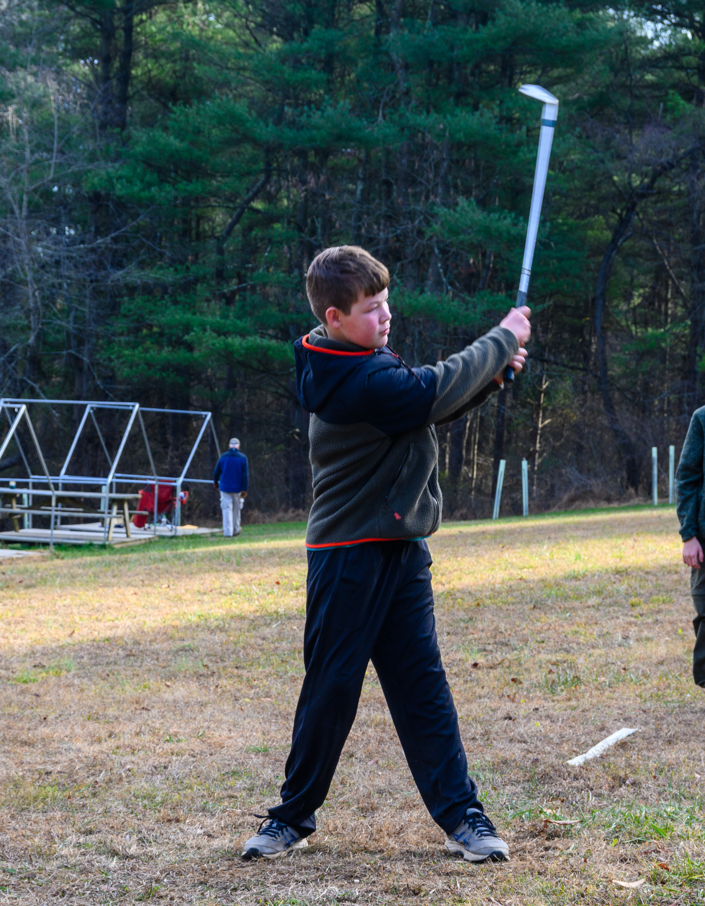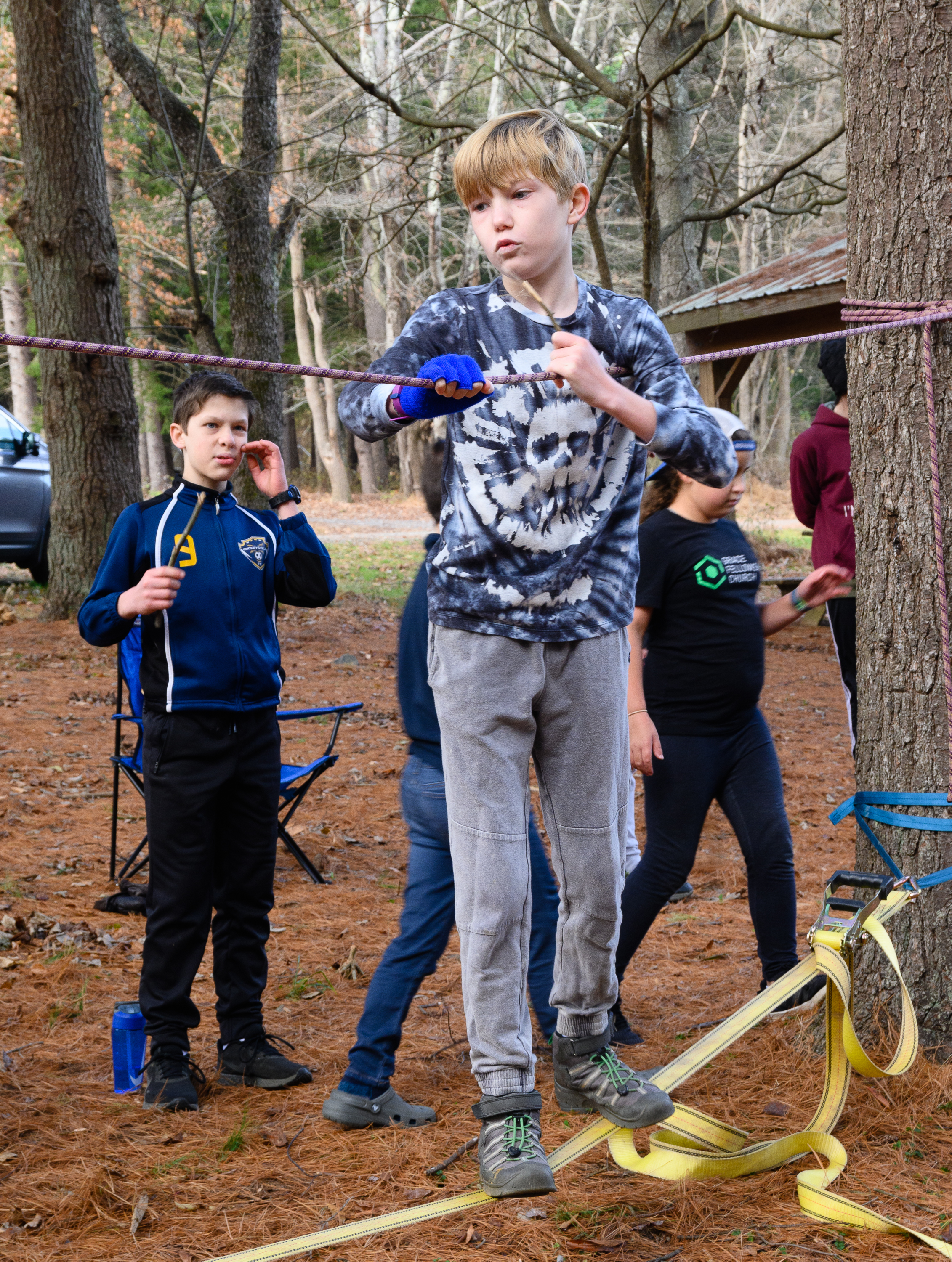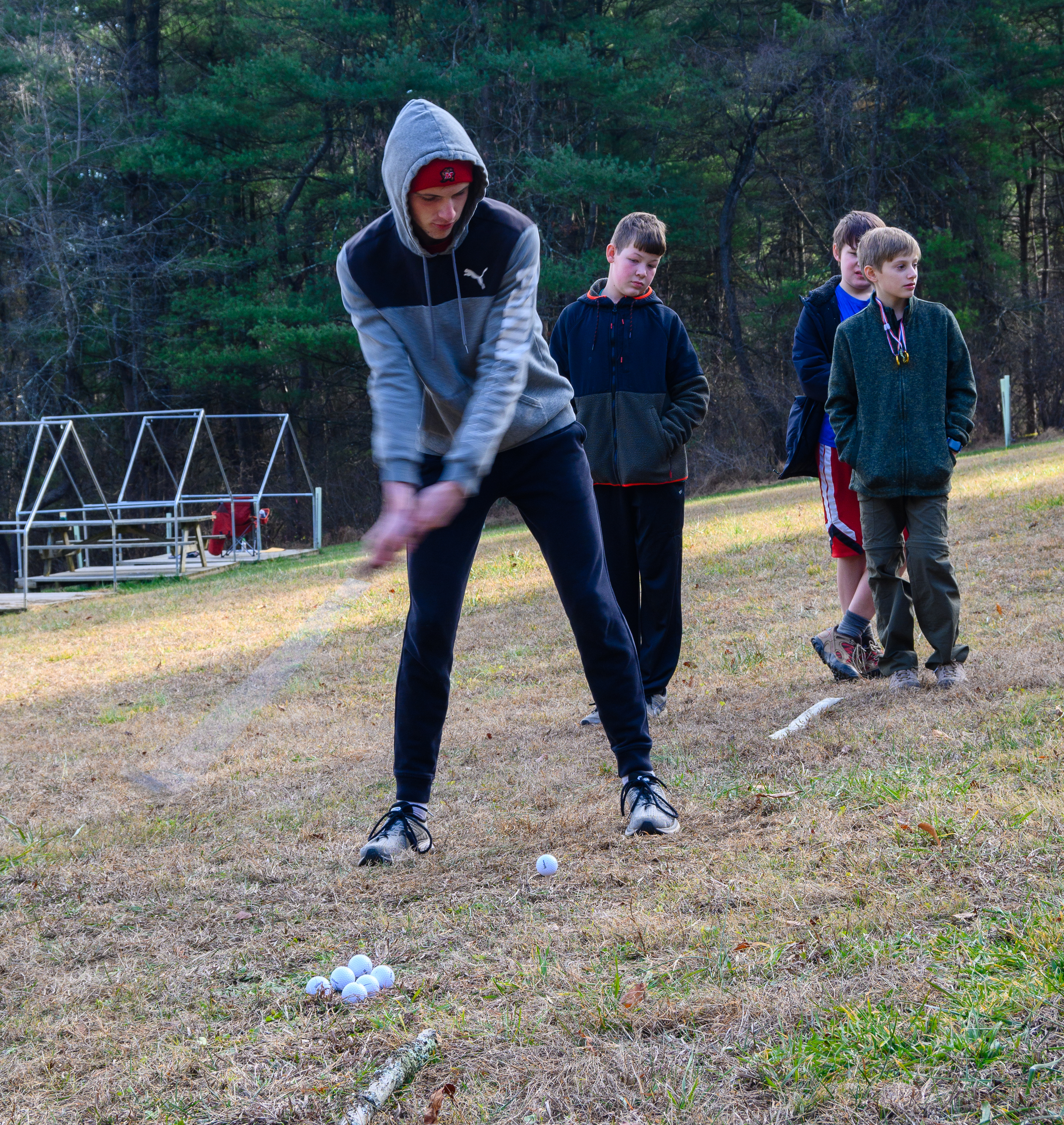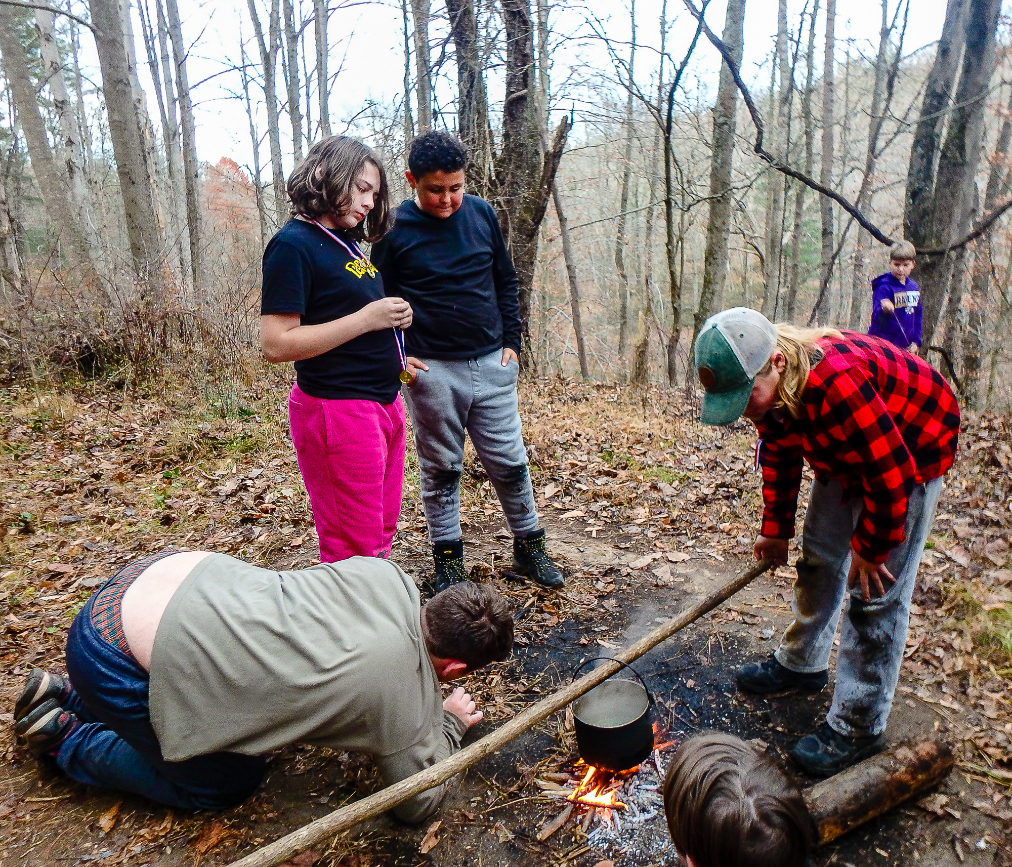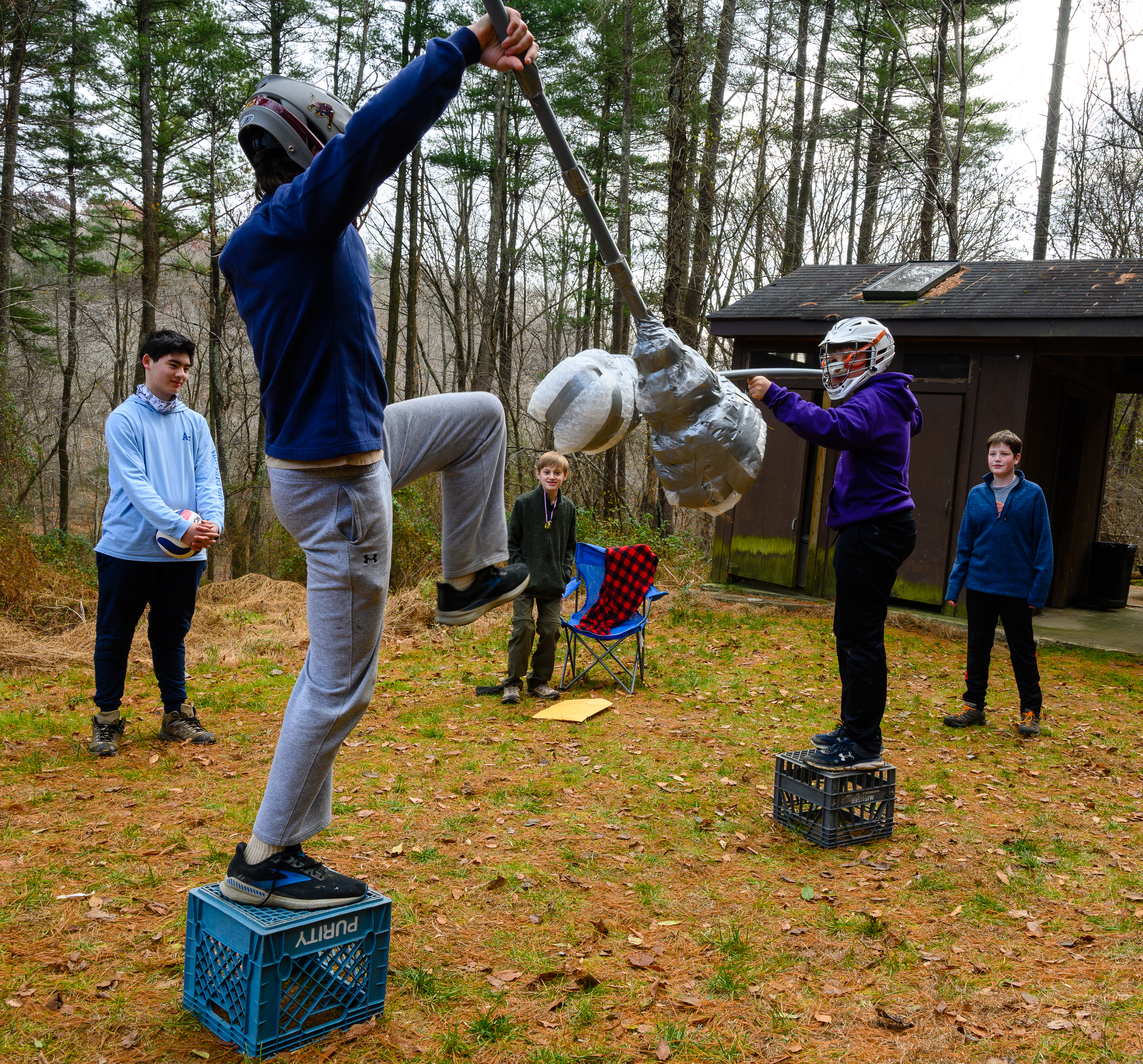 Our December camping trip was to Broad Creek Memorial Scout Reservation in Whiteford, Maryland. We had reserved the Dan Beard site for our Senior Surprise weekend. We were also joined again this year on Saturday by a number of Webelos from nearby packs. Saturday was filled with a variety of competitive events for patrols as shown in the photographs below. We also had a surprise visitor to our campfire on Saturday evening. Scroll down the photographs to see who it was.