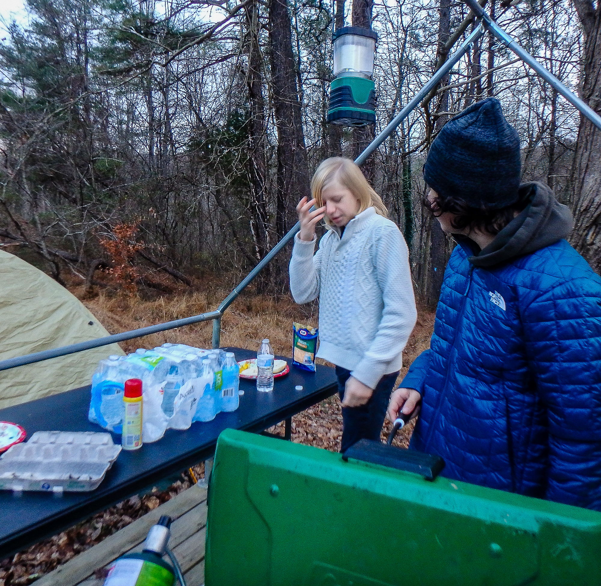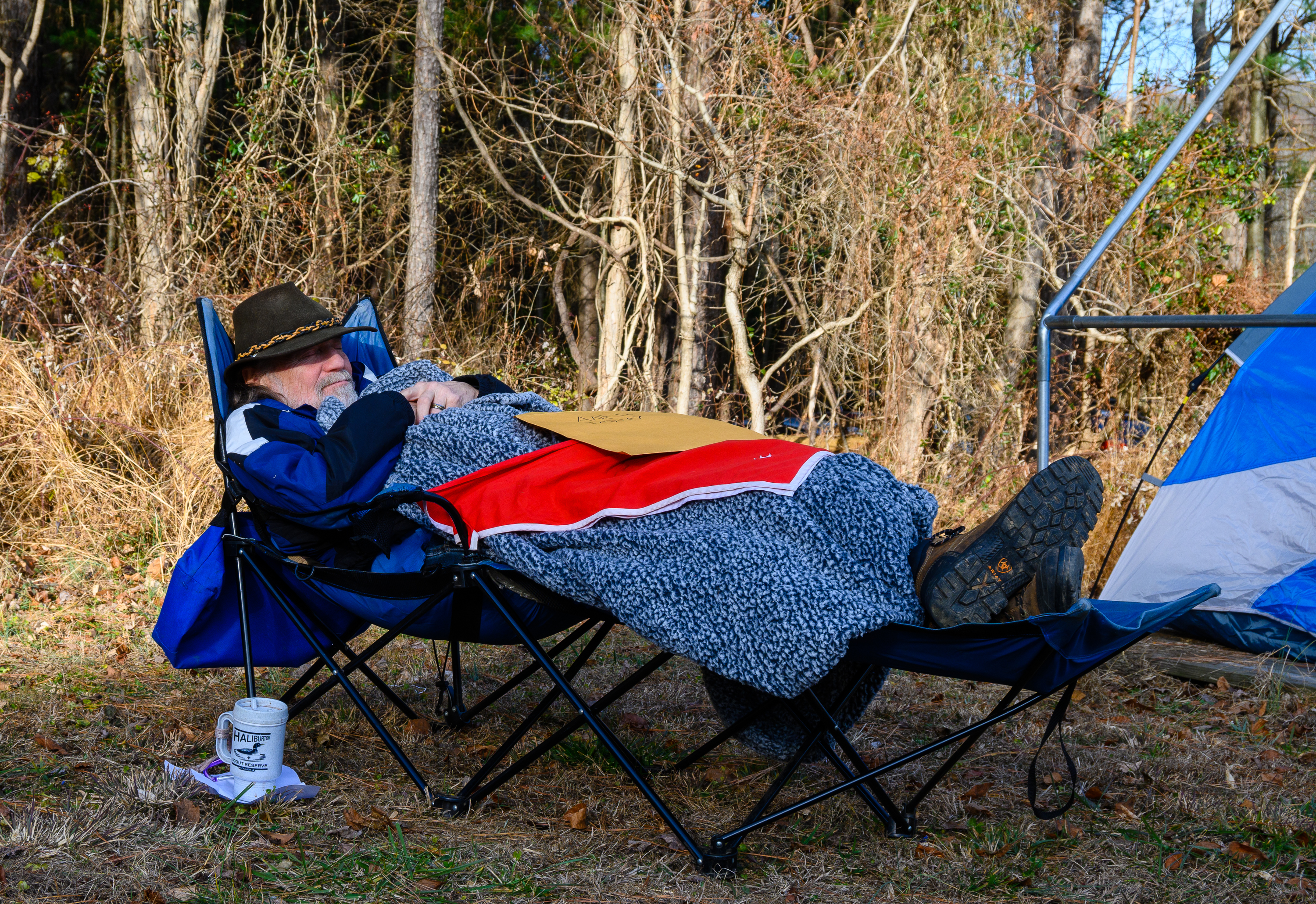 Saturday morning low temperature was 41°F. The temperature dropped dramatically on Sunday morning to a low of 26°F earning 6 Texas Tough points for anyone who camped out both Friday and Saturday nights.