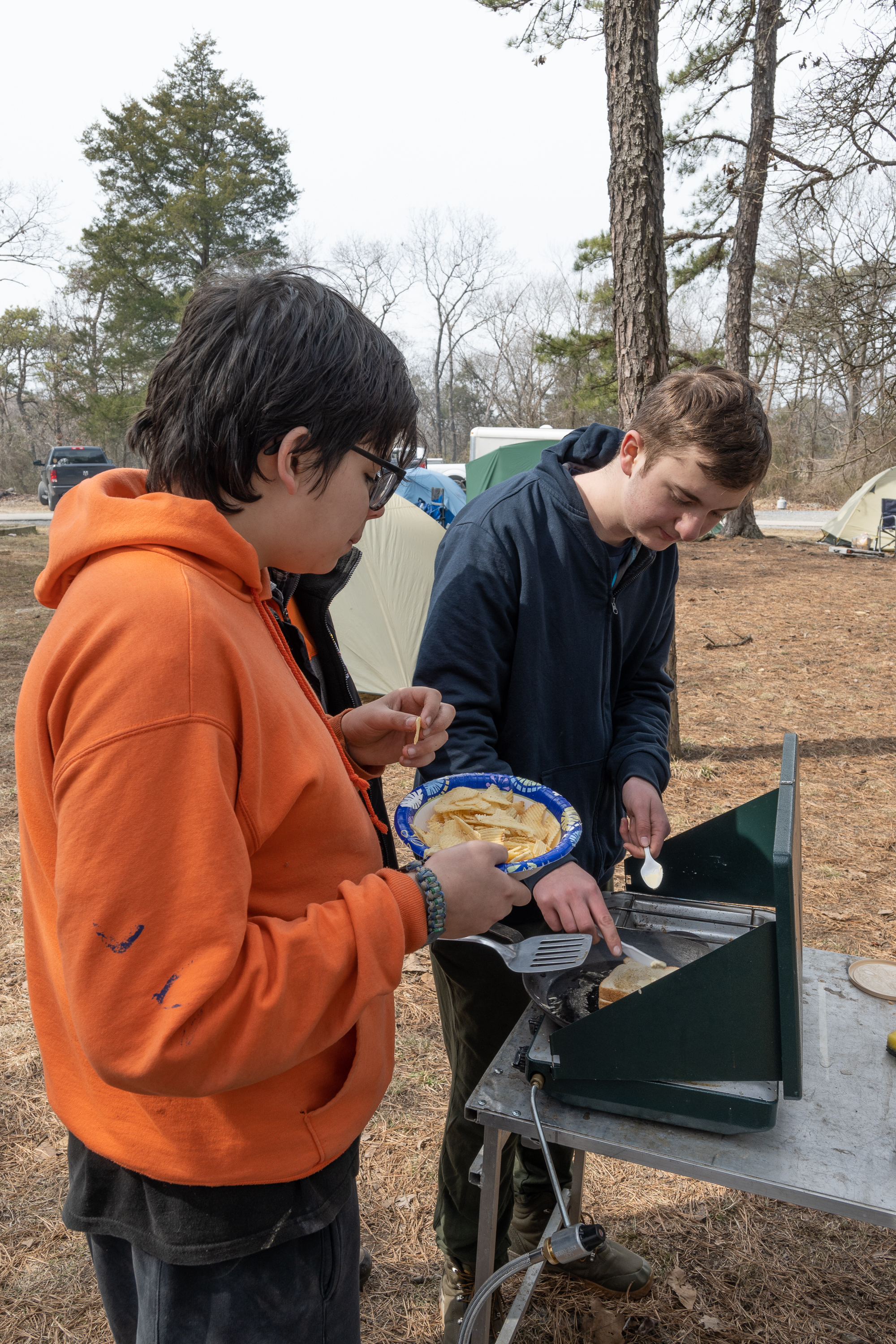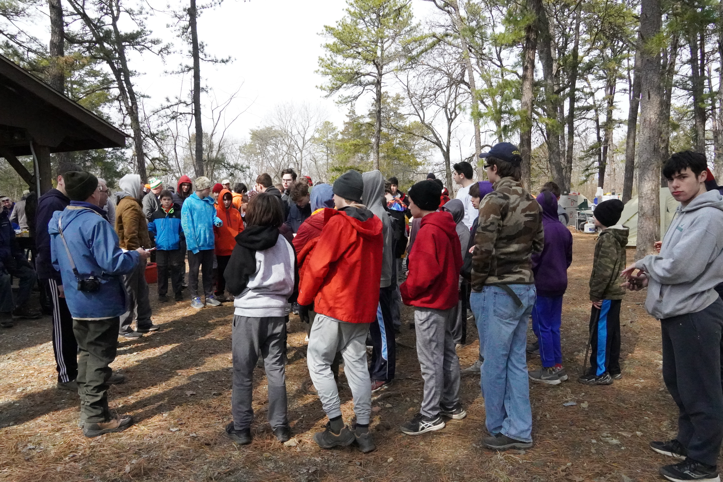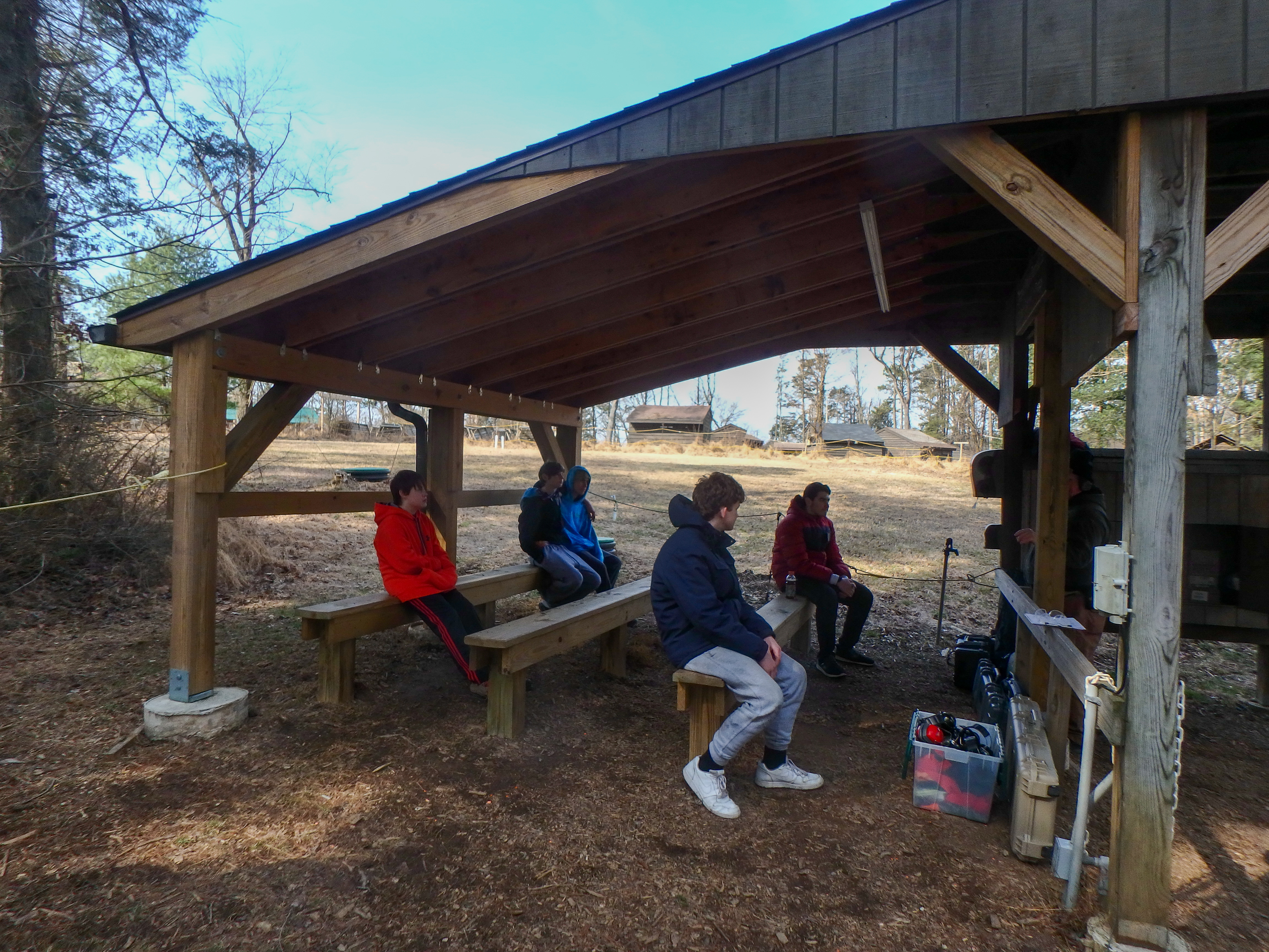 Our March camping trip was to Camp Horseshoe in Rising Sun Maryland. It had been close to 40 years since we last camped here.This was our first camping trip since December 2021 because of a surge in the Omicron variant of Covid-19. parents transported their own sons or arranged their own carpools. We camped in the Campcraft area which is not a camping site during the summer but proved to be a very nice site for a troop our size. We were all able to tent in this area and we used Sher3wood Forest and Trailblazers sites for program.