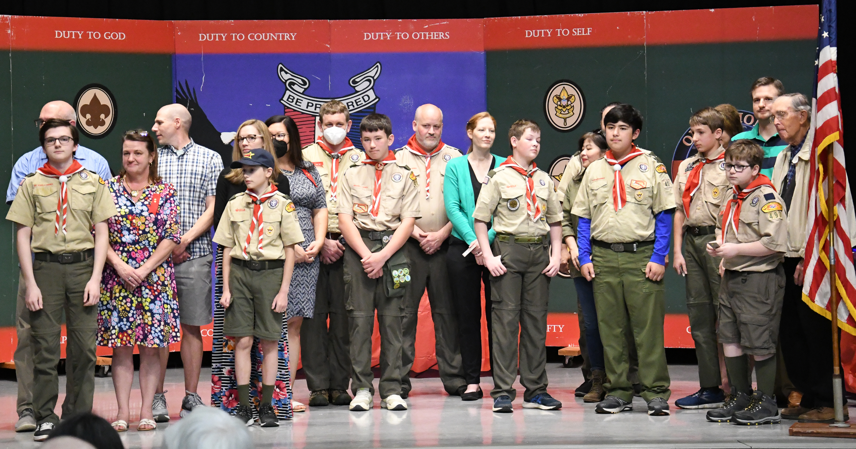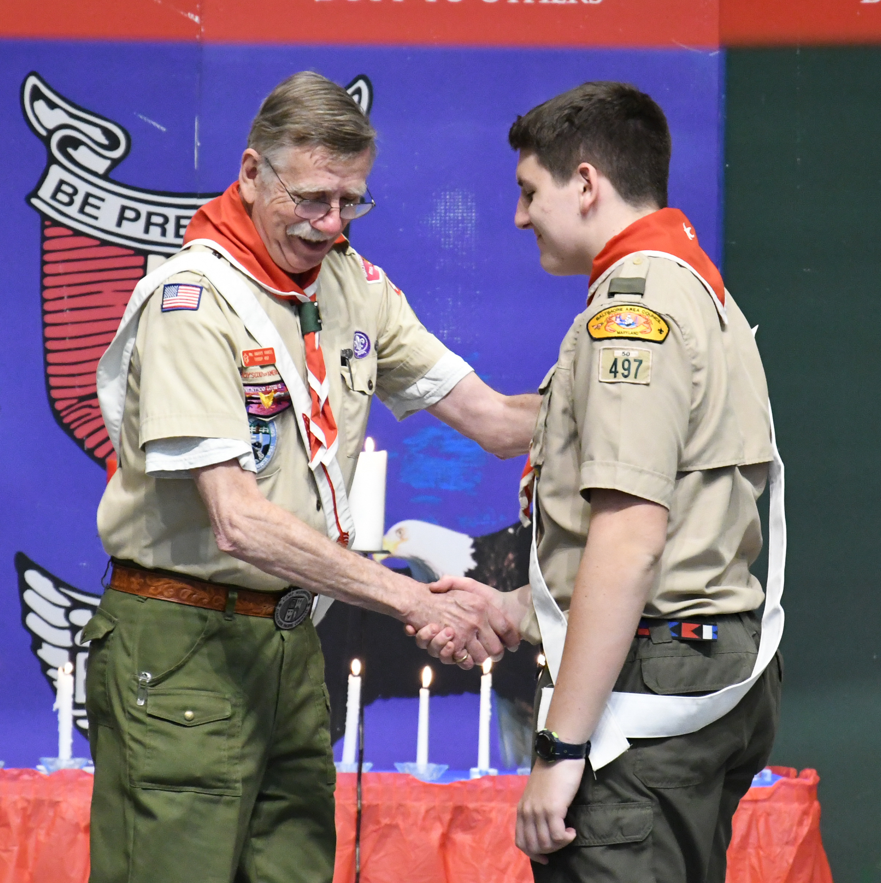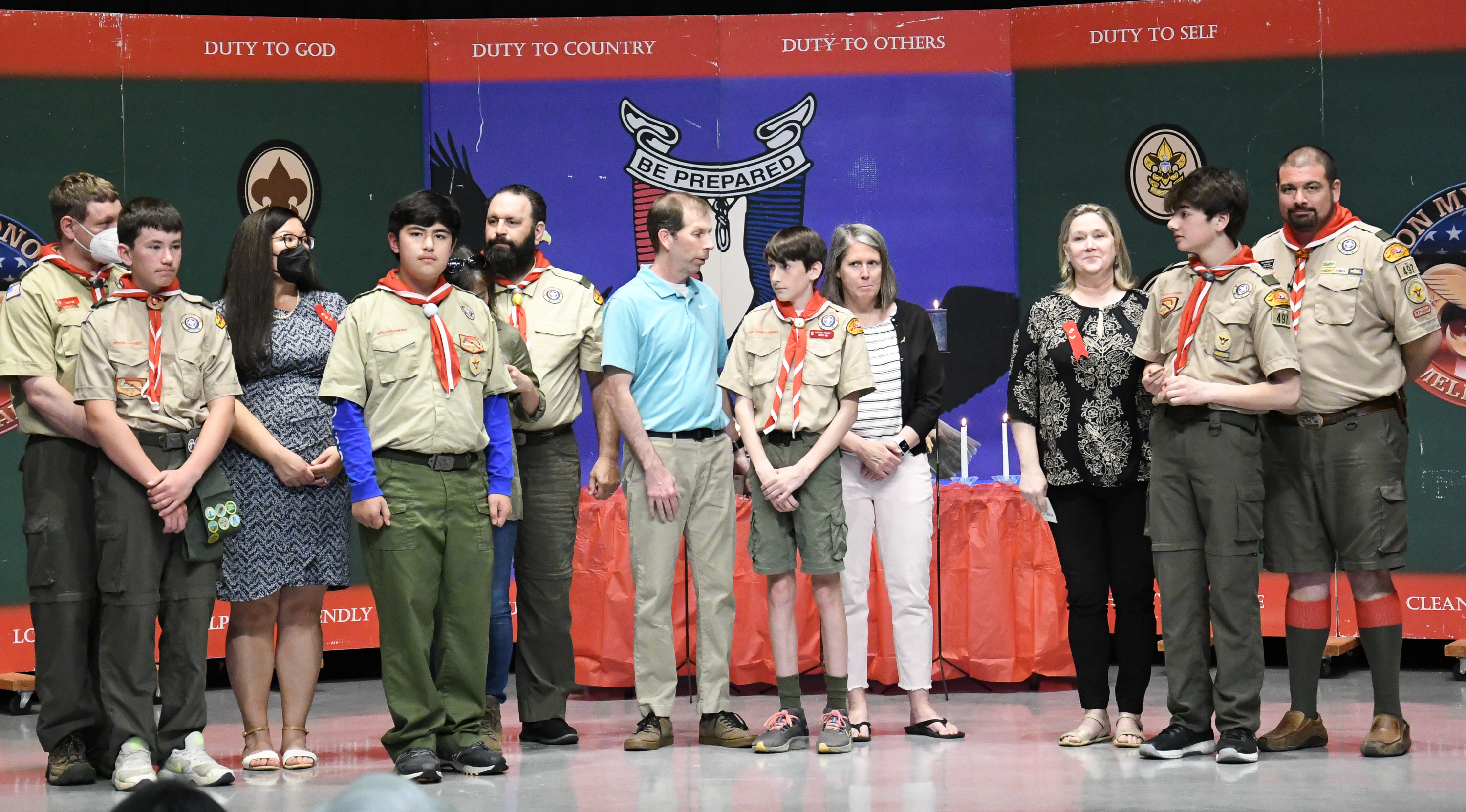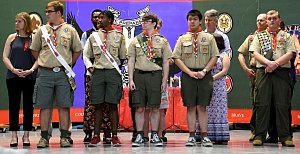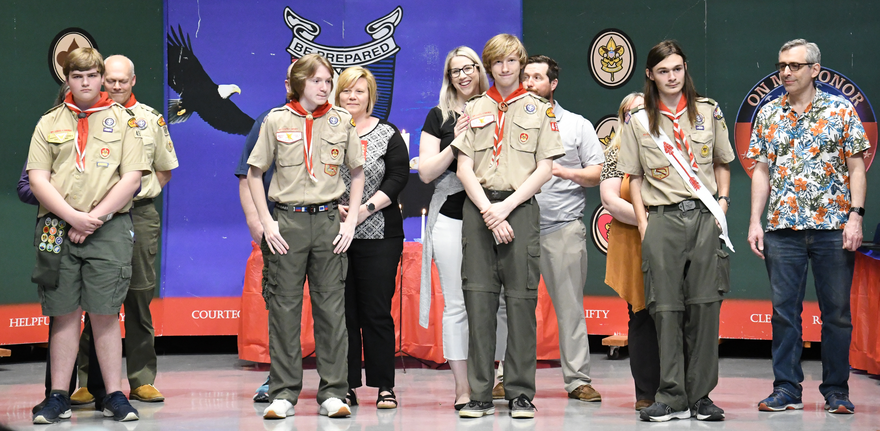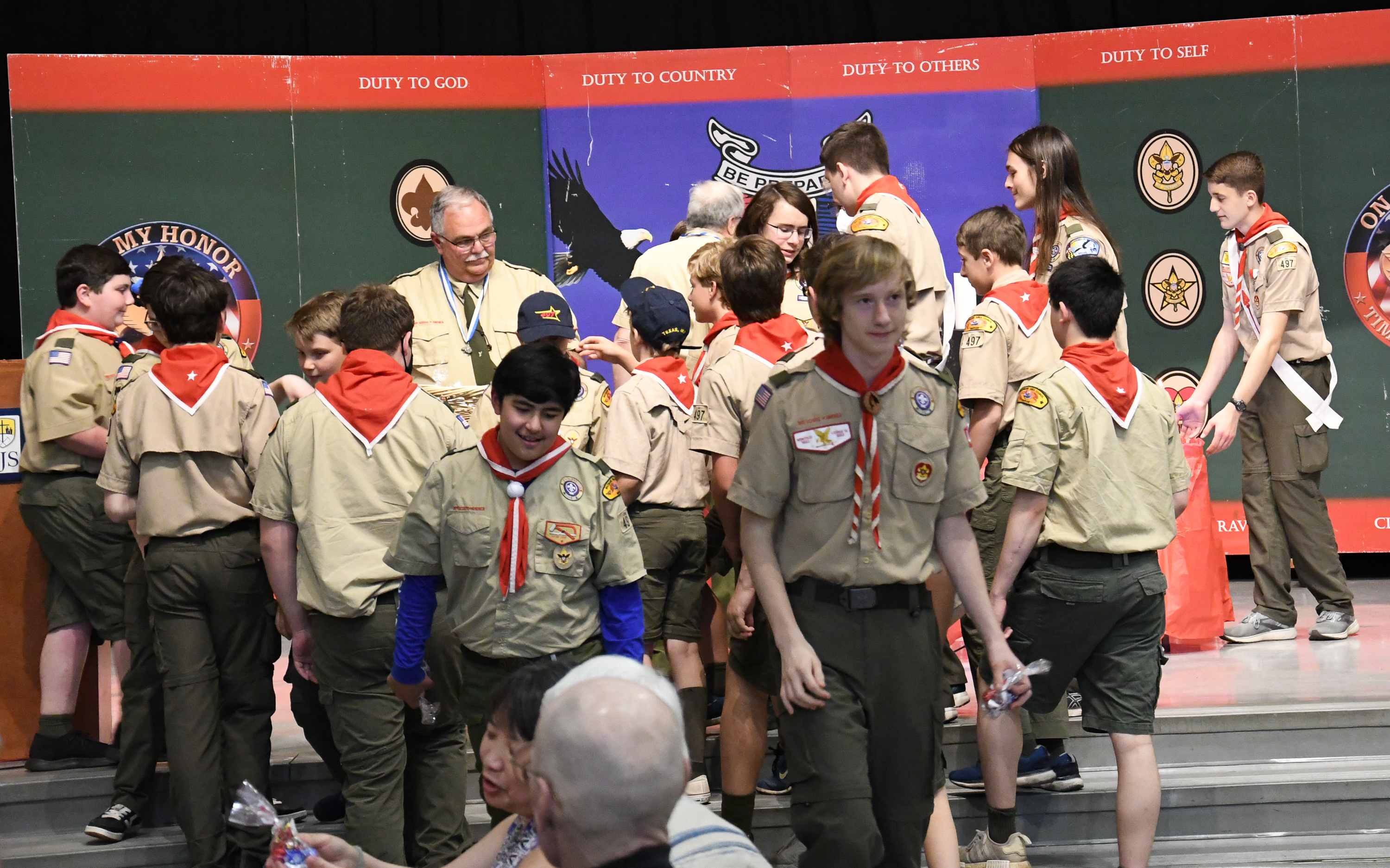 Troop 497 held two Court of Honors in the spring to honor the six young men who achieved the rank of Eagle Scout in the past year. Ranks, merit badges, awards, and honors earned since our previous spring Court of Honors were presented to Scouts and Adult Leaders in the Troop.Click on a photograph to see the large, high quality version or right click and select the menu item to save it to your disk. Contact the photographers for even higher resolution images, additional photographs, and unedited versions of these photographs.