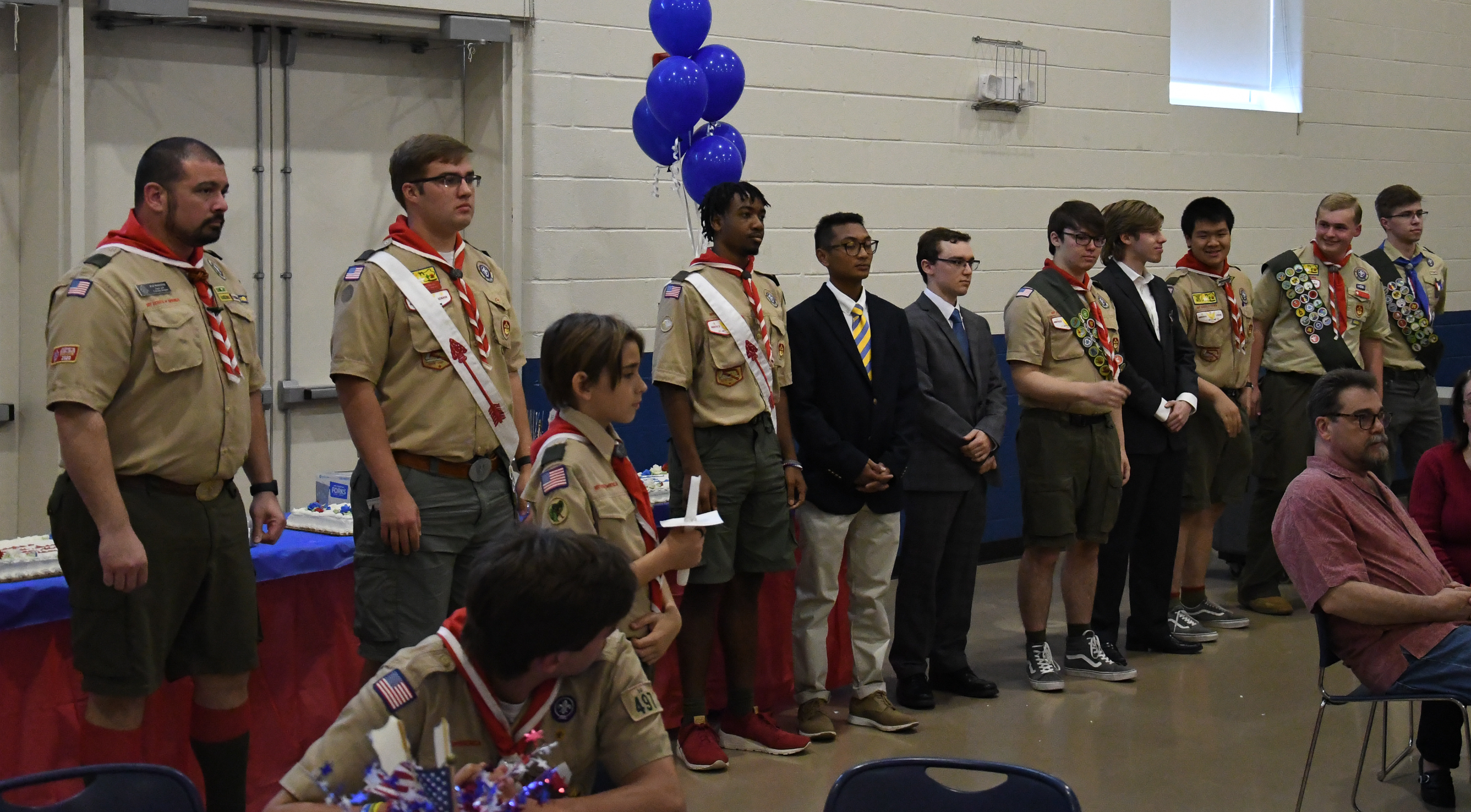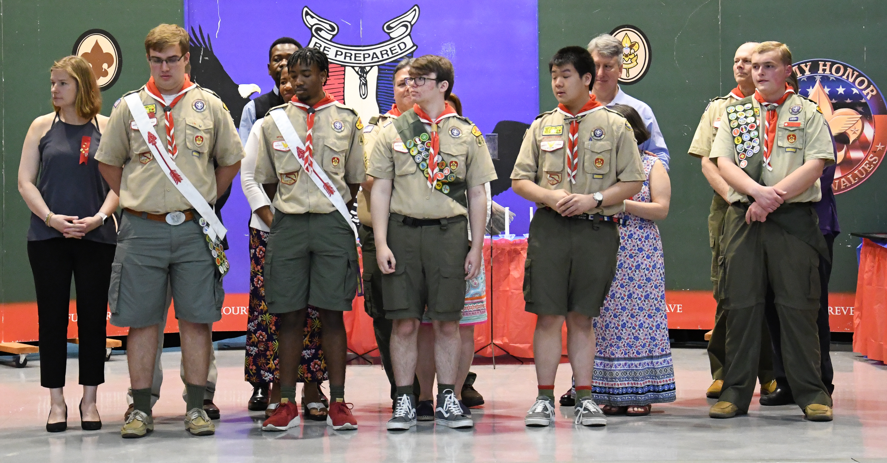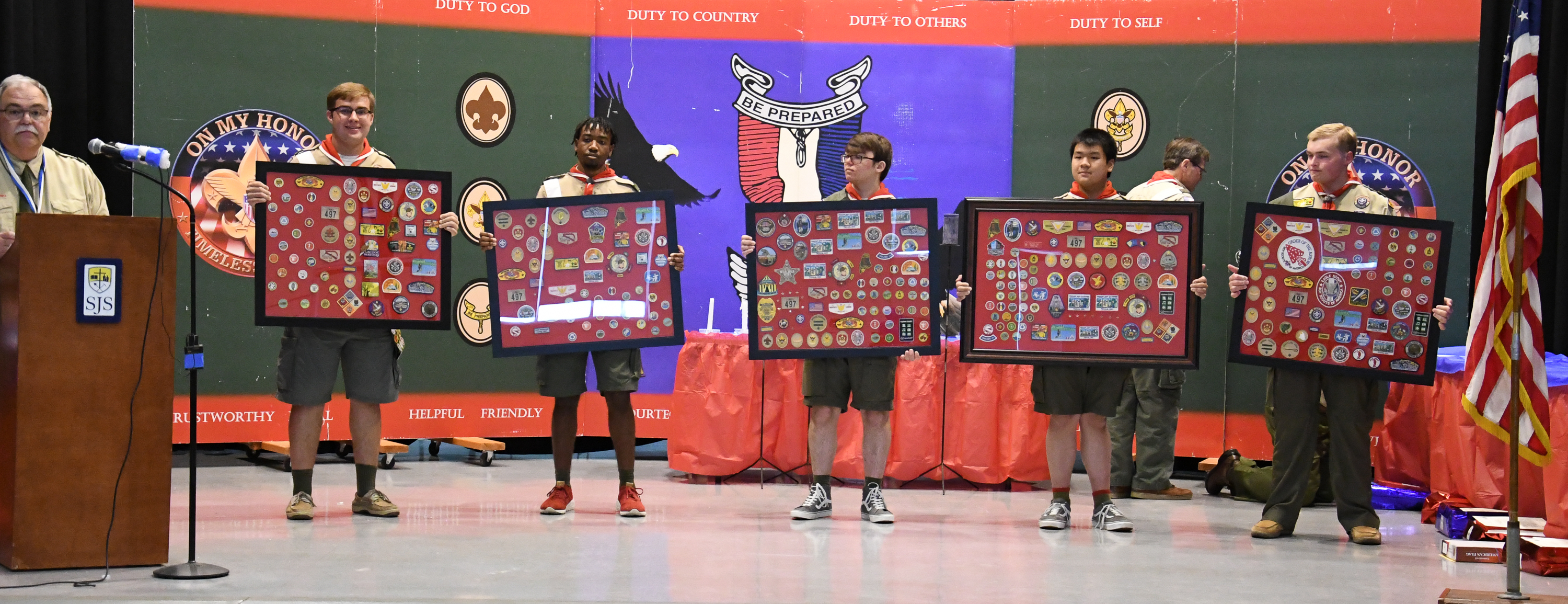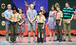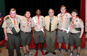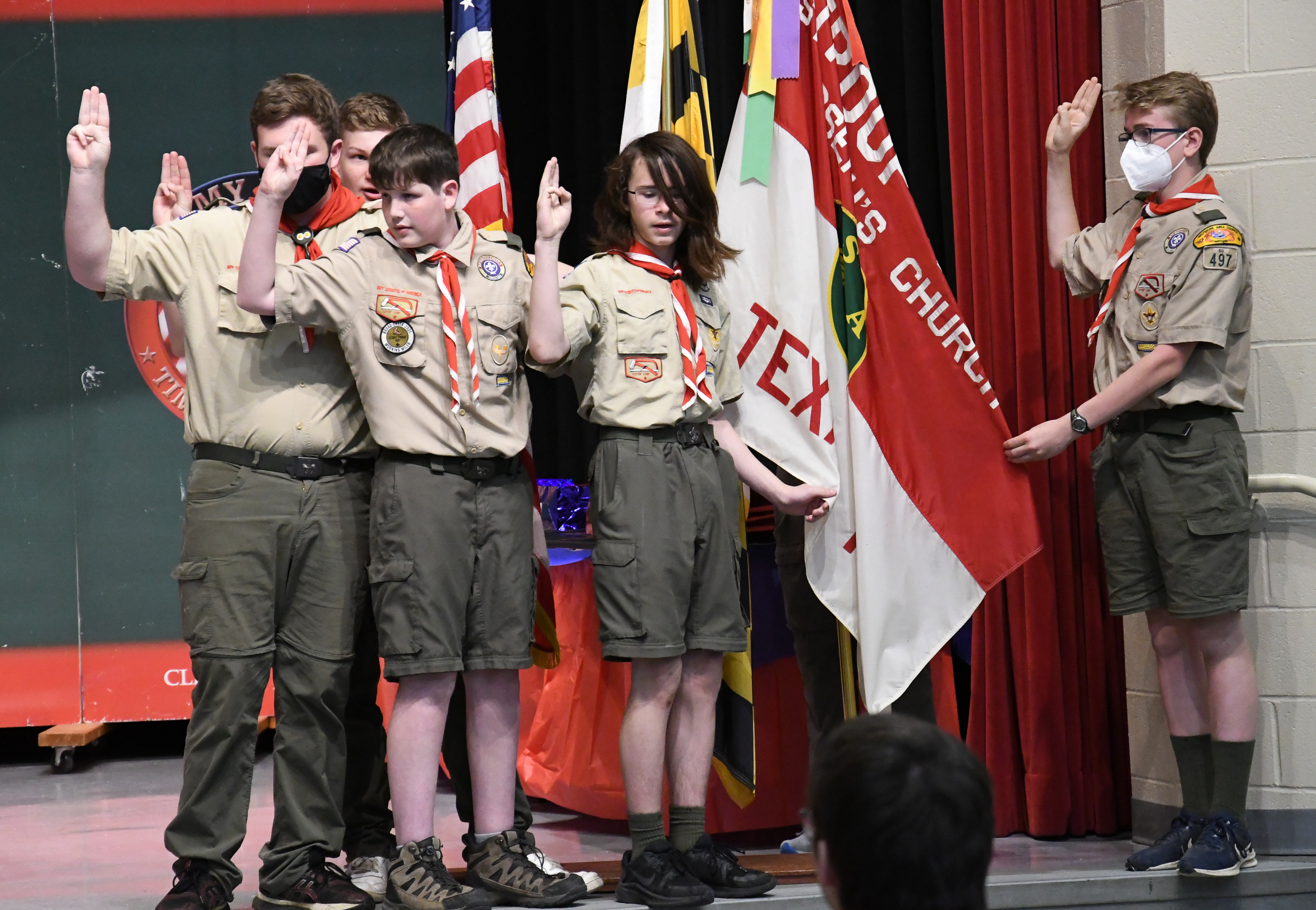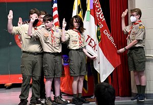 Troop 497 held two Court of Honors in the spring to honor the six young men who achieved the rank of Eagle Scout in the past year. Ranks, merit badges, awards, and honors earned since our previous spring Court of Honors were presented to Scouts and Adult Leaders in the Troop.Click on a photograph to see the large, high quality version or right click and select the menu item to save it to your disk. Contact the photographers for even higher resolution images, additional photographs, and unedited versions of these photographs.