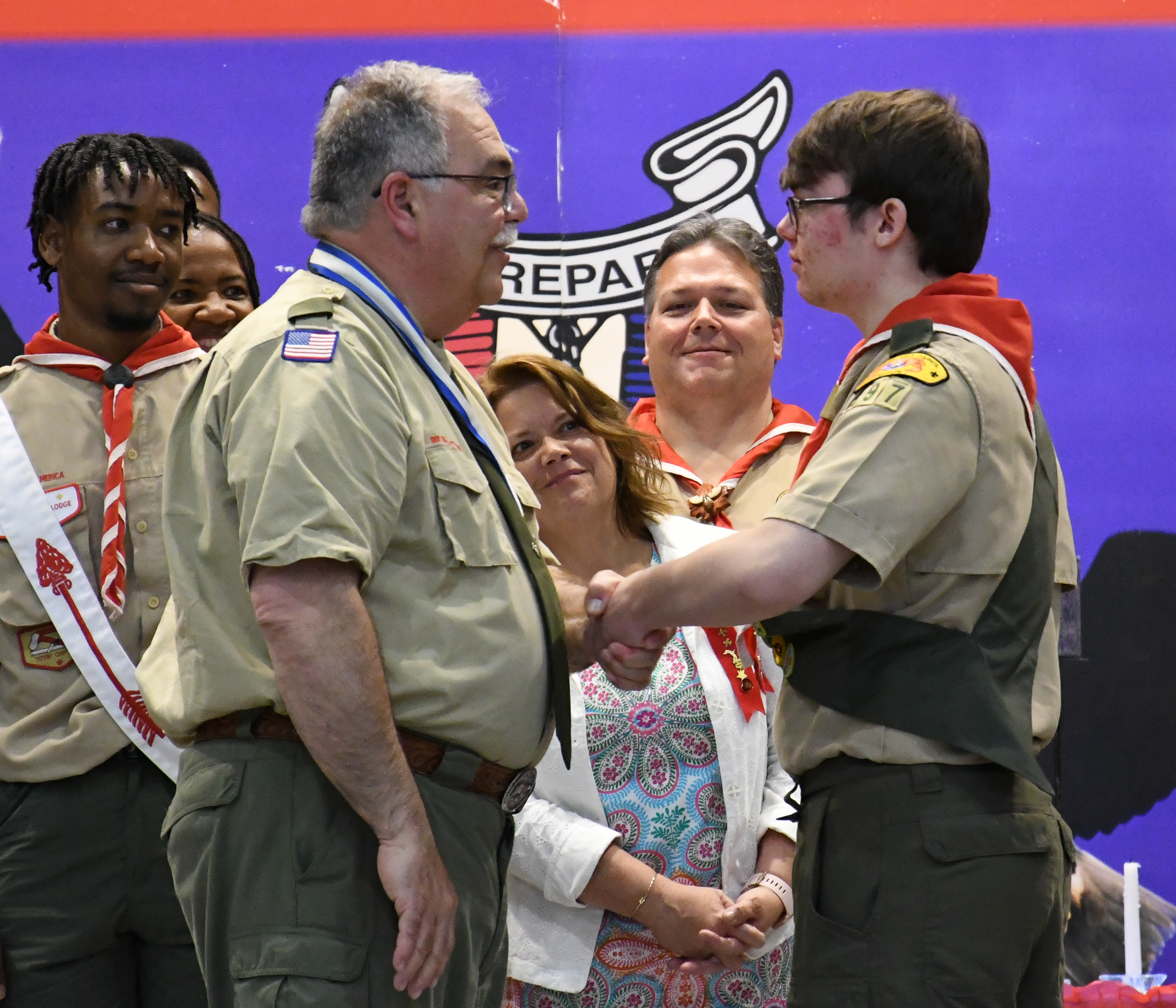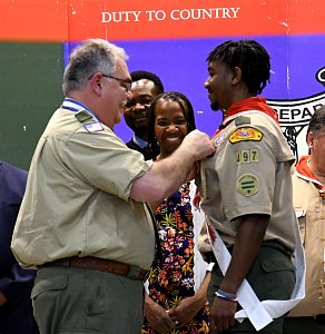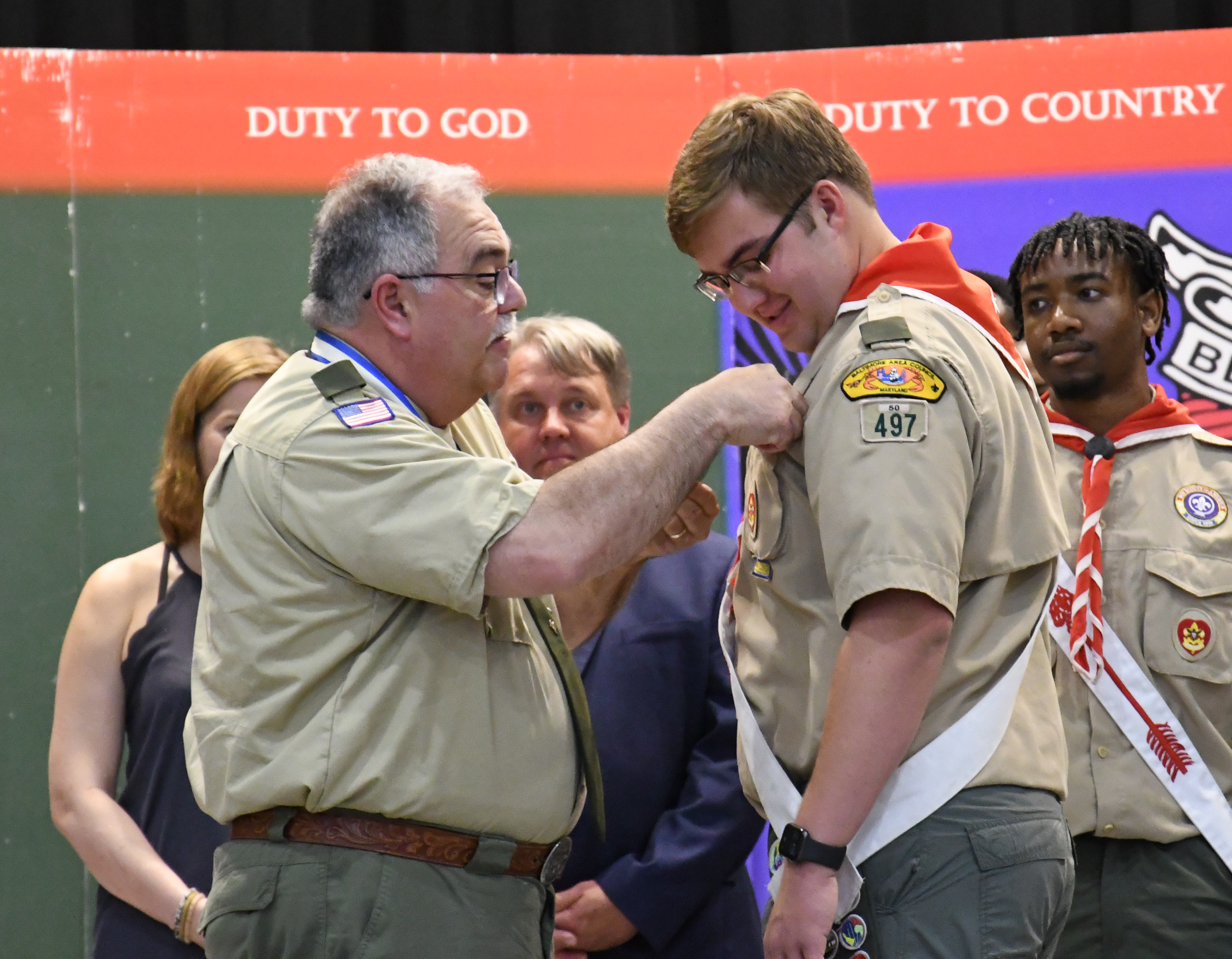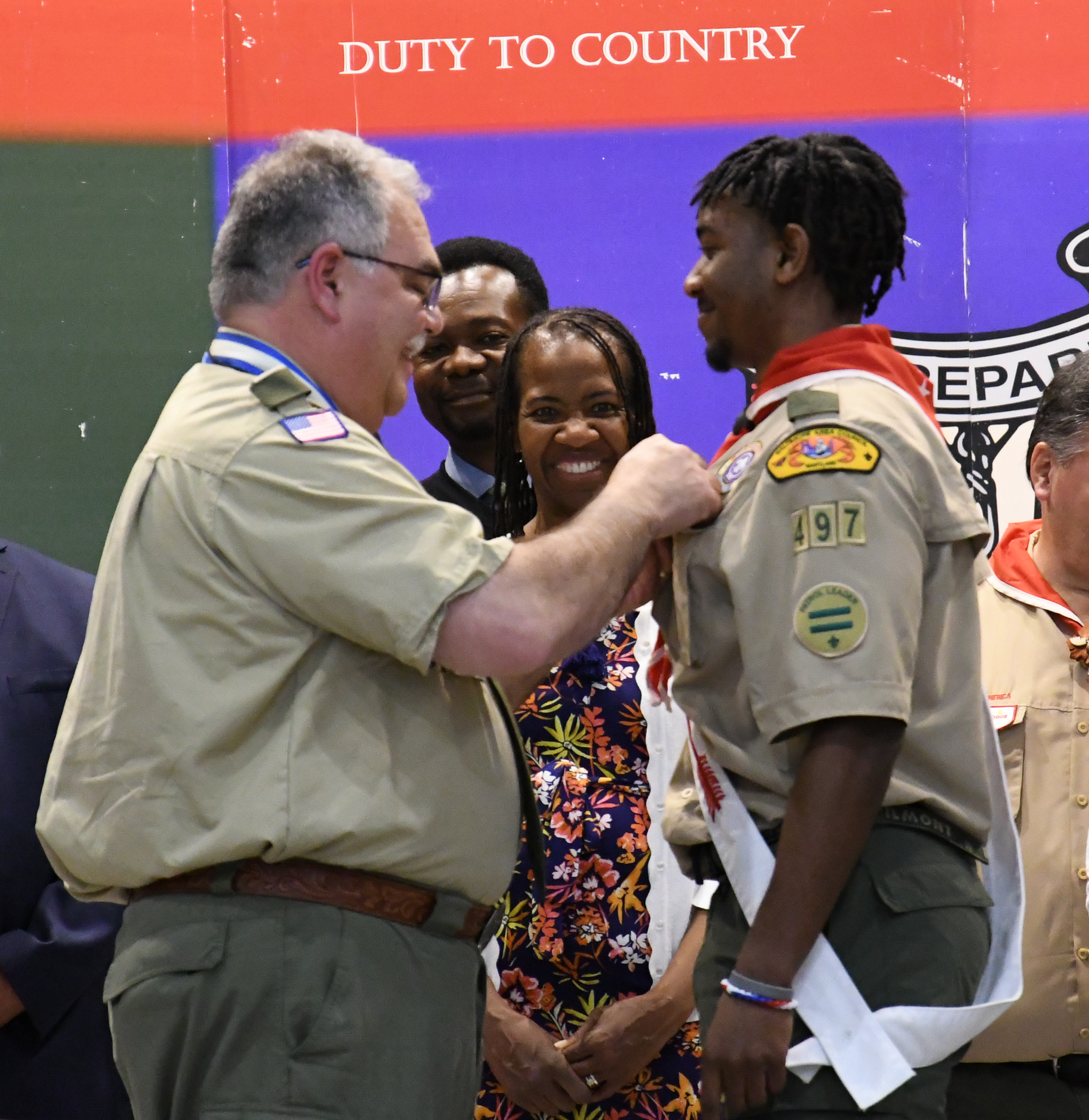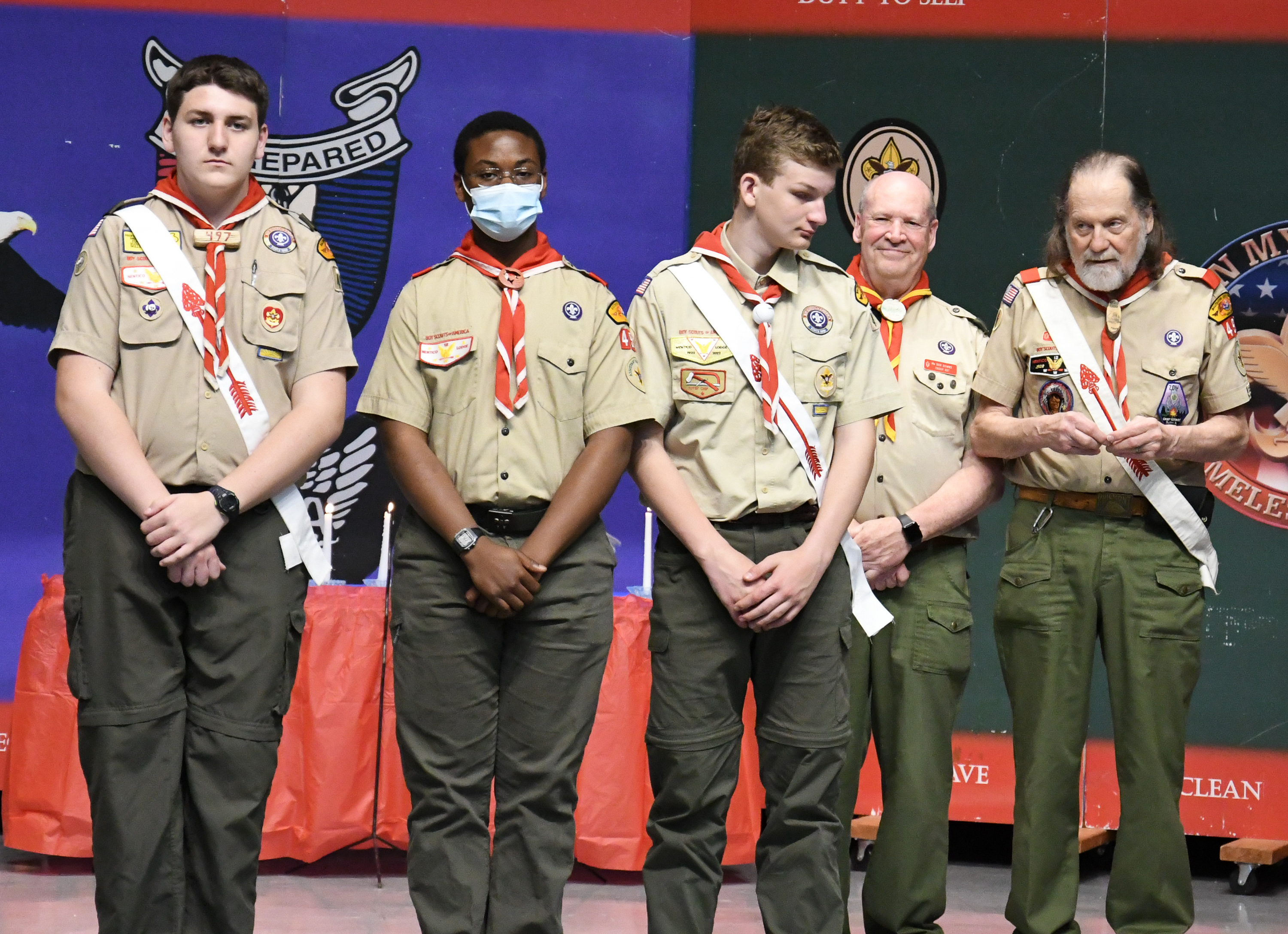 Troop 497 held two Court of Honors in the spring to honor the six young men who achieved the rank of Eagle Scout in the past year. Ranks, merit badges, awards, and honors earned since our previous spring Court of Honors were presented to Scouts and Adult Leaders in the Troop.Click on a photograph to see the large, high quality version or right click and select the menu item to save it to your disk. Contact the photographers for even higher resolution images, additional photographs, and unedited versions of these photographs.