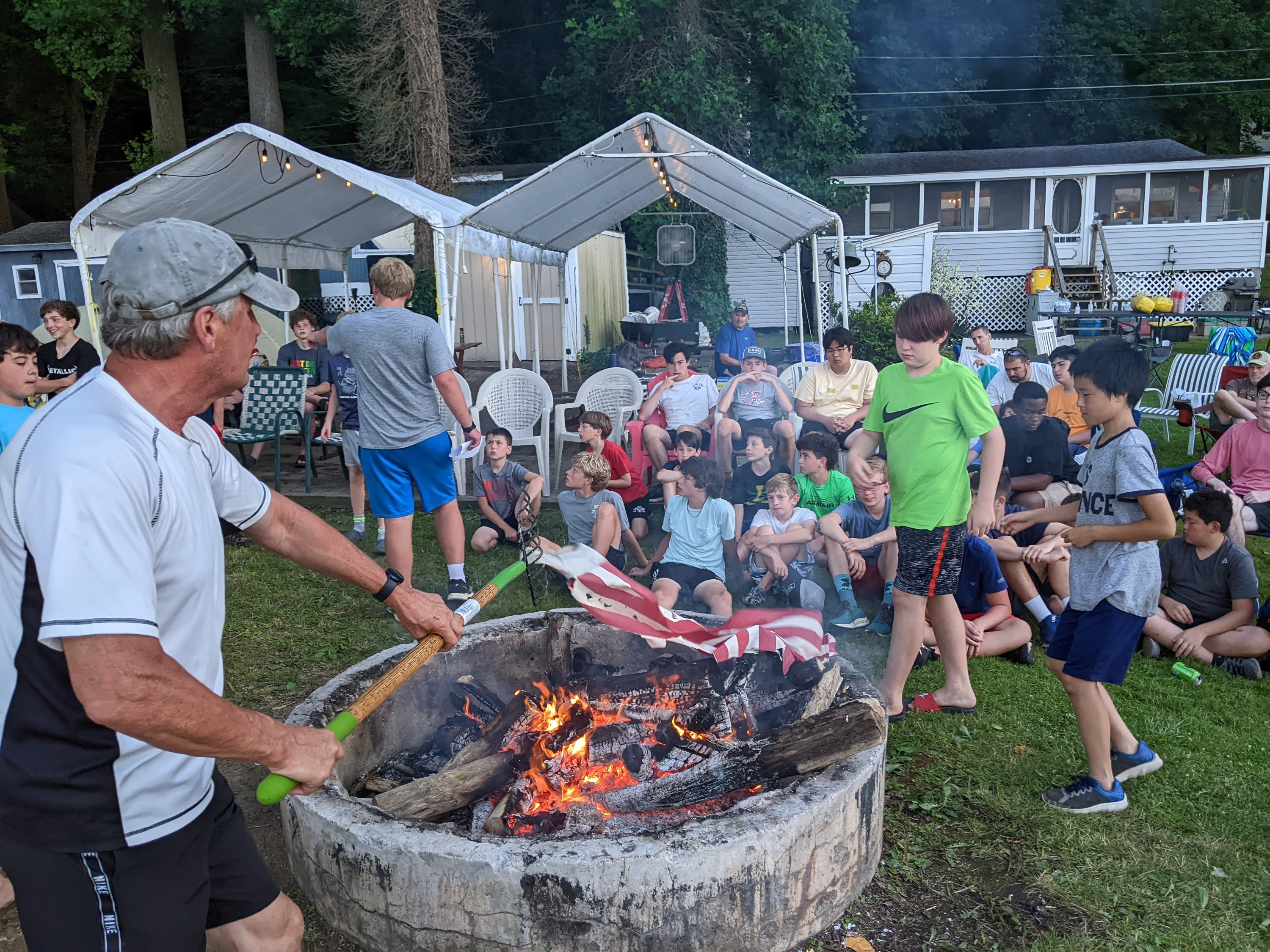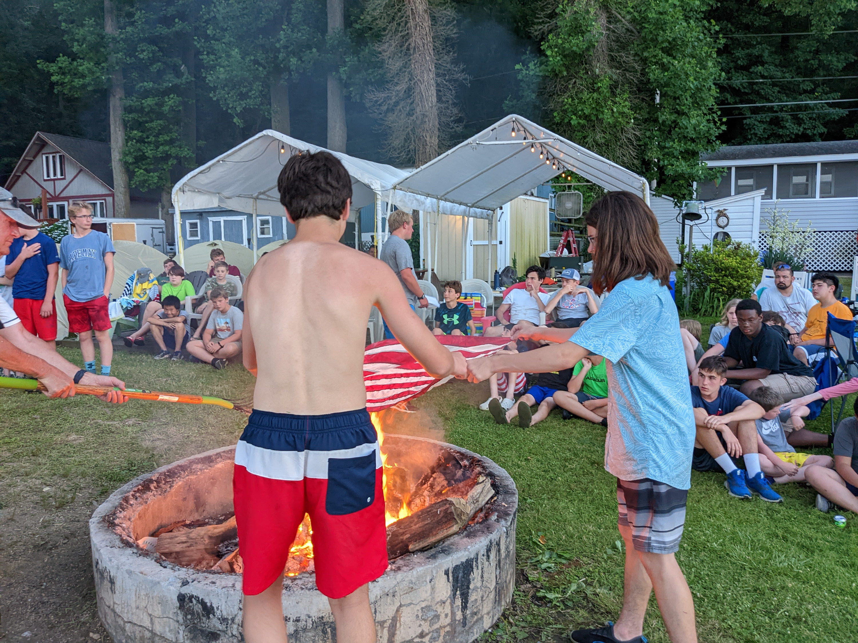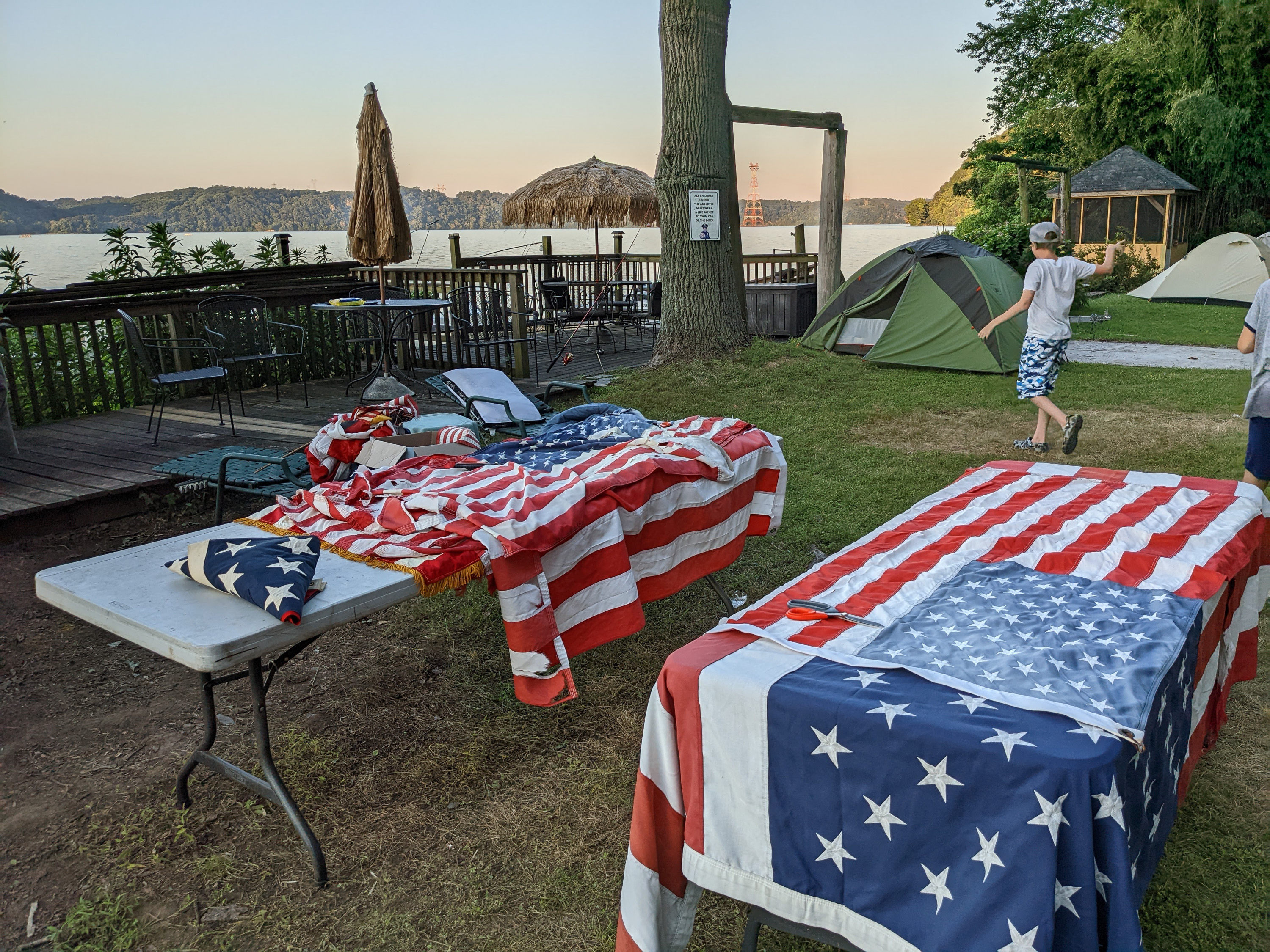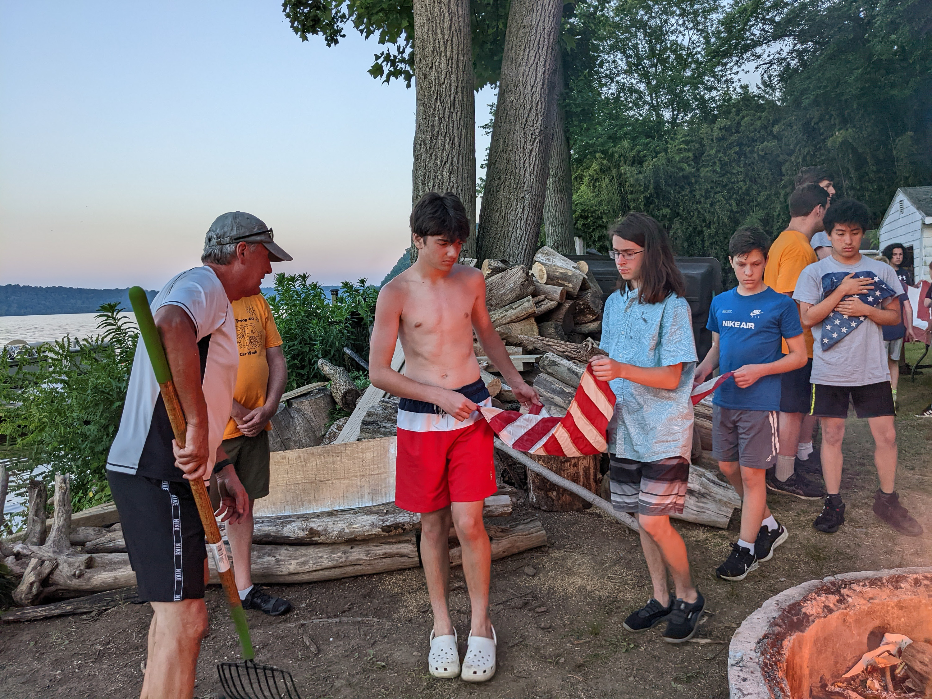 Or June camping trip was back to the Susquehanna River in Delta, PA. We are very fortunate, and grateful, to be able to camp in the yards of several homes along the river and use their docks watercraft for our weekend. Most of Saturday was spent in, or on the water, as evident in these photographs. The Troop also conducted a proper flag retirement ceremony on Saturday evening for a collection of old or damaged flags.