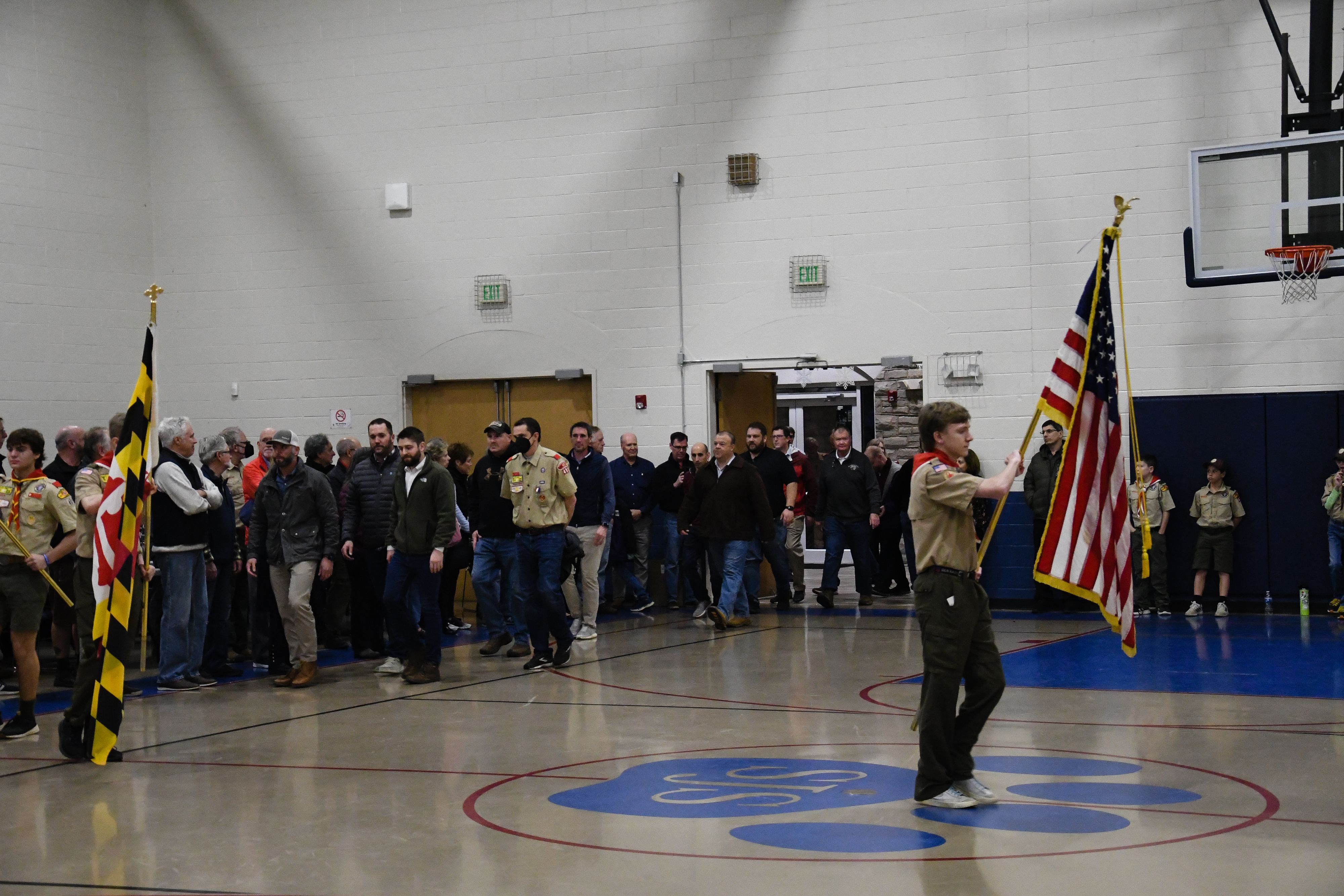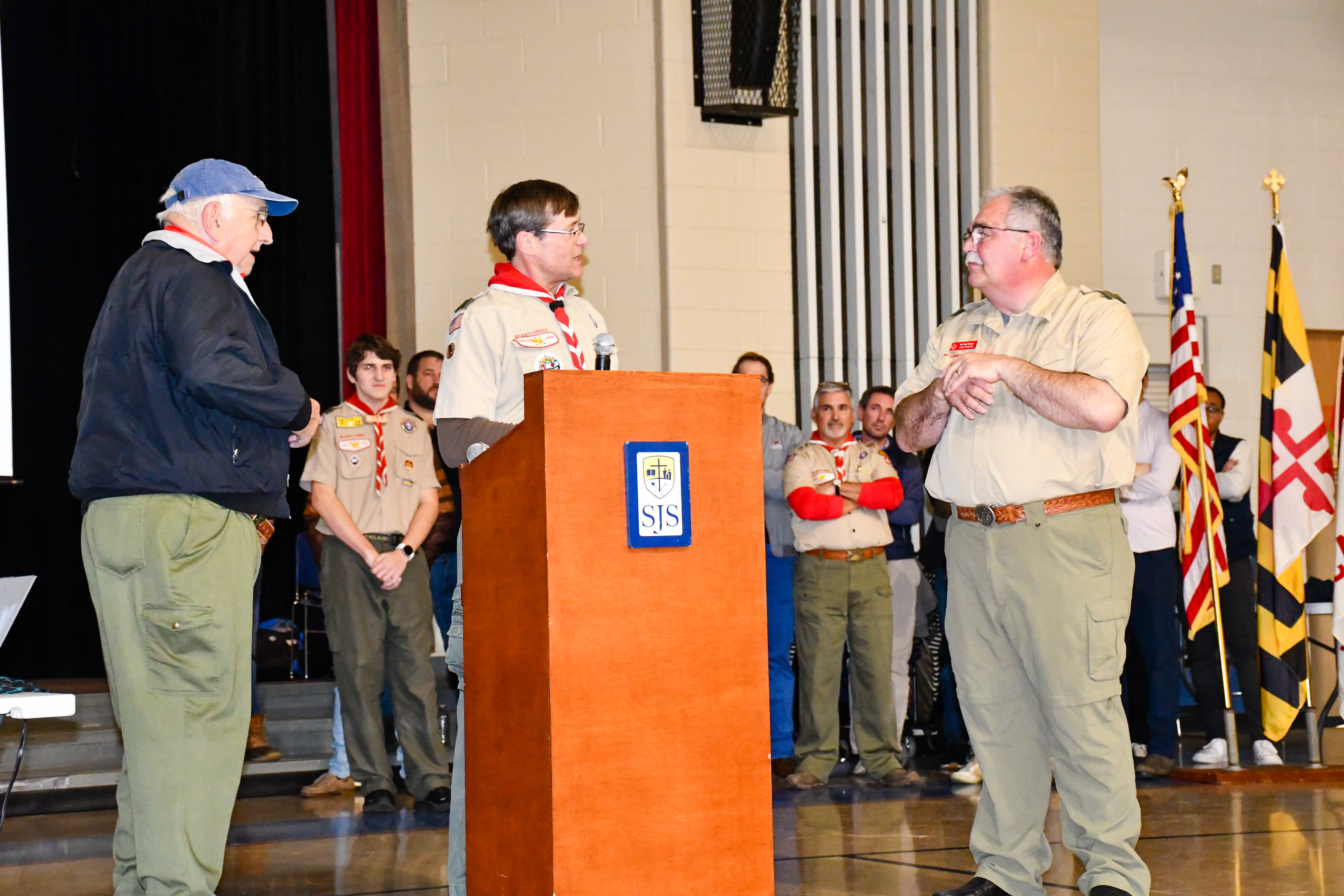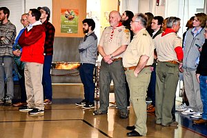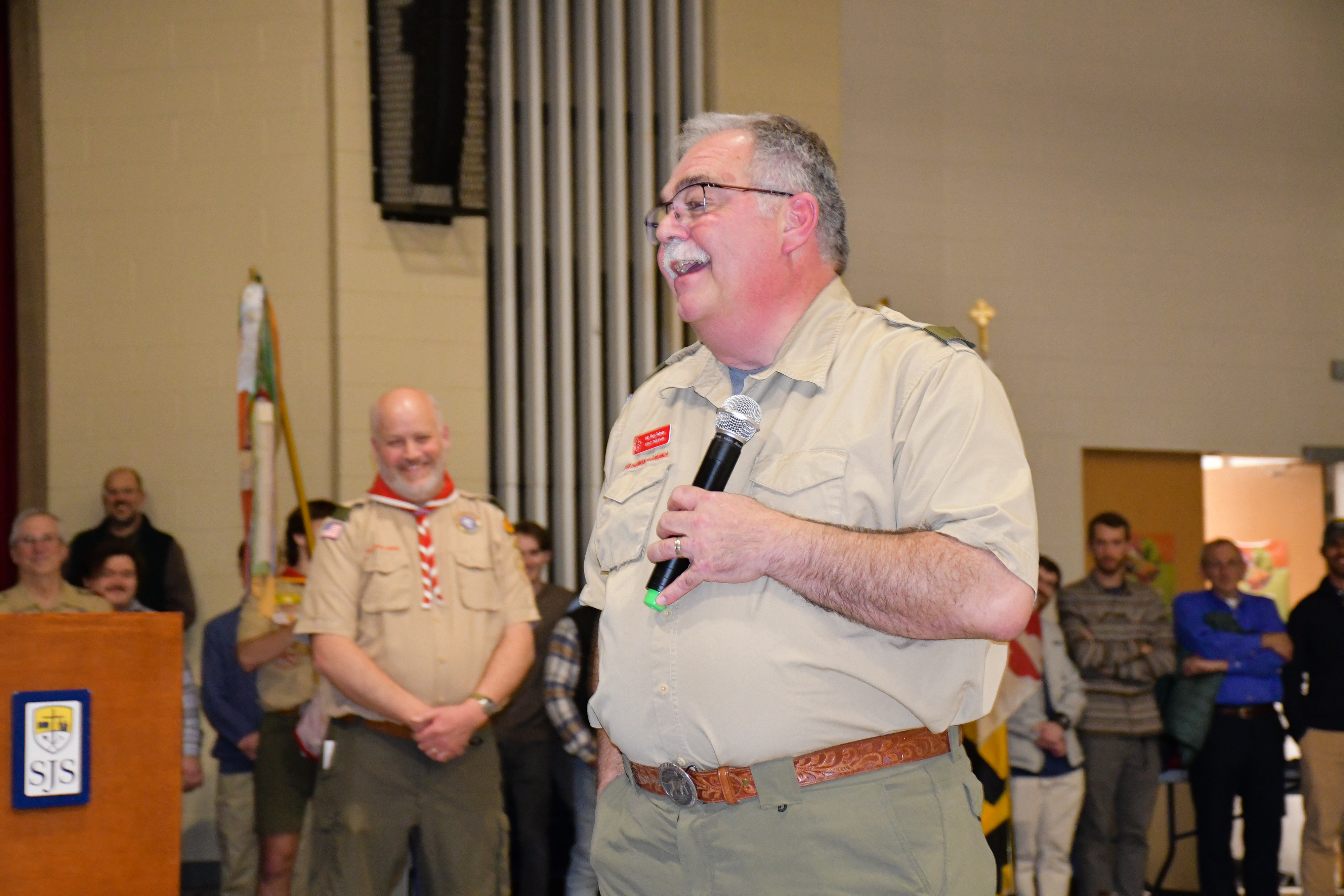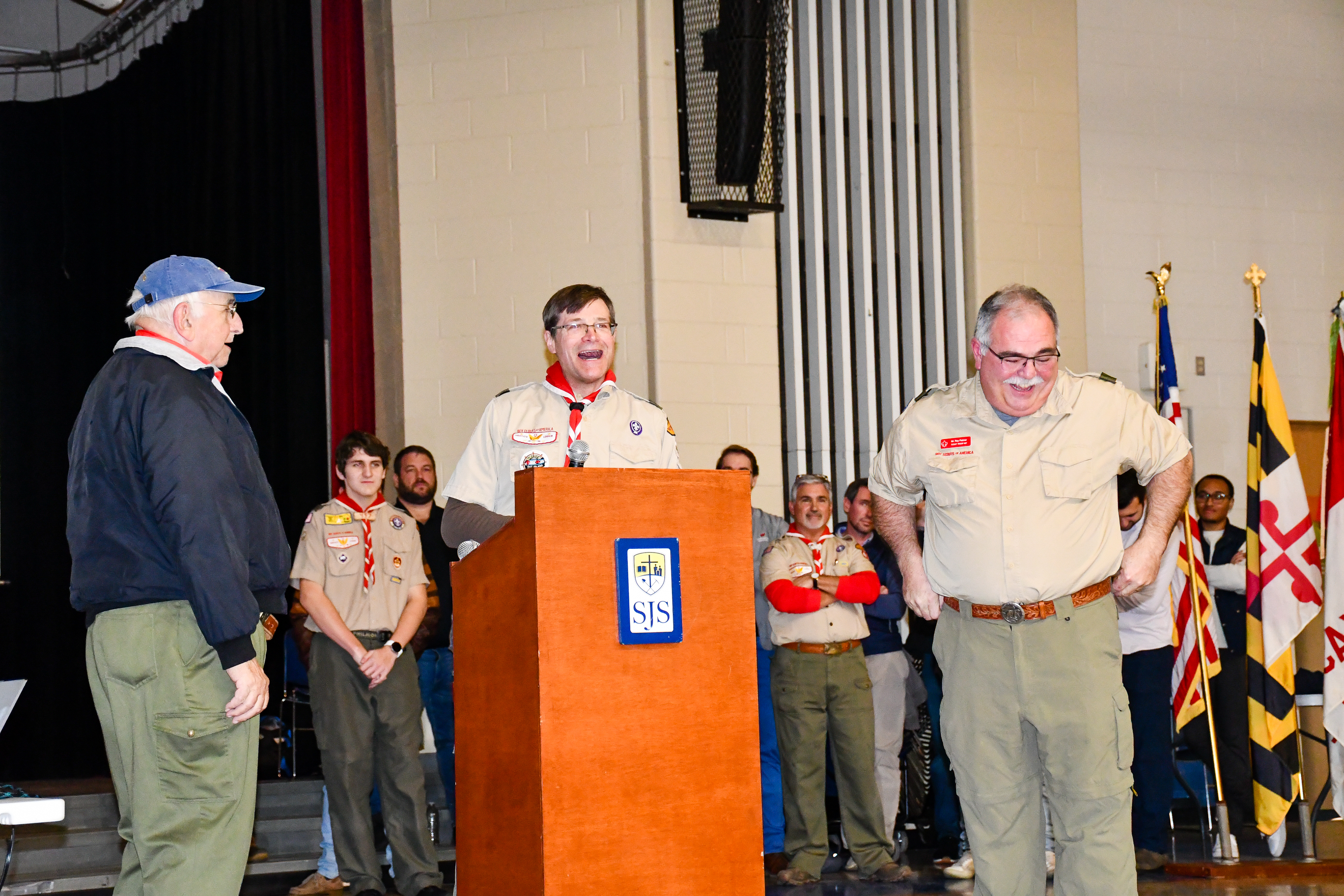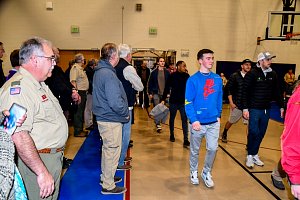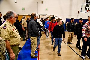 At the first meeting of Troop 497 on 5 January 2023 Ray Palmer passed the Scoutmaster torch to Brad Boutilier. Mr. Palmer became the Scoutmaster of Troop 497 on 18 November 1982 - more than 40 years ago! Around 70 of the 210 Scouts to earn the rank of Eagle Scout and many former adult leaders came back for this surprise celebration.