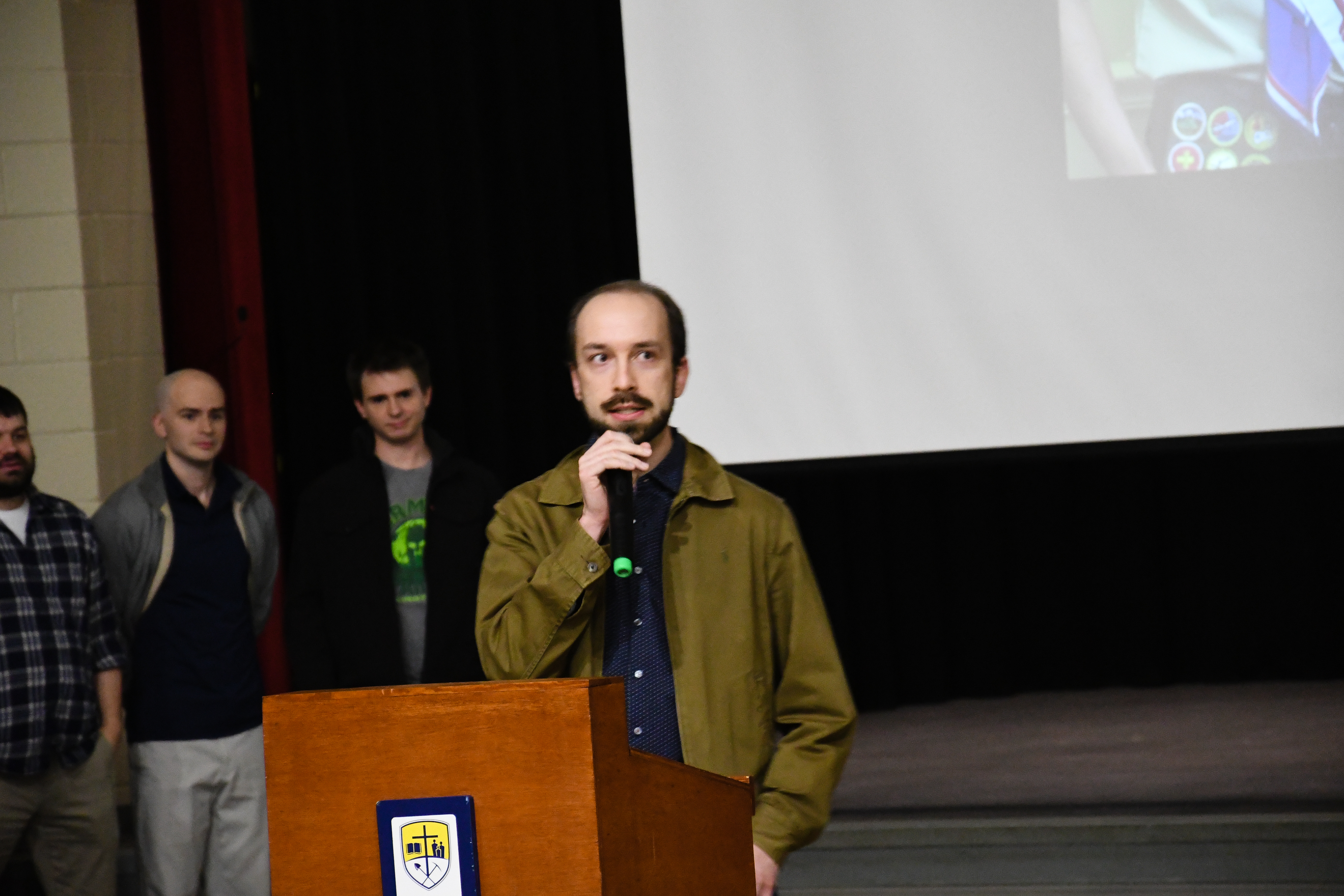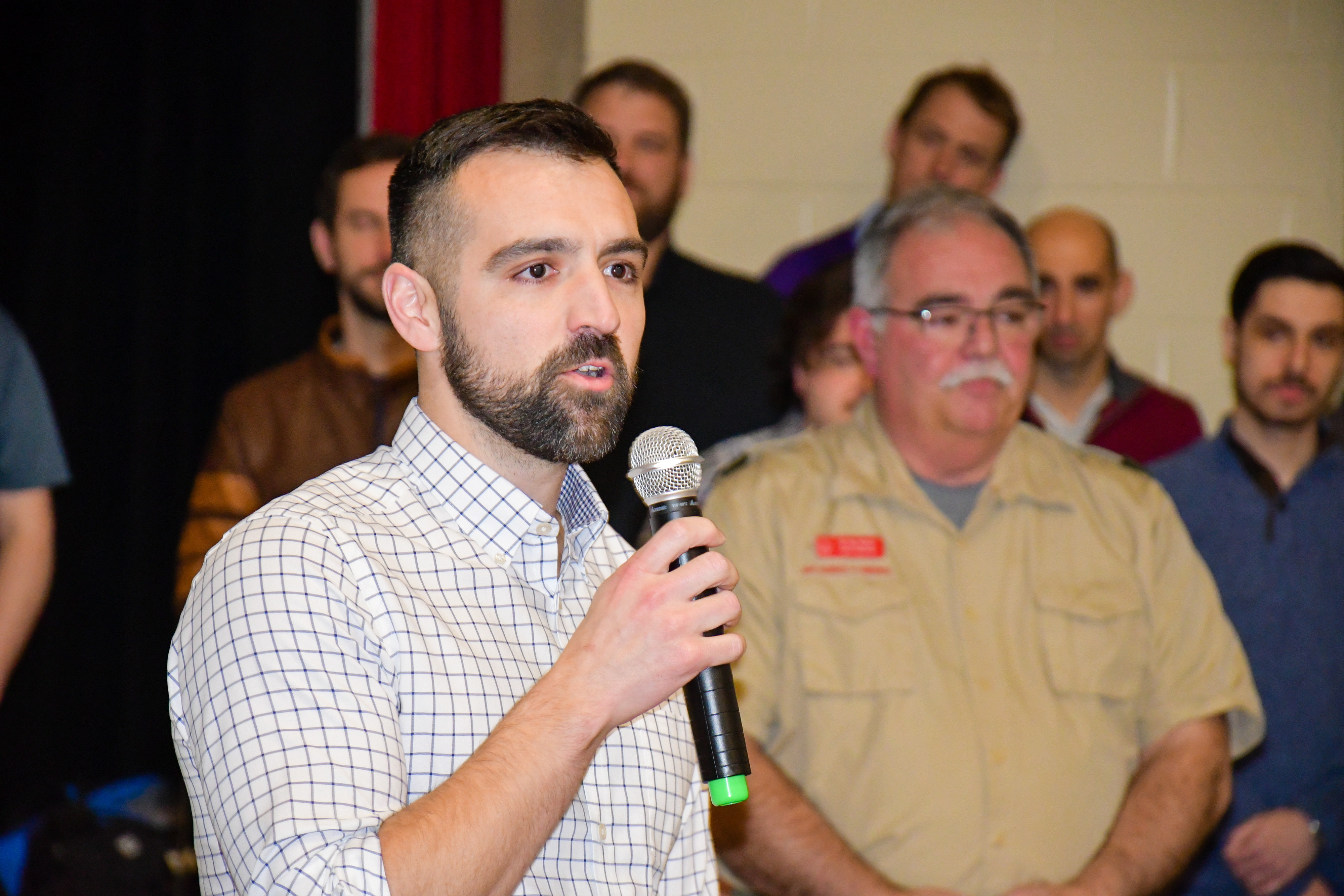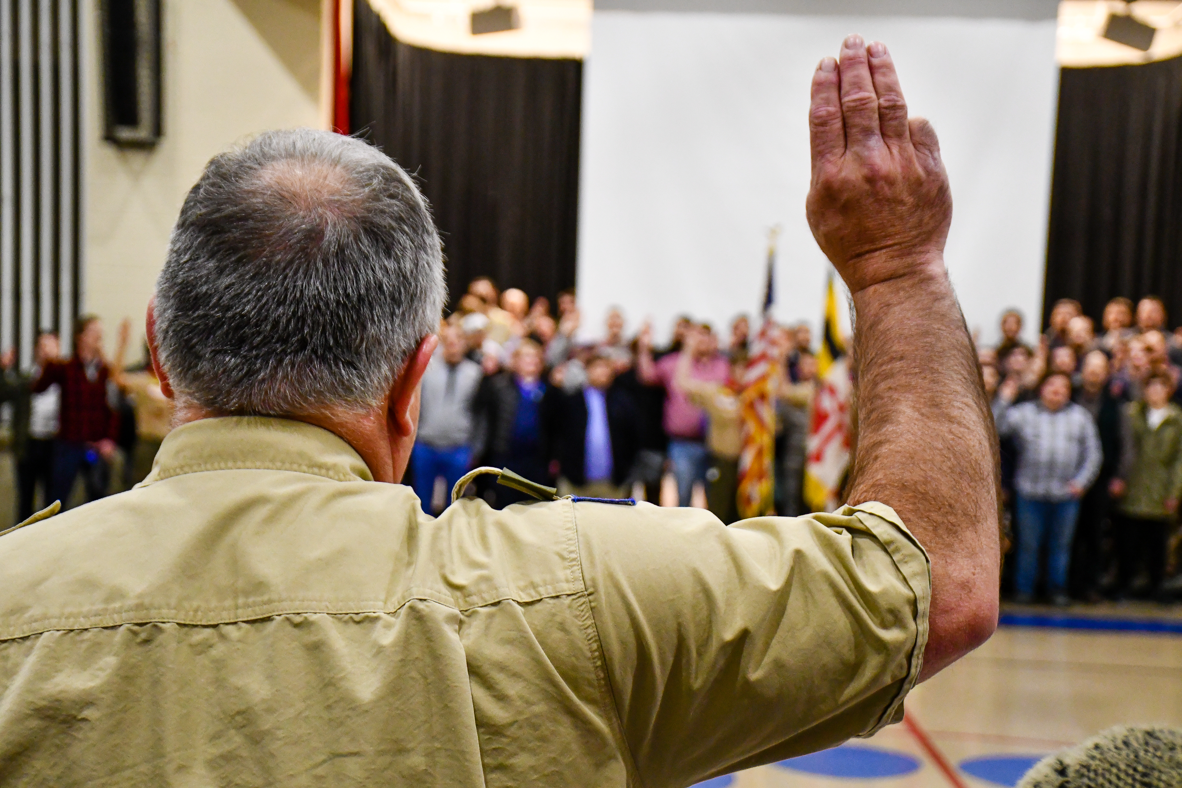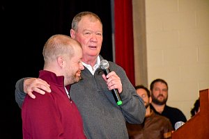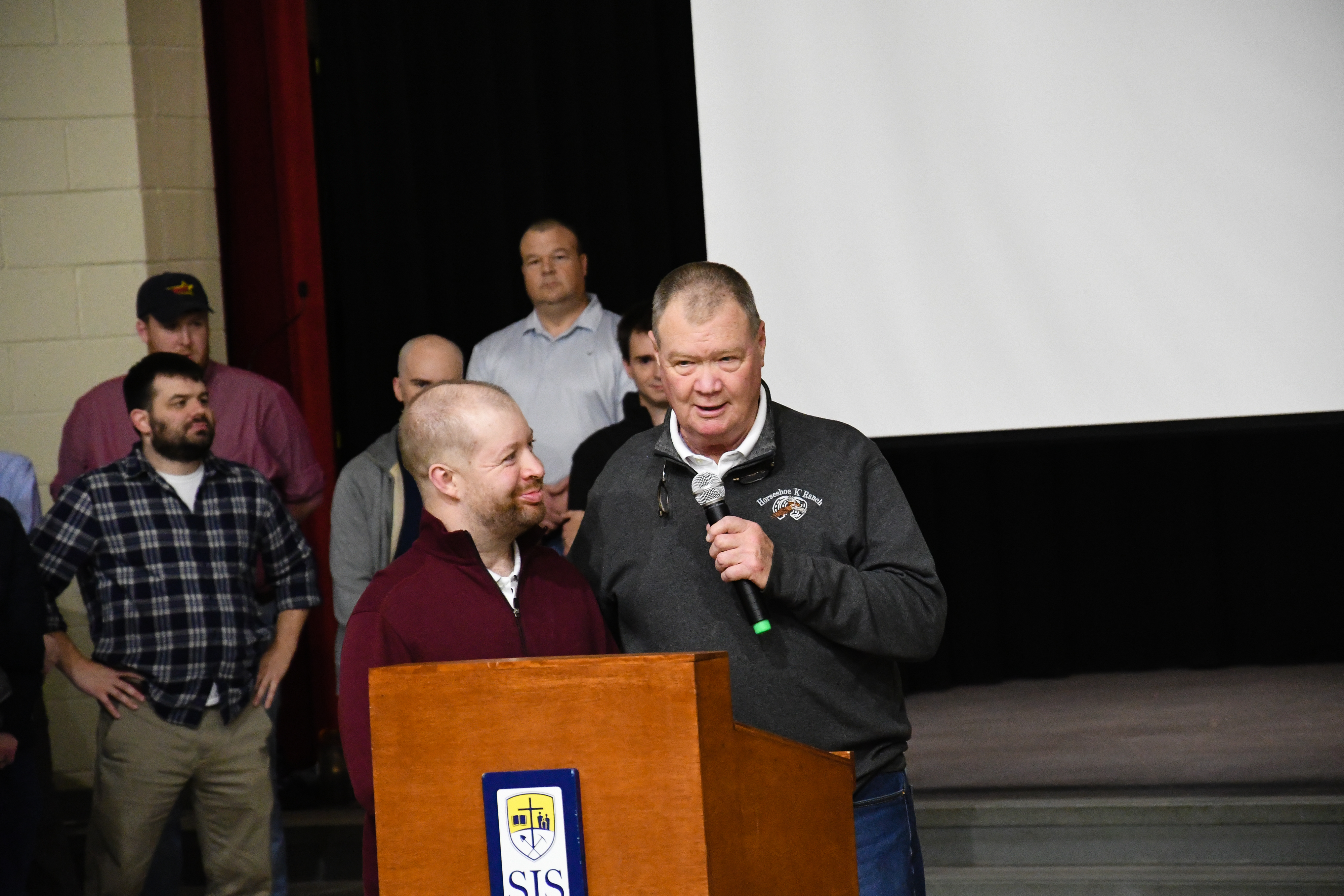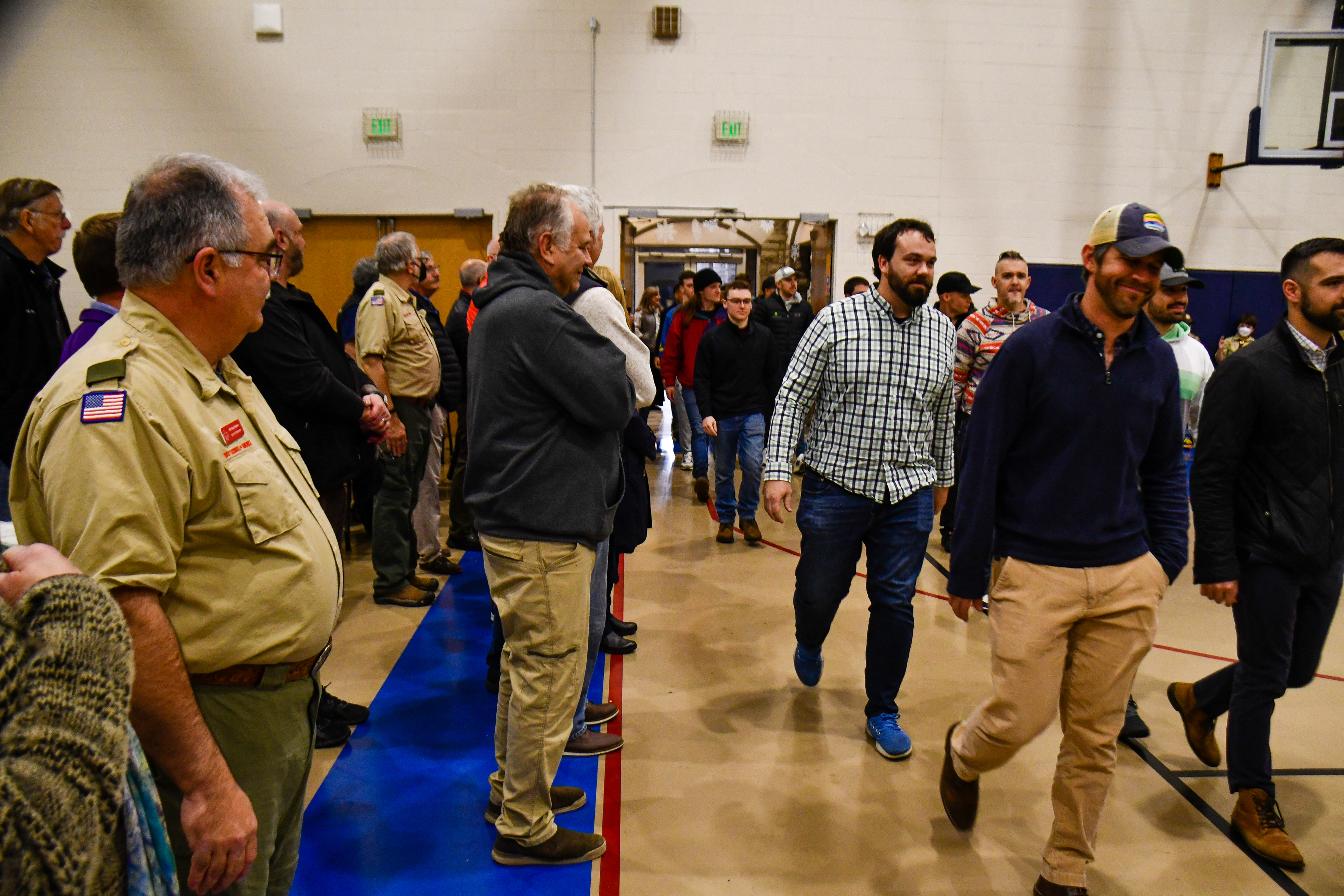 At the first meeting of Troop 497 on 5 January 2023 Ray Palmer passed the Scoutmaster torch to Brad Boutilier. Mr. Palmer became the Scoutmaster of Troop 497 on 18 November 1982 - more than 40 years ago! Around 70 of the 210 Scouts to earn the rank of Eagle Scout and many former adult leaders came back for this surprise celebration.