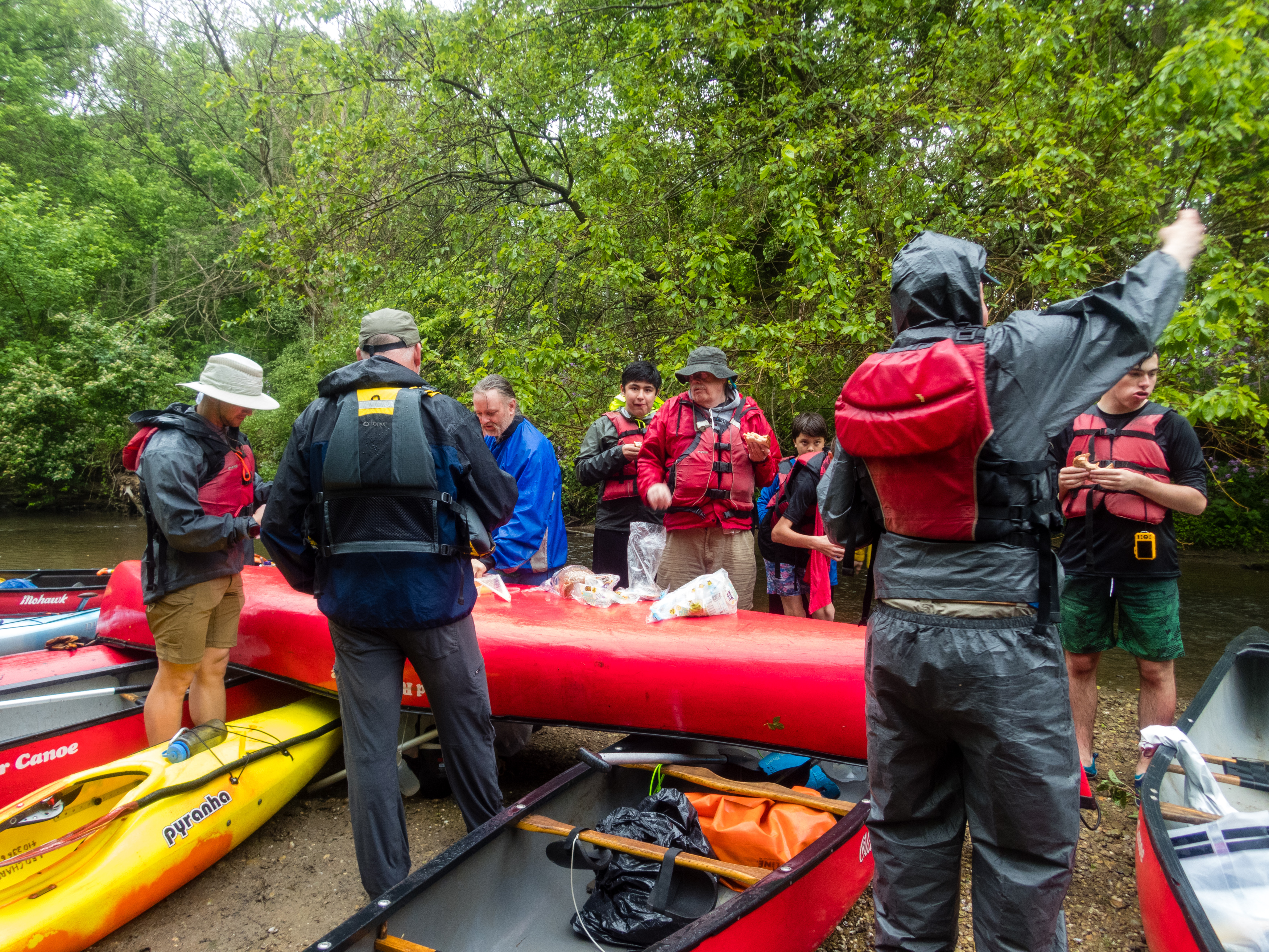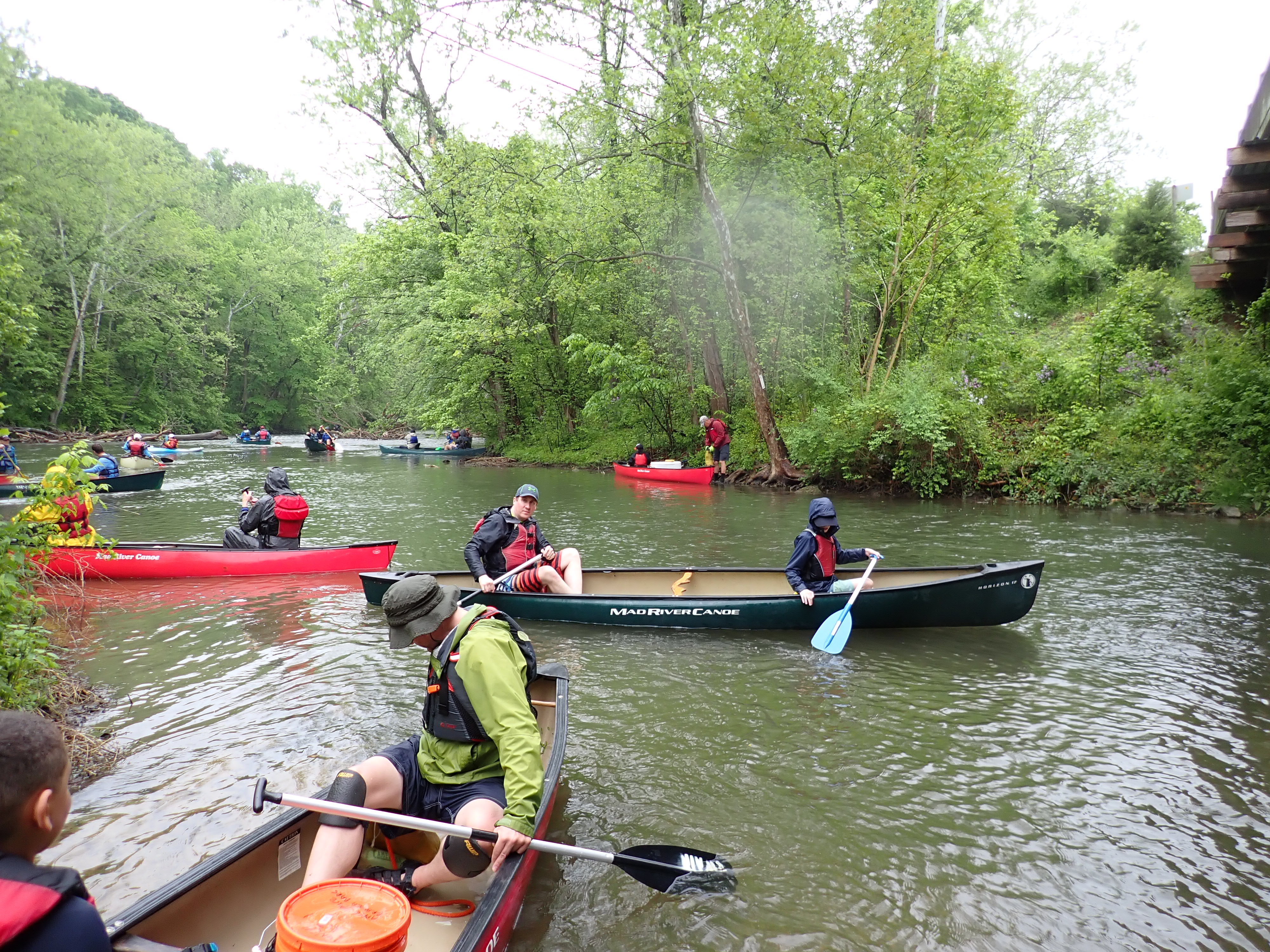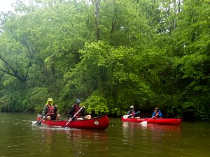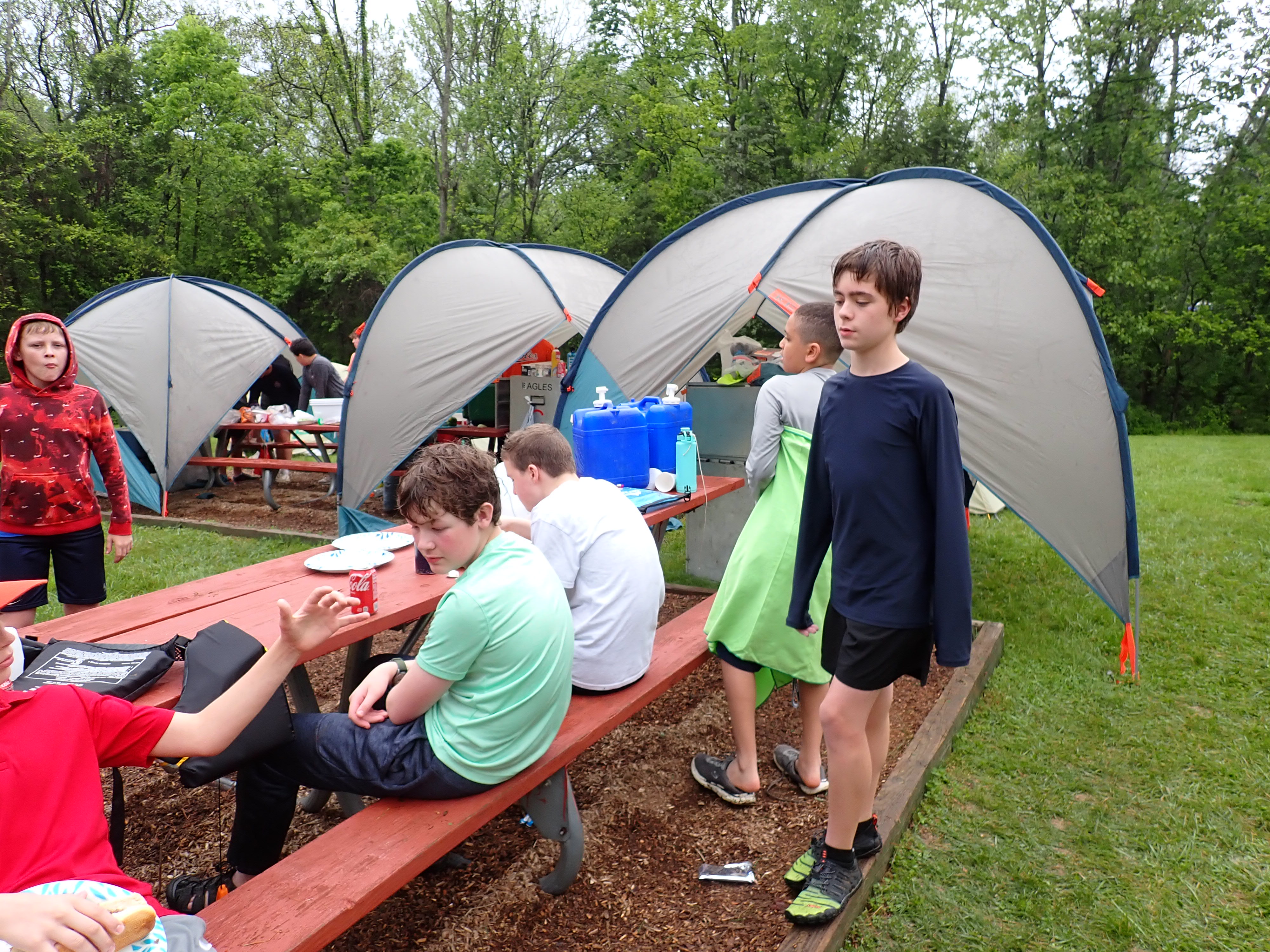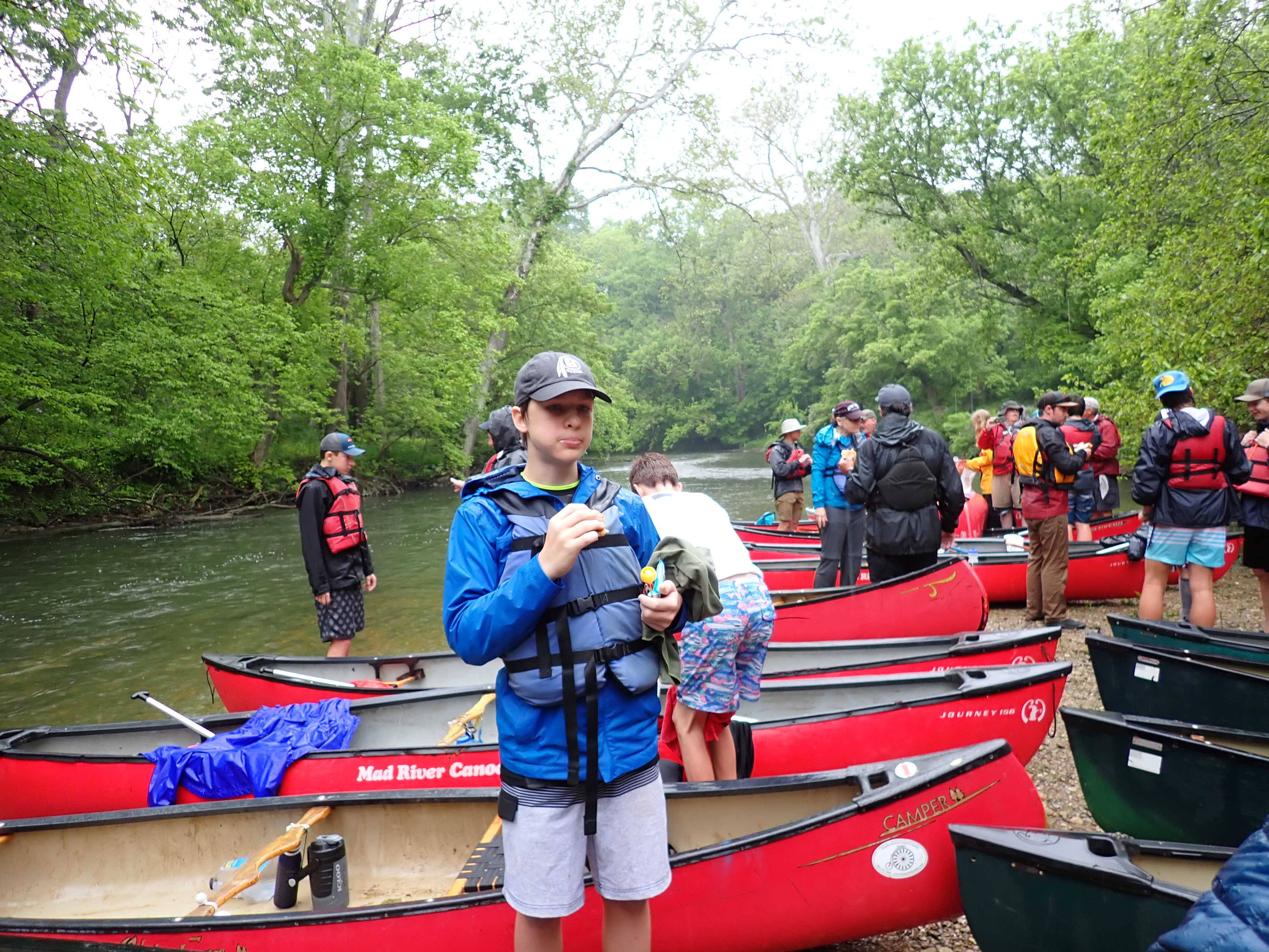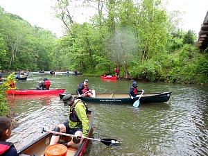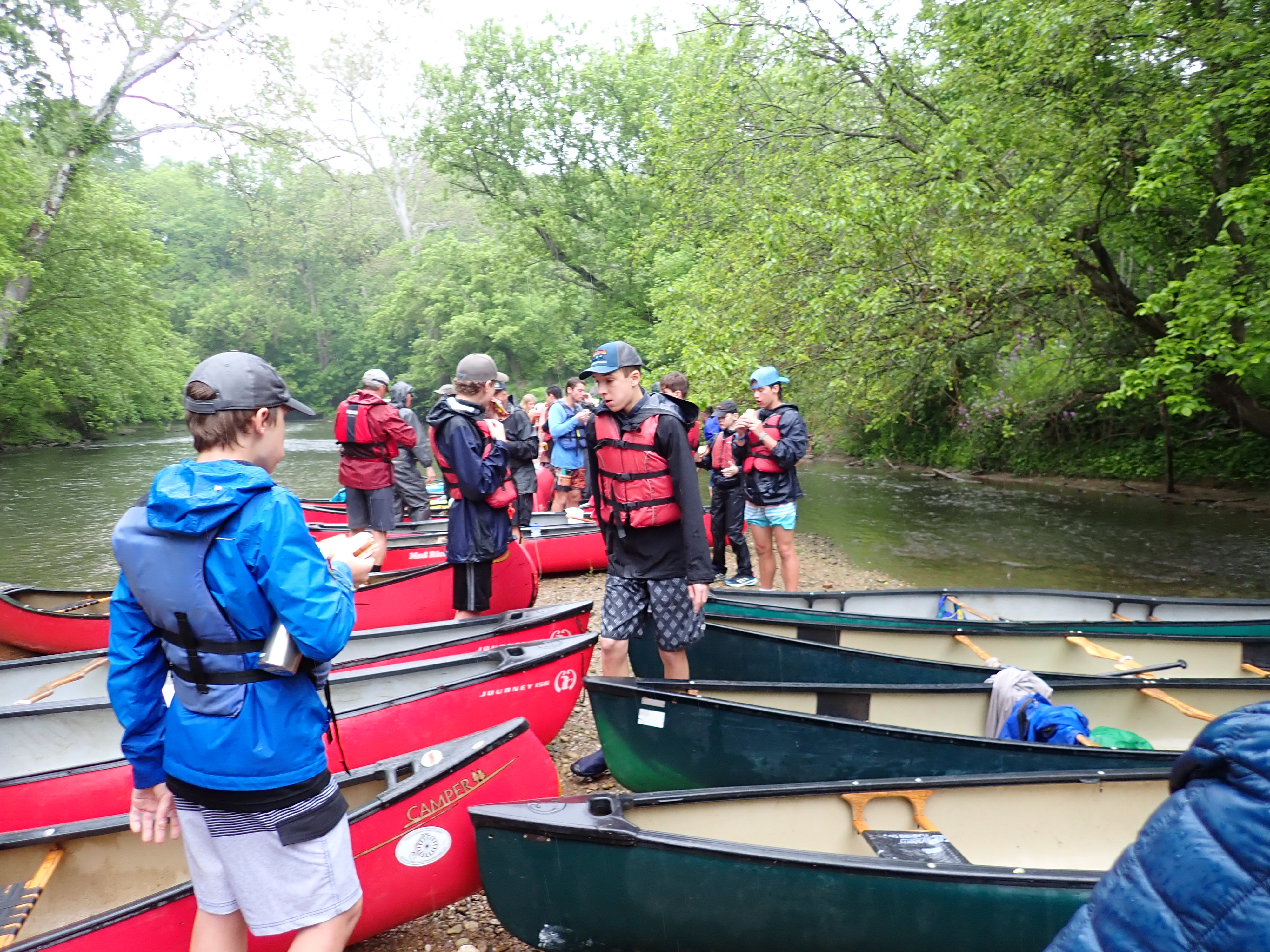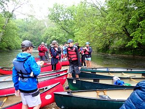Our May 2023 camping trip was to Rohrback Campground and Antietam Creek in Sharpsburg, MD. We arrive on a nice dry evening on Friday, 12 May 2023 and set up our camp in the dark. The weather prediction for Saturday was rain on and off during the day. Fortunately the rain mostly held off until after we received canoeing instruction from our outfitter for the day, Antietam Creek Canoe. We paddled from Devils Backbone to Molly's Hole below Burnside Bridge. It rained off an on throughout the day but it didn't really matter. We were wet anyways. We completed another successful canoe trip for Troop 497!