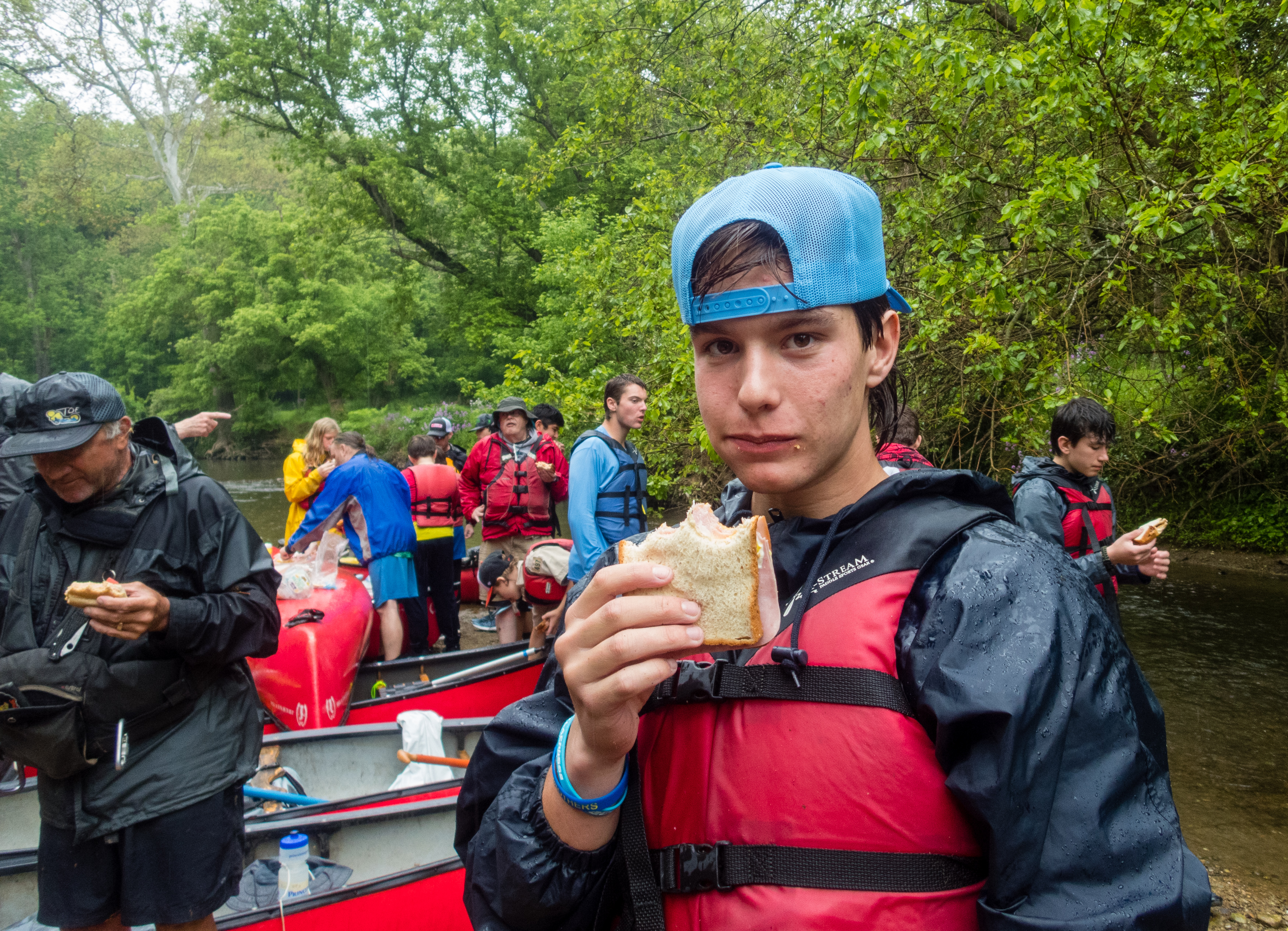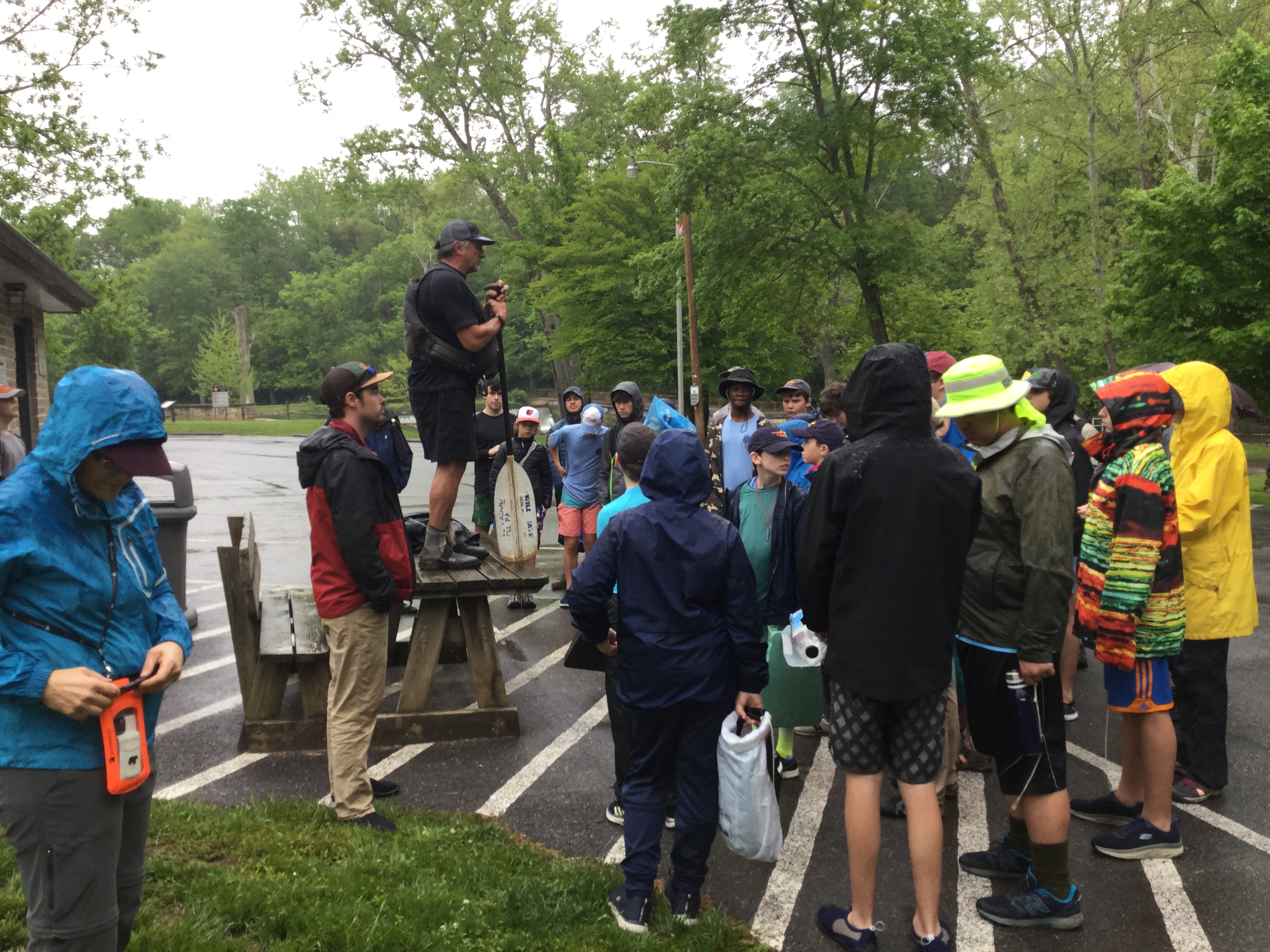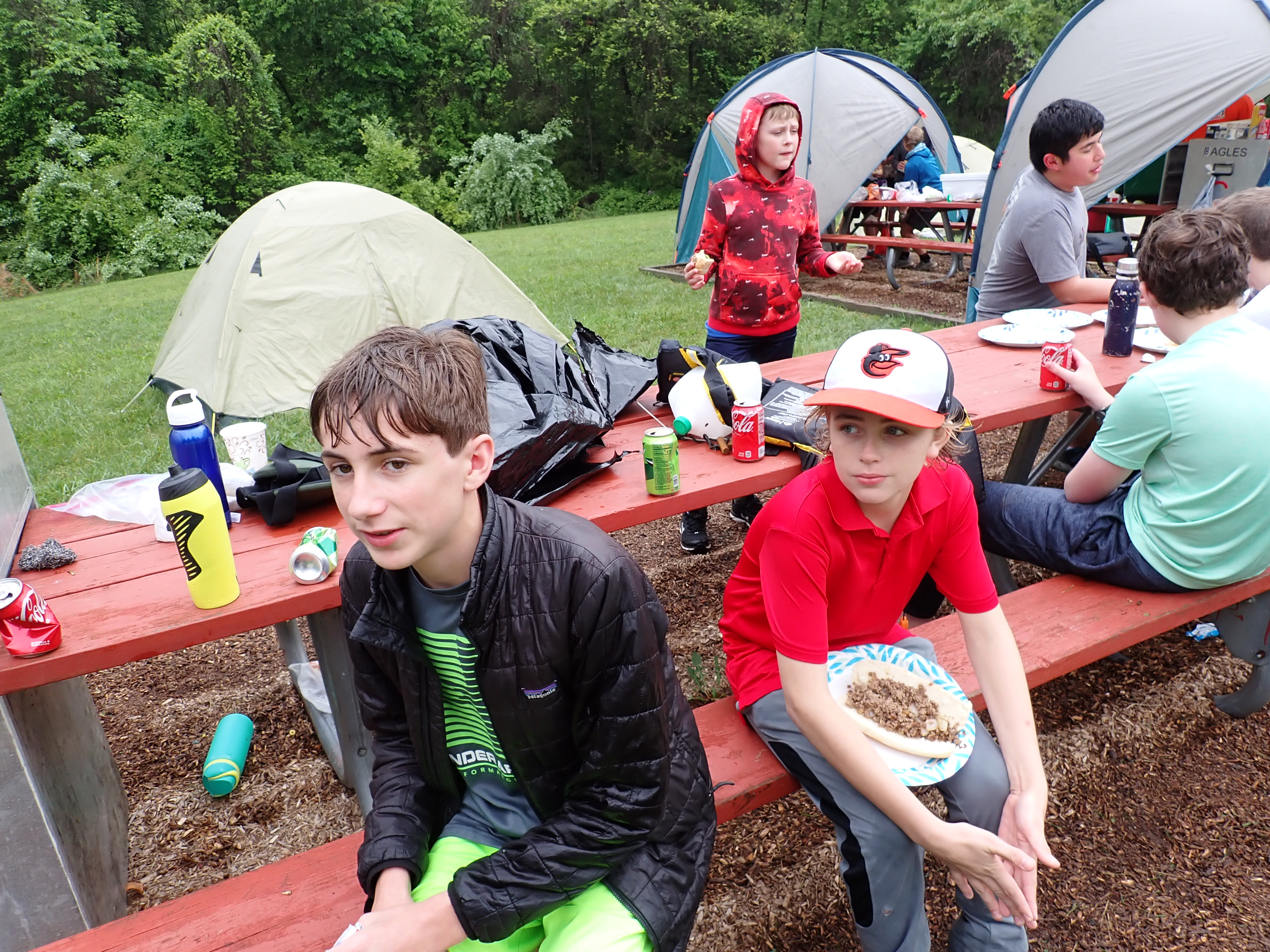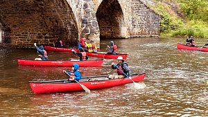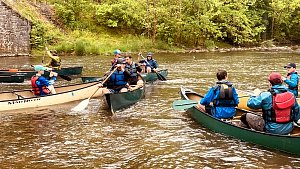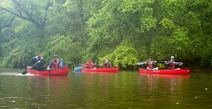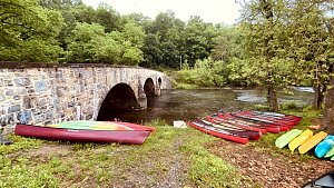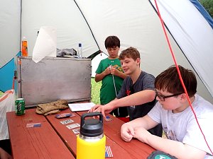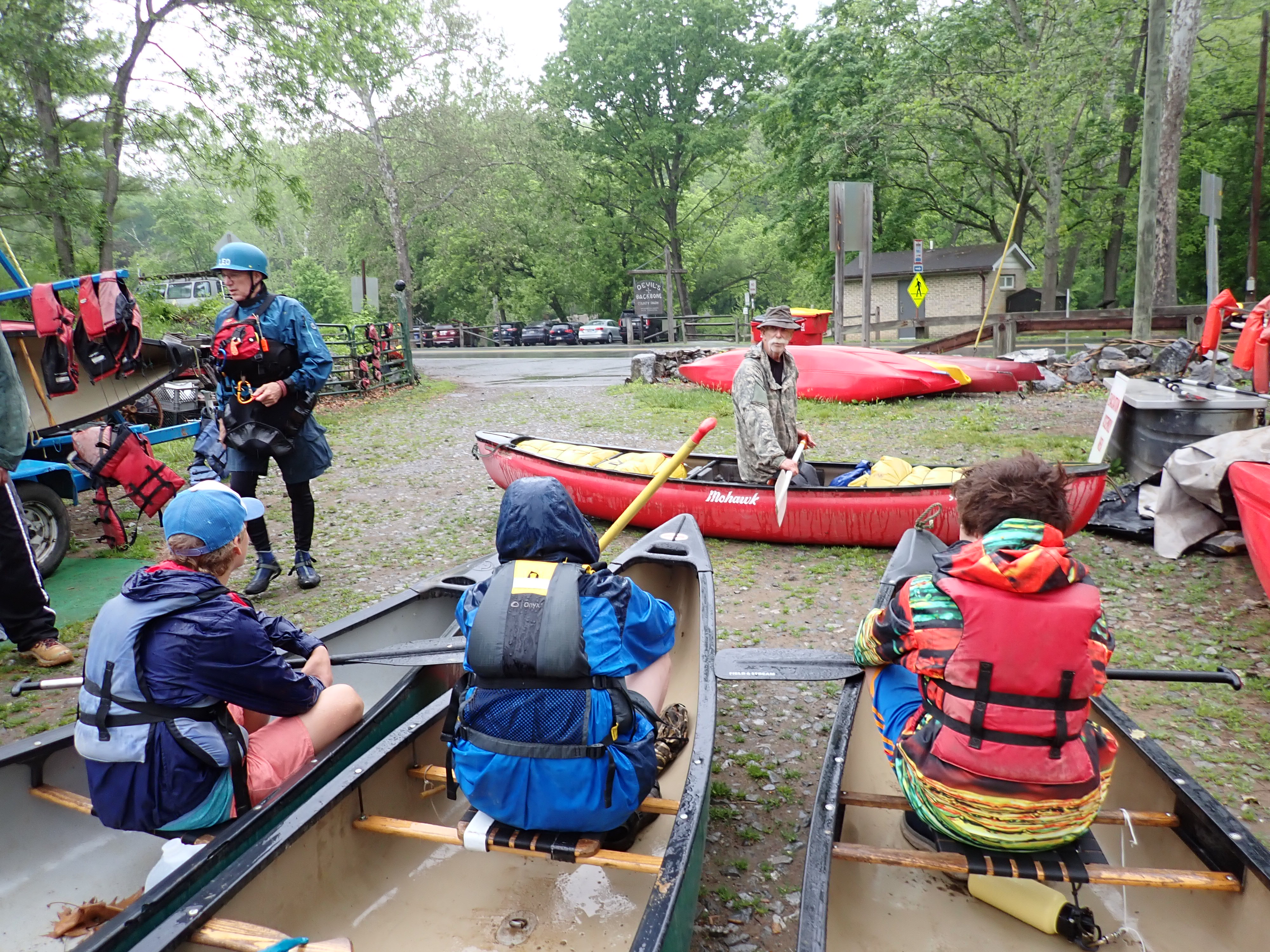 Our May 2023 camping trip was to Rohrback Campground and Antietam Creek in Sharpsburg, MD. We arrive on a nice dry evening on Friday, 12 May 2023 and set up our camp in the dark. The weather prediction for Saturday was rain on and off during the day. Fortunately the rain mostly held off until after we received canoeing instruction from our outfitter for the day, Antietam Creek Canoe. We paddled from Devils Backbone to Molly's Hole below Burnside Bridge. It rained off an on throughout the day but it didn't really matter. We were wet anyways. We completed another successful canoe trip for Troop 497!