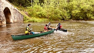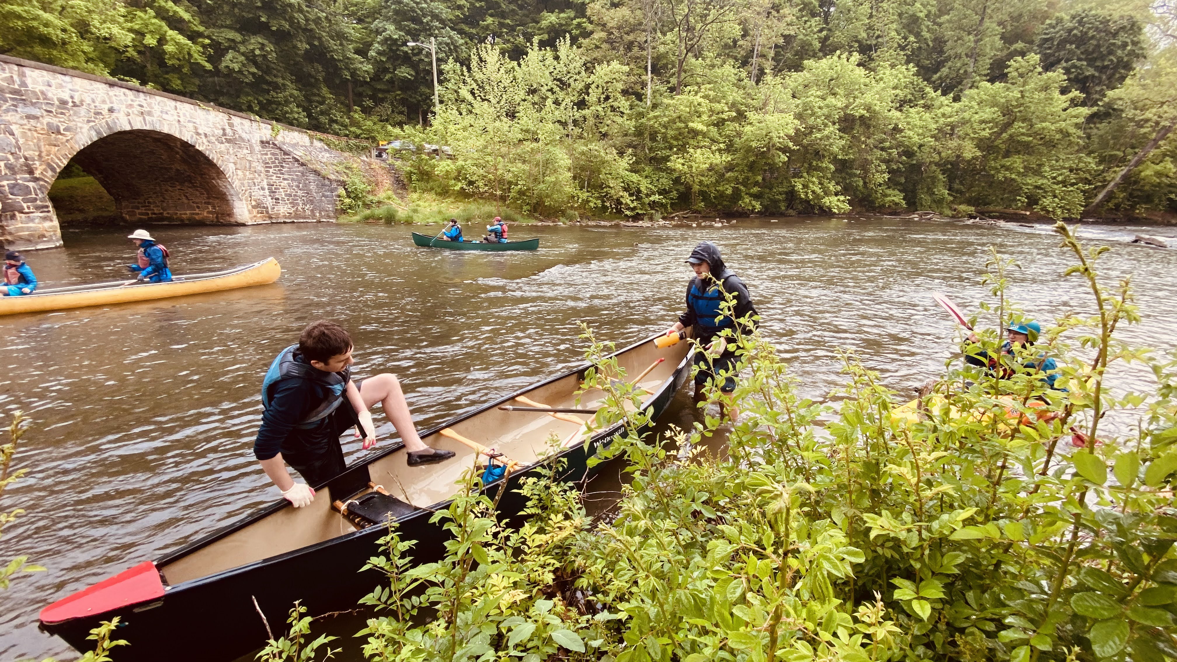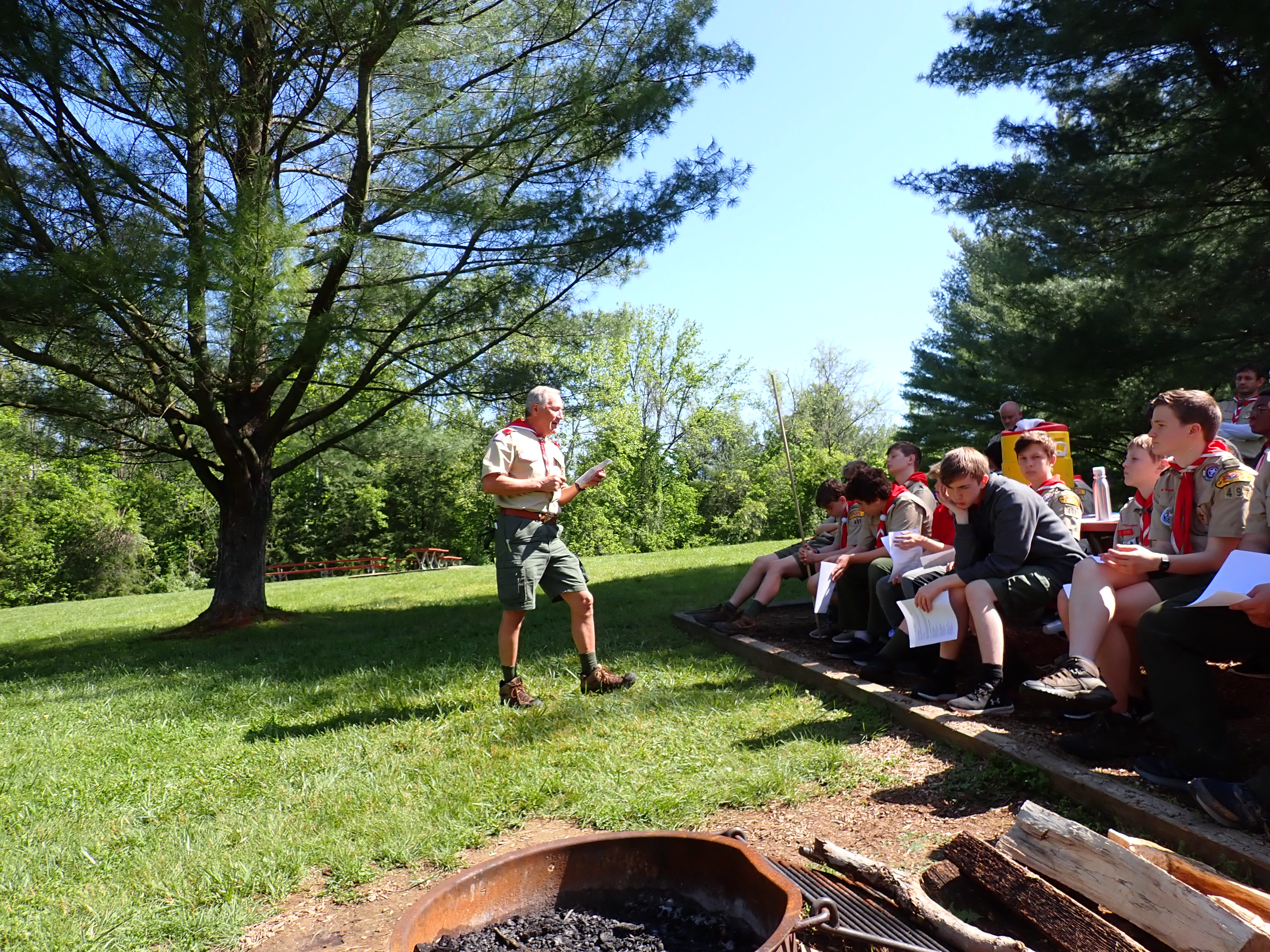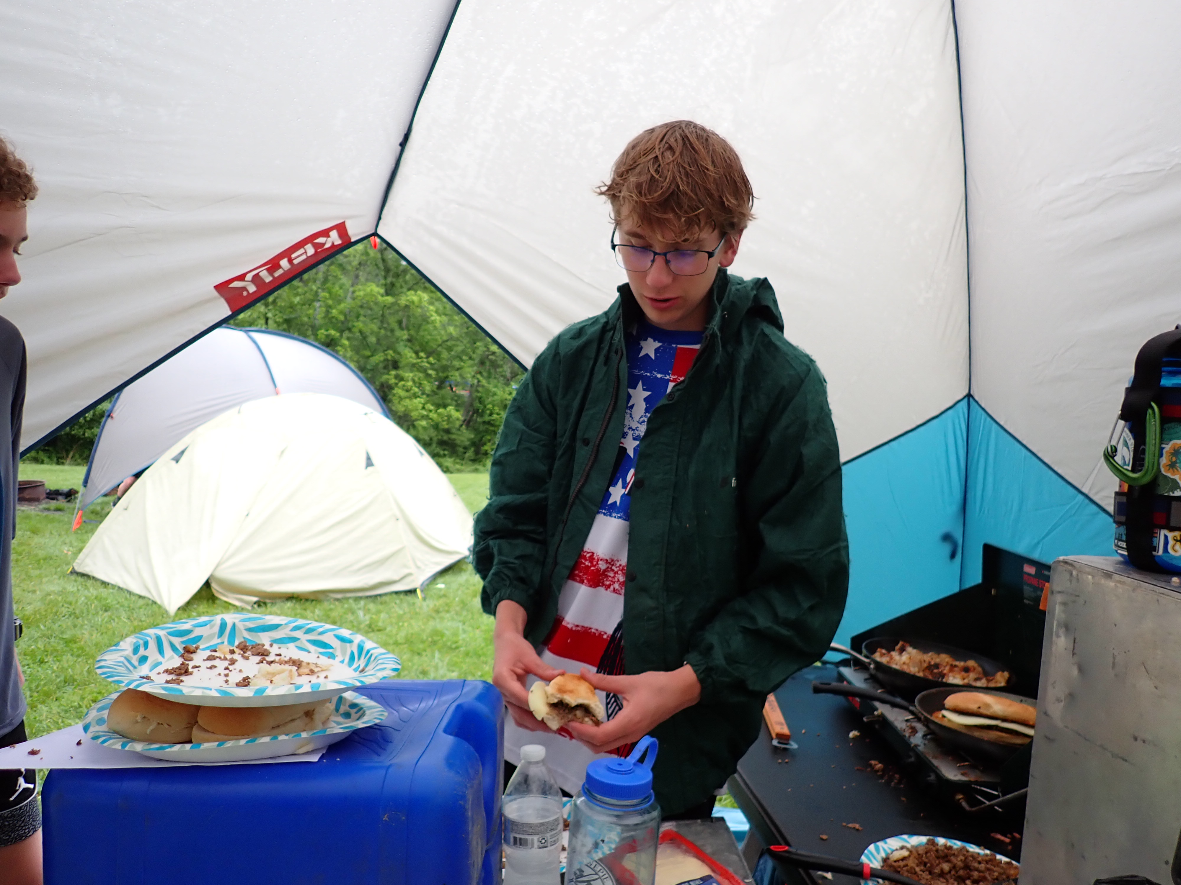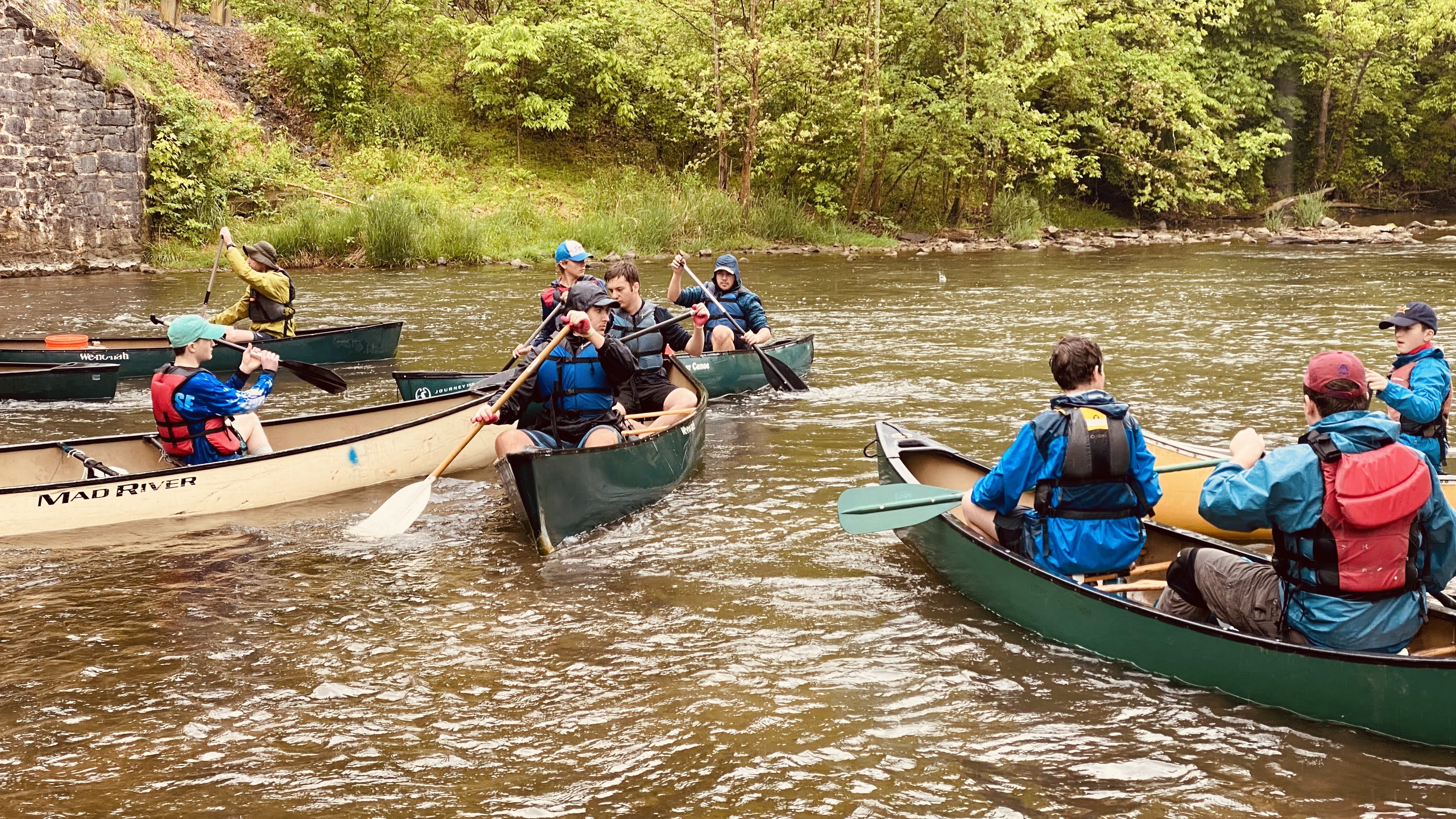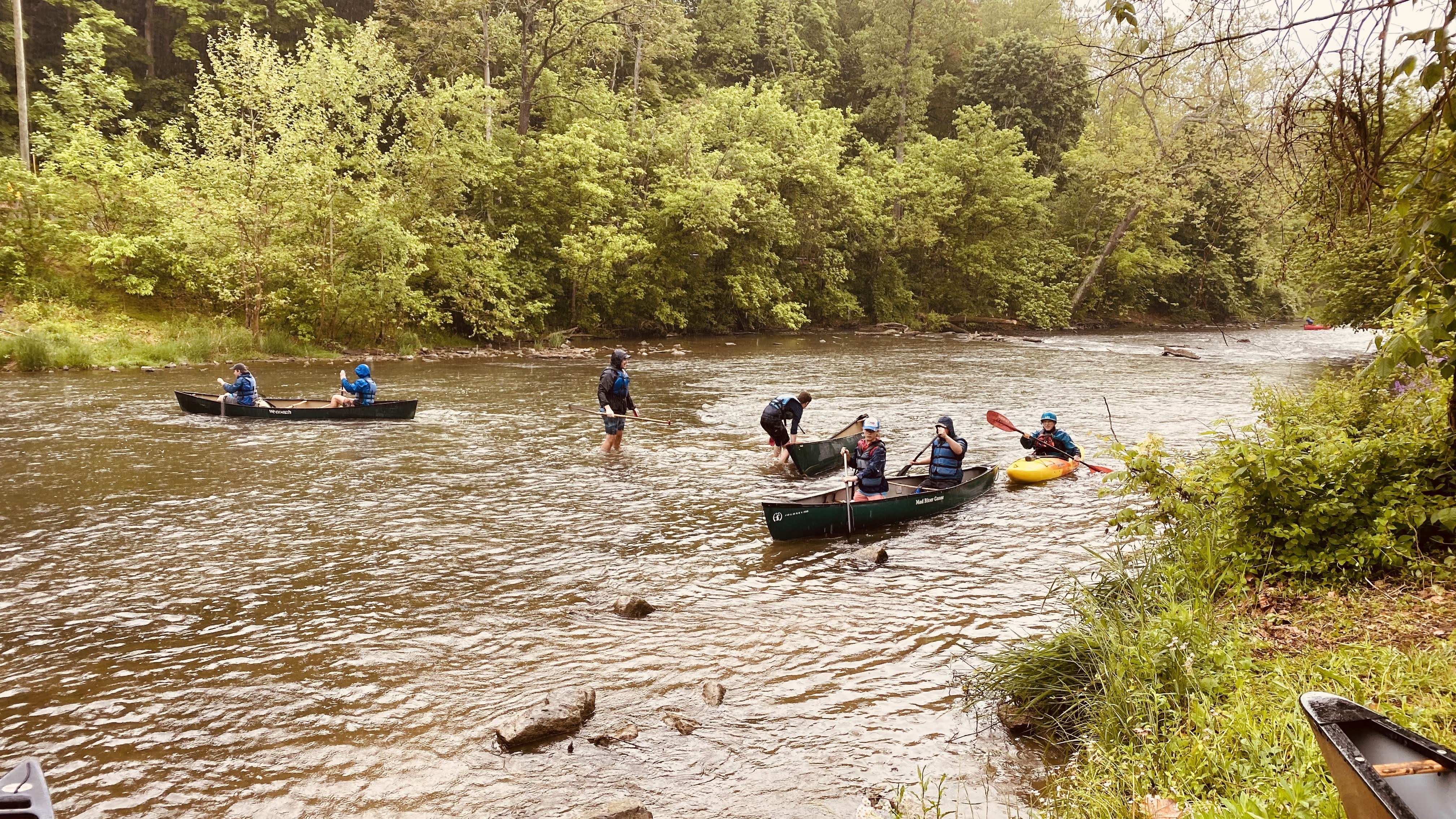 Our May 2023 camping trip was to Rohrback Campground and Antietam Creek in Sharpsburg, MD. We arrive on a nice dry evening on Friday, 12 May 2023 and set up our camp in the dark. The weather prediction for Saturday was rain on and off during the day. Fortunately the rain mostly held off until after we received canoeing instruction from our outfitter for the day, Antietam Creek Canoe. We paddled from Devils Backbone to Molly's Hole below Burnside Bridge. It rained off an on throughout the day but it didn't really matter. We were wet anyways. We completed another successful canoe trip for Troop 497!
