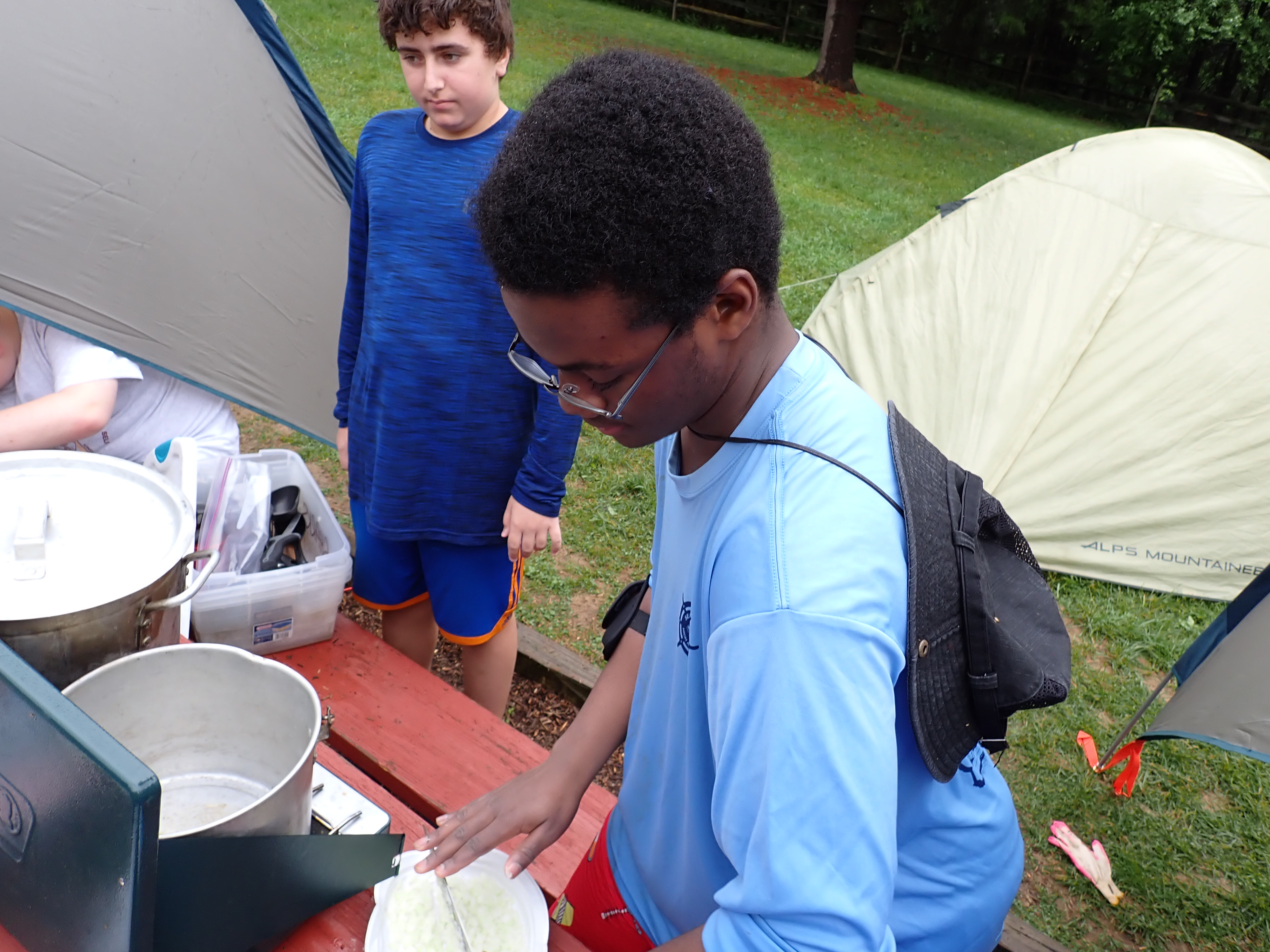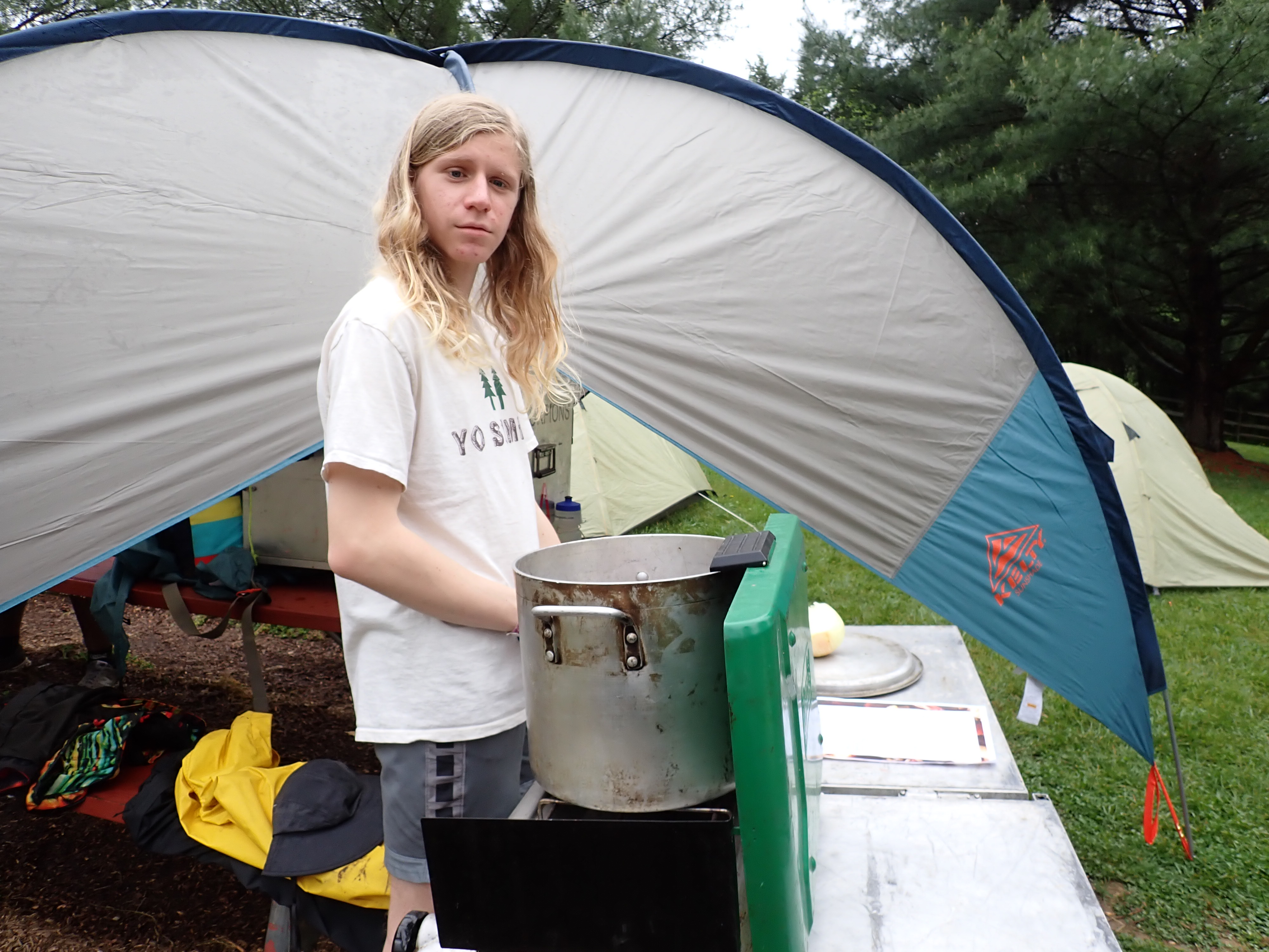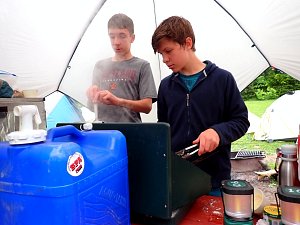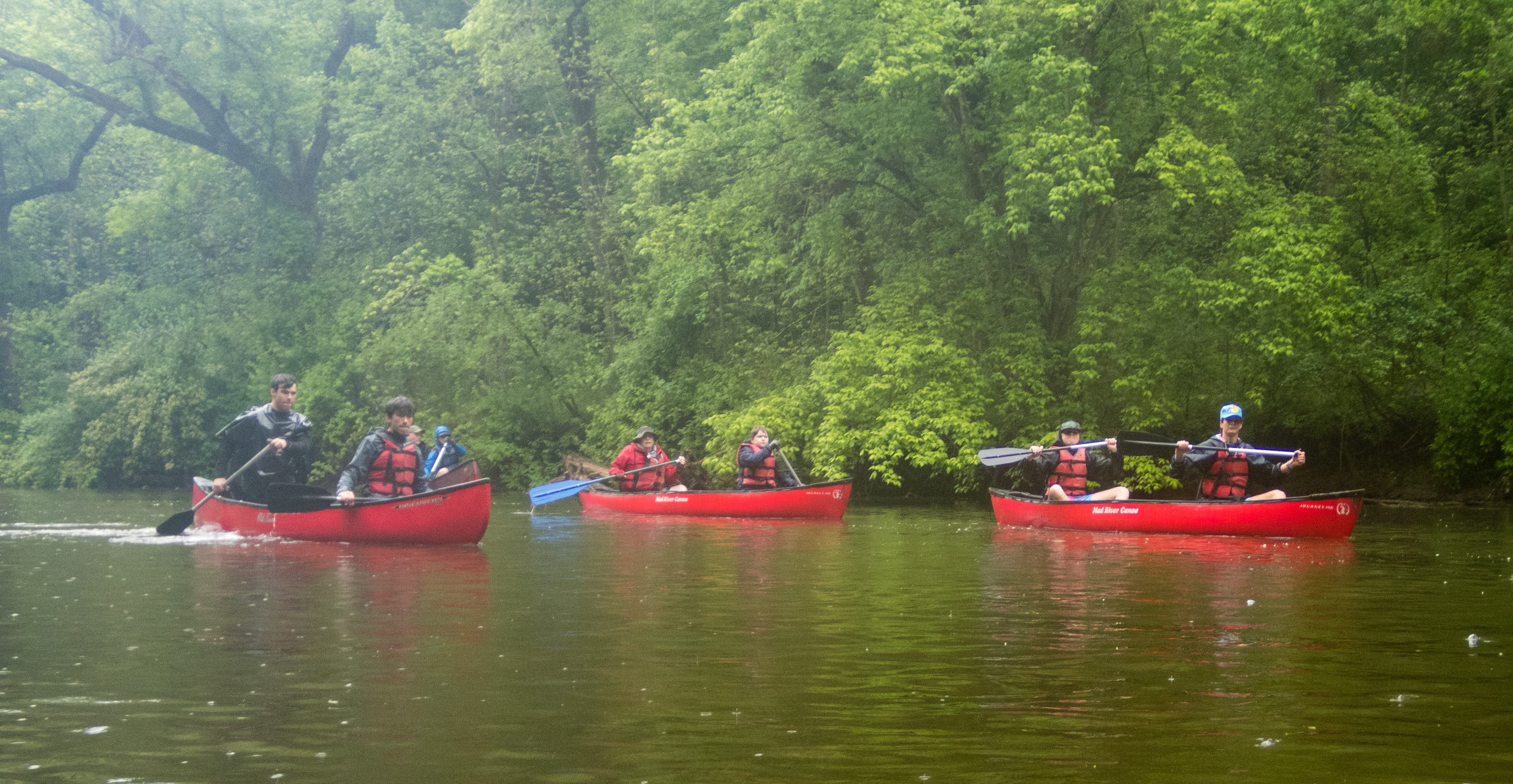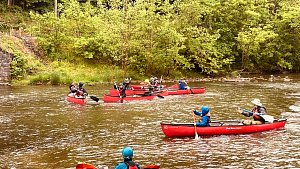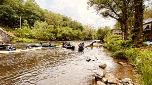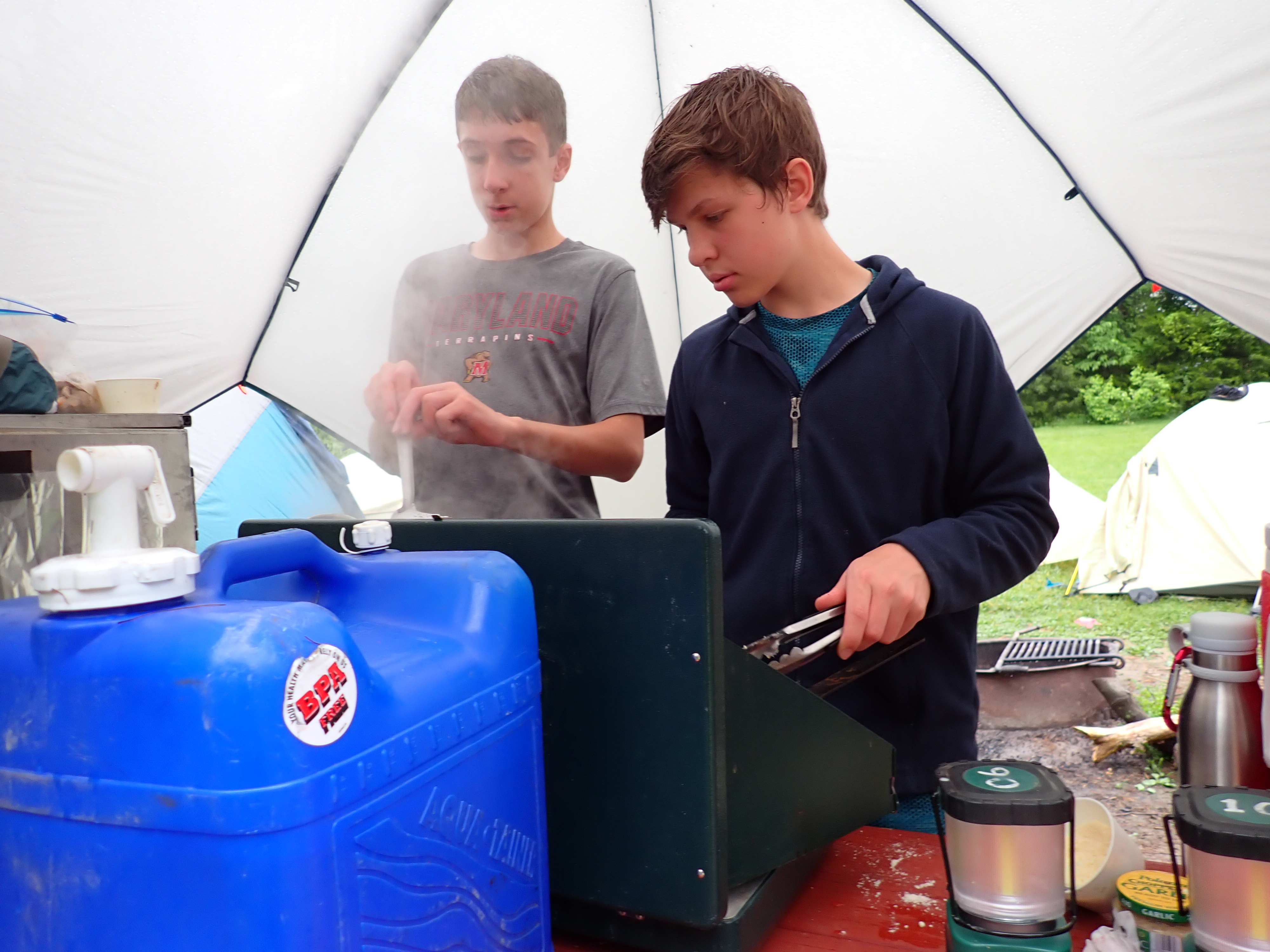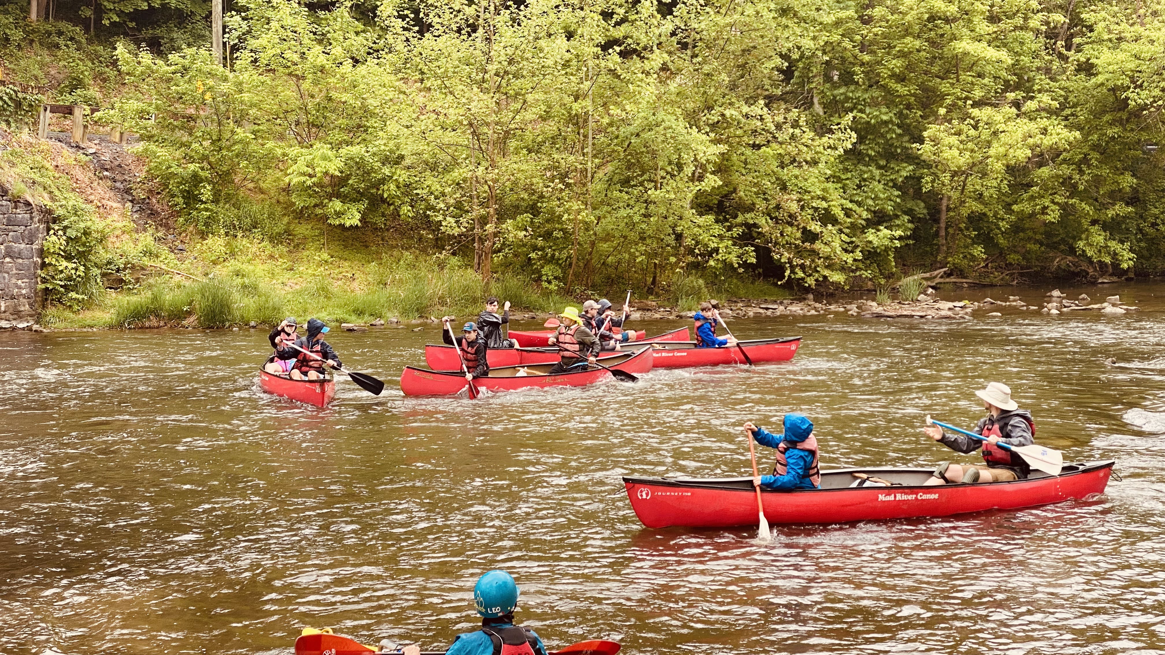 Our May 2023 camping trip was to Rohrback Campground and Antietam Creek in Sharpsburg, MD. We arrive on a nice dry evening on Friday, 12 May 2023 and set up our camp in the dark. The weather prediction for Saturday was rain on and off during the day. Fortunately the rain mostly held off until after we received canoeing instruction from our outfitter for the day, Antietam Creek Canoe. We paddled from Devils Backbone to Molly's Hole below Burnside Bridge. It rained off an on throughout the day but it didn't really matter. We were wet anyways. We completed another successful canoe trip for Troop 497!