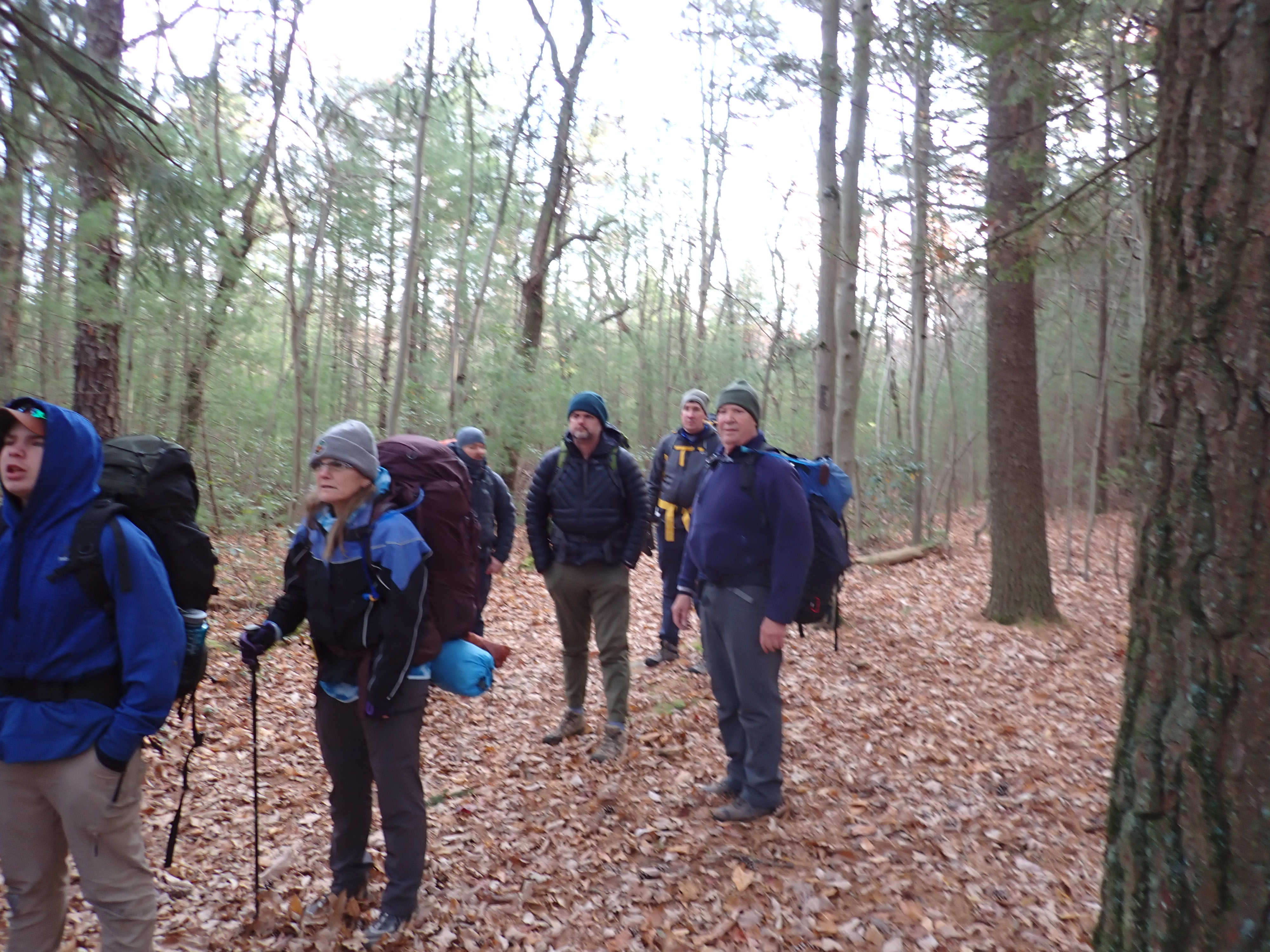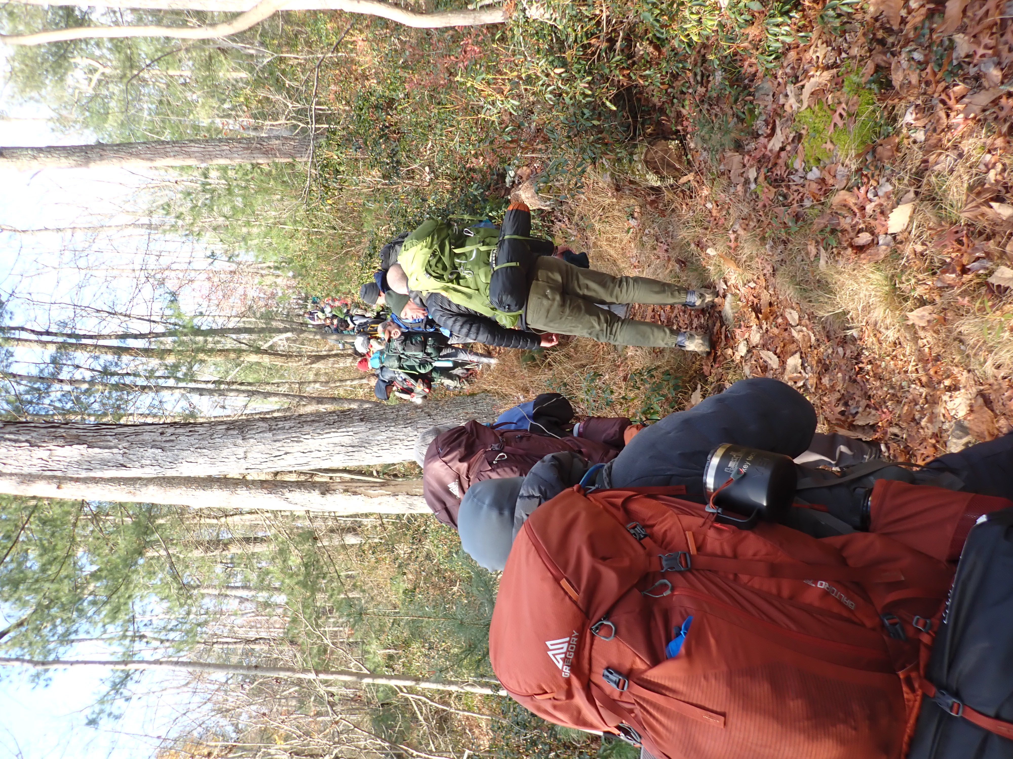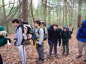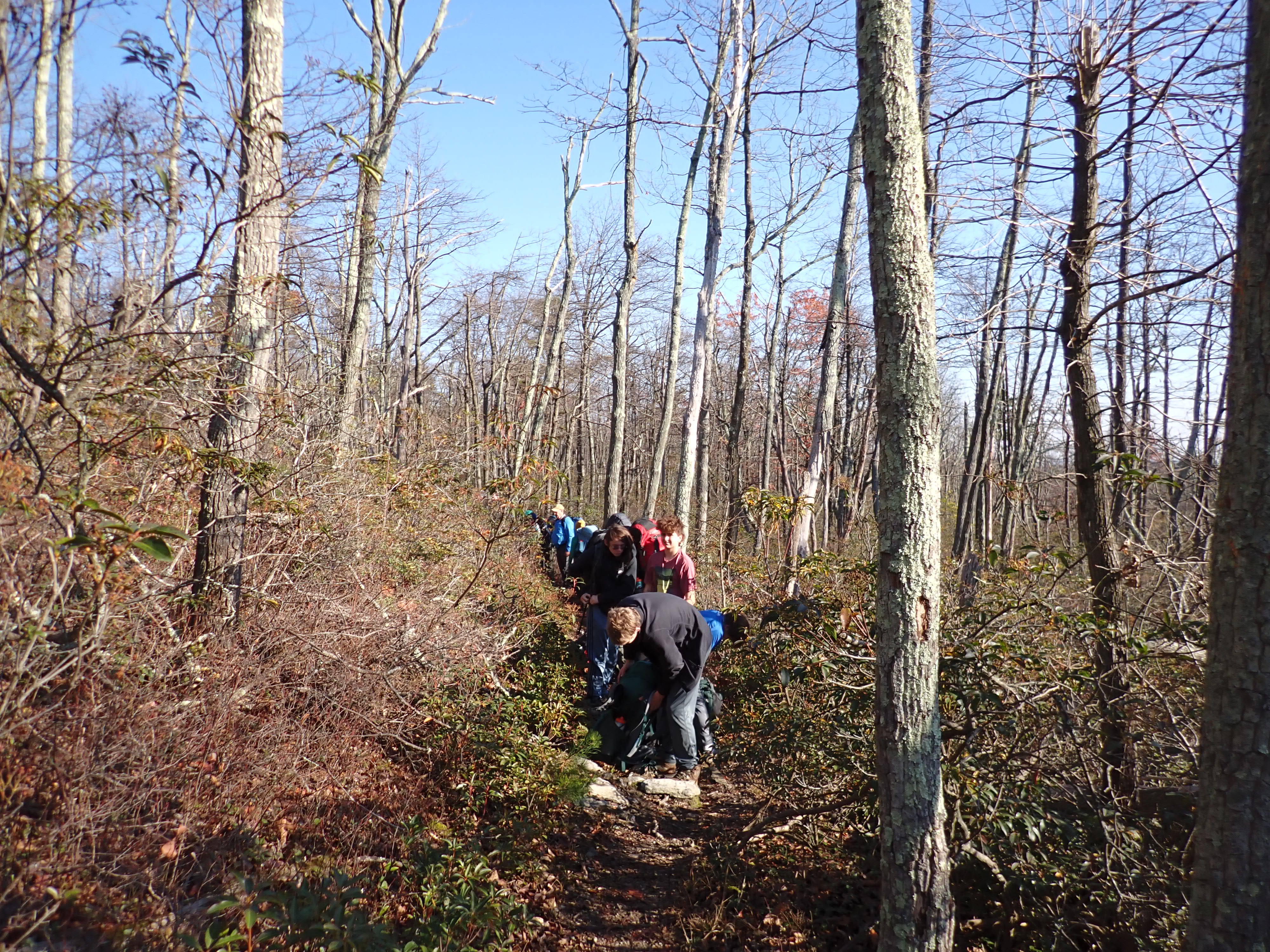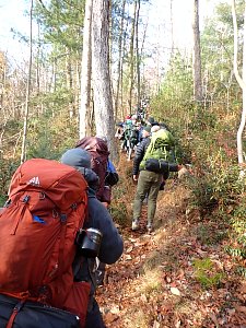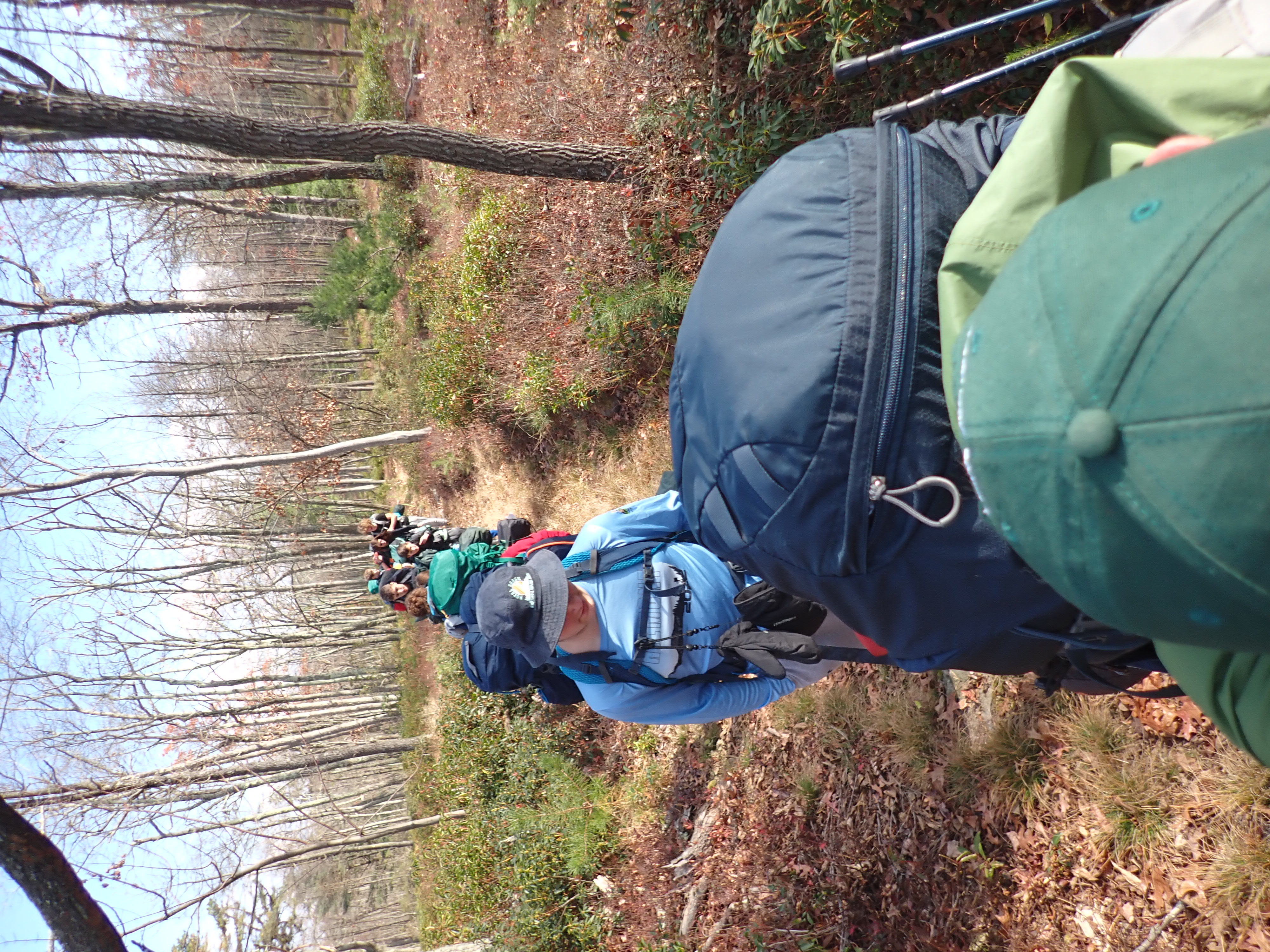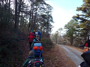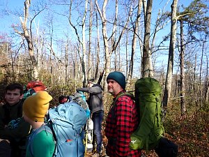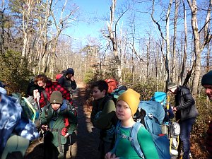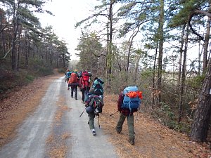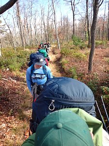 We camped Friday night in the Piney Mountain camping area. We left the campsite about 0800 on Saturday morning. The long hikers started hiking south along the Appalachian Trail to our Saturday camp sites near the trail. The long hike was about 11.3 miles. We started out with everyone together and later split into two groups: one kept a more aggressive pace and the other a more relaxed pace. The short hikers were shuttle to a put in spot along the ridge that left them about 5.6 miles of hiking. We had dinner and a campfire before heading for out tents. On Sunday morning we all hiked out about 2.8 miles.