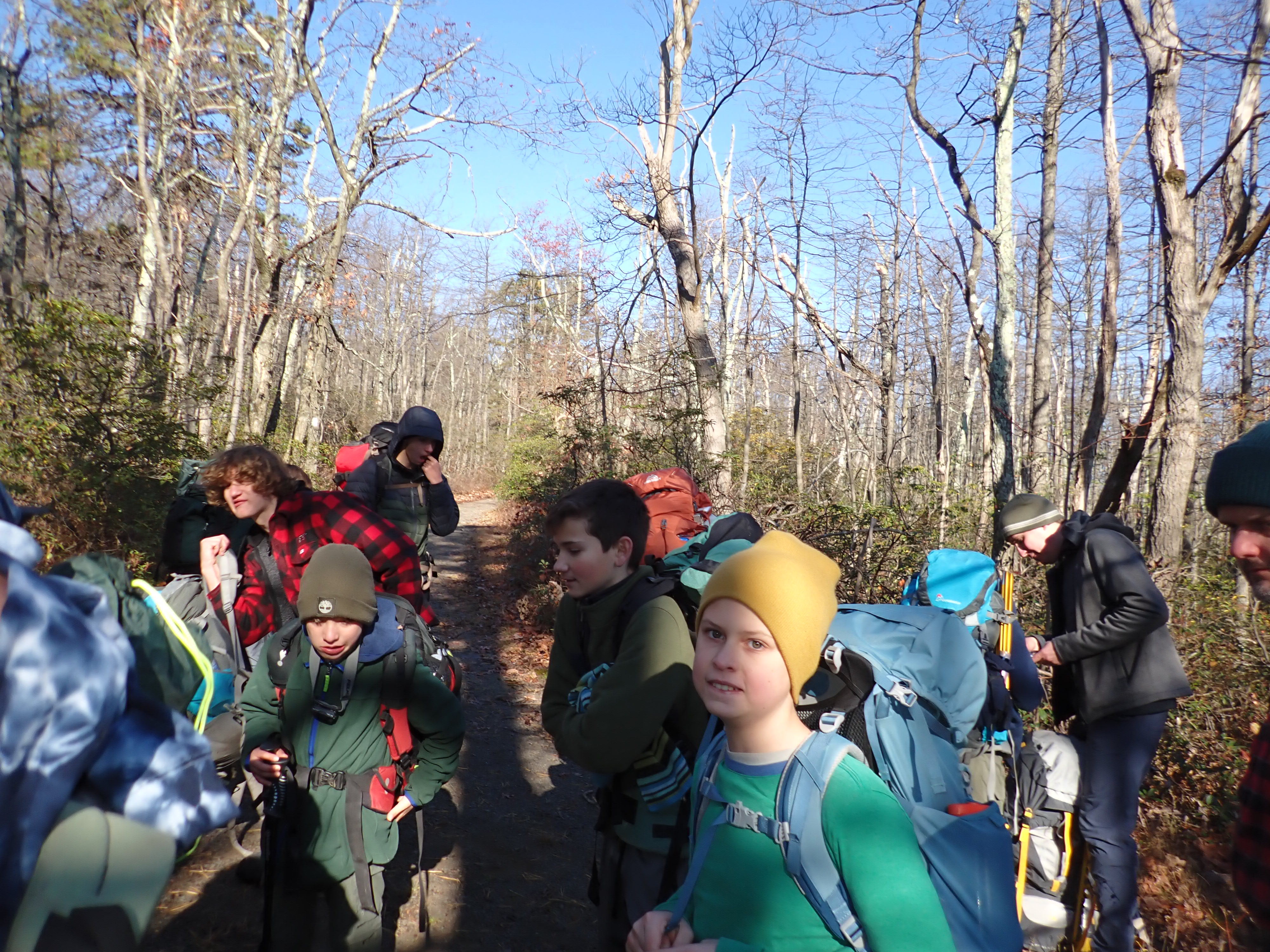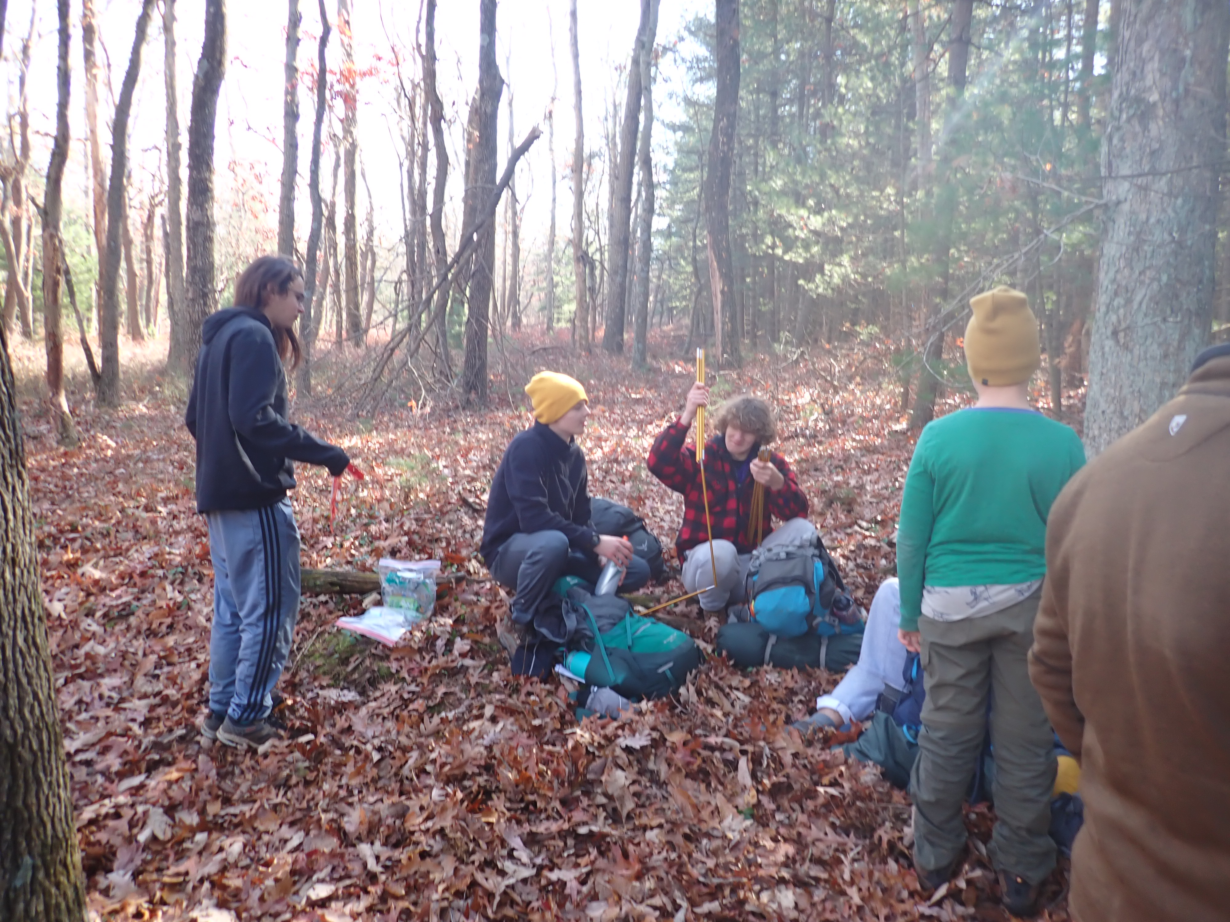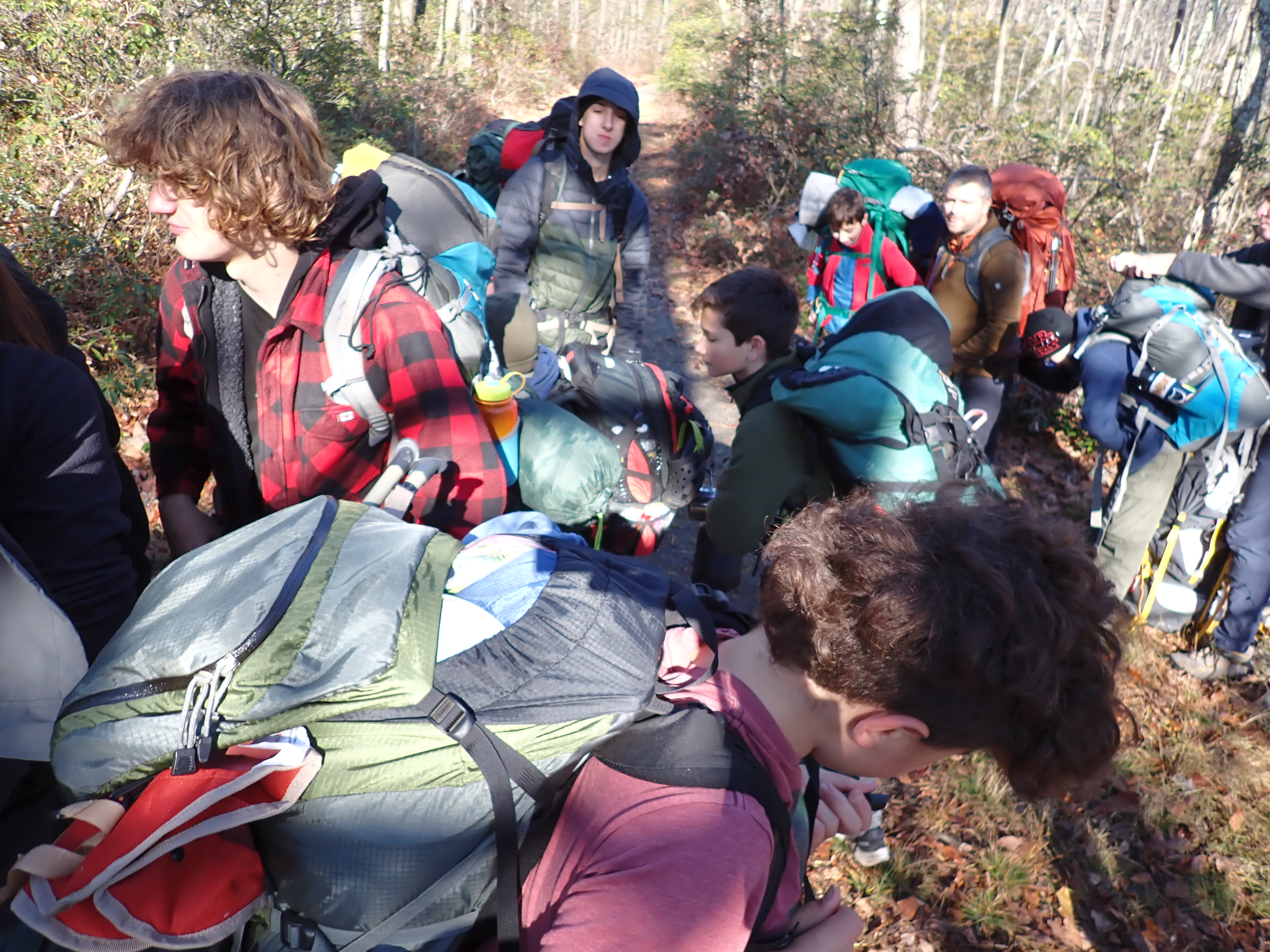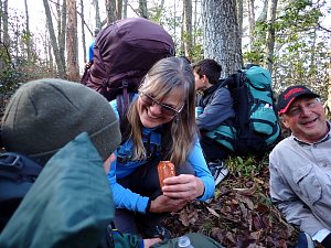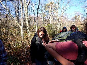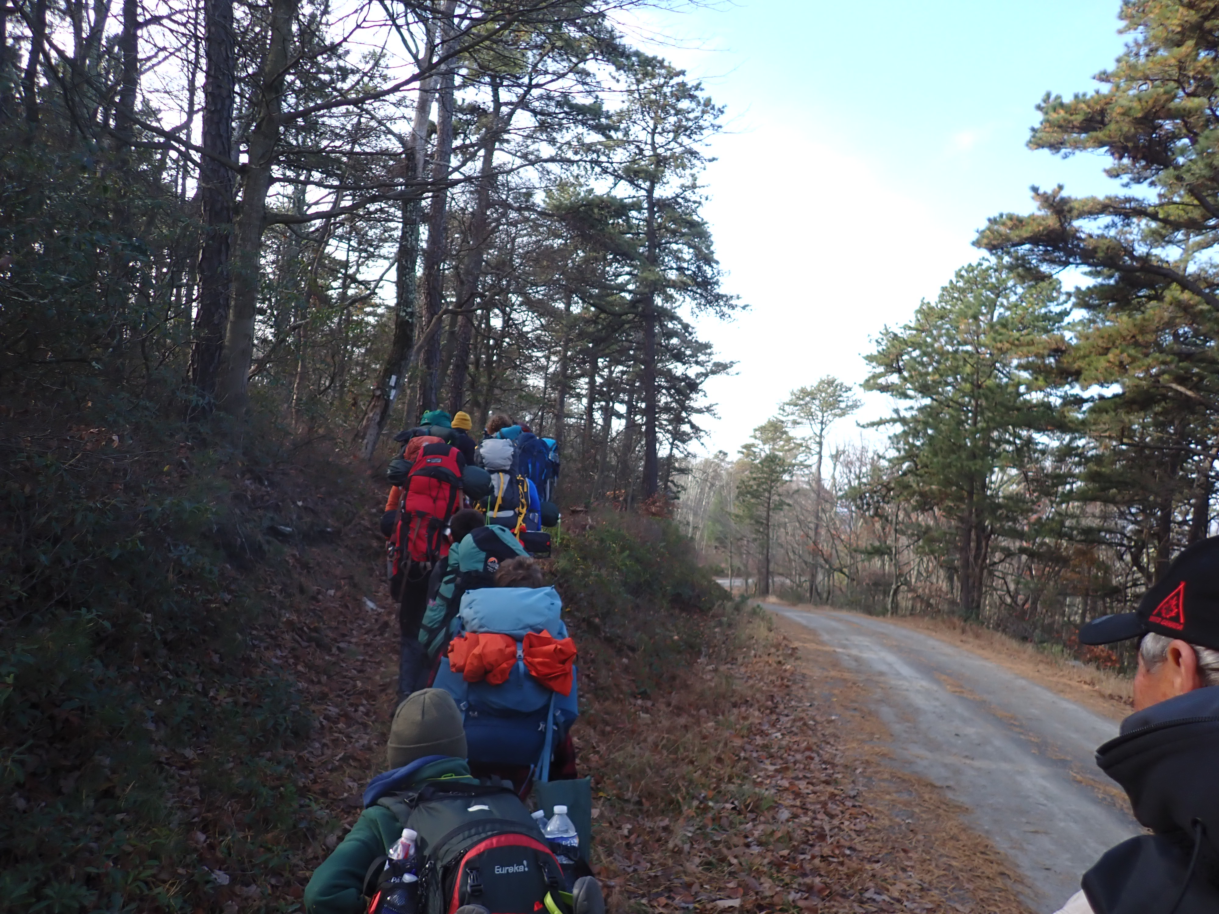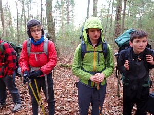 We camped Friday night in the Piney Mountain camping area. We left the campsite about 0800 on Saturday morning. The long hikers started hiking south along the Appalachian Trail to our Saturday camp sites near the trail. The long hike was about 11.3 miles. We started out with everyone together and later split into two groups: one kept a more aggressive pace and the other a more relaxed pace. The short hikers were shuttle to a put in spot along the ridge that left them about 5.6 miles of hiking. We had dinner and a campfire before heading for out tents. On Sunday morning we all hiked out about 2.8 miles.