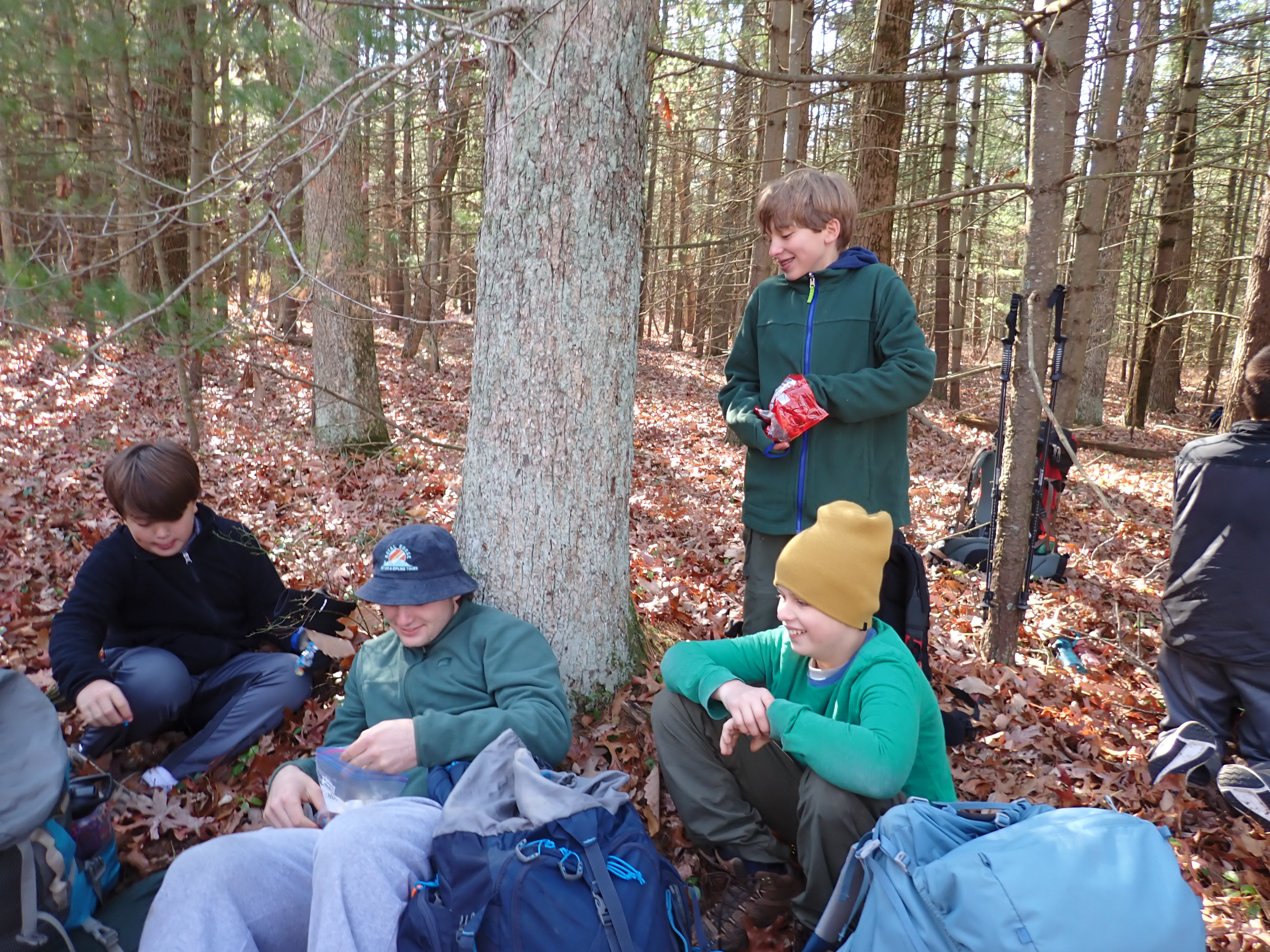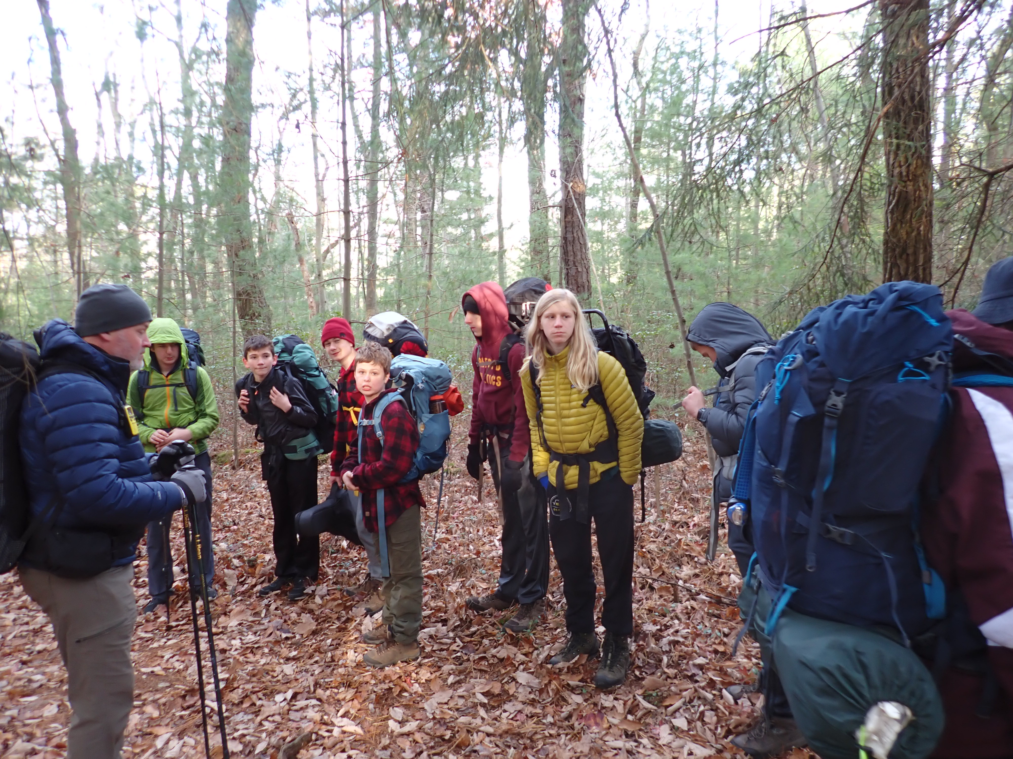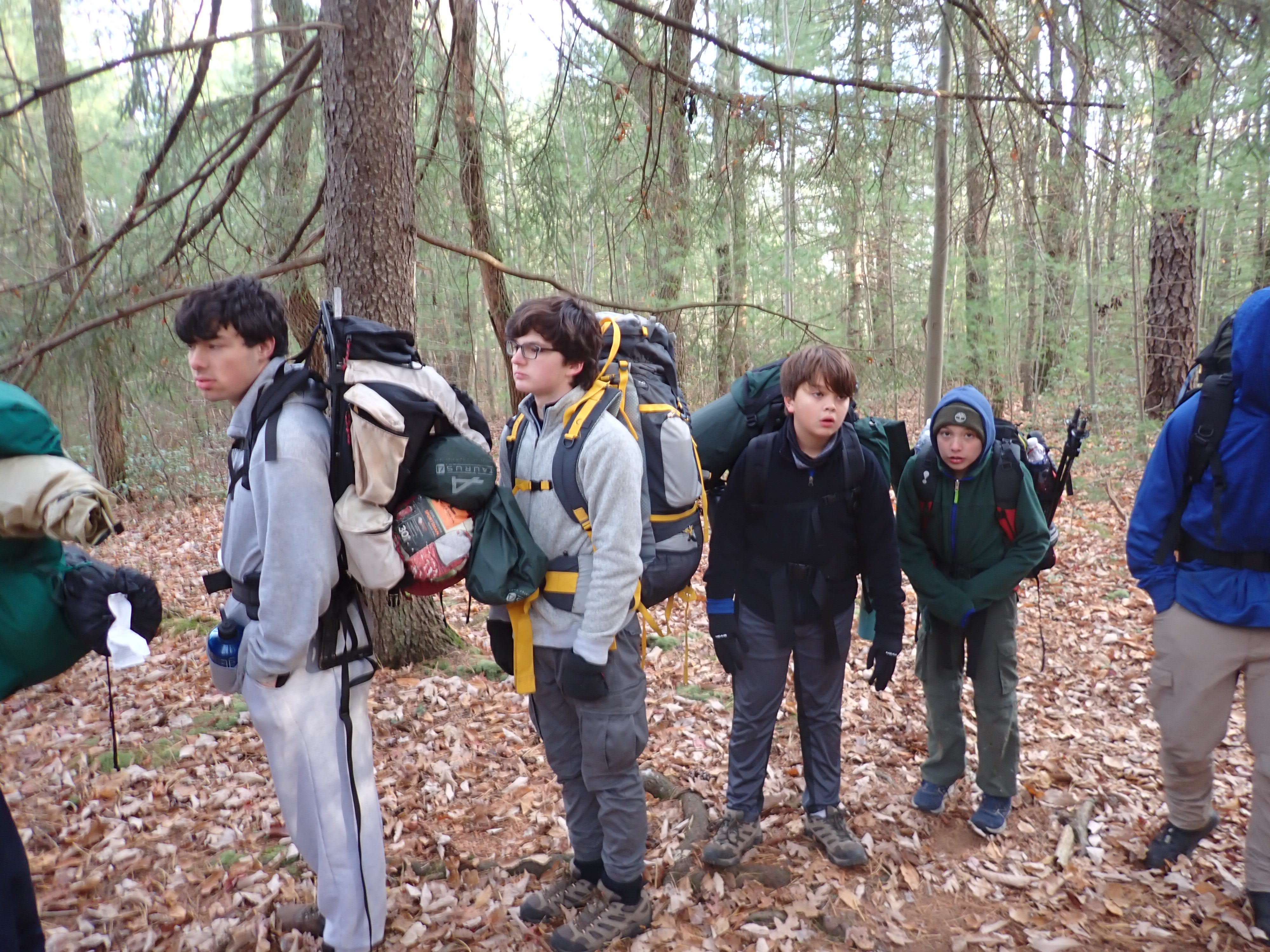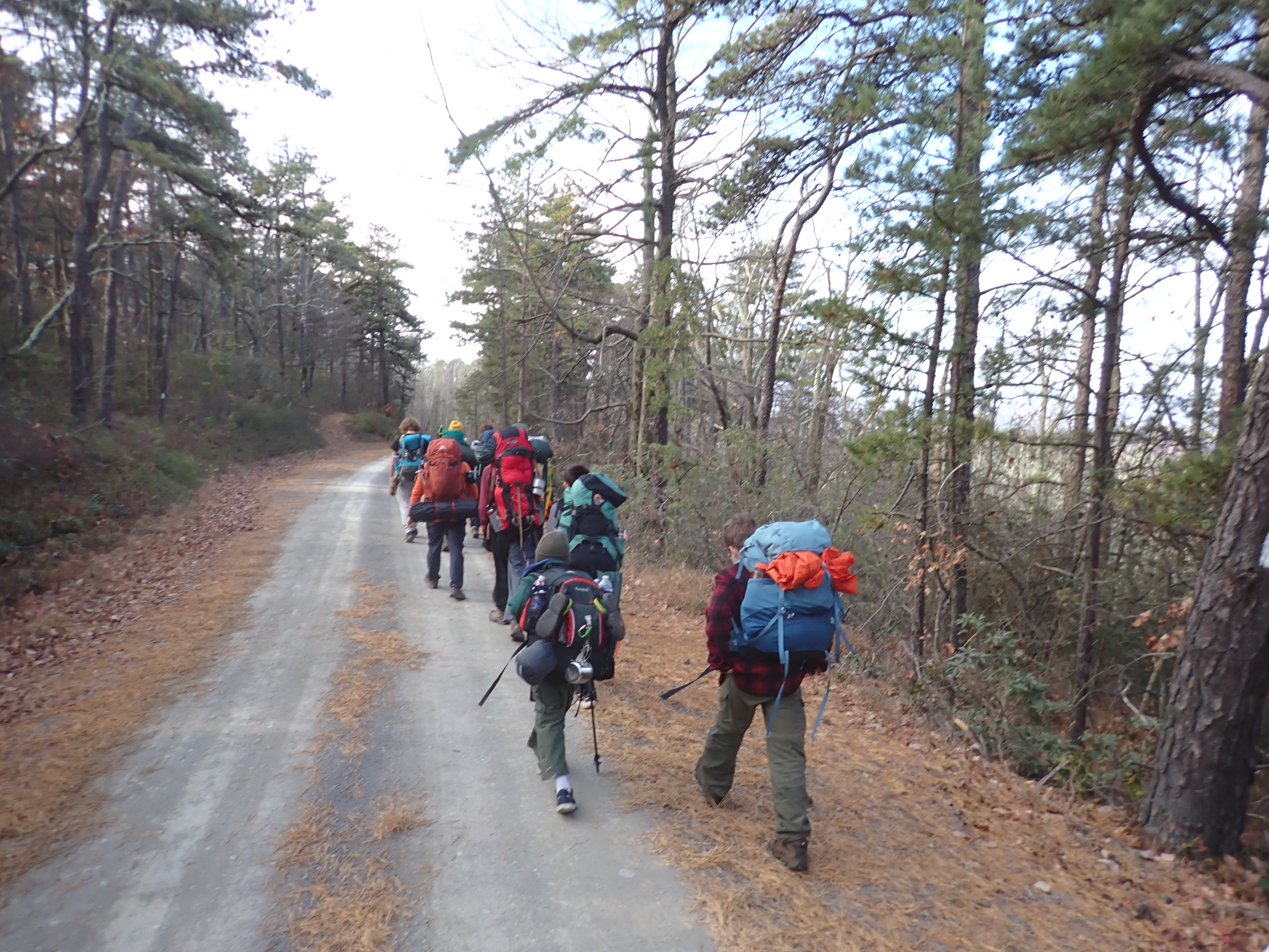 We camped Friday night in the Piney Mountain camping area. We left the campsite about 0800 on Saturday morning. The long hikers started hiking south along the Appalachian Trail to our Saturday camp sites near the trail. The long hike was about 11.3 miles. We started out with everyone together and later split into two groups: one kept a more aggressive pace and the other a more relaxed pace. The short hikers were shuttle to a put in spot along the ridge that left them about 5.6 miles of hiking. We had dinner and a campfire before heading for out tents. On Sunday morning we all hiked out about 2.8 miles.