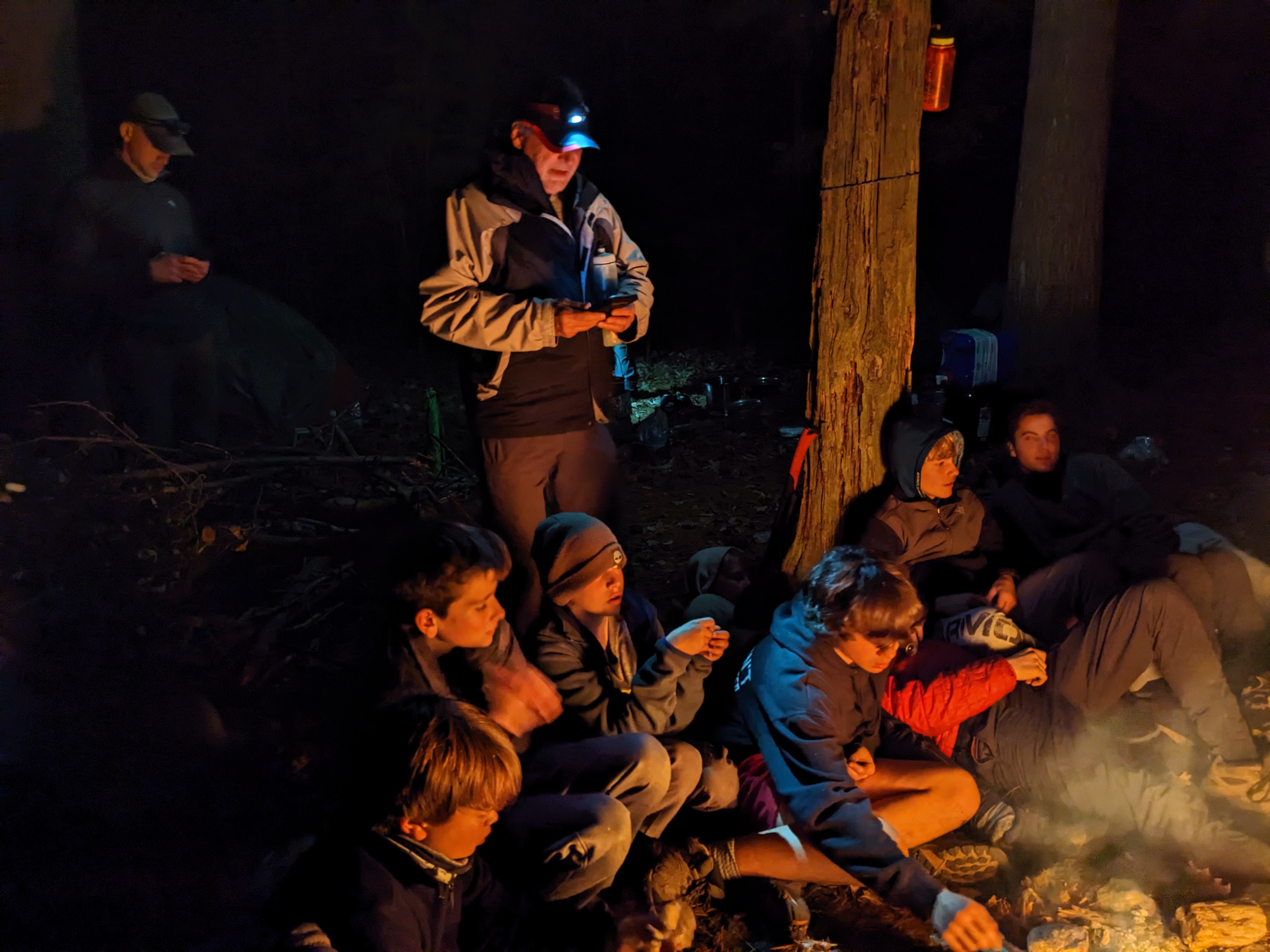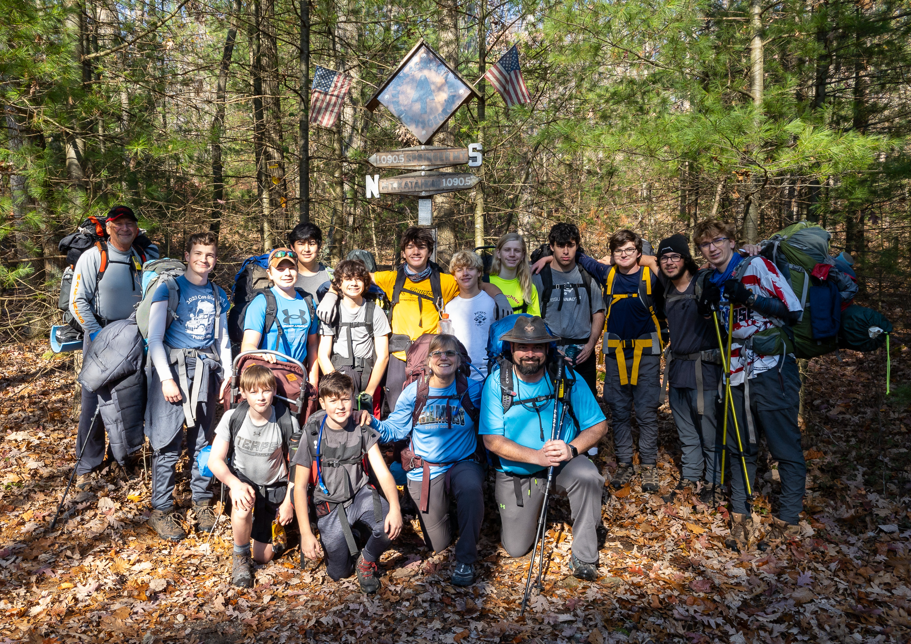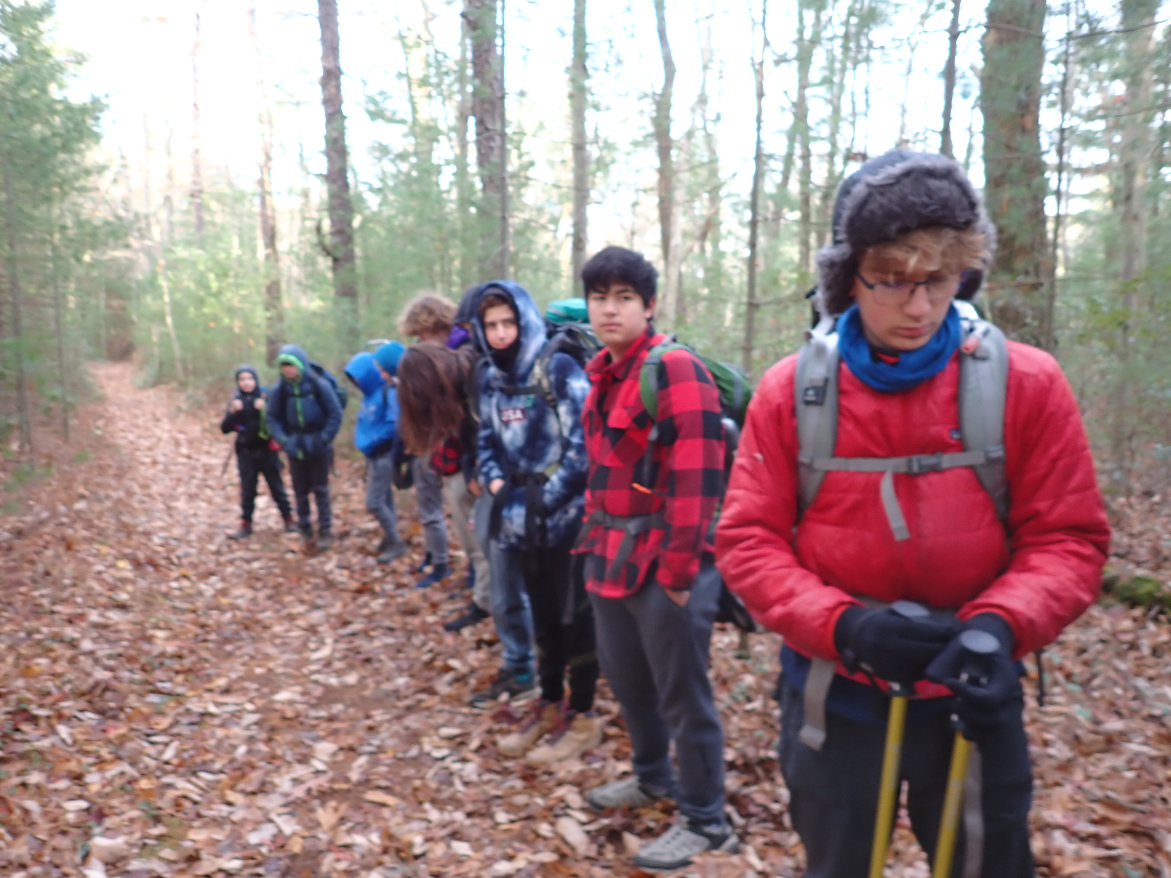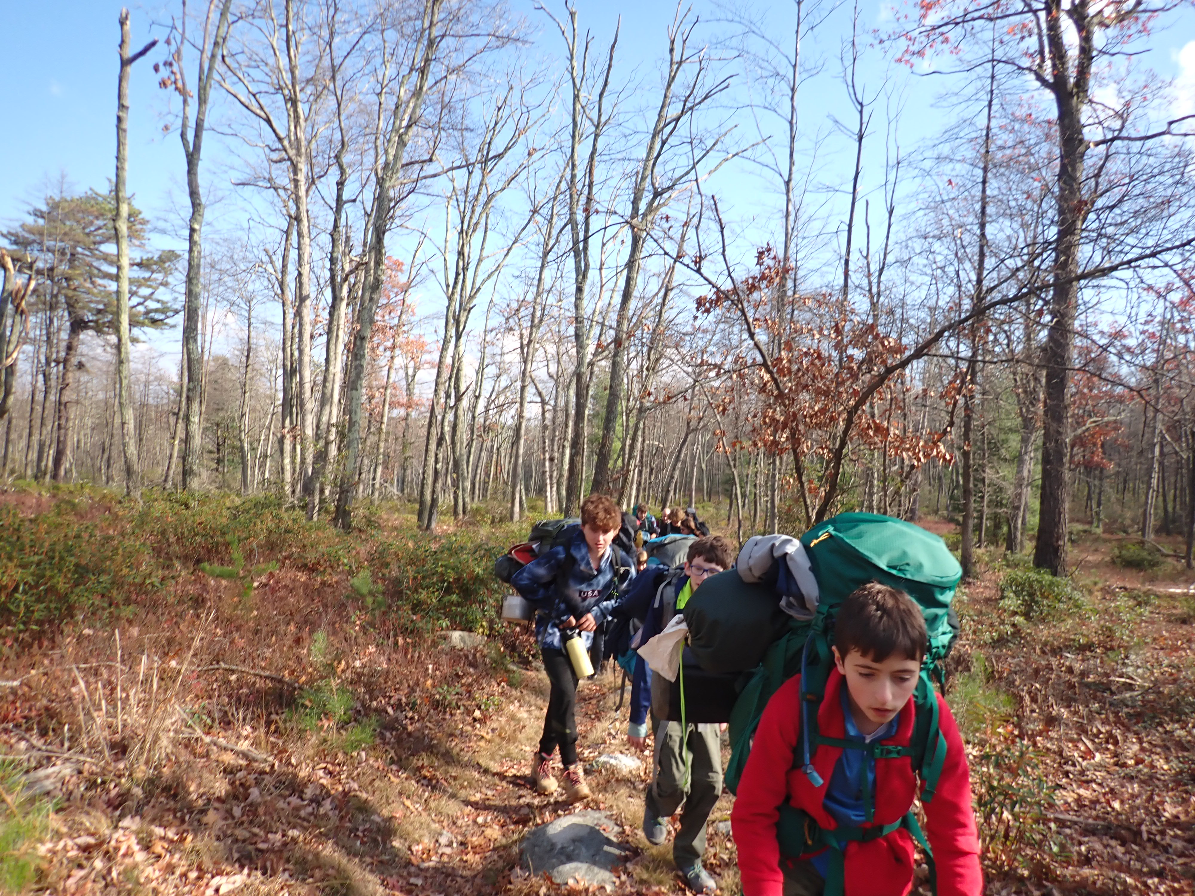 We camped Friday night in the Piney Mountain camping area. We left the campsite about 0800 on Saturday morning. The long hikers started hiking south along the Appalachian Trail to our Saturday camp sites near the trail. The long hike was about 11.3 miles. We started out with everyone together and later split into two groups: one kept a more aggressive pace and the other a more relaxed pace. The short hikers were shuttle to a put in spot along the ridge that left them about 5.6 miles of hiking. We had dinner and a campfire before heading for out tents. On Sunday morning we all hiked out about 2.8 miles.